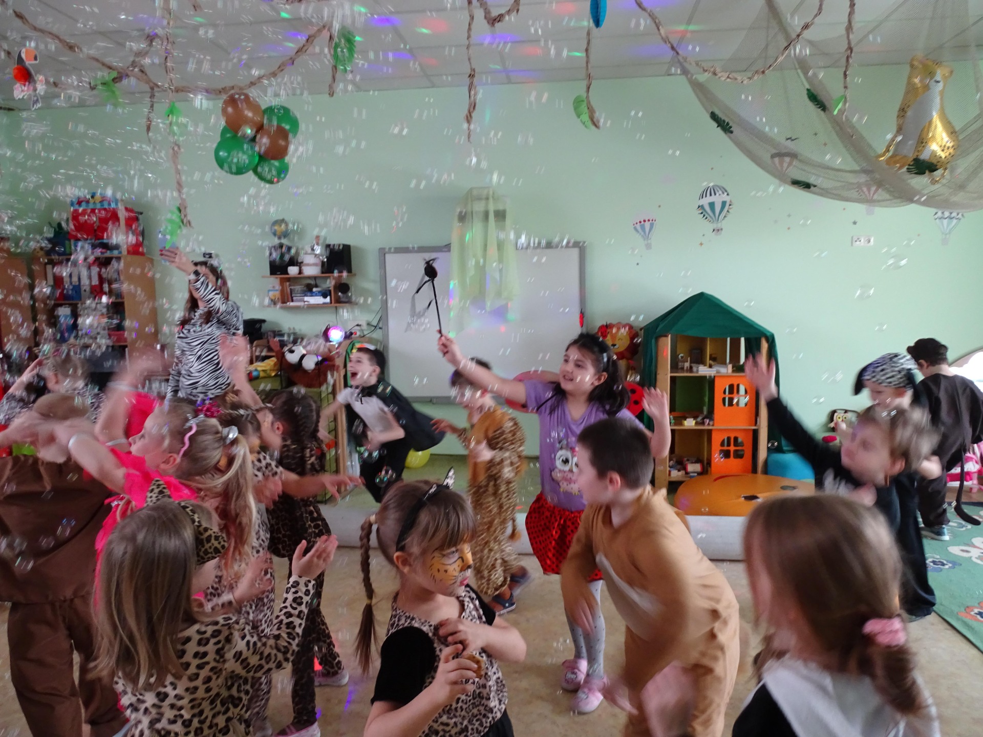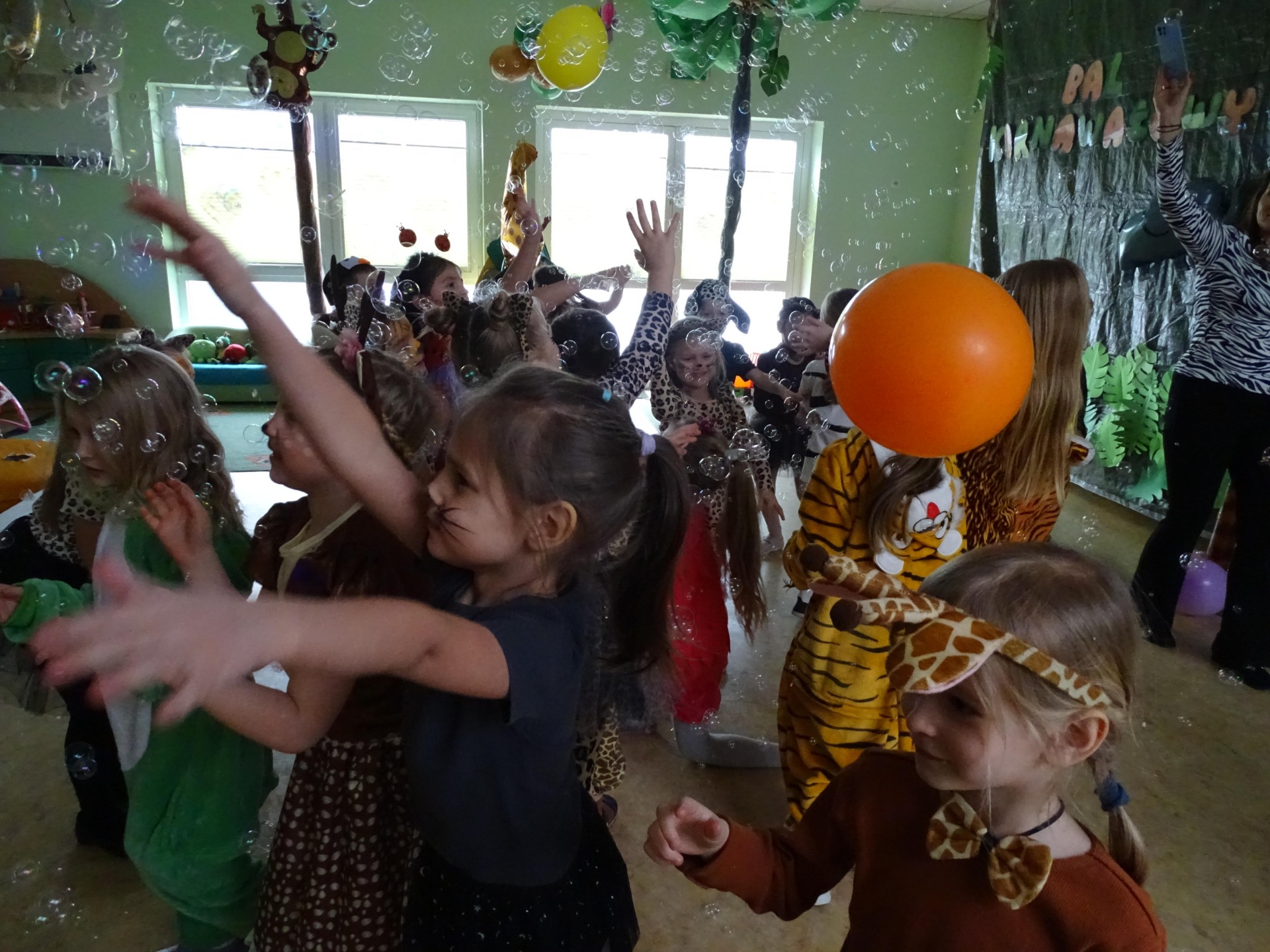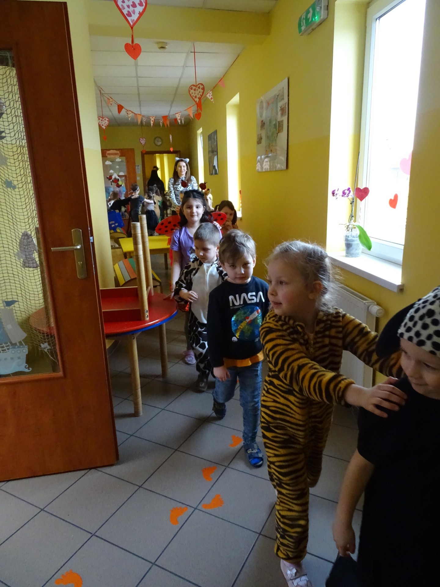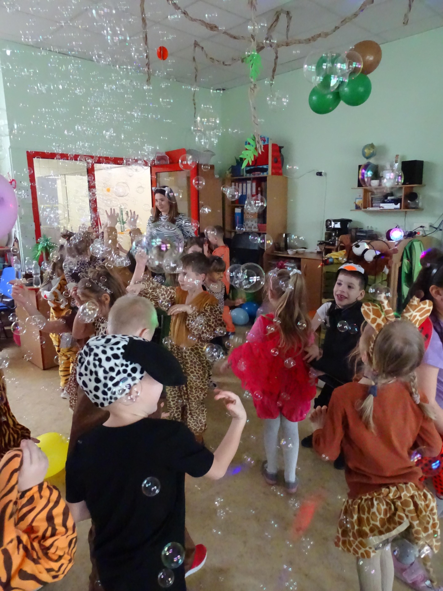 12 lutego dwie najstarsze grupy przedszkolne imprezowały na balu karnawałowym . W tym roku tematem przewodnim była dżungla, dlatego parkiet zagęścił się od obecności dzikich zwierząt. Pojawiły się min.: lwy , pantery, flaming, żyrafa, papuga, motyl i inne. Od samego początku energia zabawowa dopisywała. Dzieci chętnie pląsały w rytm znanych i lubianych utworów. Nie zabrakło również konkursów, min. podawania kokosa w rzędach, przeciskania się przez pajęczą sieć, czy rozpoznawania odgłosów dzikich zwierząt. Dzieci zaprezentowały swoje piękne stroje na zielonym dywanie, a także udały się w kolorowy korowód po innych, przedszkolnych salach. Nie zabrakło również słodkiego poczęstunku i małych drobiazgów dla przedszkolaków. Serdecznie dziękujemy rodzicom za pomoc w przygotowaniu imprezy 😀.