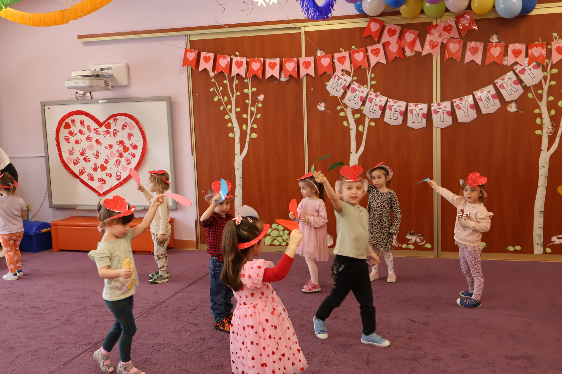 14 lutego obchodziliśmy w naszym przedszkolu „Dzień serduszka”. Z tej okazji udekorowaliśmy naszą salę czerwonymi serduszkami. Tego dnia dzieci wzięły udział w licznych zabawach związanych z walentynkami m.in. szukały drugiej połówki serca, rozwiązywały zagadki dotyczące słynnych bajkowych par. W pracach plastycznych motywem przewodnim były czerwone serca. Miłym akcentem był także drobny słodki upominek. Okazów sympatii przez cały dzień w przedszkolu nie brakowało. Na zakończenie wspólnie zrobiliśmy pamiątkowe zdjęcie.