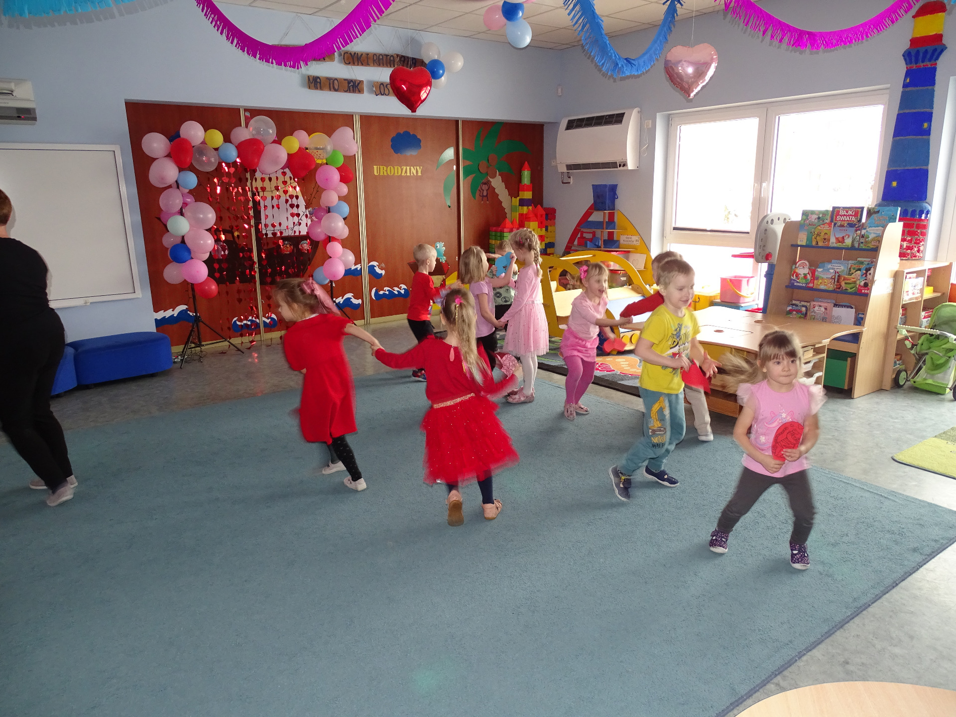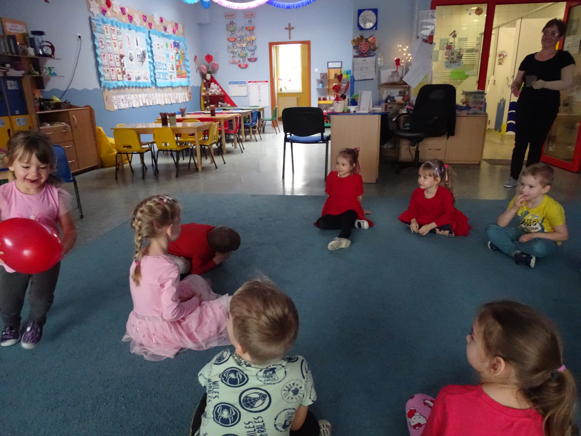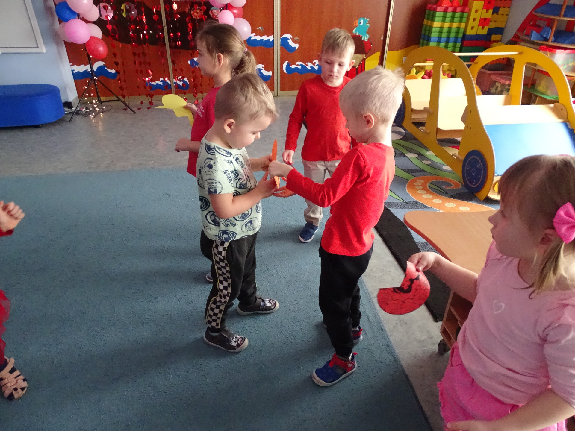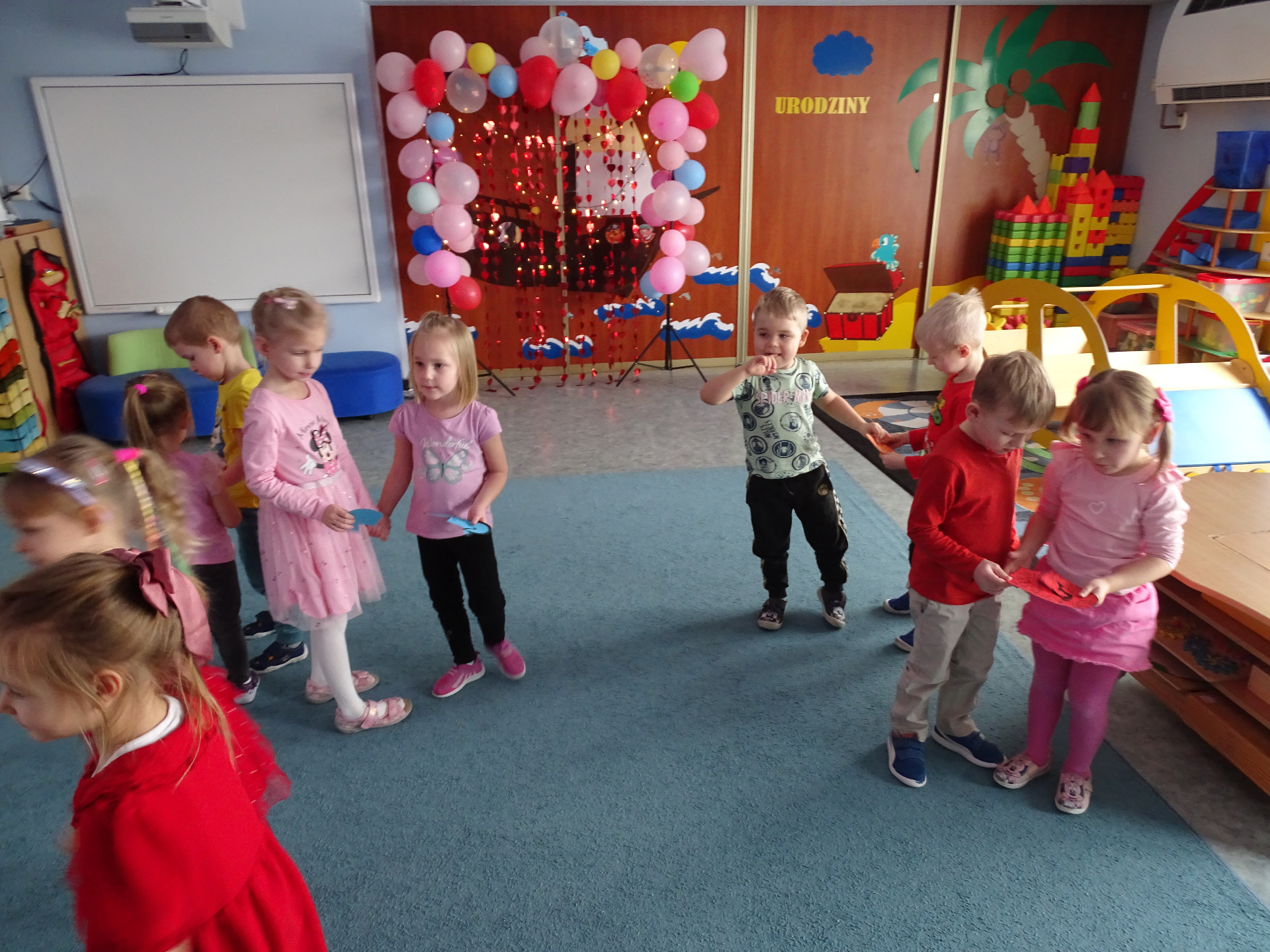W piątek, 14. lutego Piraci obchodzili Dzień Życzliwości. Z tej okazji dzieci obejrzały film edukacyjny o tradycji świętowania Walentynek, a potem bawiły się wesoło przy muzyce z wykorzystaniem balonów i chusty animacyjnej. Na zakończenie przedszkolaki kolorowały walentynkowe ilustracje.