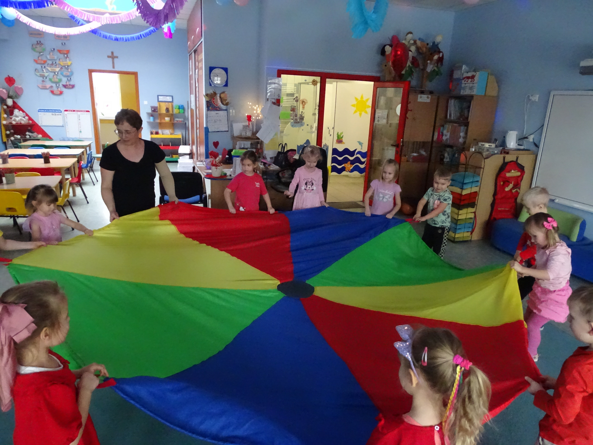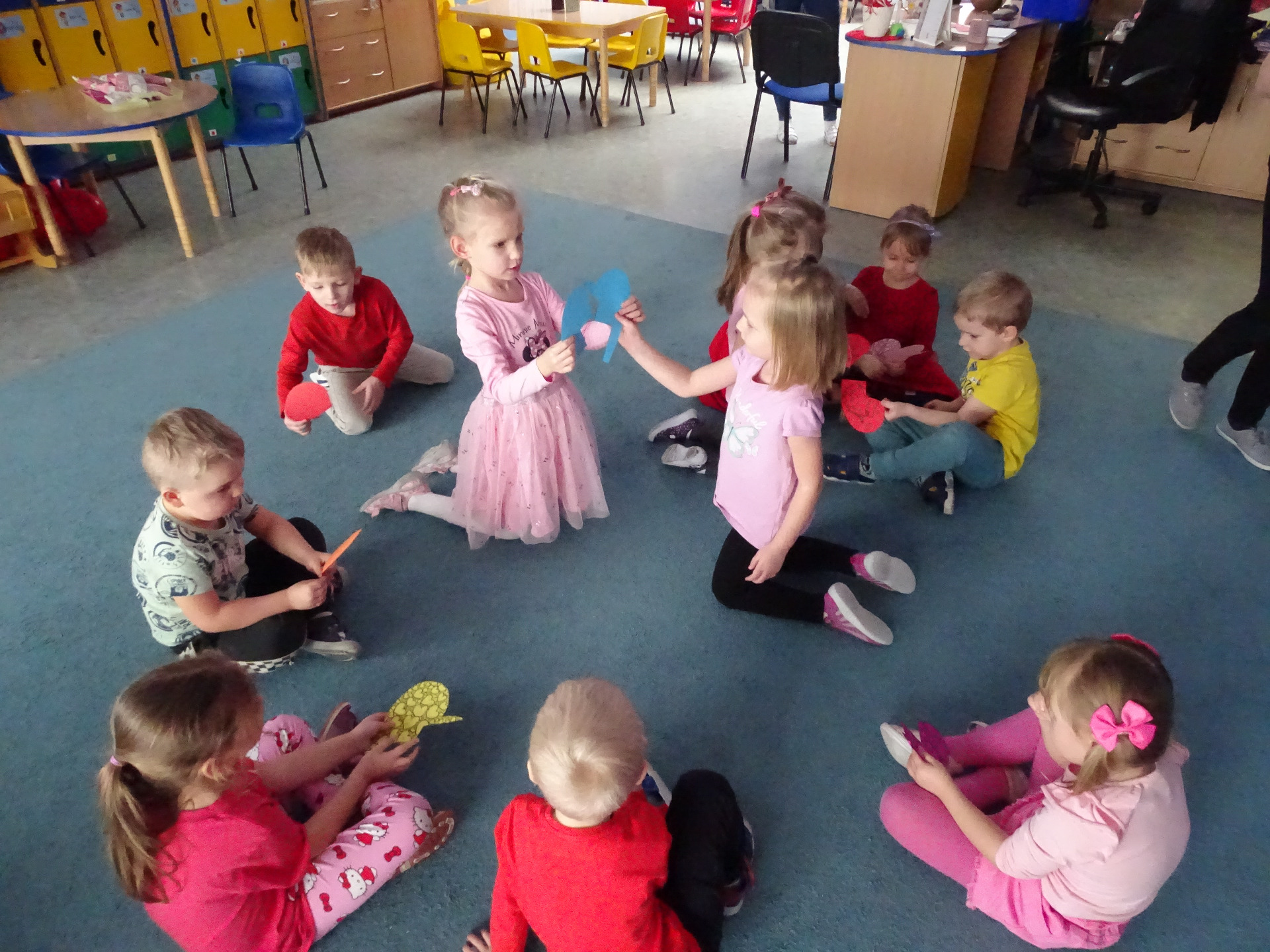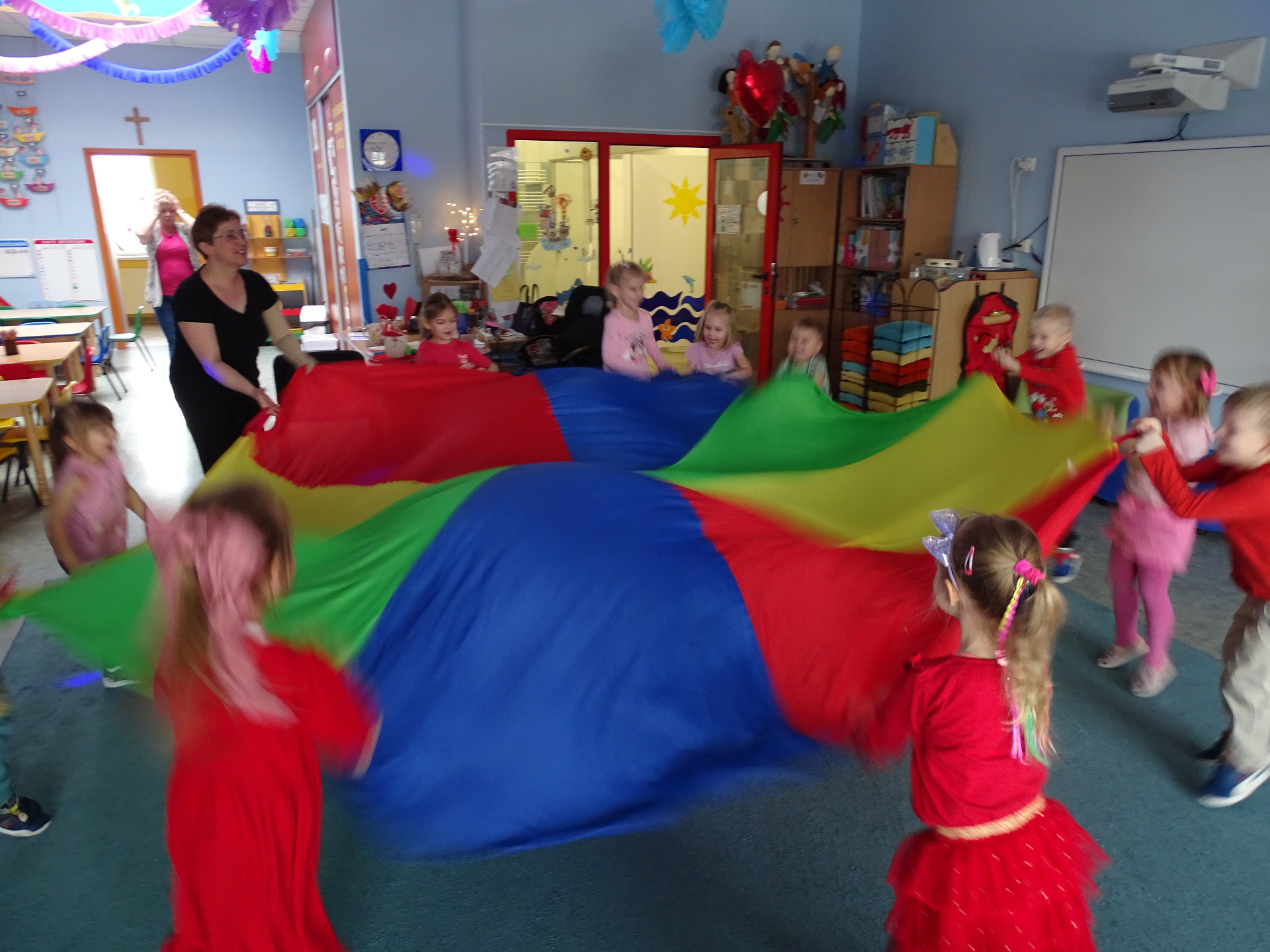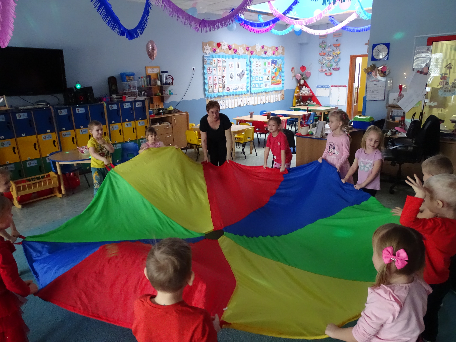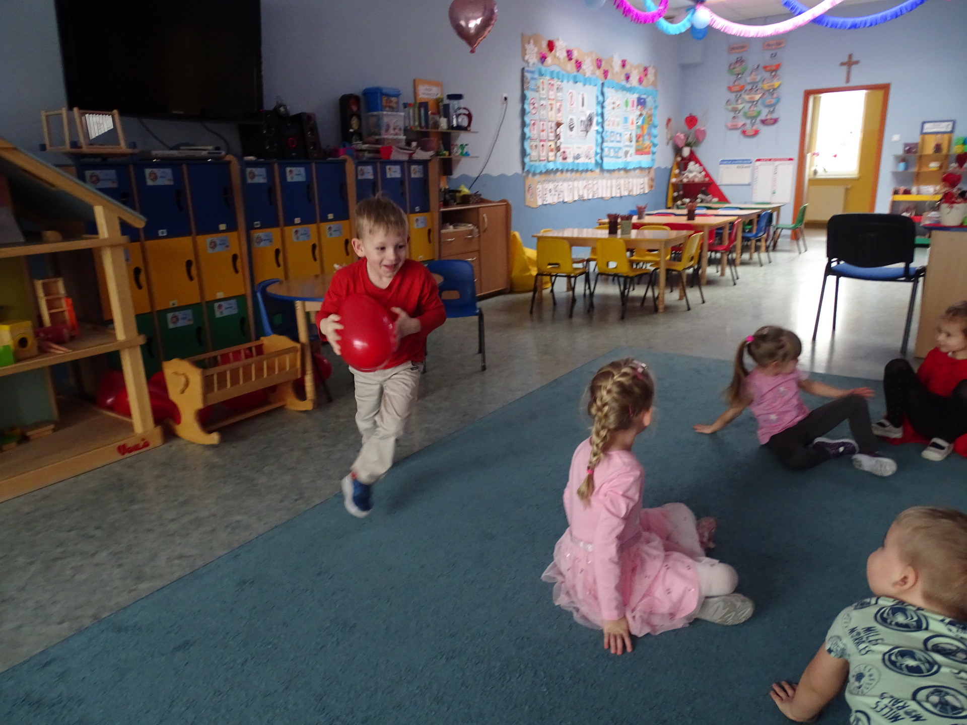 W piątek, 14. lutego Piraci obchodzili Dzień Życzliwości. Z tej okazji dzieci obejrzały film edukacyjny o tradycji świętowania Walentynek, a potem bawiły się wesoło przy muzyce z wykorzystaniem balonów i chusty animacyjnej. Na zakończenie przedszkolaki kolorowały walentynkowe ilustracje.