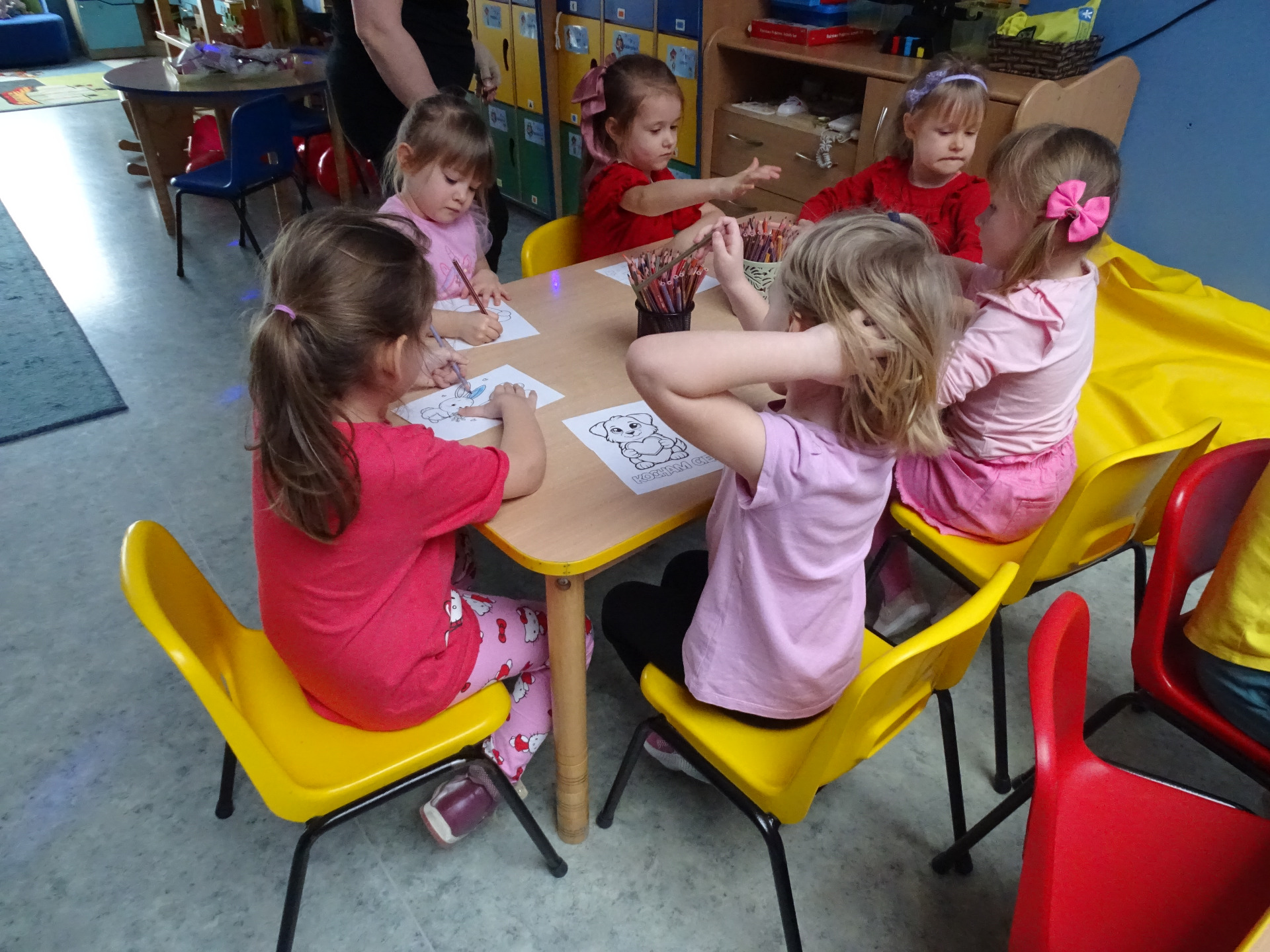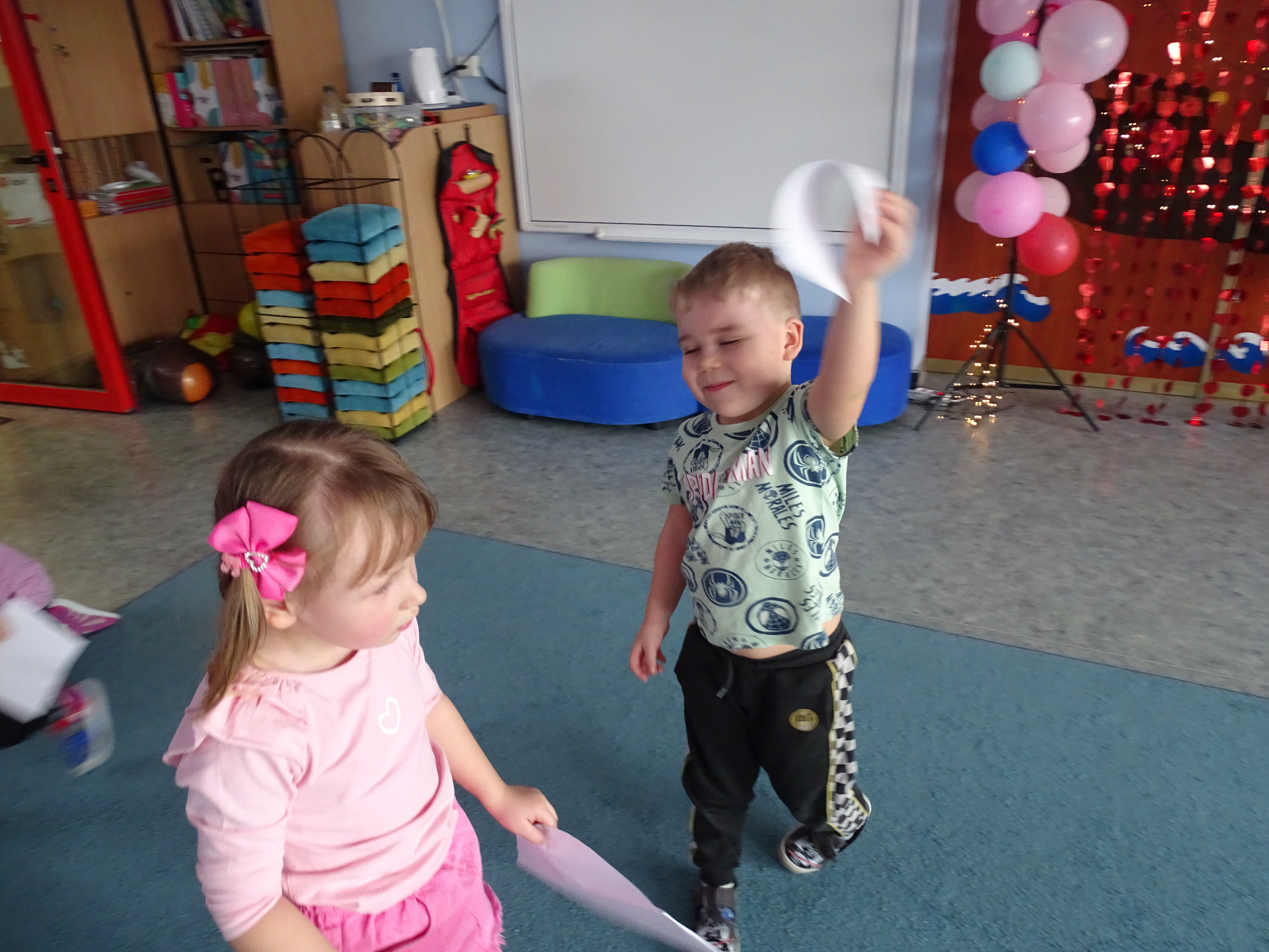 W piątek, 14. lutego Piraci obchodzili Dzień Życzliwości. Z tej okazji dzieci obejrzały film edukacyjny o tradycji świętowania Walentynek, a potem bawiły się wesoło przy muzyce z wykorzystaniem balonów i chusty animacyjnej. Na zakończenie przedszkolaki kolorowały walentynkowe ilustracje.