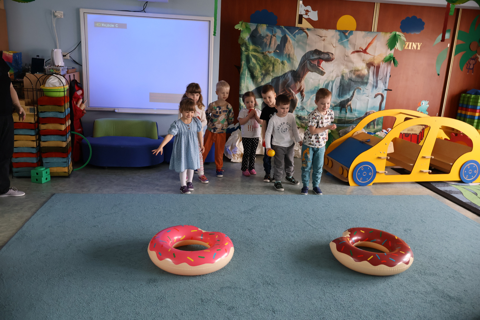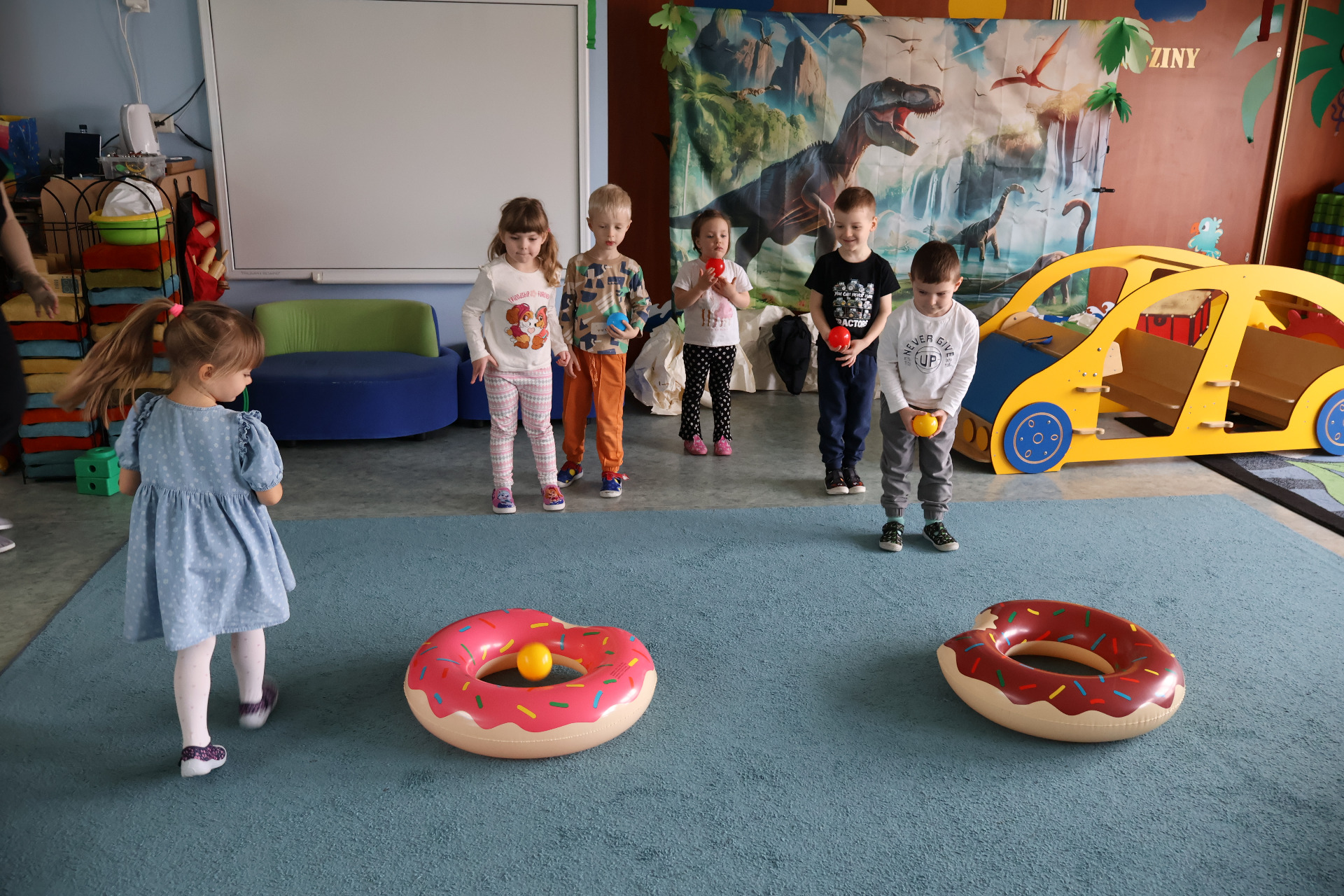 W czwartek 27.02.2025 r. Piraci obchodzili słodkie święto- Tłusty Czwartek. Z tej okazji dzieci obejrzały krótki film edukacyjny o tradycjach związanych z tym świętem, bawiły się w "pączkowe" zawody ruchowe oraz wykonały własnego "pączka" z pomalowanego koła i plasteliny. Na zakończenie wszystkie przedszkolaki zjadły słodki poczęstunek- pyszne pączki i faworki.