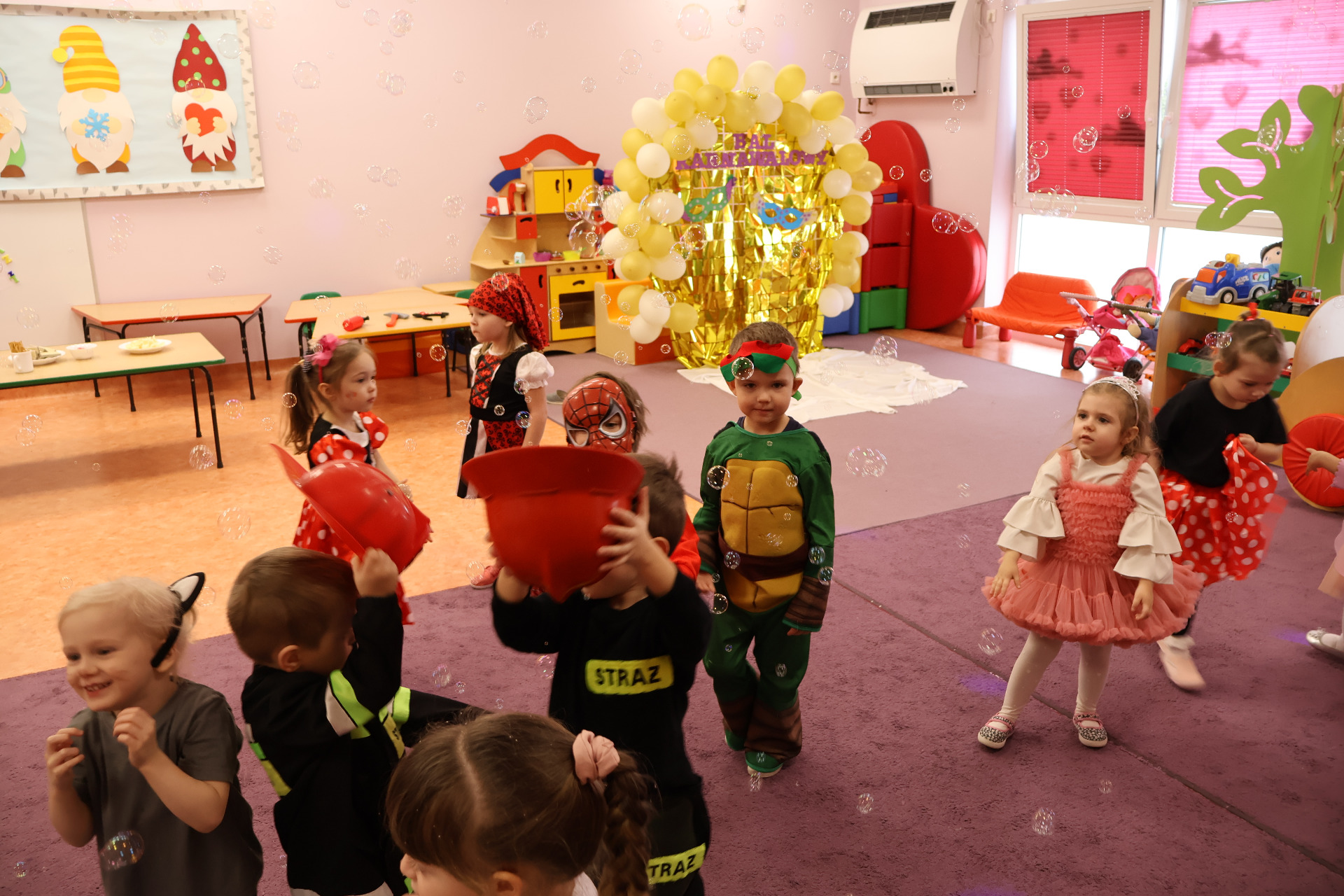 Karnawał to czas balów i tanecznych szaleństw,którym towarzyszy muzyka i zabawa. Grupa Krasnali również miały okazję wspólnie zintegrować się na balu. Dzieci tego dnia miały okazję przebrać się za różne postacie z bajek i nie tylko. Na balu można było spotkać: wróżki, księżniczki, motylki,strażaków, Spider – mana i wiele innych postaci. Przedszkolaki świetnie bawiły się w rytm muzyki porywającej do tańca. Bajkowa atmosfera na długo pozostanie w pamięci naszych Krasnali:)