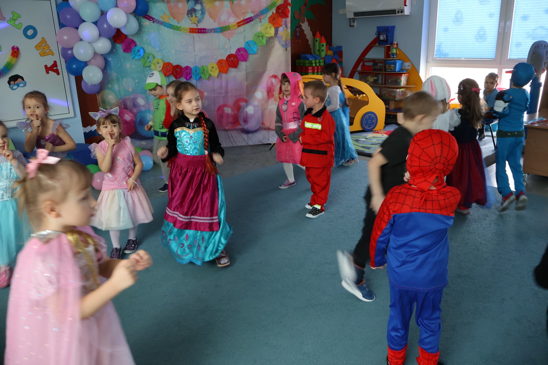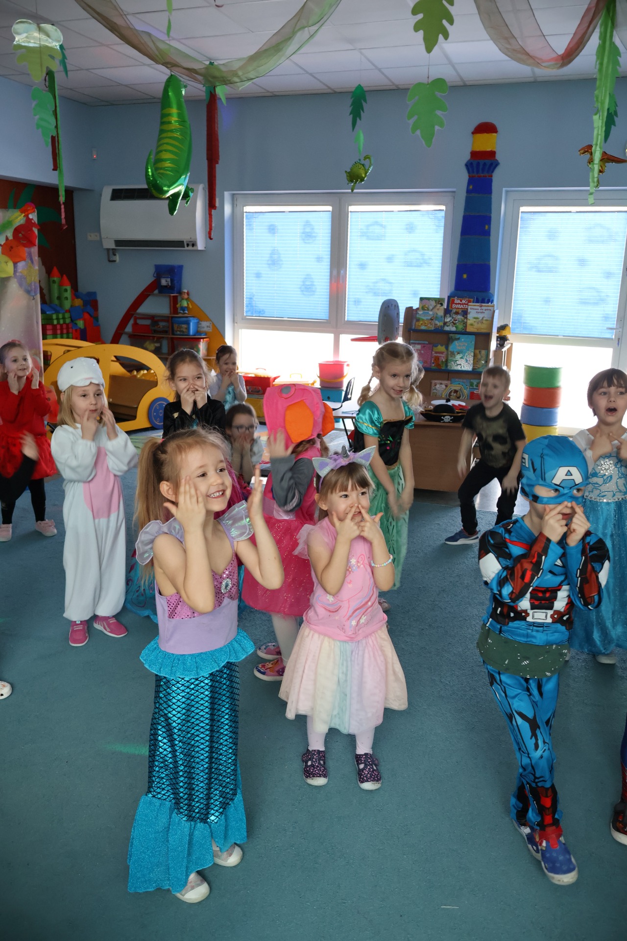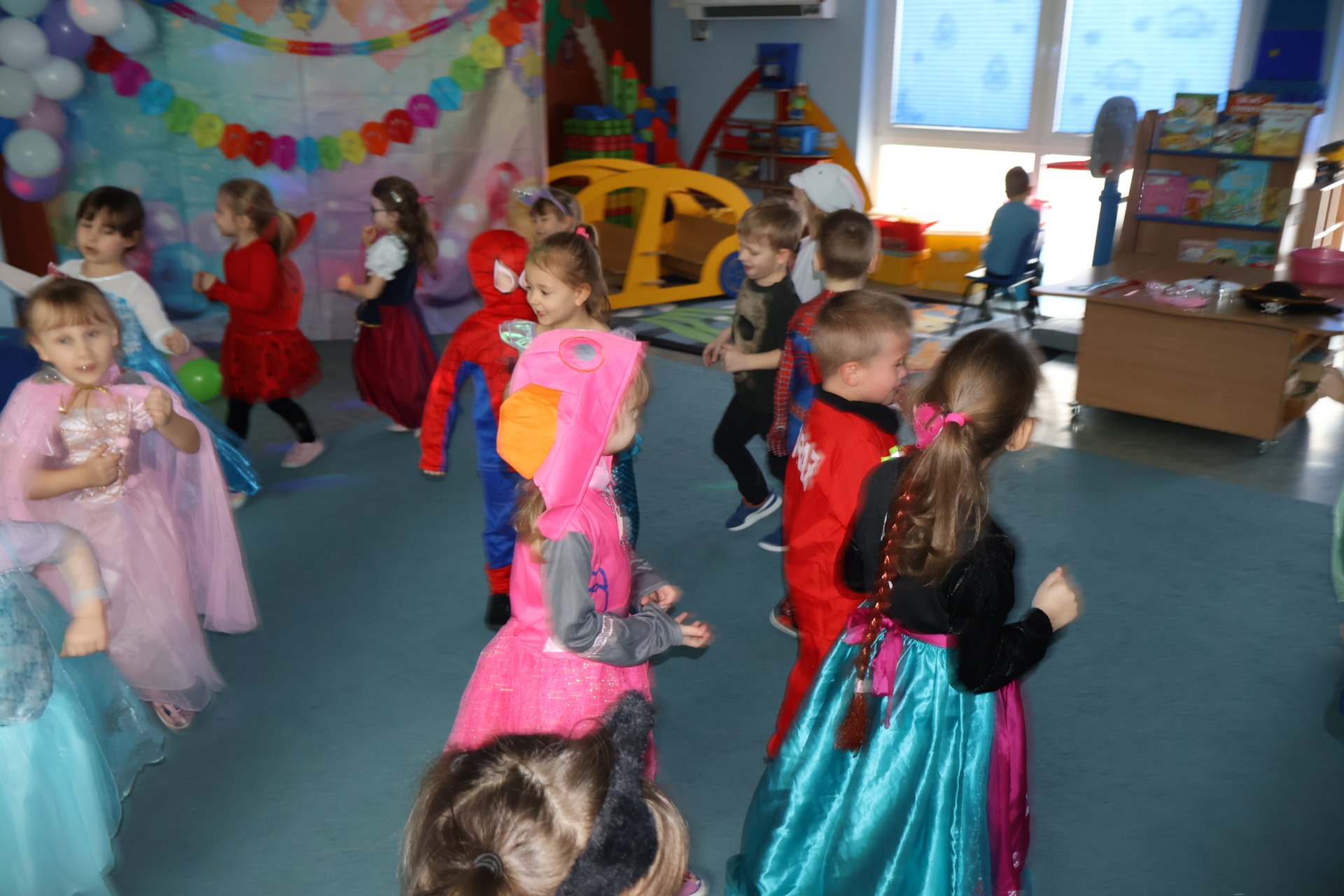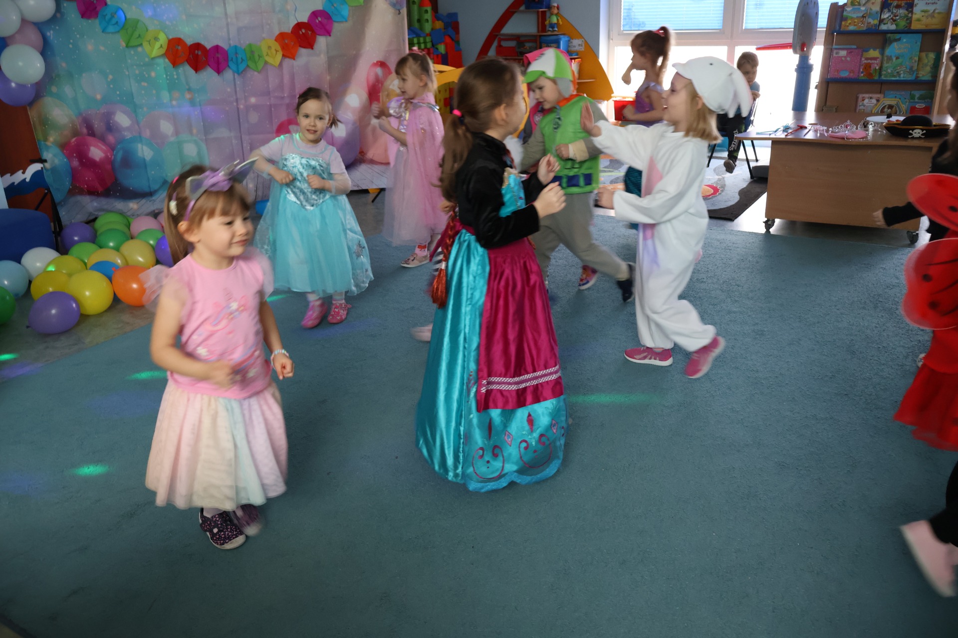 Bal przebierańców z okazji końca karnawału. Zabawy i konkursy przy muzyce. Słodki poczęstunek.