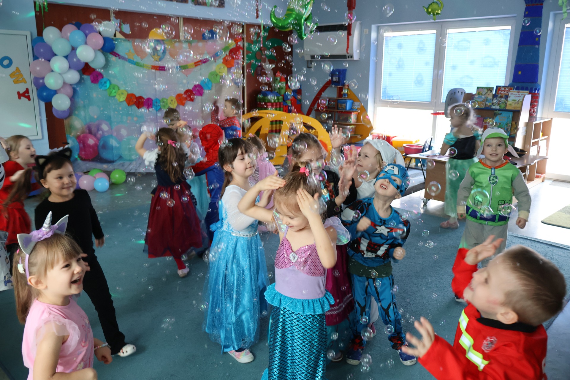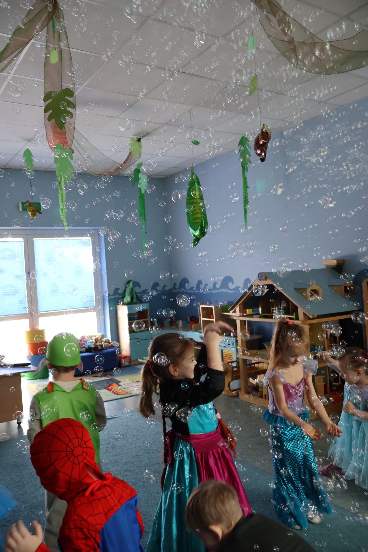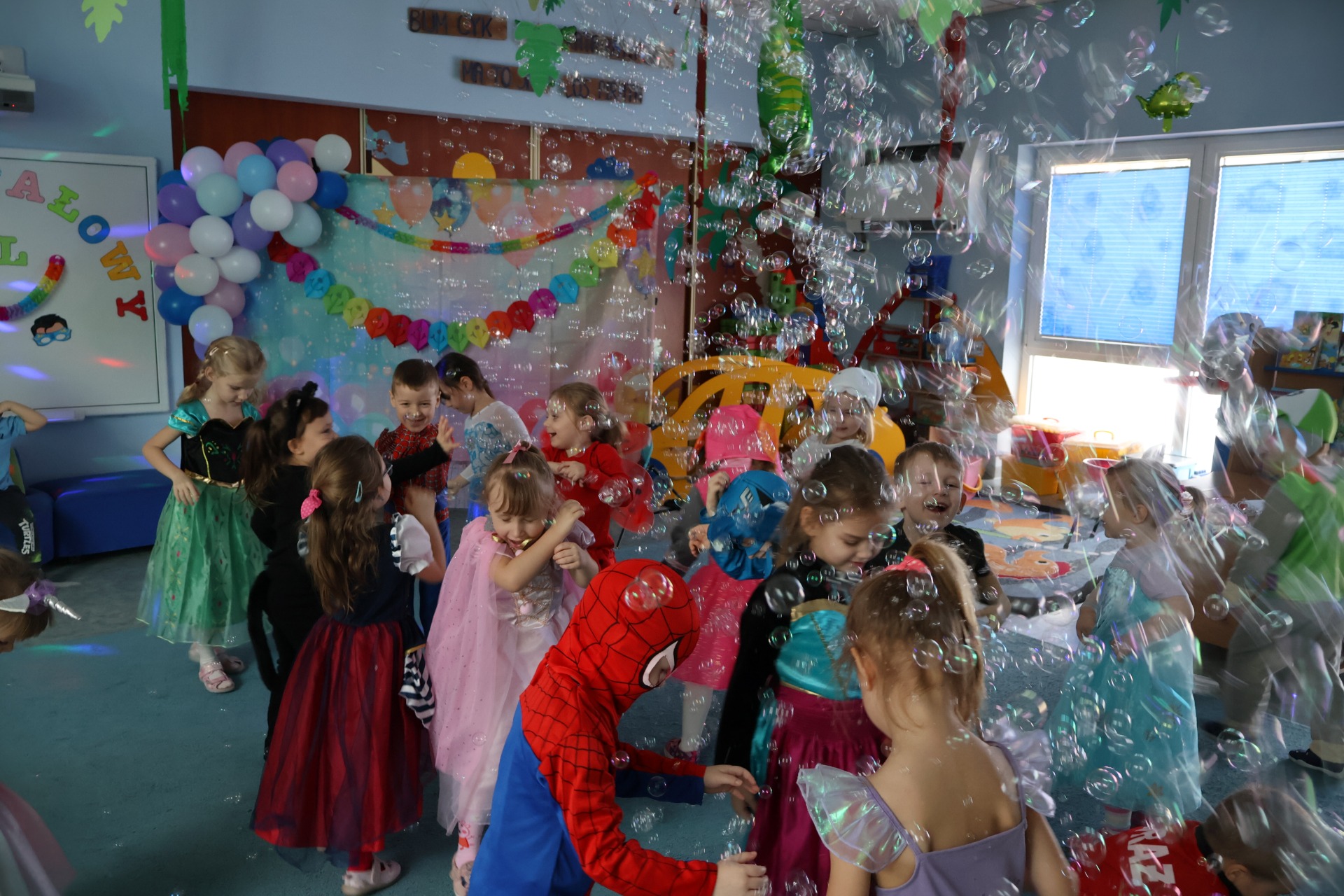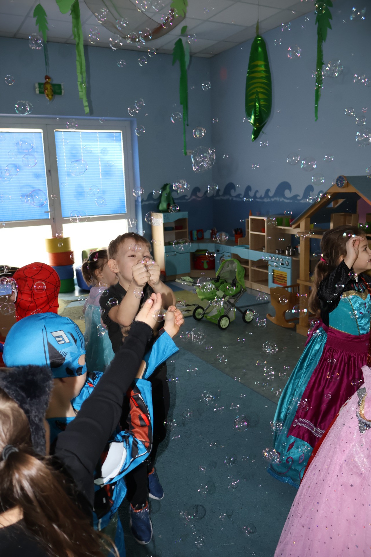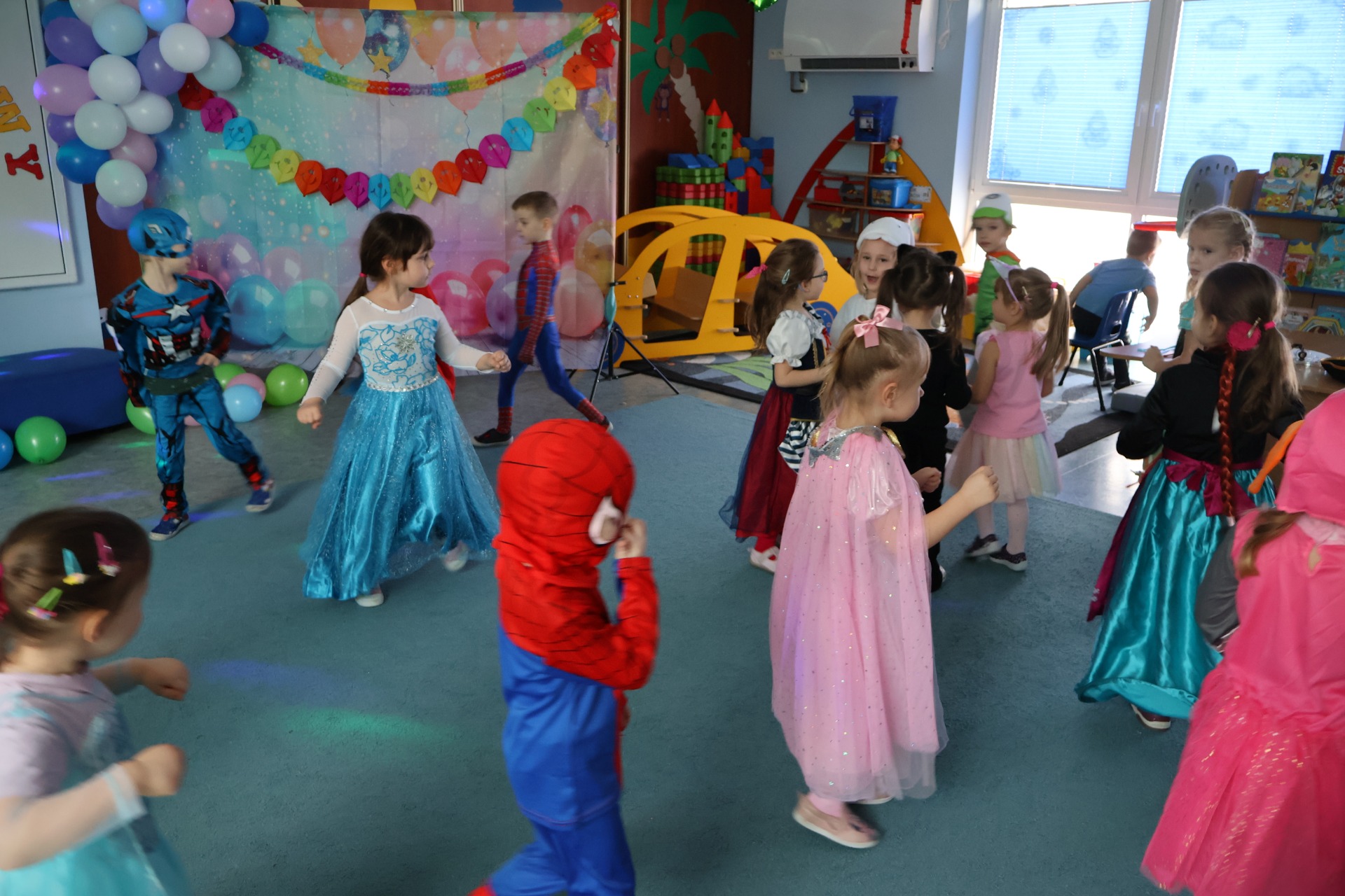 Bal przebierańców z okazji końca karnawału. Zabawy i konkursy przy muzyce. Słodki poczęstunek.