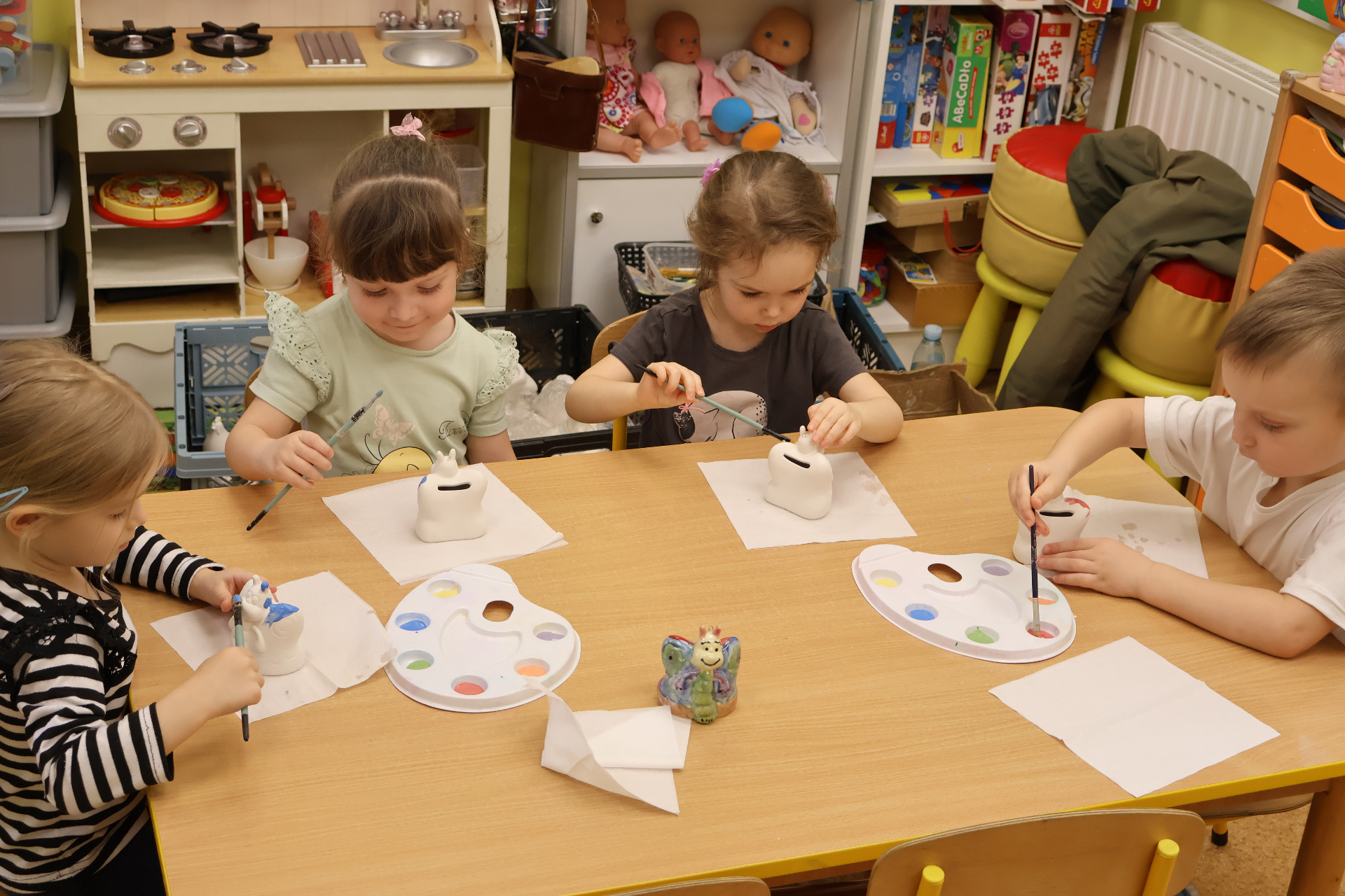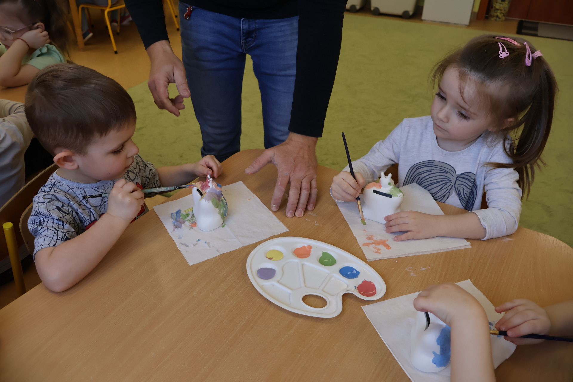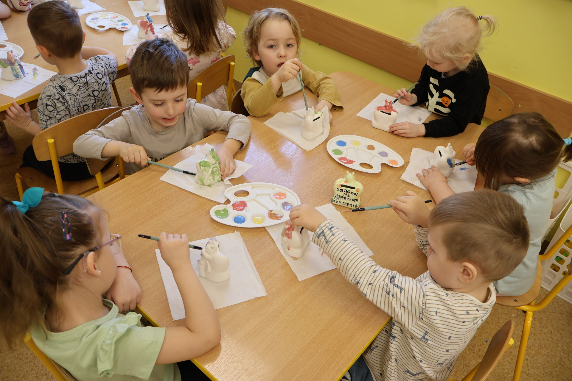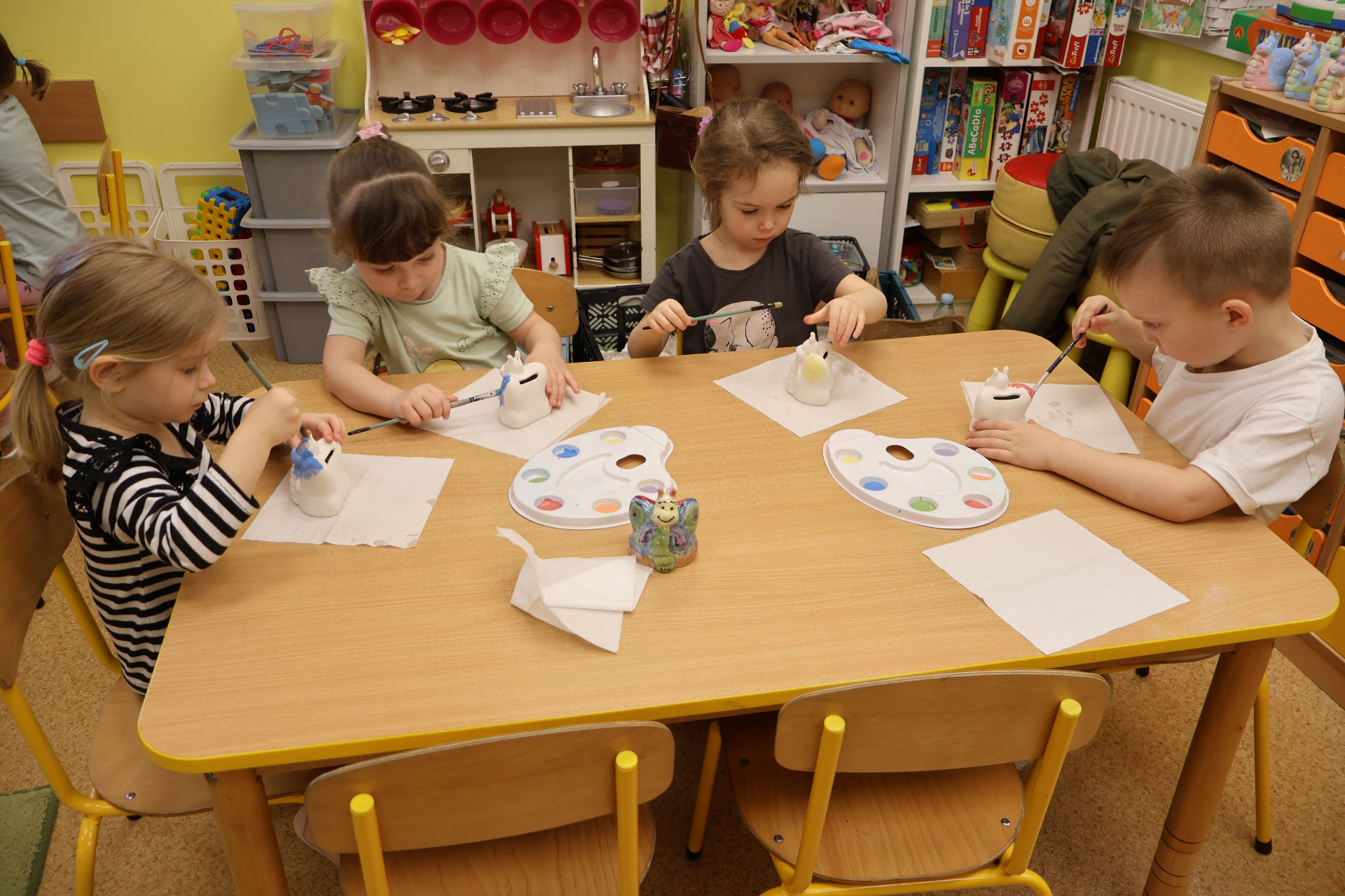 Dzieci z naszego przedszkola miały okazję uczestniczyć w warsztatach ceramicznych. Przedszkolaki dowiedziały się jak powstają wyroby ceramiczne oraz jakie mają właściwości. Następnie każde dziecko mogło pomalować według własnego pomysłu swojego wiosennego motylka.