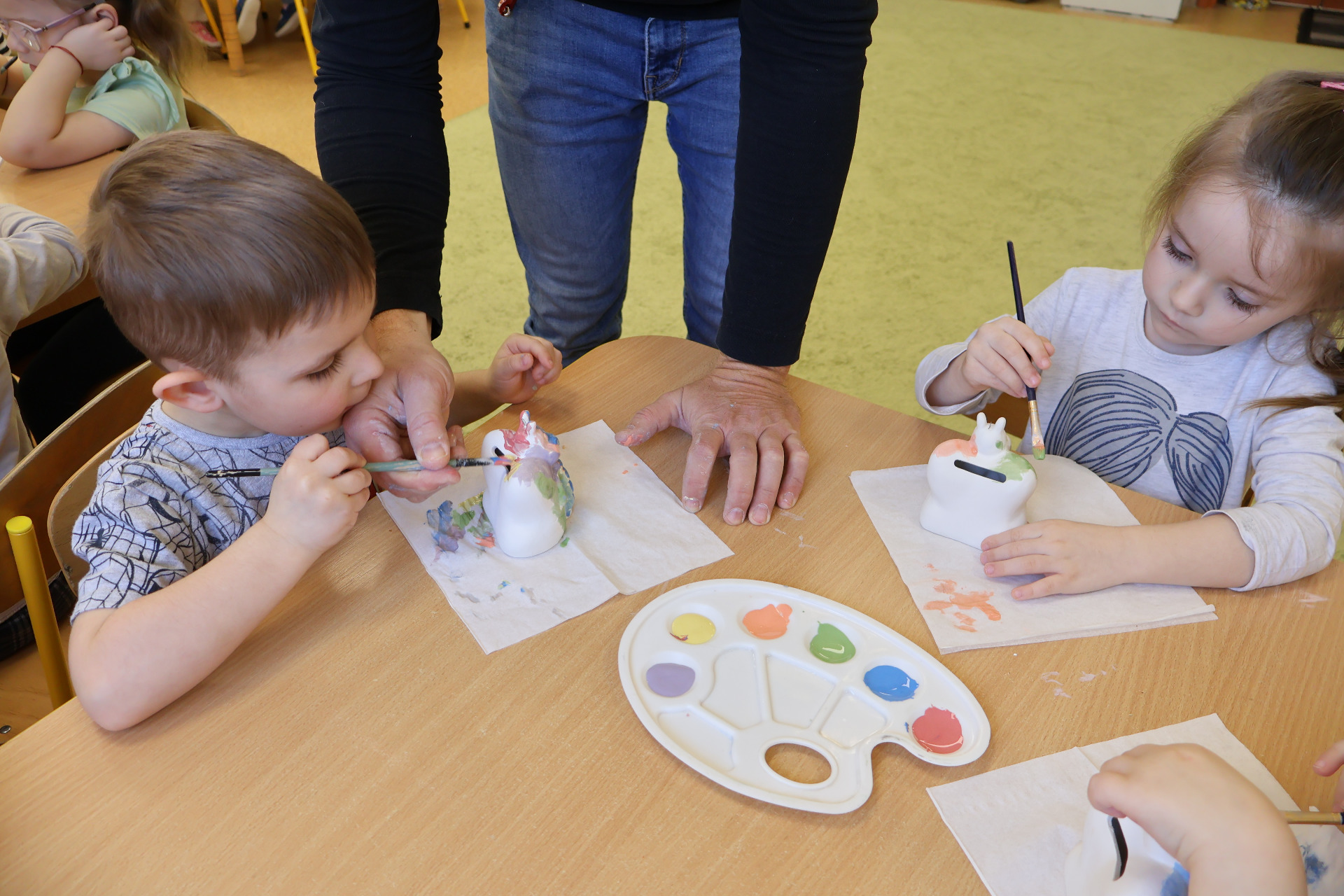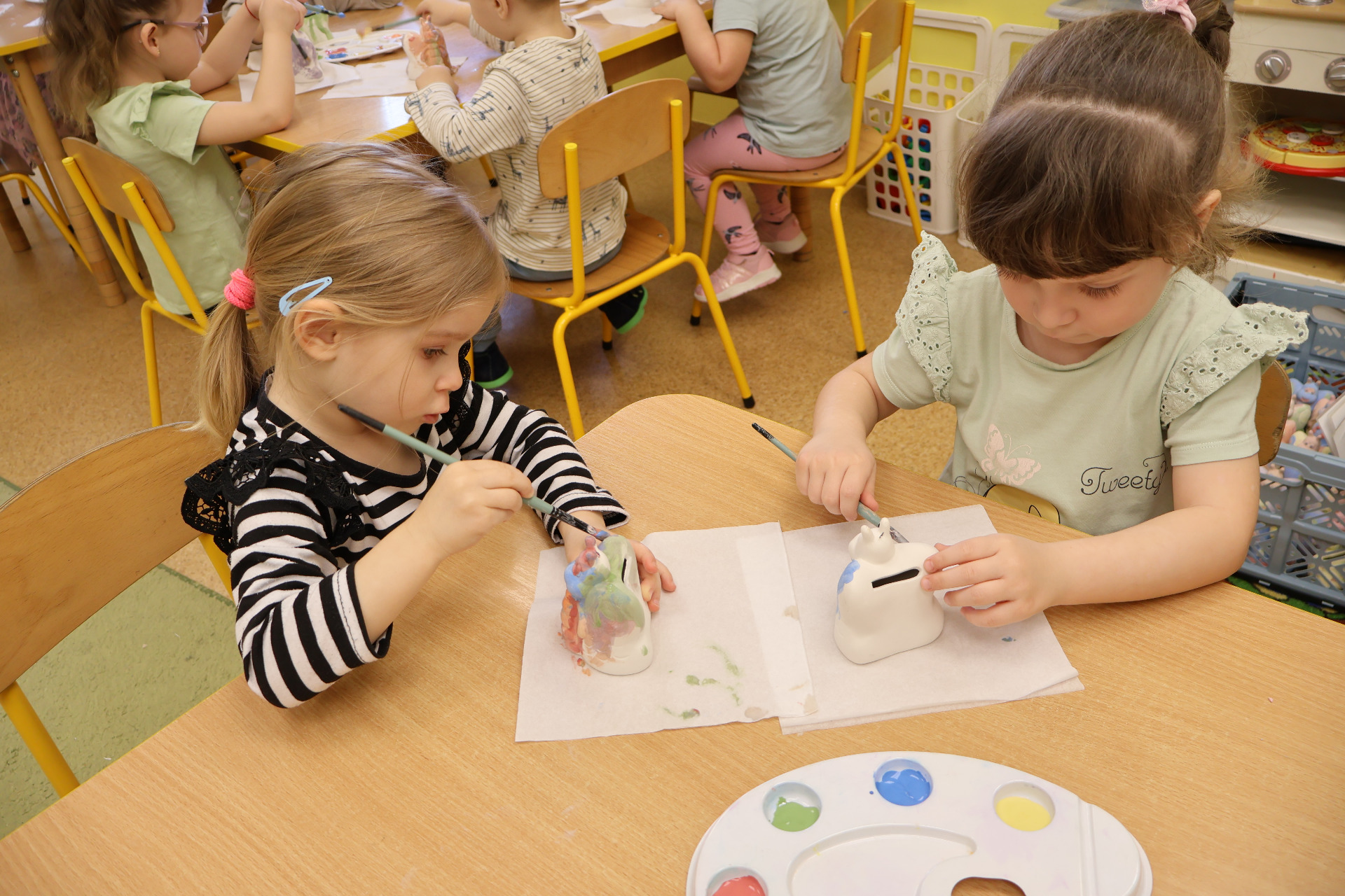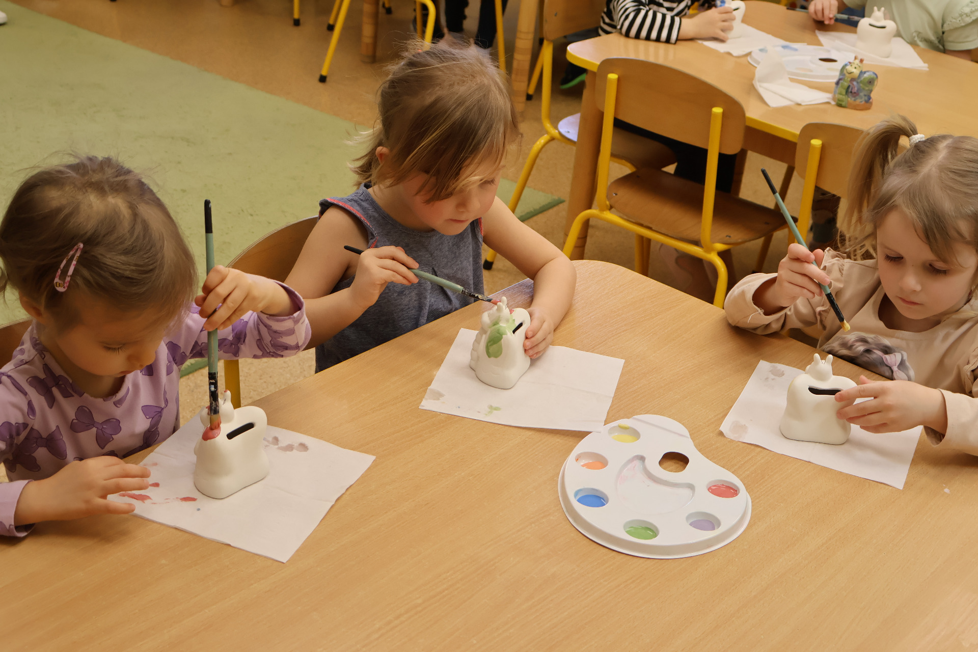 Dzieci z naszego przedszkola miały okazję uczestniczyć w warsztatach ceramicznych. Przedszkolaki dowiedziały się jak powstają wyroby ceramiczne oraz jakie mają właściwości. Następnie każde dziecko mogło pomalować według własnego pomysłu swojego wiosennego motylka.