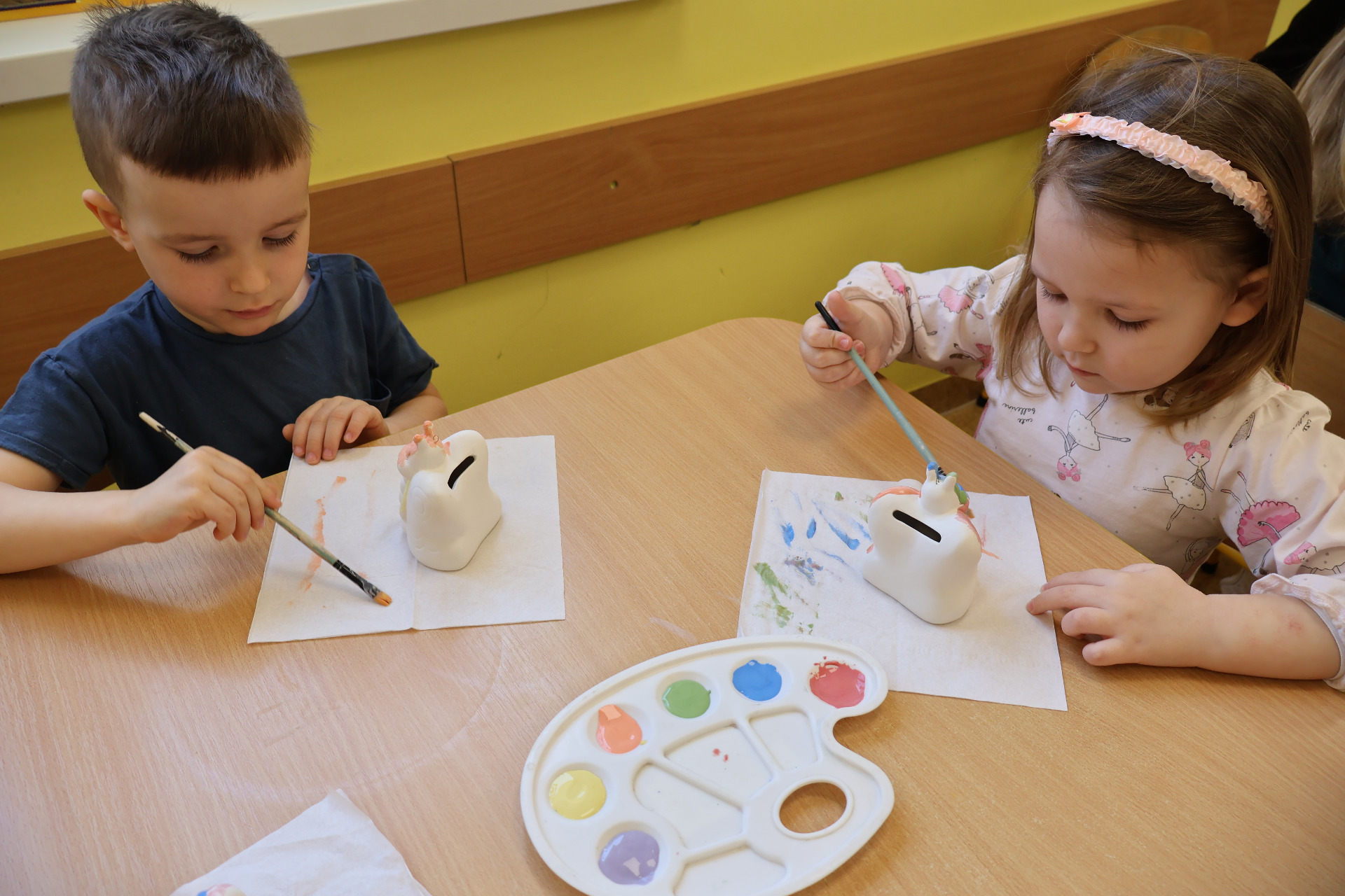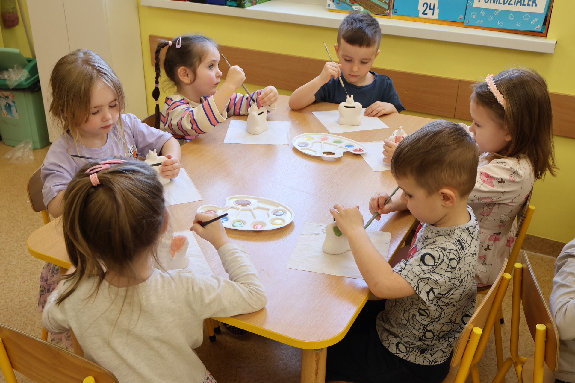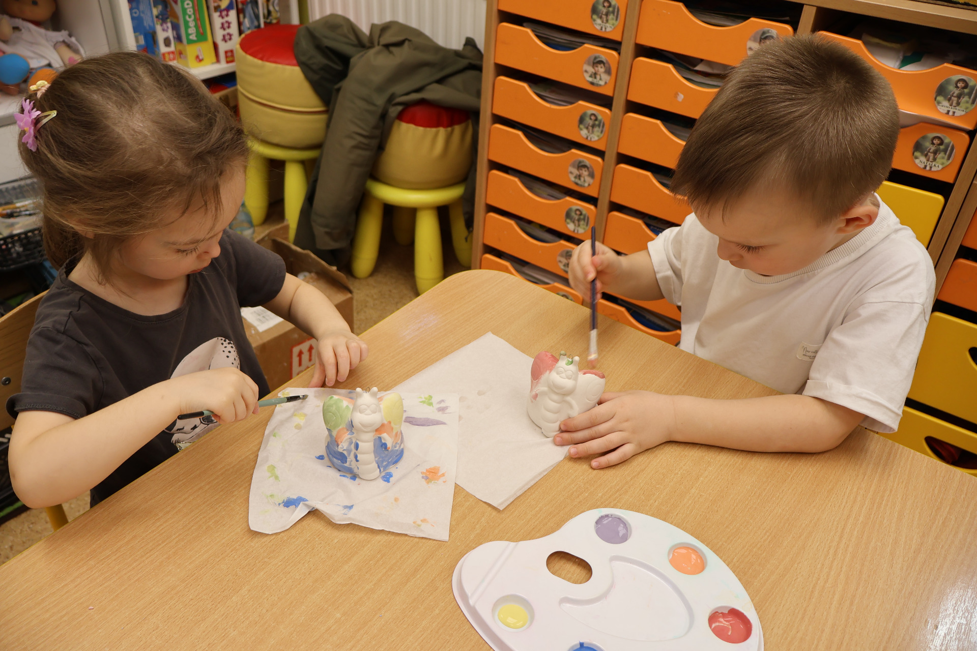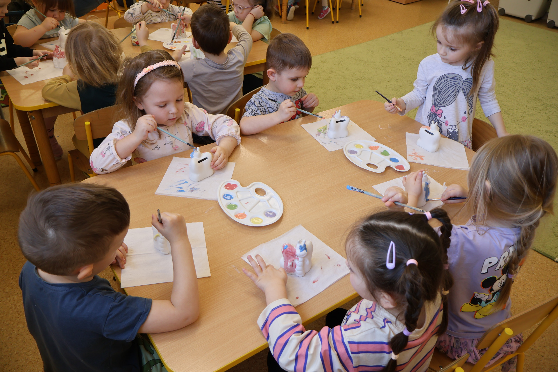 Dzieci z naszego przedszkola miały okazję uczestniczyć w warsztatach ceramicznych. Przedszkolaki dowiedziały się jak powstają wyroby ceramiczne oraz jakie mają właściwości. Następnie każde dziecko mogło pomalować według własnego pomysłu swojego wiosennego motylka.
