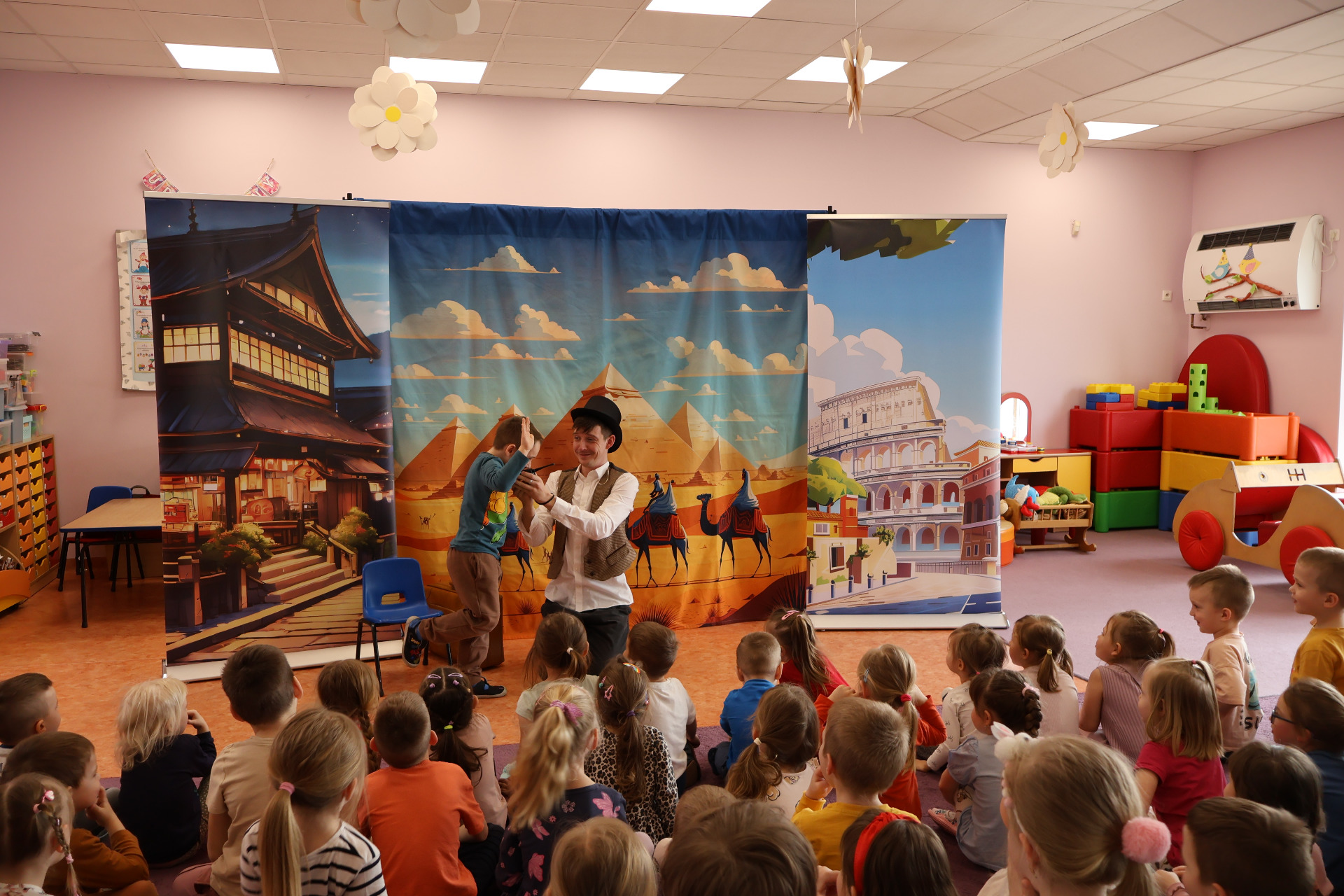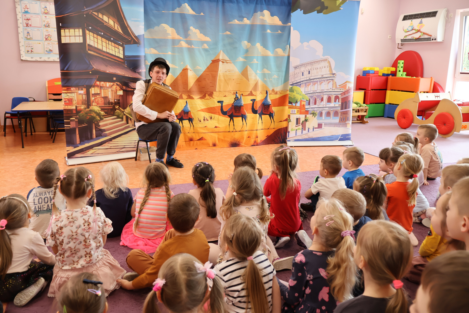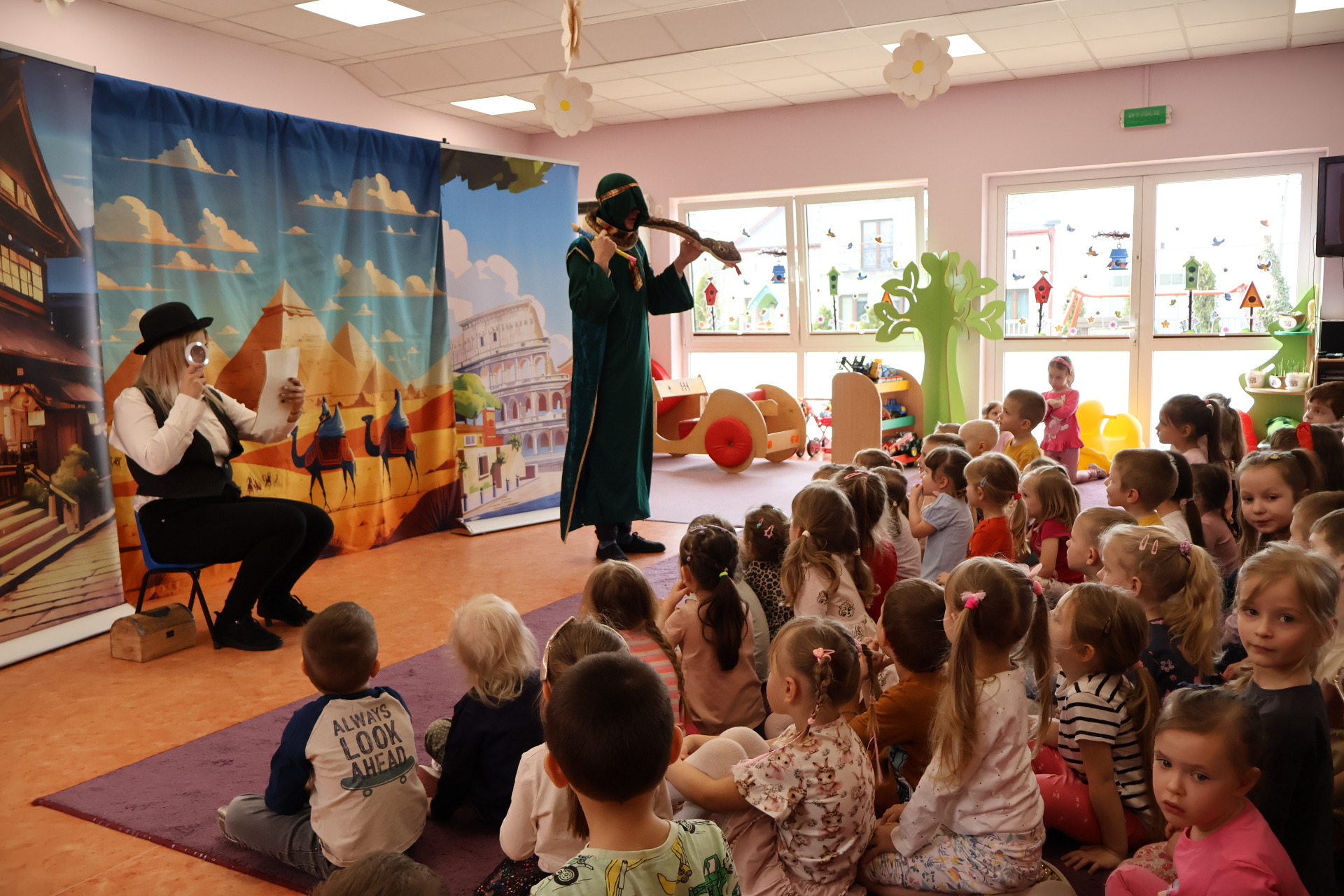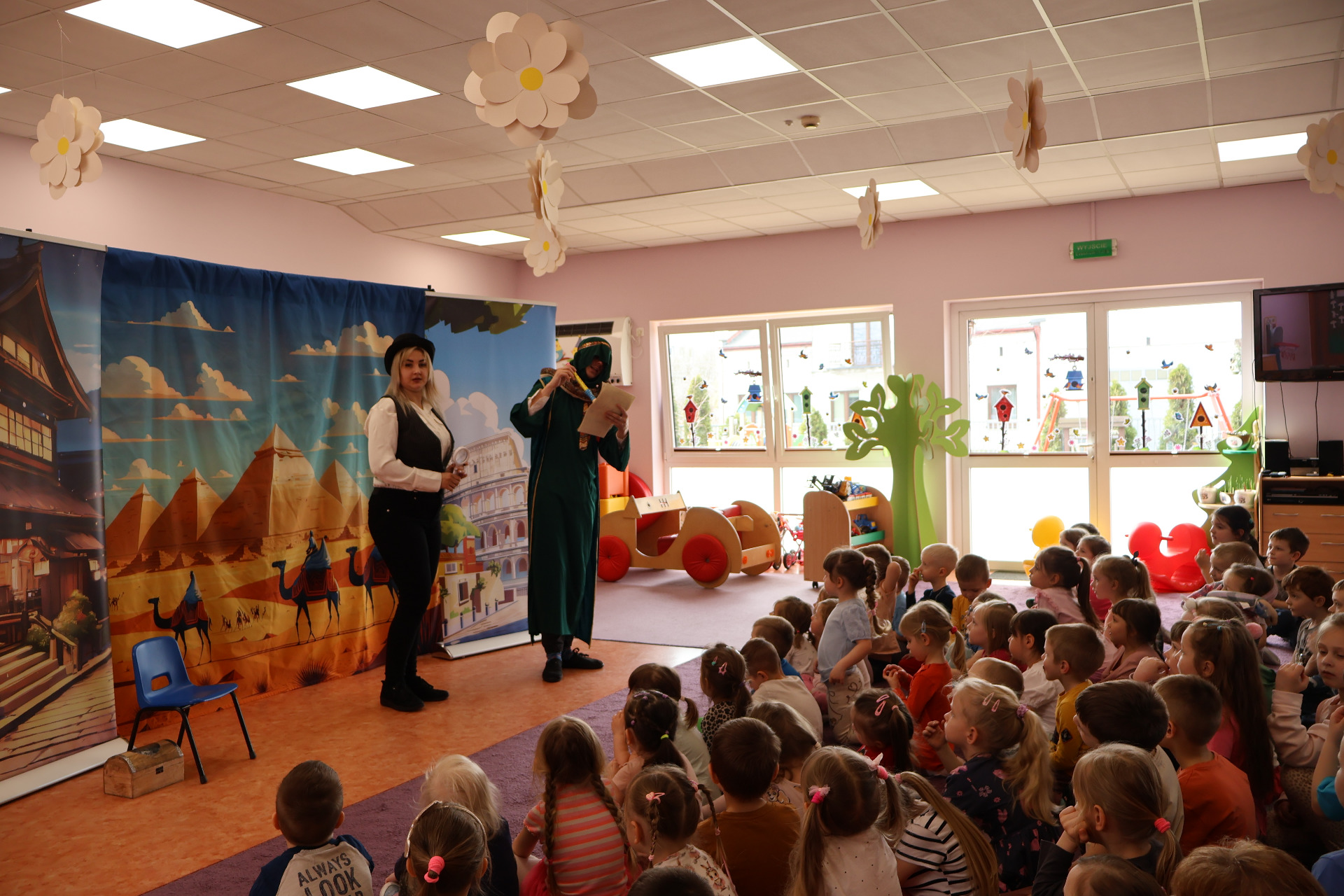 Dnia 26 marca 2025 r. nasze przedszkole odwiedził teatr „Krak-Art” z spektaklem pt. „Detektyw i tajemnica zaginionej walizki”. W trakcie przedstawienia dzieci aktywnie uczestniczyły w odkrywaniu wskazówek, które prowadziły do rozwiązania zagadki. Barwne kostiumy i dynamiczna akcja sprawiły, że spektakl był niezwykle angażujący, a mali widzowie z zainteresowaniem śledzili rozwój wydarzeń. Przedstawienie nie tylko bawiło, ale również uczyło współpracy i logicznego myślenia. To spotkanie na pewno na długo zostanie w pamięci wszystkich uczestników.