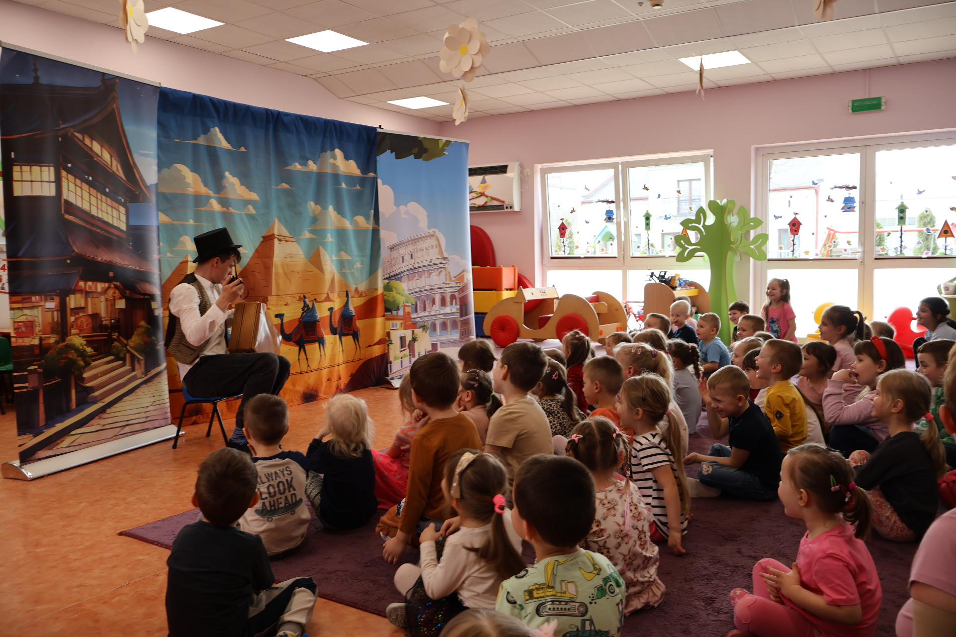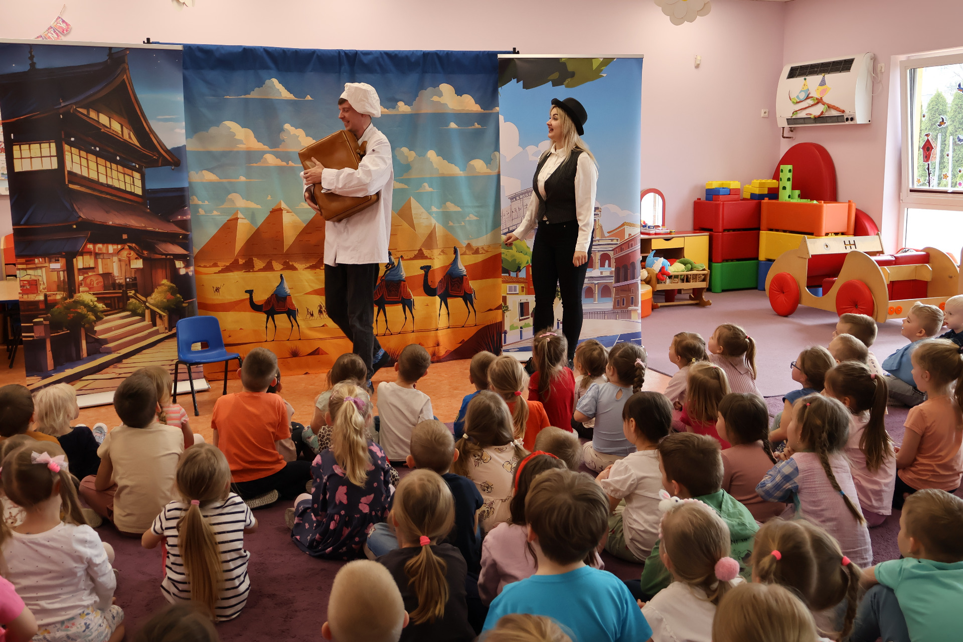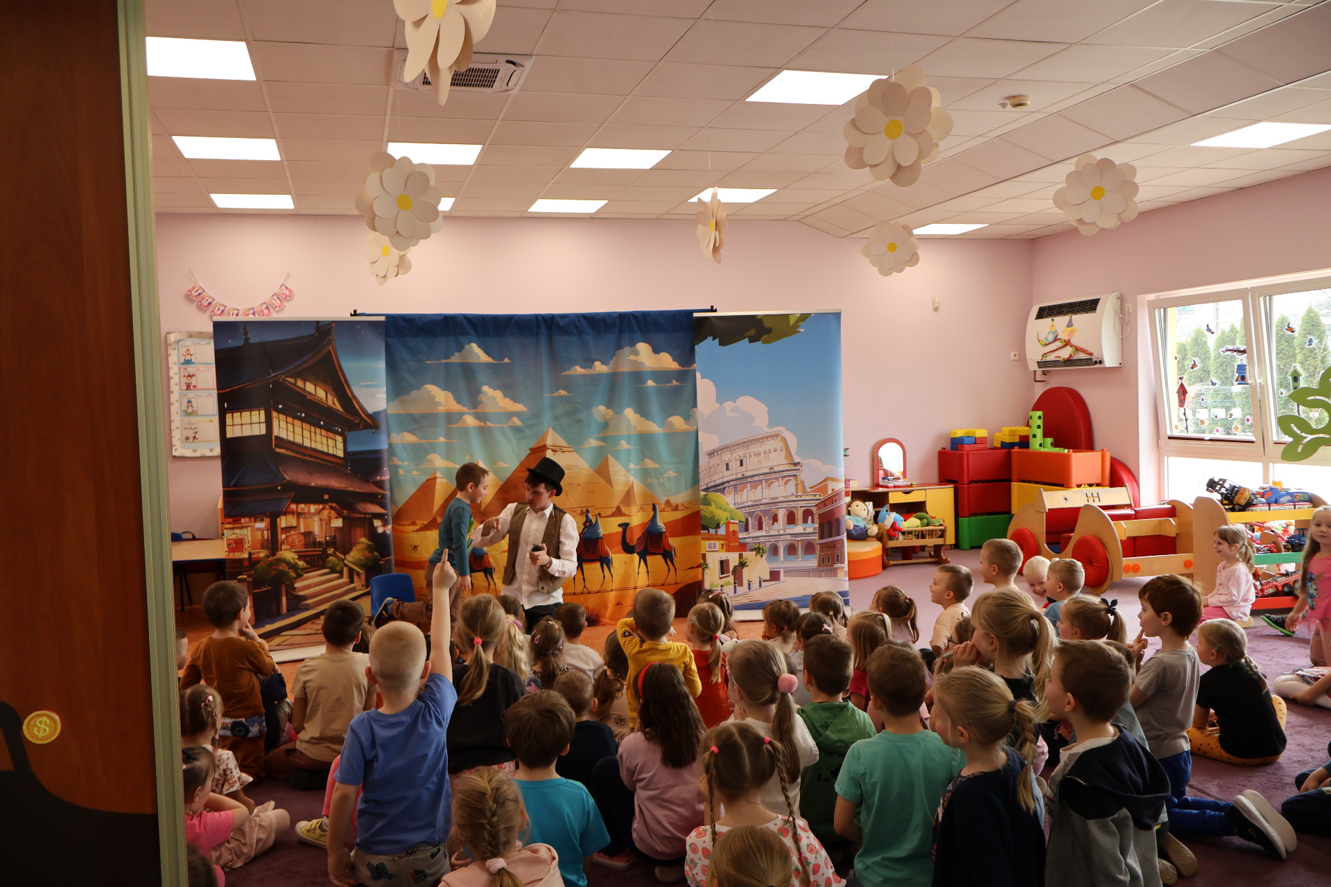 Dnia 26 marca 2025 r. nasze przedszkole odwiedził teatr „Krak-Art” z spektaklem pt. „Detektyw i tajemnica zaginionej walizki”. W trakcie przedstawienia dzieci aktywnie uczestniczyły w odkrywaniu wskazówek, które prowadziły do rozwiązania zagadki. Barwne kostiumy i dynamiczna akcja sprawiły, że spektakl był niezwykle angażujący, a mali widzowie z zainteresowaniem śledzili rozwój wydarzeń. Przedstawienie nie tylko bawiło, ale również uczyło współpracy i logicznego myślenia. To spotkanie na pewno na długo zostanie w pamięci wszystkich uczestników.