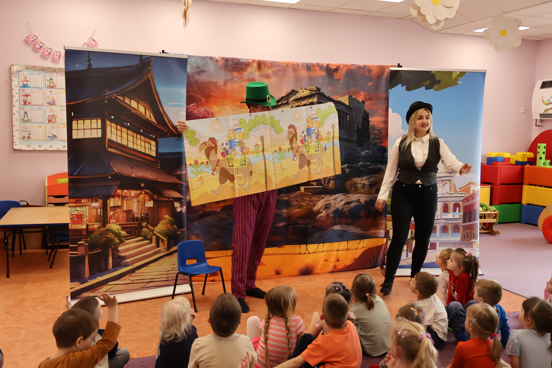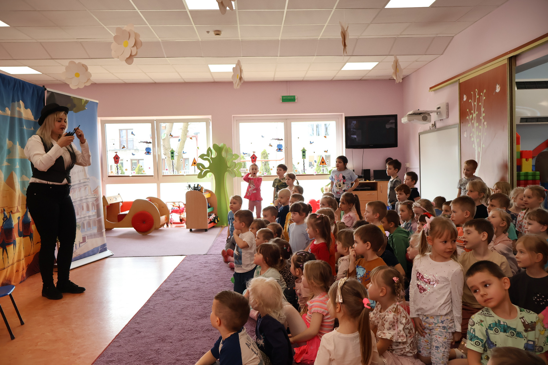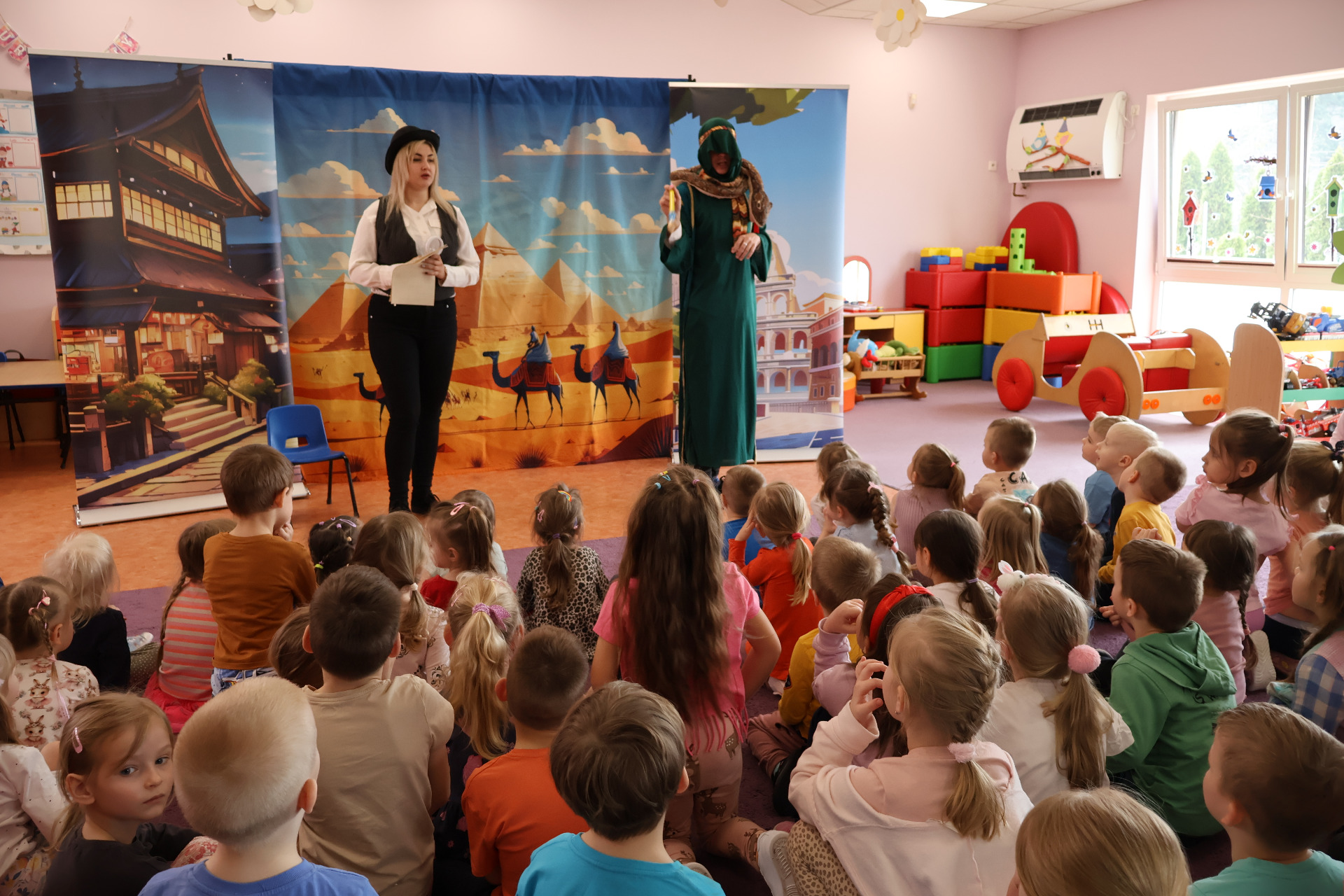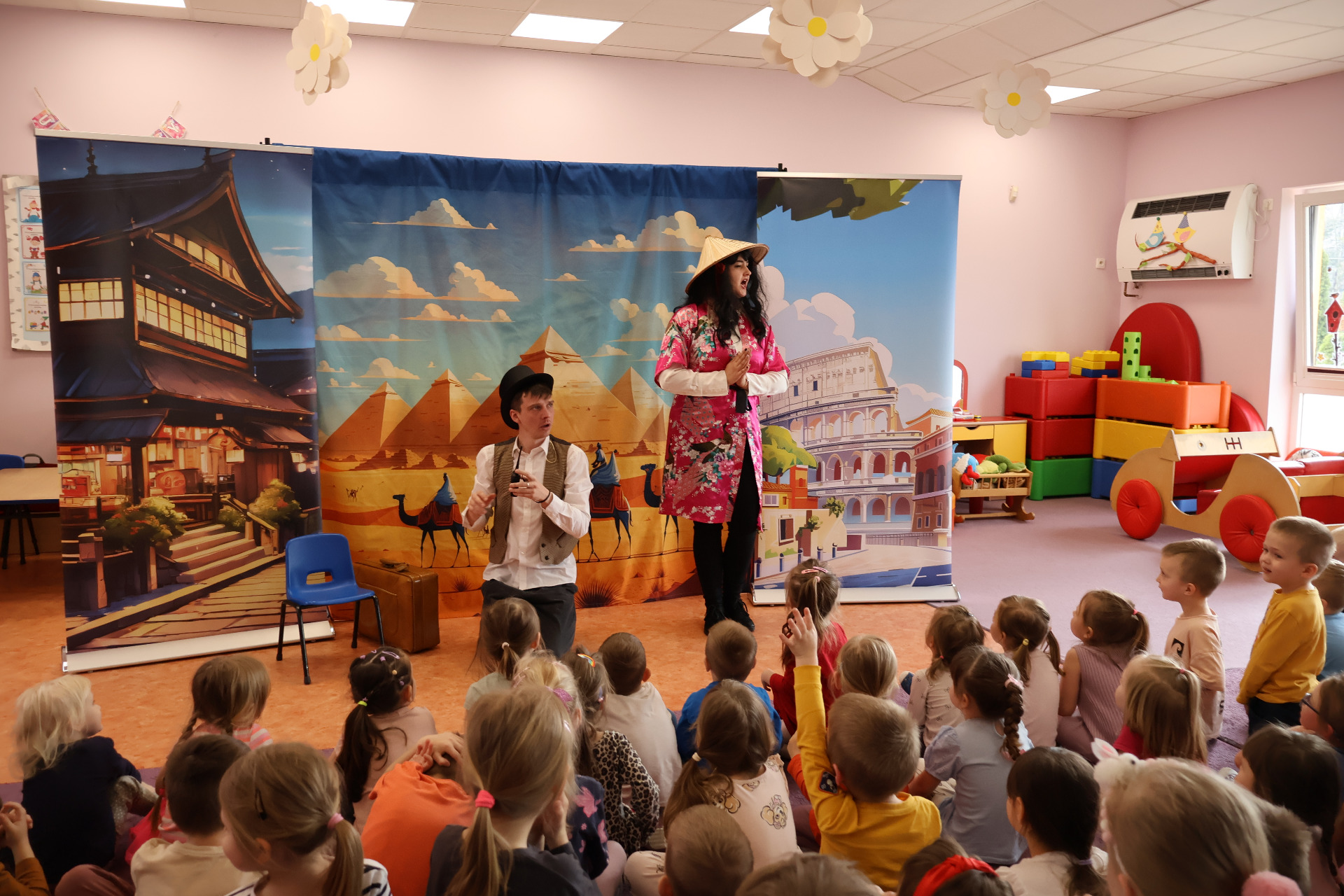 Dnia 26 marca 2025 r. nasze przedszkole odwiedził teatr „Krak-Art” z spektaklem pt. „Detektyw i tajemnica zaginionej walizki”. W trakcie przedstawienia dzieci aktywnie uczestniczyły w odkrywaniu wskazówek, które prowadziły do rozwiązania zagadki. Barwne kostiumy i dynamiczna akcja sprawiły, że spektakl był niezwykle angażujący, a mali widzowie z zainteresowaniem śledzili rozwój wydarzeń. Przedstawienie nie tylko bawiło, ale również uczyło współpracy i logicznego myślenia. To spotkanie na pewno na długo zostanie w pamięci wszystkich uczestników.
