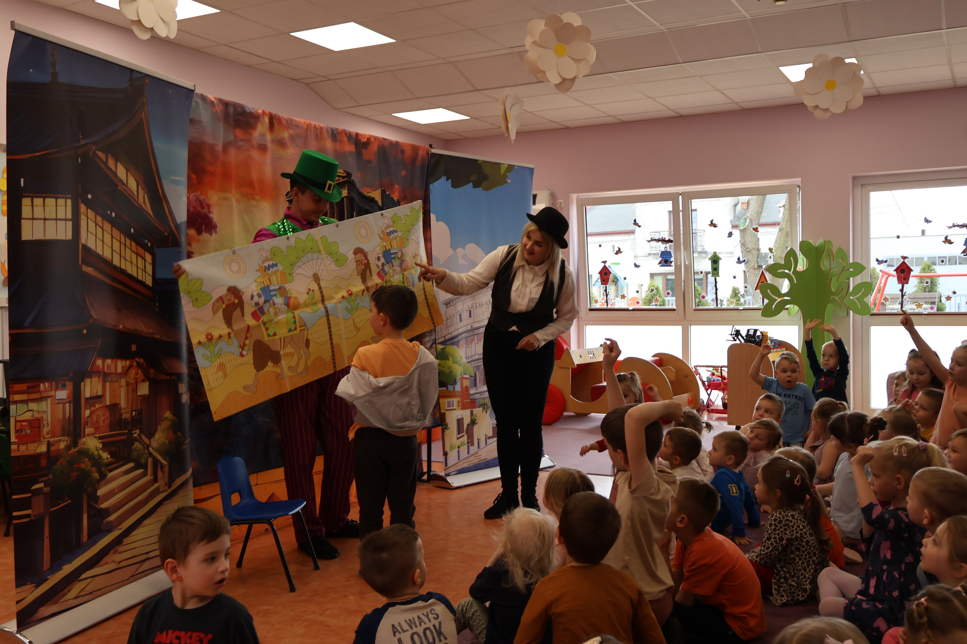 Dnia 26 marca 2025 r. nasze przedszkole odwiedził teatr „Krak-Art” z spektaklem pt. „Detektyw i tajemnica zaginionej walizki”. W trakcie przedstawienia dzieci aktywnie uczestniczyły w odkrywaniu wskazówek, które prowadziły do rozwiązania zagadki. Barwne kostiumy i dynamiczna akcja sprawiły, że spektakl był niezwykle angażujący, a mali widzowie z zainteresowaniem śledzili rozwój wydarzeń. Przedstawienie nie tylko bawiło, ale również uczyło współpracy i logicznego myślenia. To spotkanie na pewno na długo zostanie w pamięci wszystkich uczestników.