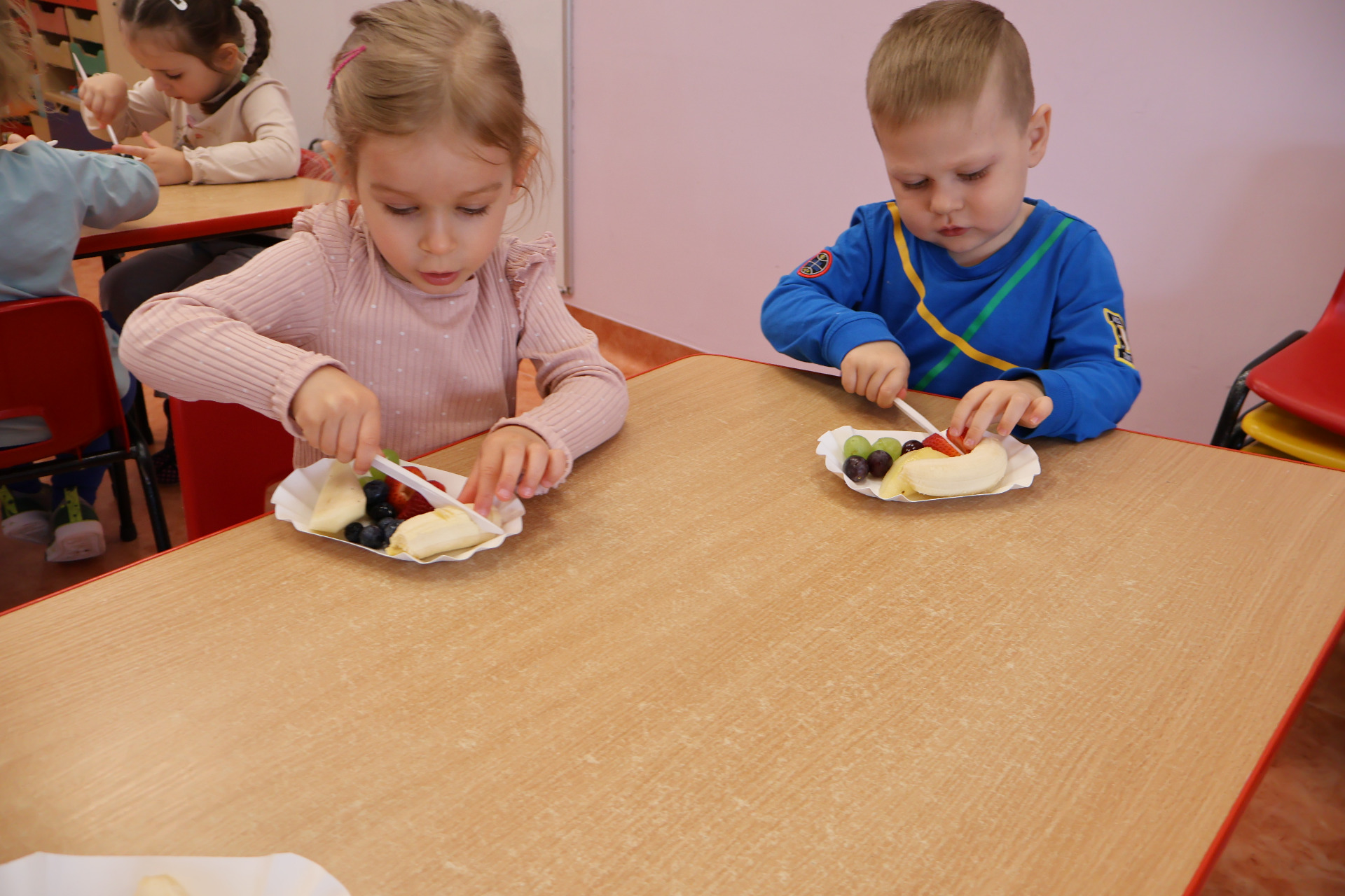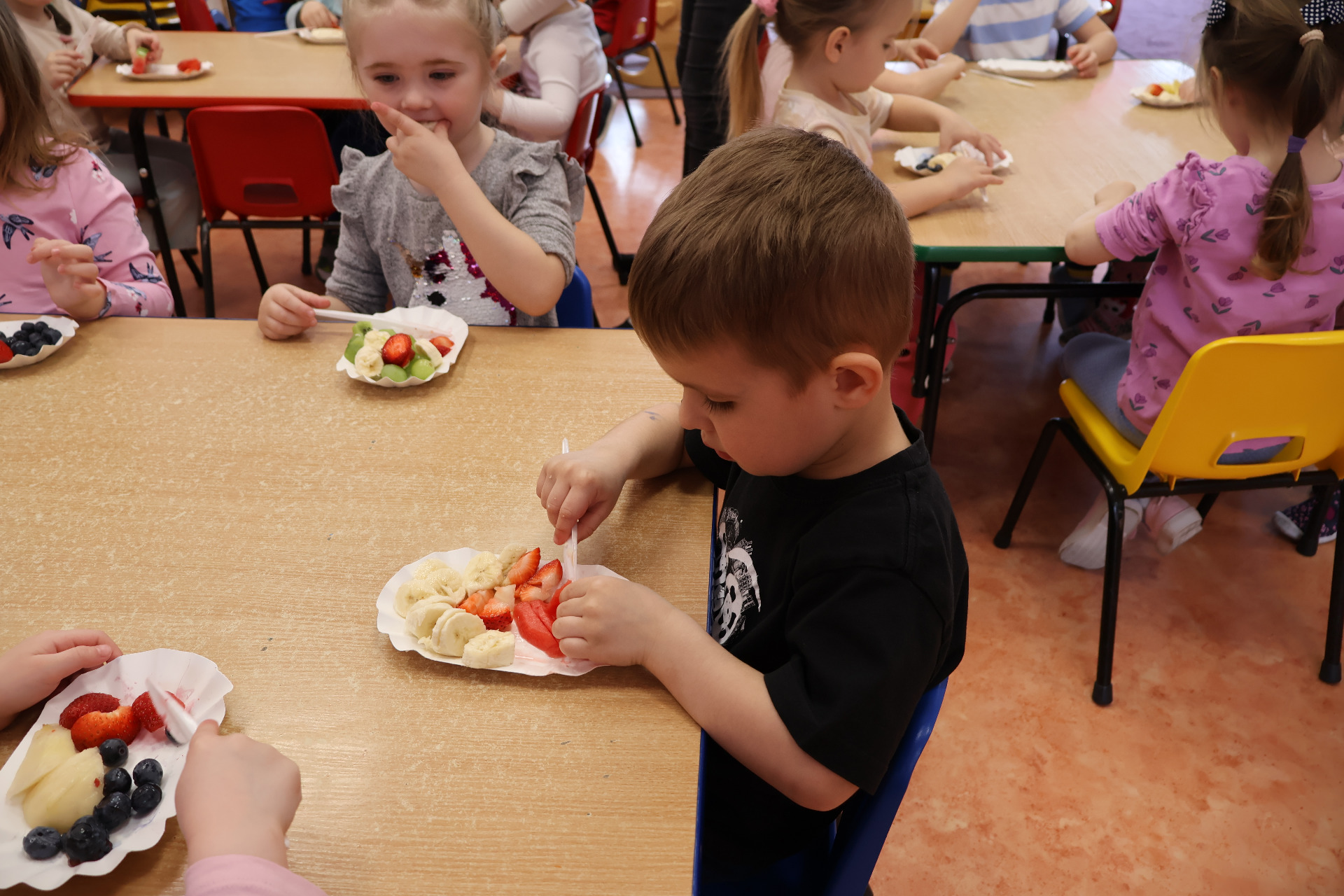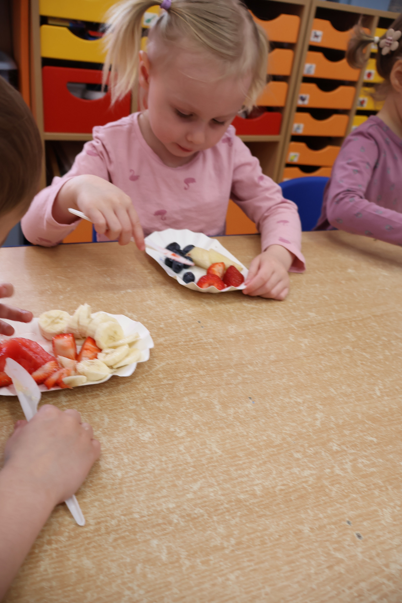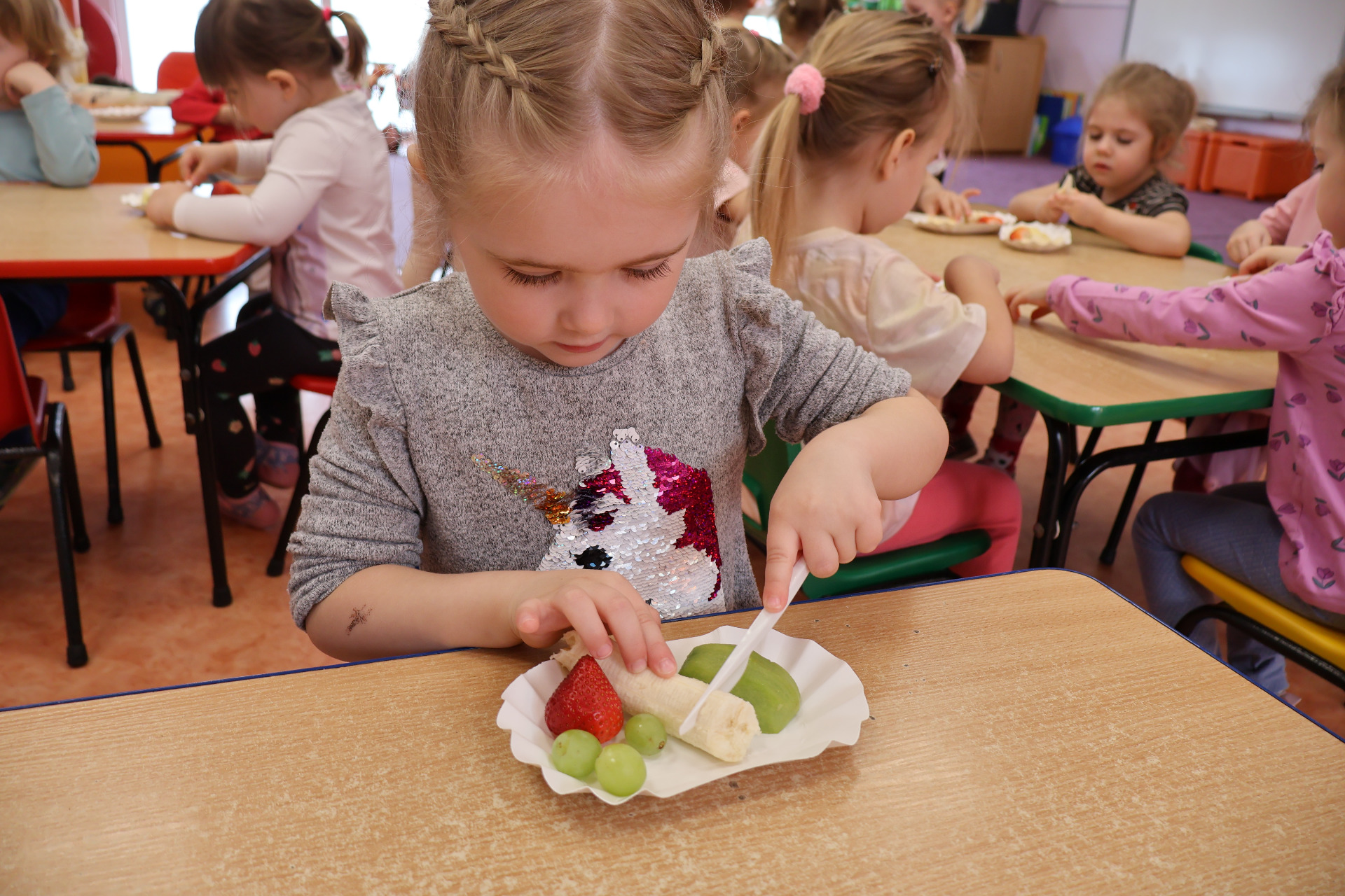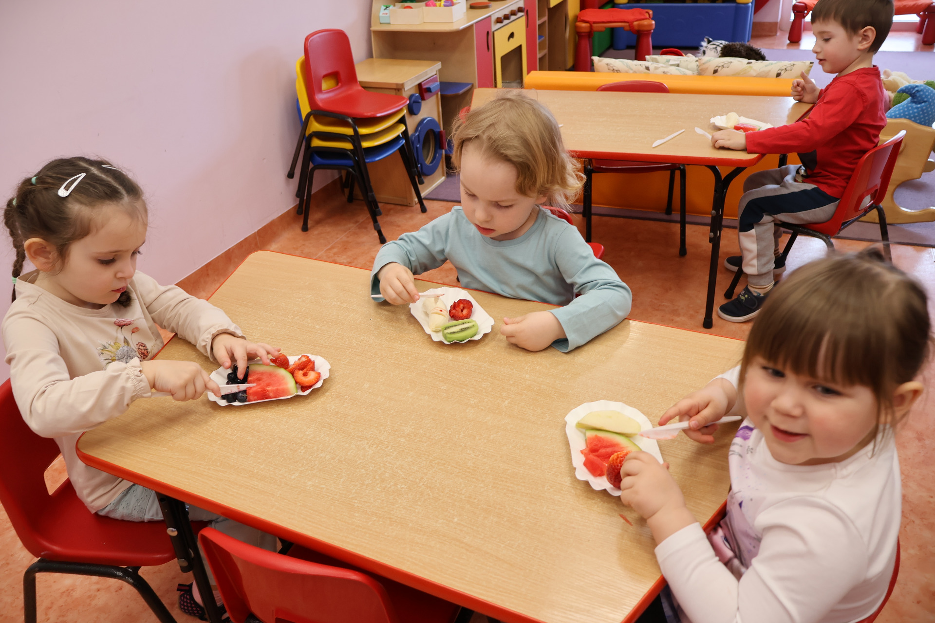 Nasze kochane przedszkolaki przez ostatni czas zdobywały wiedzę o zdrowym odżywianiu, witaminach oraz o tym jak dbać o swoje zdrowie. Podczas zajęć poznały piramidę zdrowia, dowiedziały się jak powinien wyglądać "zdrowy talerz" a także uczestniczyły w wielu zabawach związanych z tematyką zdrowia. Na koniec wykonały smaczną sałatkę owocową oraz pyszny sok.