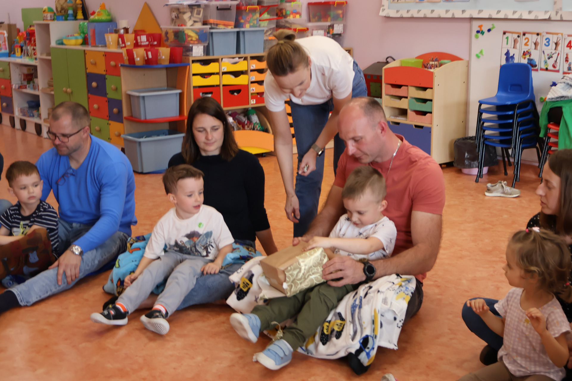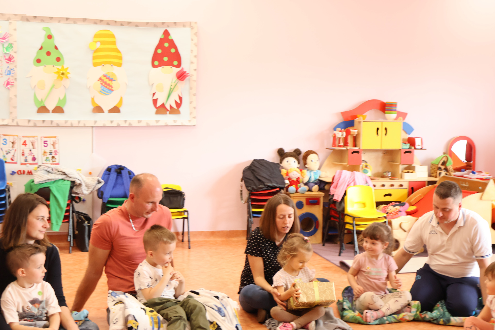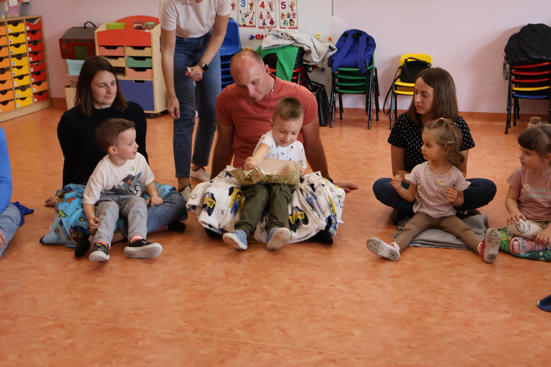 W czwartek 24.04.2025r., w grupie "Krasnali " odbyło się zajęcie otwarte z udziałem rodziców. Zajęcia otwarte stanowią wspaniałą okazję do integracji wszystkich rodziców dzieci z tej samej grupy przedszkolnej, a także wzmacniania więzi pomiędzy dzieckiem, a rodzicem. Dzieci od samego rana z wielką niecierpliwością oczekiwały wizyty bliskich. W czasie zajęć wspólnie z rodzicami/rodzeństwem uczestniczyły w różnego rodzaju zabawach ruchowych. Zabawy i radości było mnóstwo, a najszczęśliwsze tego dnia były dzieci, które mogły z rodzicami i innymi bliskimi przyjemnie spędzić czas w przedszkolu.
