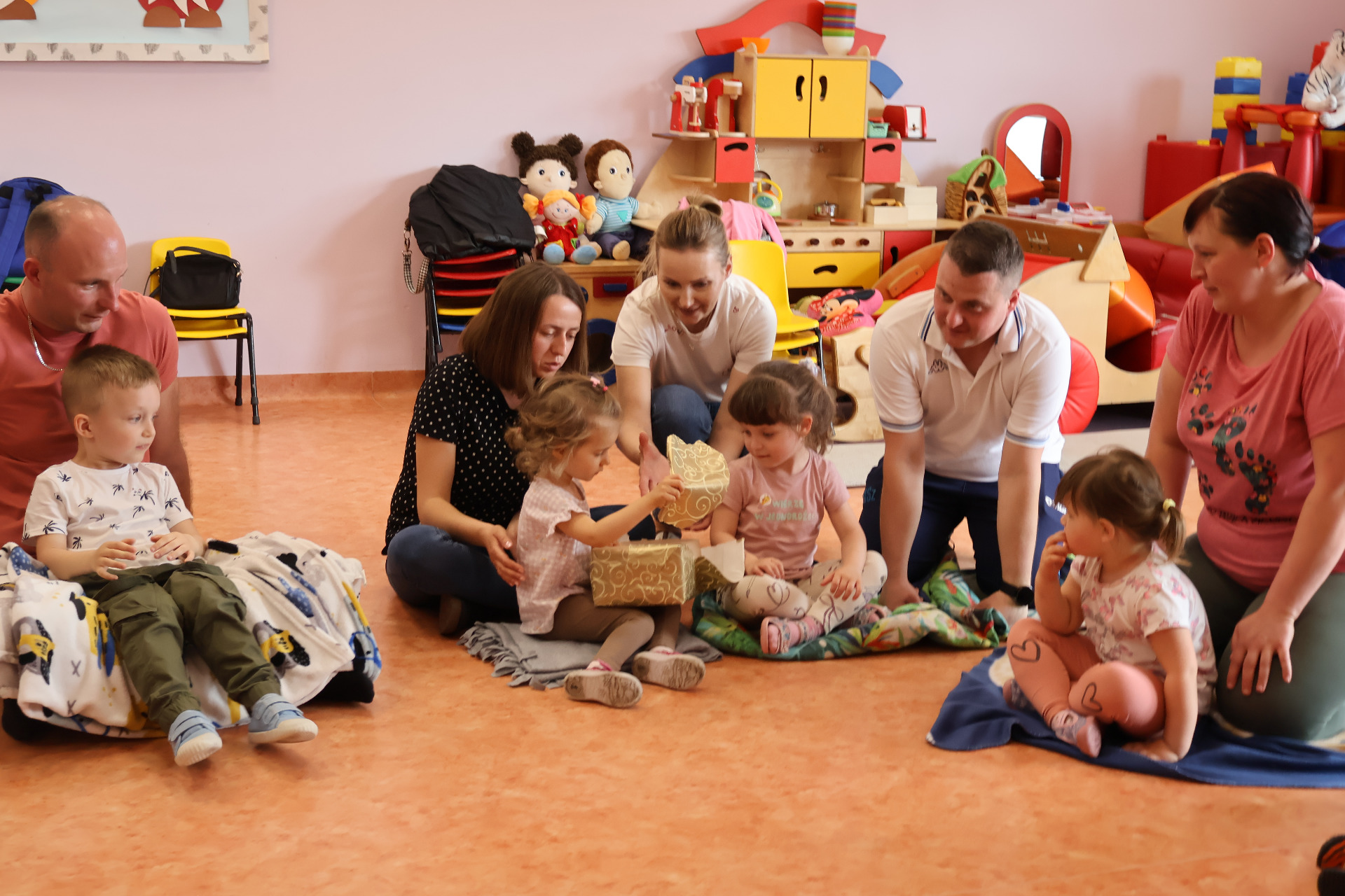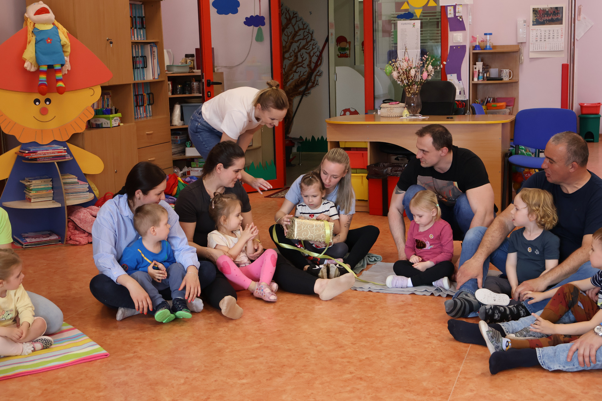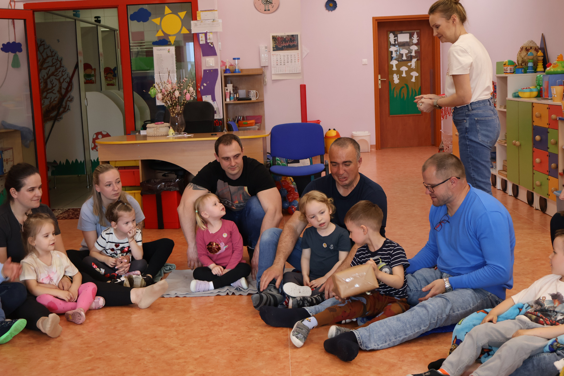 W czwartek 24.04.2025r., w grupie "Krasnali " odbyło się zajęcie otwarte z udziałem rodziców. Zajęcia otwarte stanowią wspaniałą okazję do integracji wszystkich rodziców dzieci z tej samej grupy przedszkolnej, a także wzmacniania więzi pomiędzy dzieckiem, a rodzicem. Dzieci od samego rana z wielką niecierpliwością oczekiwały wizyty bliskich. W czasie zajęć wspólnie z rodzicami/rodzeństwem uczestniczyły w różnego rodzaju zabawach ruchowych. Zabawy i radości było mnóstwo, a najszczęśliwsze tego dnia były dzieci, które mogły z rodzicami i innymi bliskimi przyjemnie spędzić czas w przedszkolu.