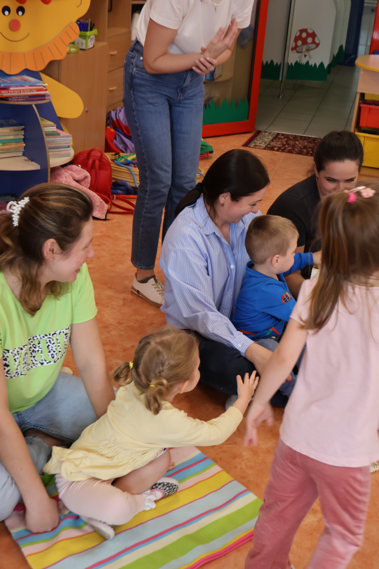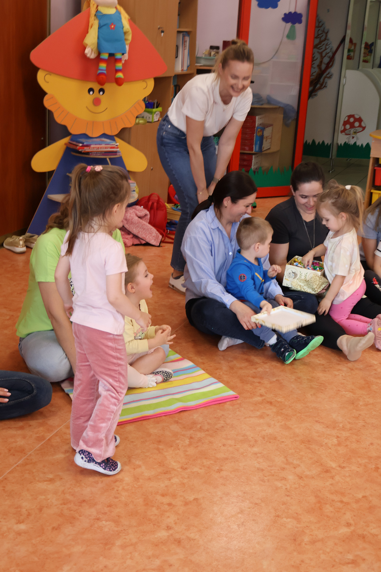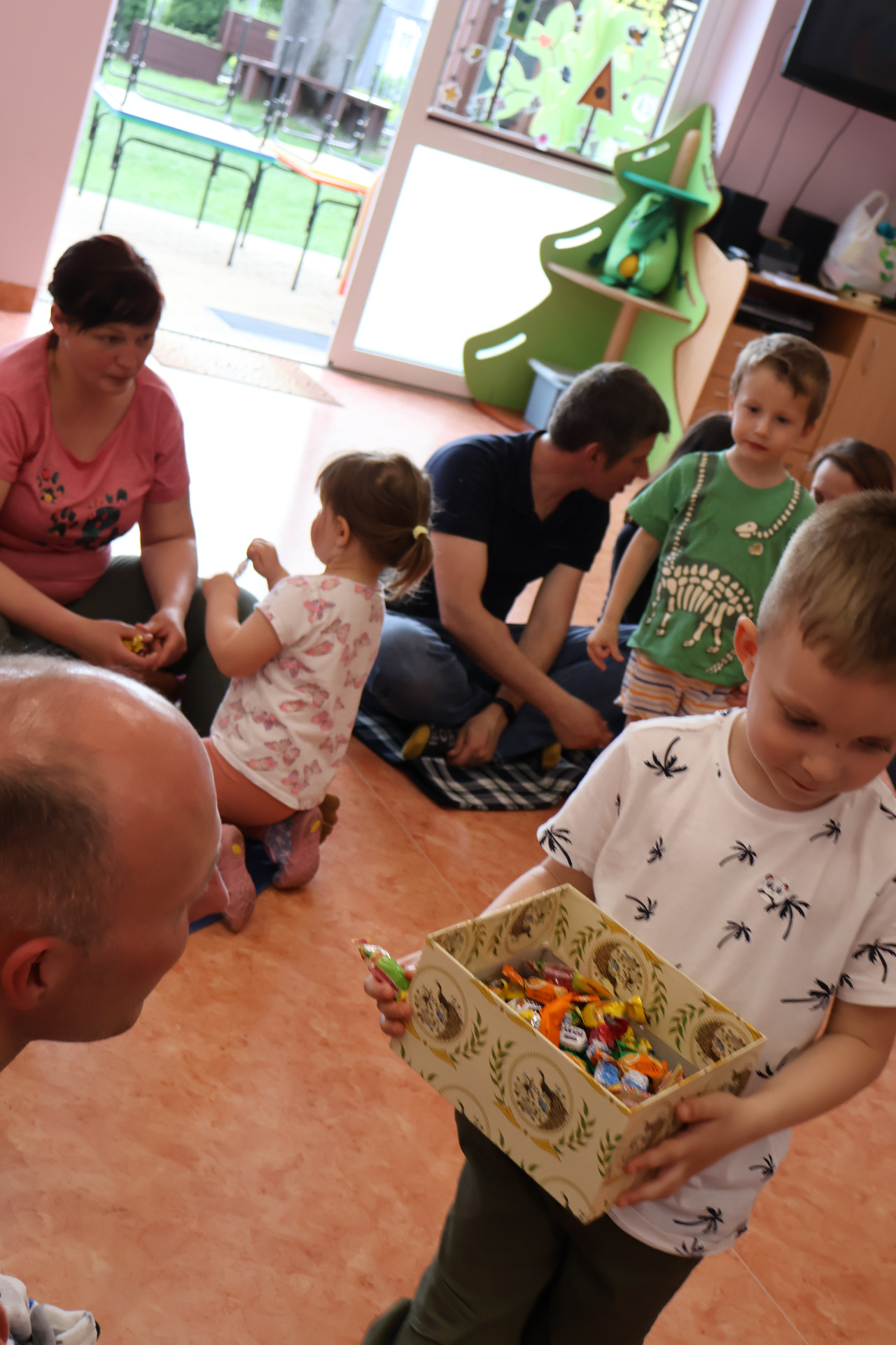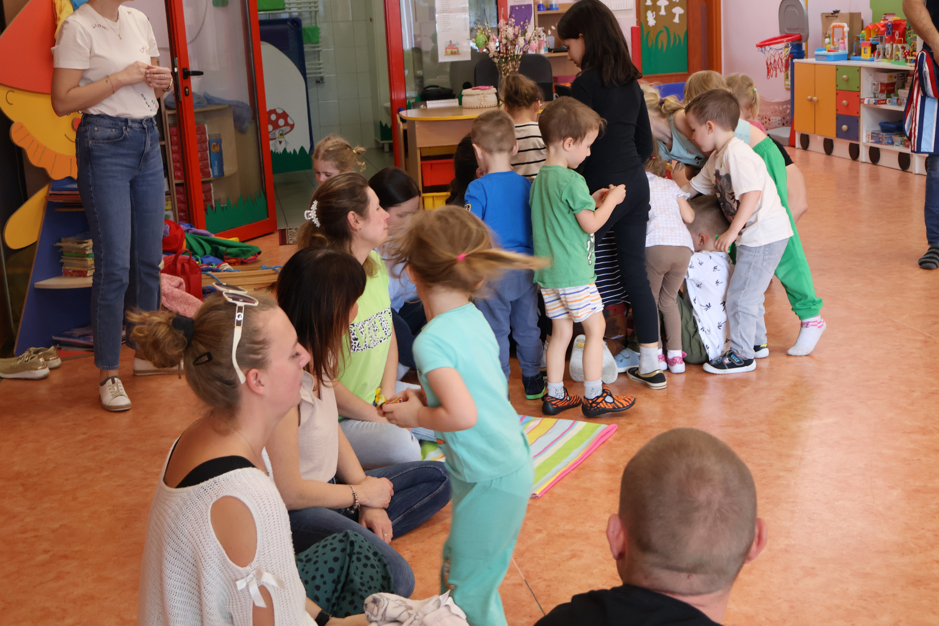 W czwartek 24.04.2025r., w grupie "Krasnali " odbyło się zajęcie otwarte z udziałem rodziców. Zajęcia otwarte stanowią wspaniałą okazję do integracji wszystkich rodziców dzieci z tej samej grupy przedszkolnej, a także wzmacniania więzi pomiędzy dzieckiem, a rodzicem. Dzieci od samego rana z wielką niecierpliwością oczekiwały wizyty bliskich. W czasie zajęć wspólnie z rodzicami/rodzeństwem uczestniczyły w różnego rodzaju zabawach ruchowych. Zabawy i radości było mnóstwo, a najszczęśliwsze tego dnia były dzieci, które mogły z rodzicami i innymi bliskimi przyjemnie spędzić czas w przedszkolu.