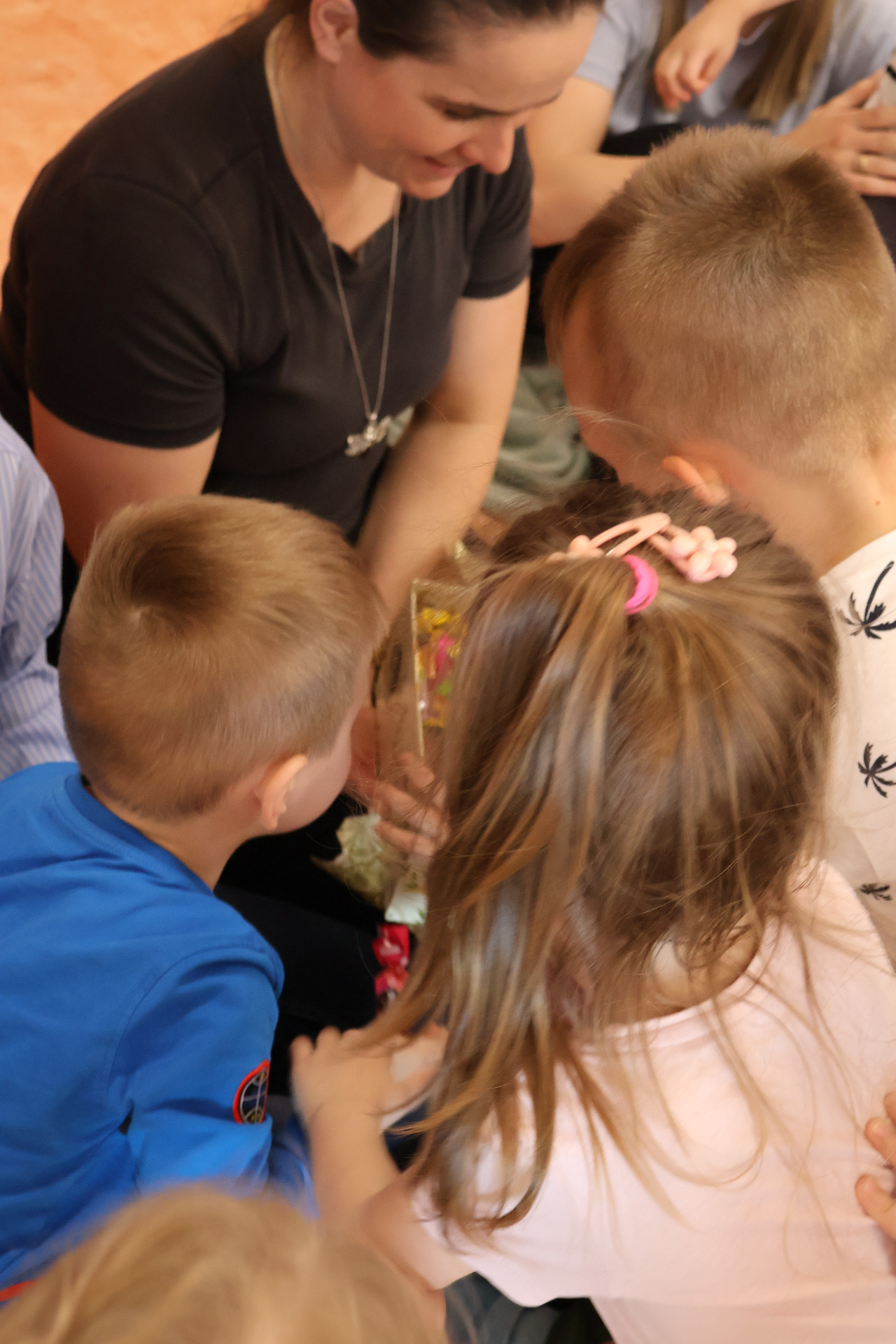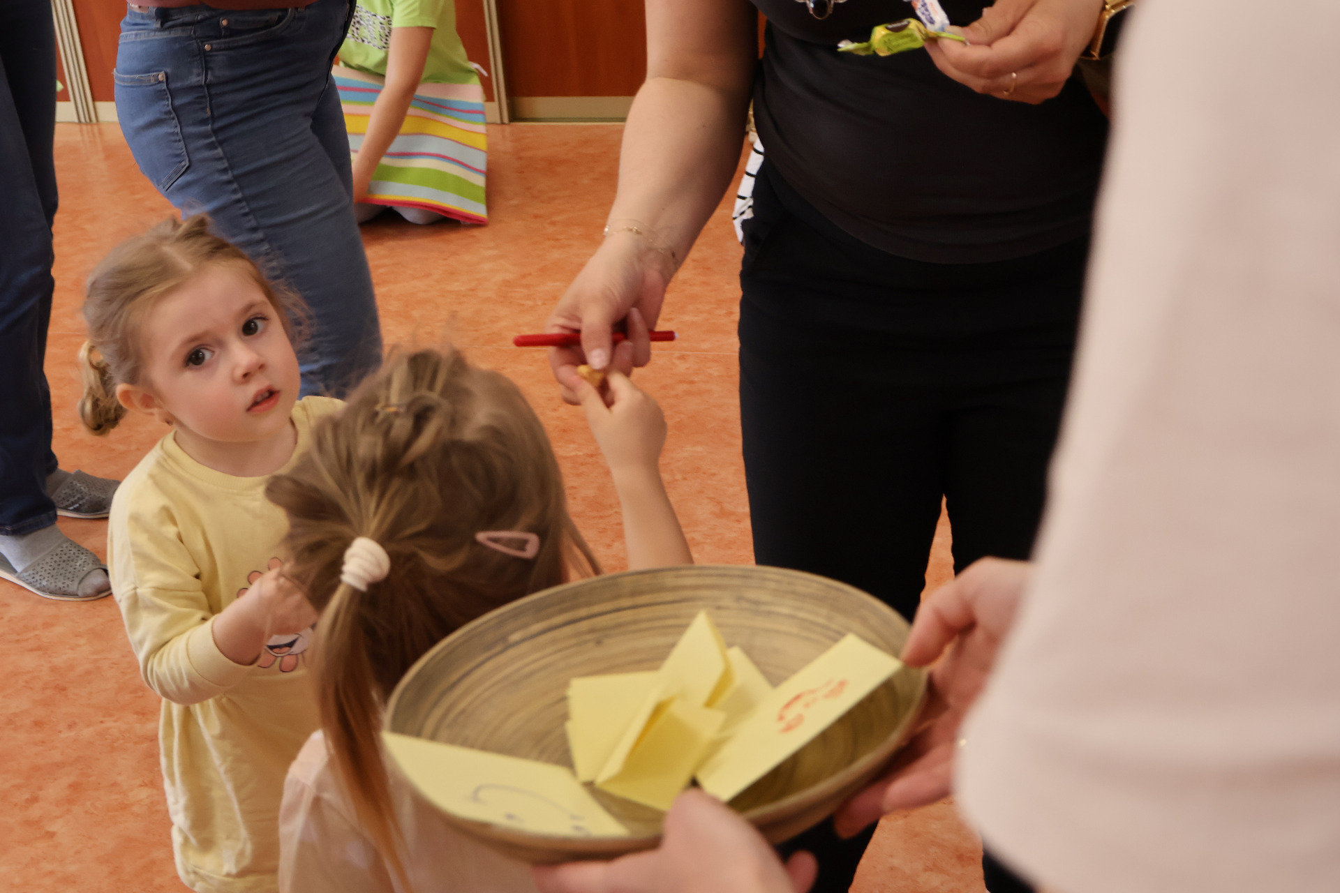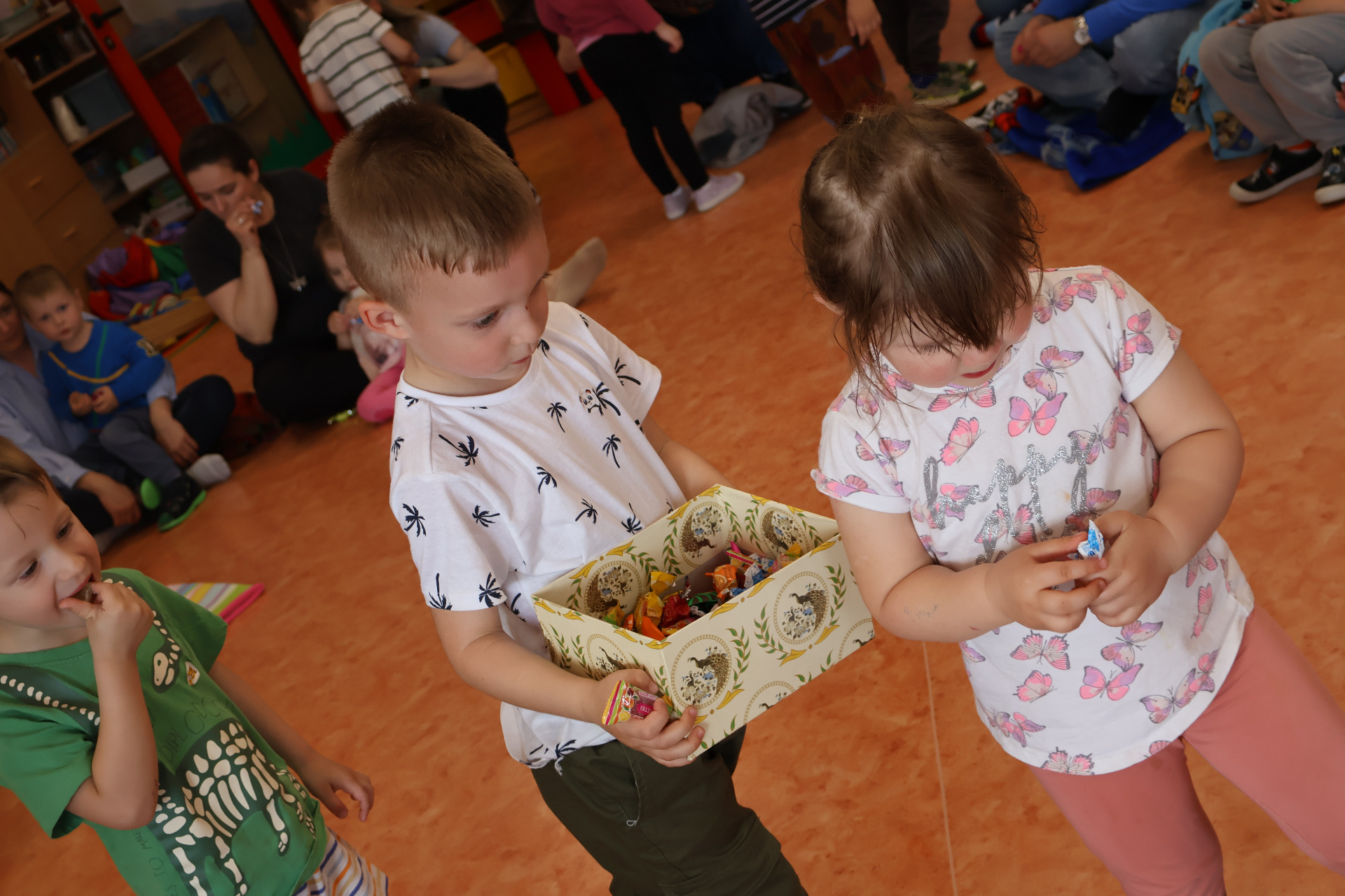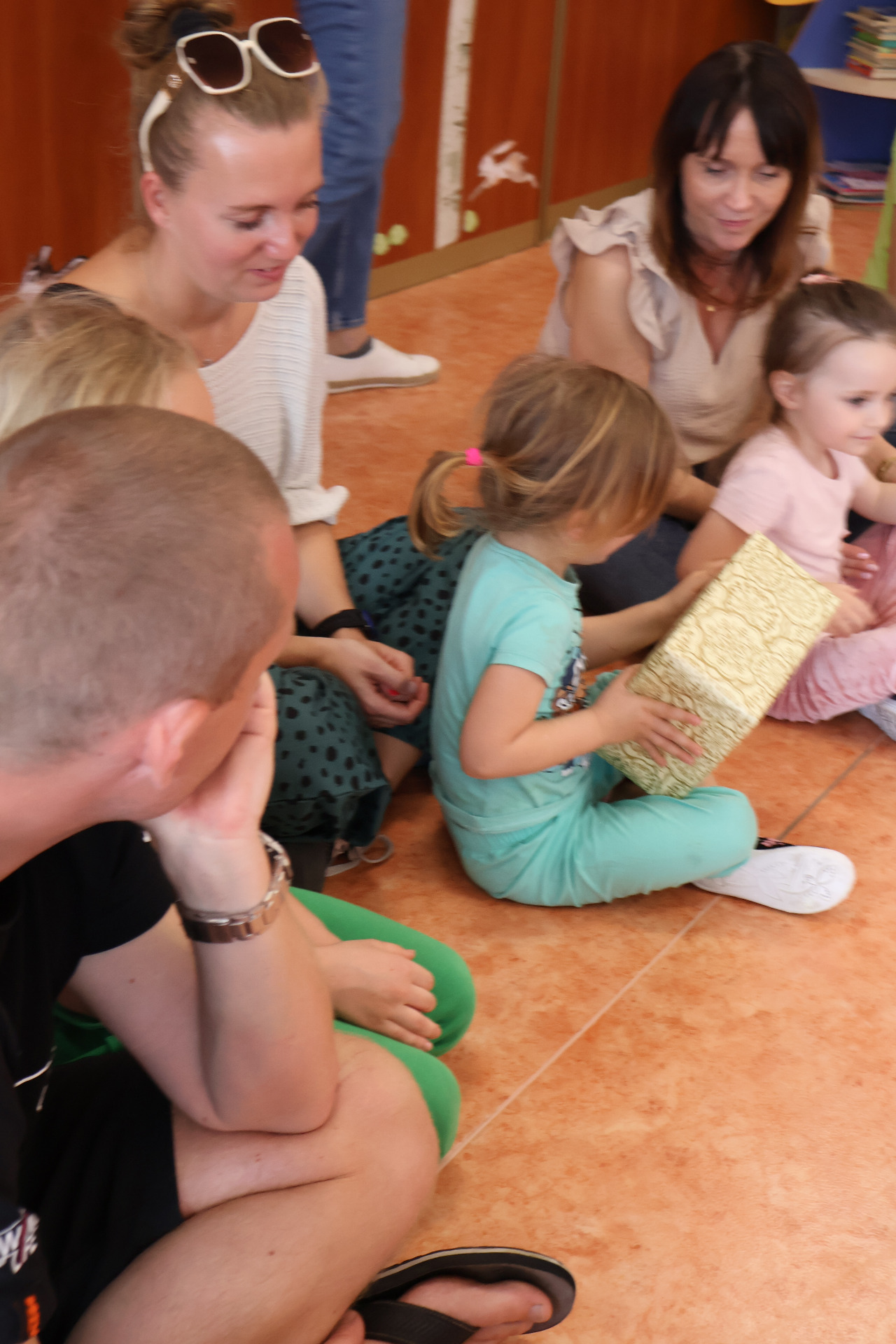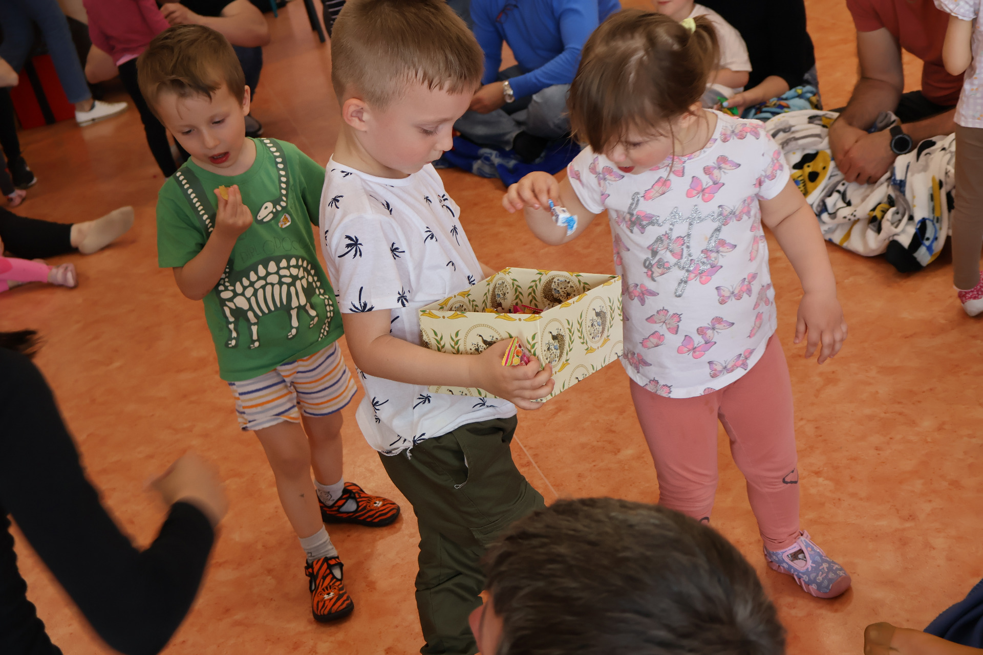 W czwartek 24.04.2025r., w grupie "Krasnali " odbyło się zajęcie otwarte z udziałem rodziców. Zajęcia otwarte stanowią wspaniałą okazję do integracji wszystkich rodziców dzieci z tej samej grupy przedszkolnej, a także wzmacniania więzi pomiędzy dzieckiem, a rodzicem. Dzieci od samego rana z wielką niecierpliwością oczekiwały wizyty bliskich. W czasie zajęć wspólnie z rodzicami/rodzeństwem uczestniczyły w różnego rodzaju zabawach ruchowych. Zabawy i radości było mnóstwo, a najszczęśliwsze tego dnia były dzieci, które mogły z rodzicami i innymi bliskimi przyjemnie spędzić czas w przedszkolu.