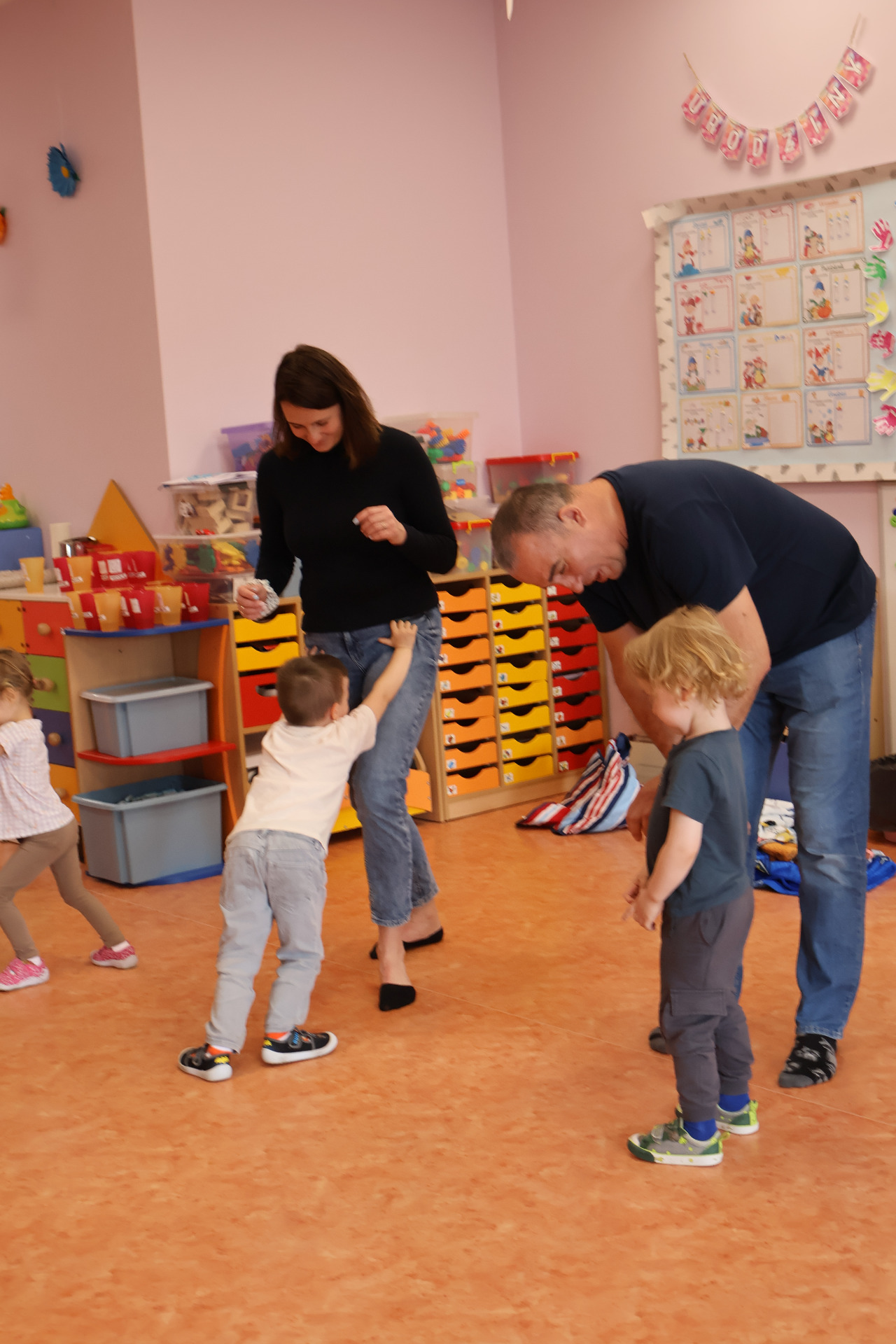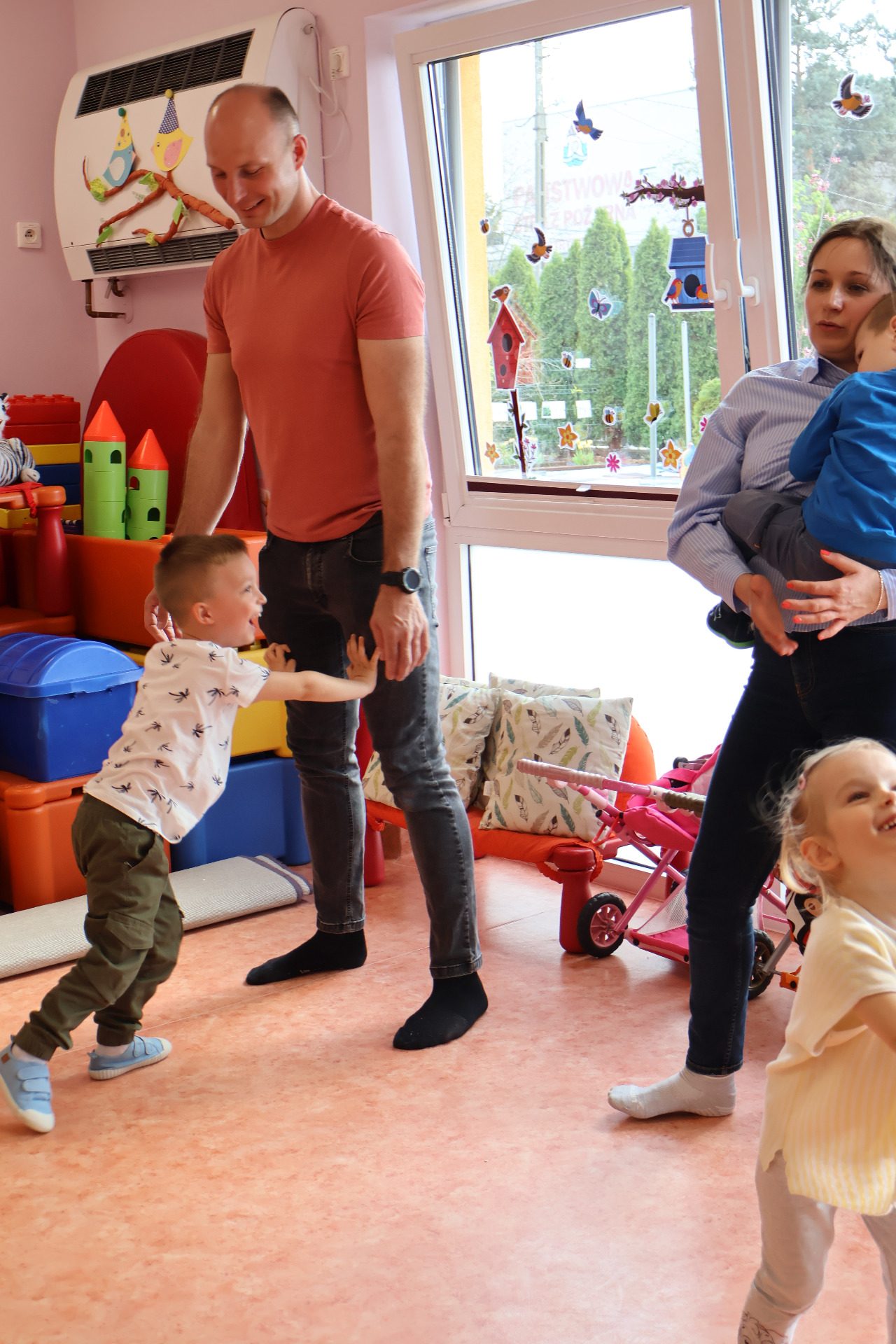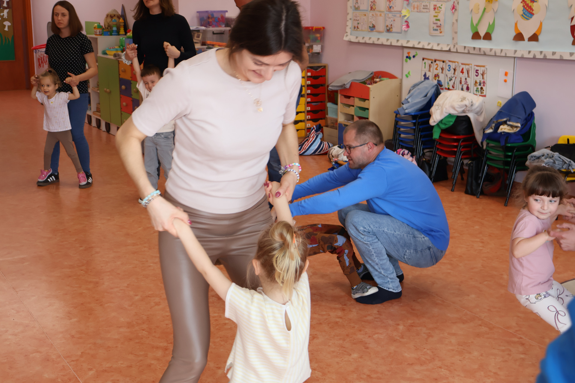 W czwartek 24.04.2025r., w grupie "Krasnali " odbyło się zajęcie otwarte z udziałem rodziców. Zajęcia otwarte stanowią wspaniałą okazję do integracji wszystkich rodziców dzieci z tej samej grupy przedszkolnej, a także wzmacniania więzi pomiędzy dzieckiem, a rodzicem. Dzieci od samego rana z wielką niecierpliwością oczekiwały wizyty bliskich. W czasie zajęć wspólnie z rodzicami/rodzeństwem uczestniczyły w różnego rodzaju zabawach ruchowych. Zabawy i radości było mnóstwo, a najszczęśliwsze tego dnia były dzieci, które mogły z rodzicami i innymi bliskimi przyjemnie spędzić czas w przedszkolu.