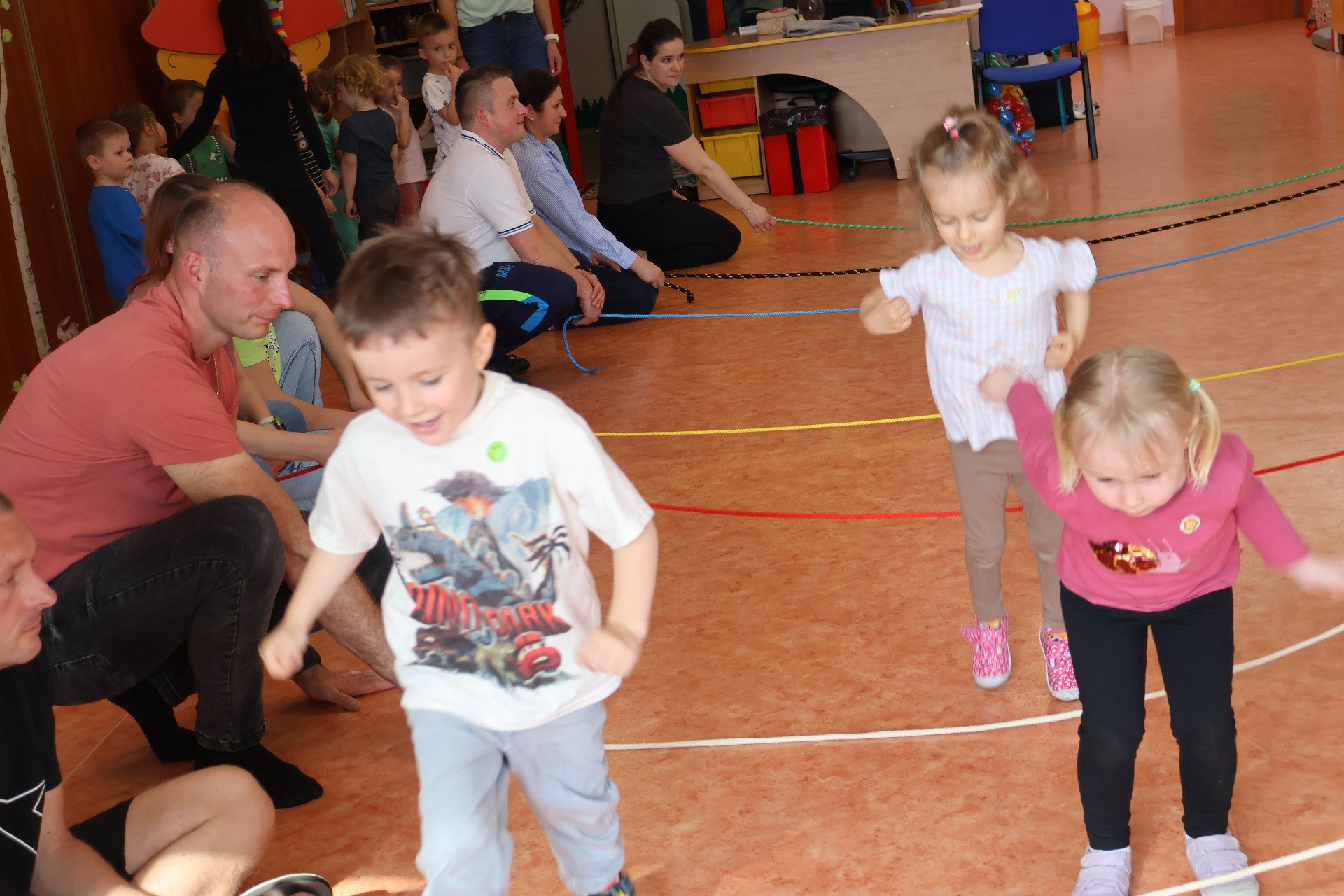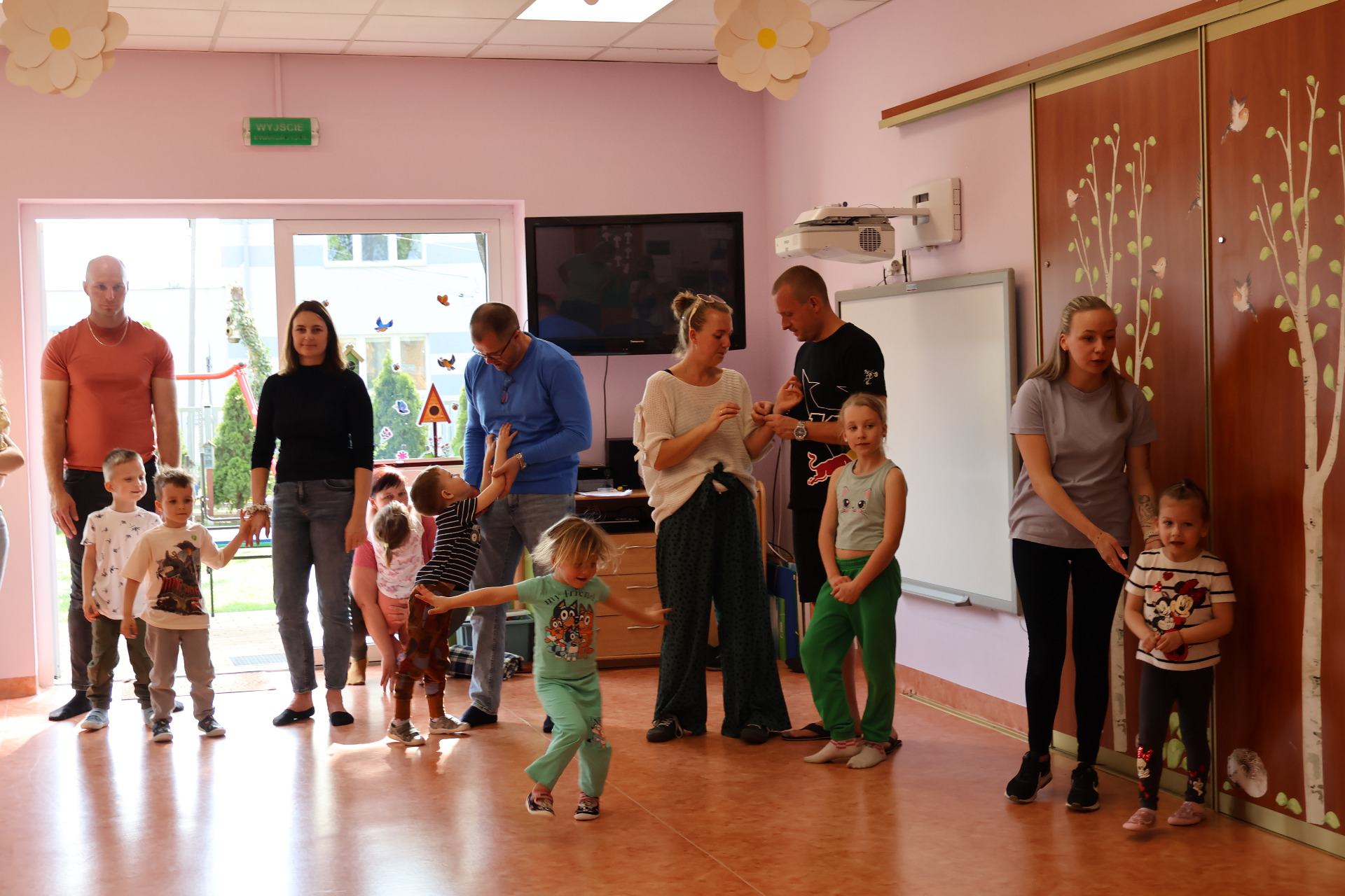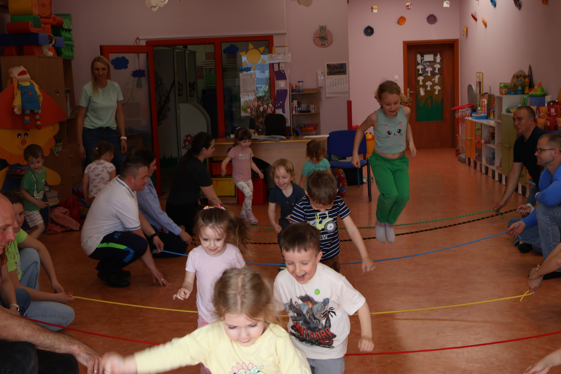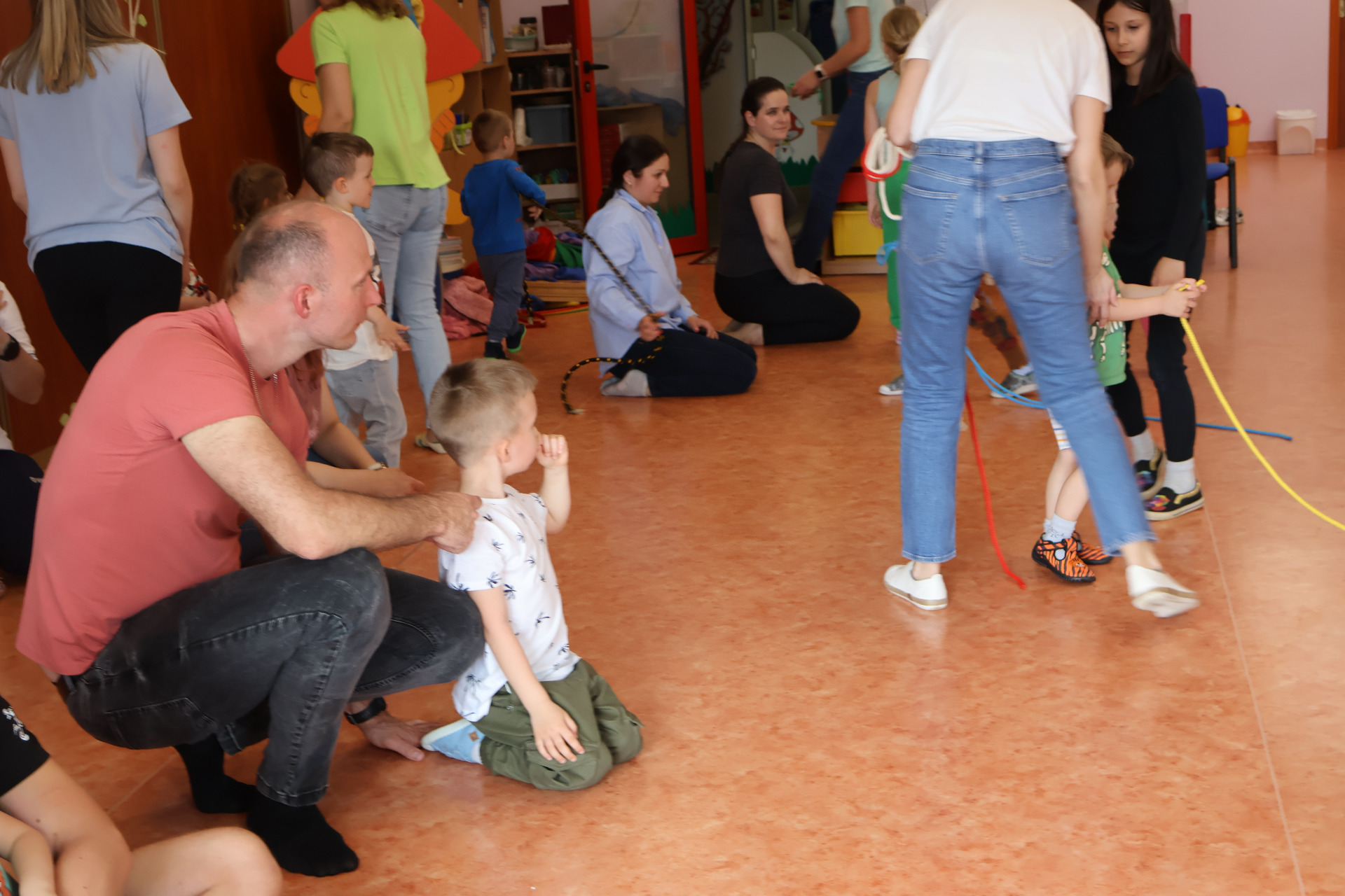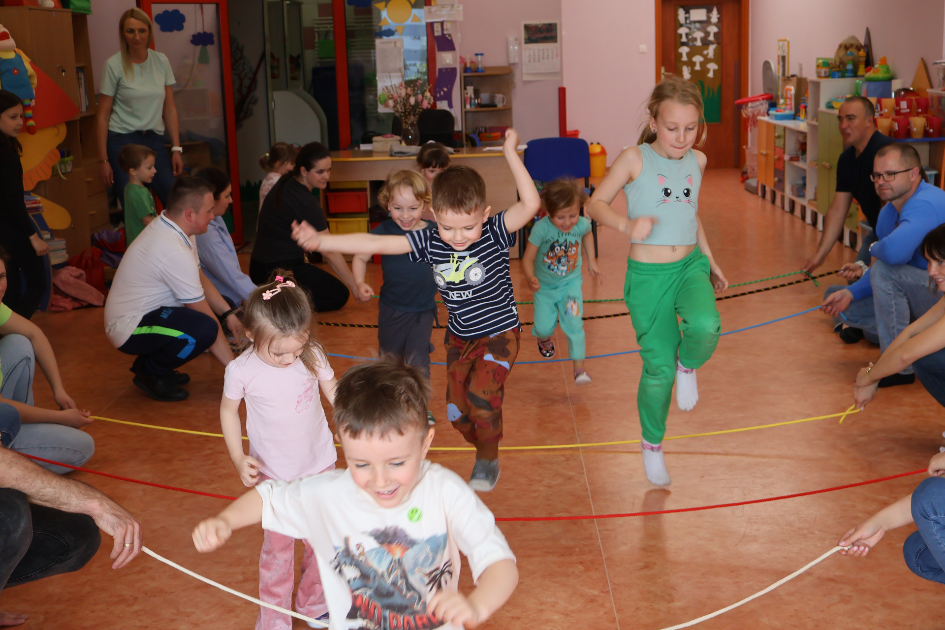 W czwartek 24.04.2025r., w grupie "Krasnali " odbyło się zajęcie otwarte z udziałem rodziców. Zajęcia otwarte stanowią wspaniałą okazję do integracji wszystkich rodziców dzieci z tej samej grupy przedszkolnej, a także wzmacniania więzi pomiędzy dzieckiem, a rodzicem. Dzieci od samego rana z wielką niecierpliwością oczekiwały wizyty bliskich. W czasie zajęć wspólnie z rodzicami/rodzeństwem uczestniczyły w różnego rodzaju zabawach ruchowych. Zabawy i radości było mnóstwo, a najszczęśliwsze tego dnia były dzieci, które mogły z rodzicami i innymi bliskimi przyjemnie spędzić czas w przedszkolu.
