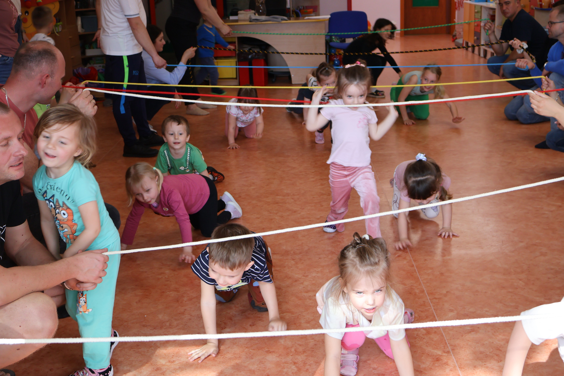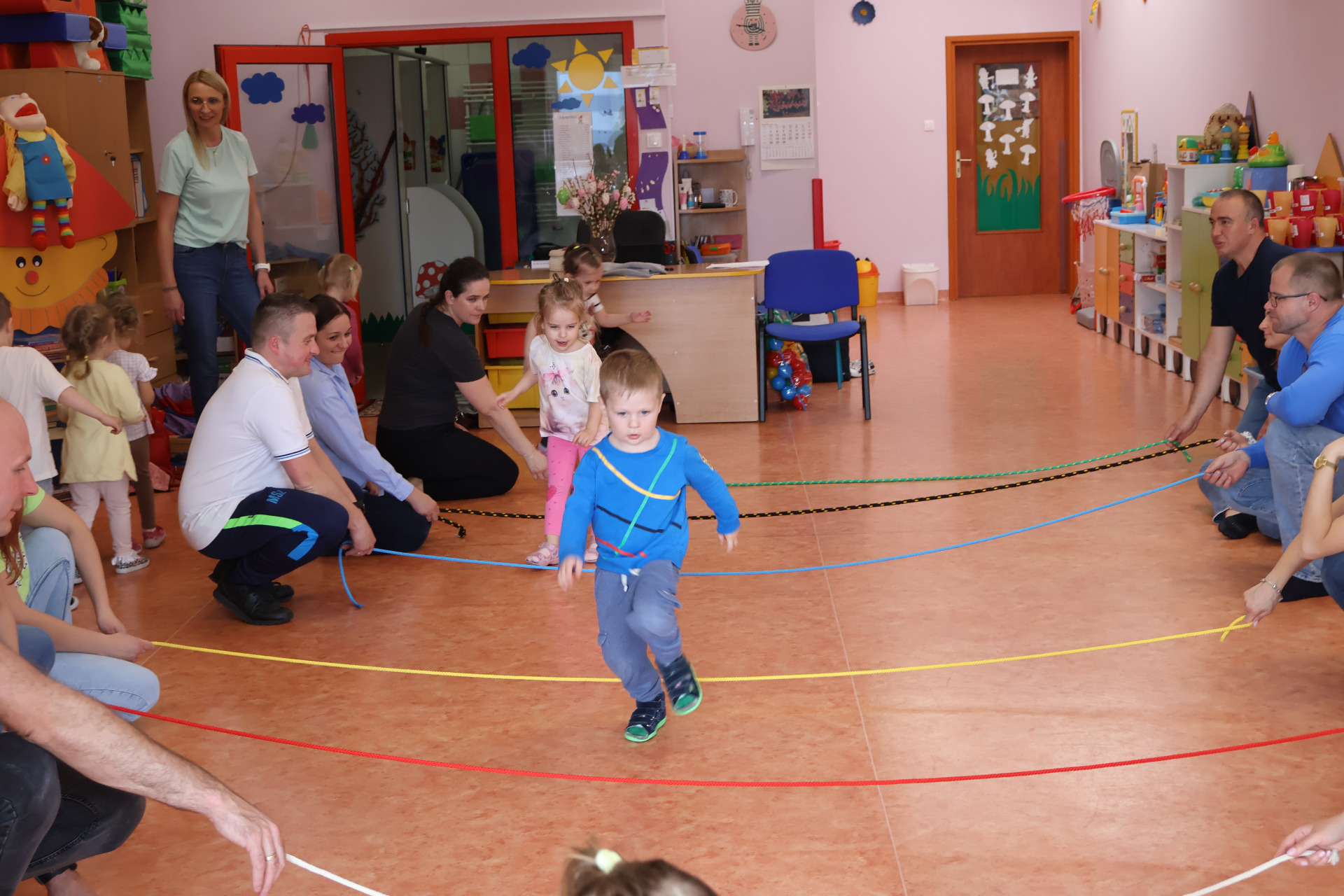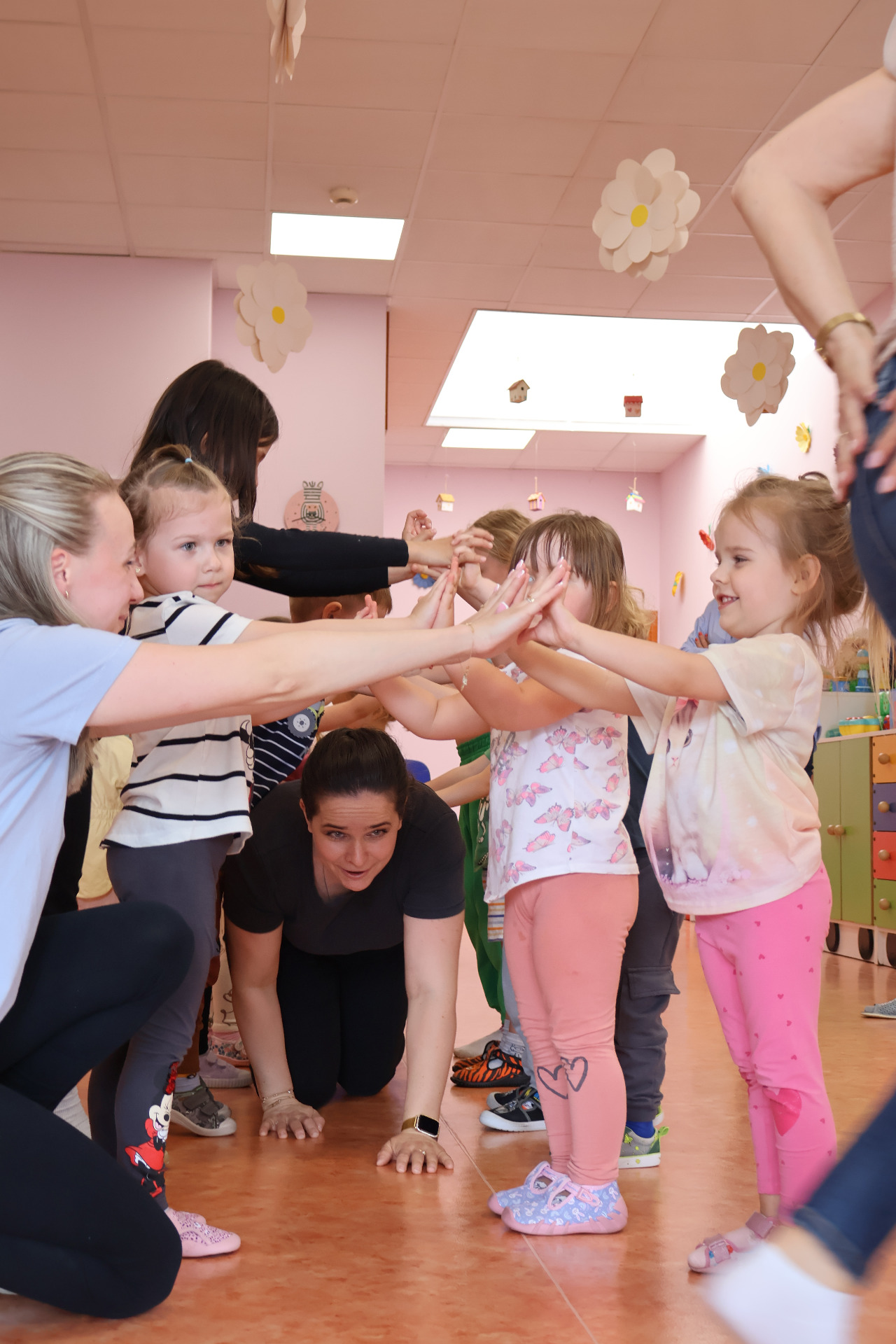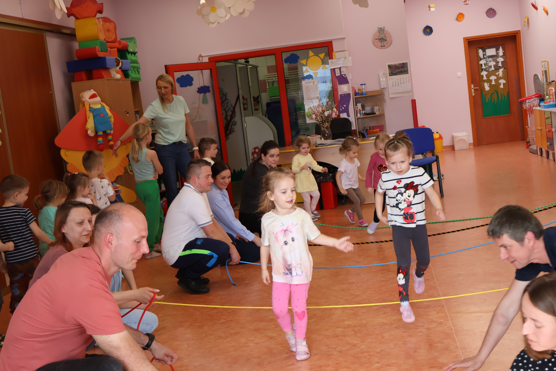W czwartek 24.04.2025r., w grupie "Krasnali " odbyło się zajęcie otwarte z udziałem rodziców. Zajęcia otwarte stanowią wspaniałą okazję do integracji wszystkich rodziców dzieci z tej samej grupy przedszkolnej, a także wzmacniania więzi pomiędzy dzieckiem, a rodzicem. Dzieci od samego rana z wielką niecierpliwością oczekiwały wizyty bliskich. W czasie zajęć wspólnie z rodzicami/rodzeństwem uczestniczyły w różnego rodzaju zabawach ruchowych. Zabawy i radości było mnóstwo, a najszczęśliwsze tego dnia były dzieci, które mogły z rodzicami i innymi bliskimi przyjemnie spędzić czas w przedszkolu.