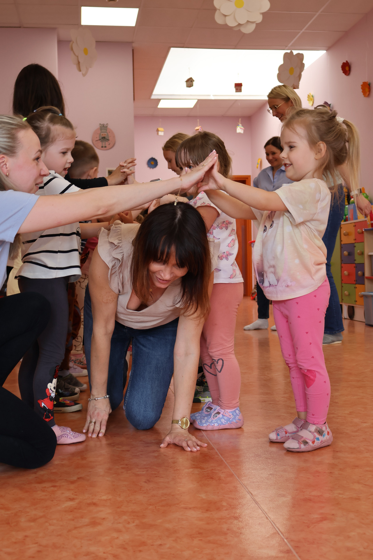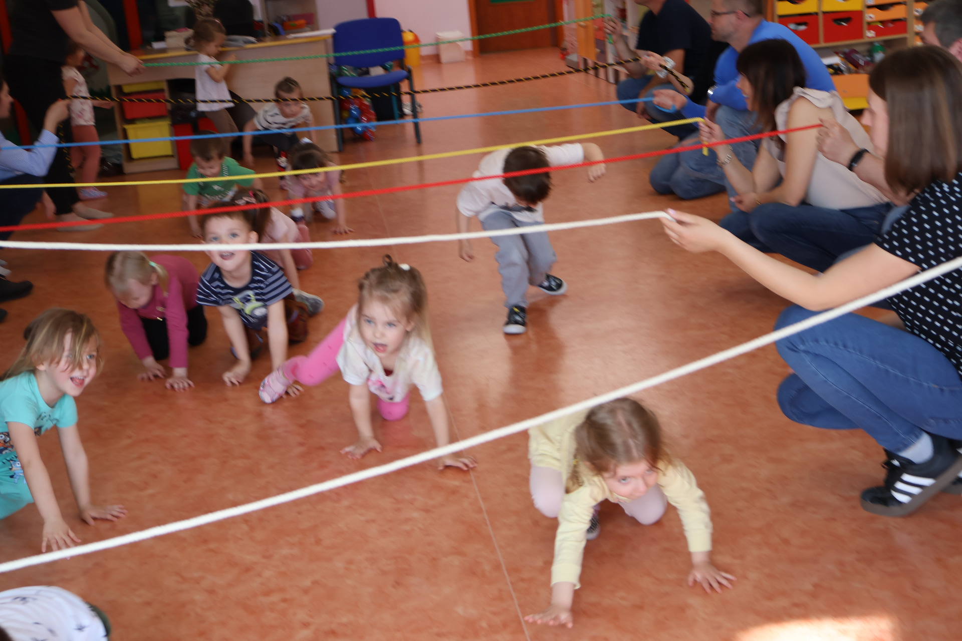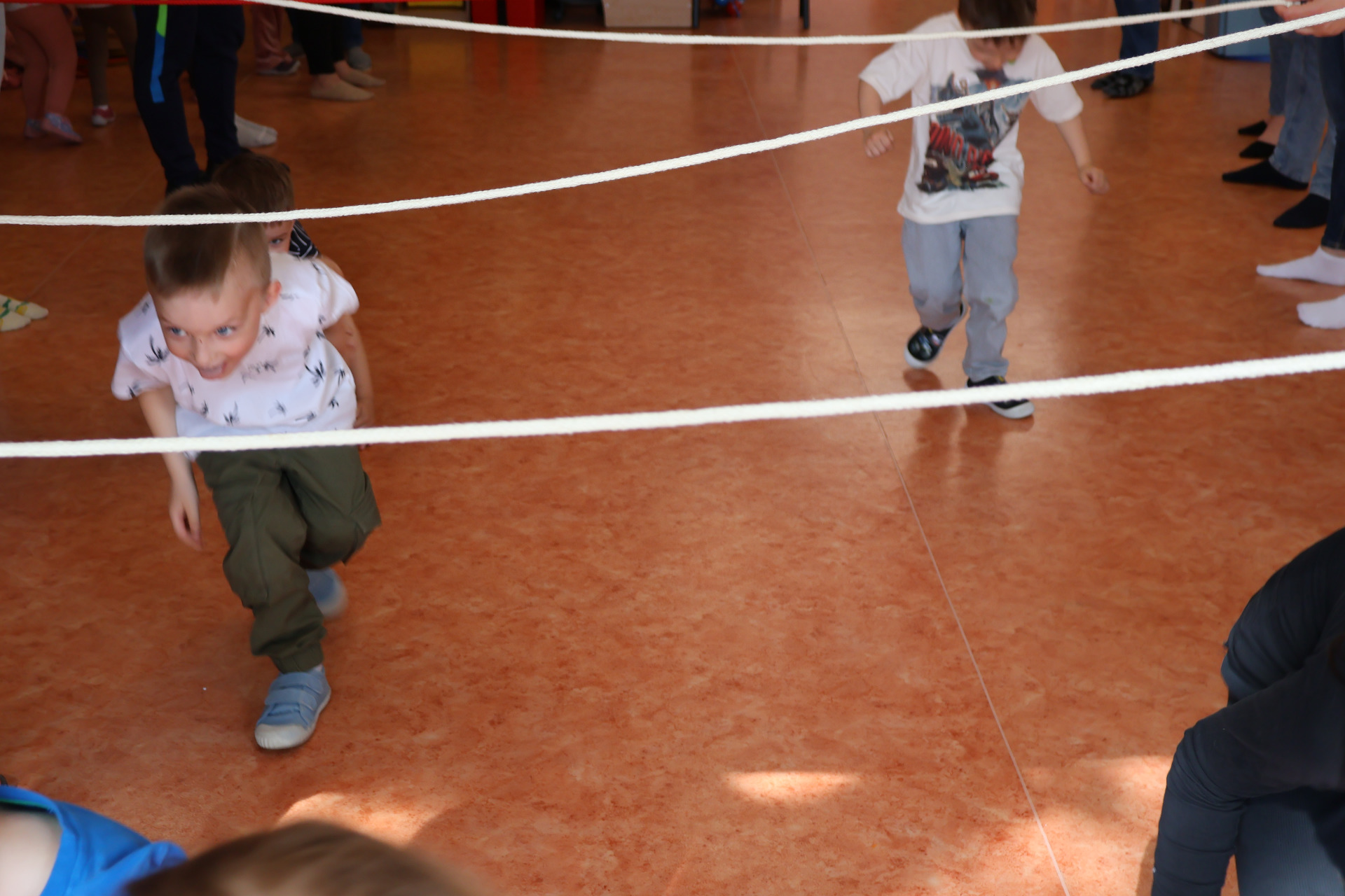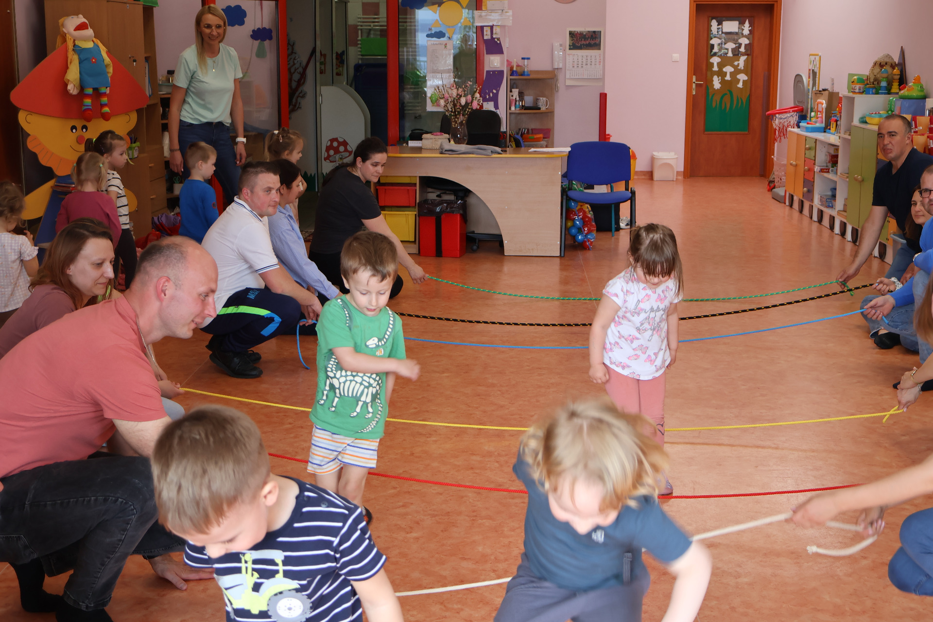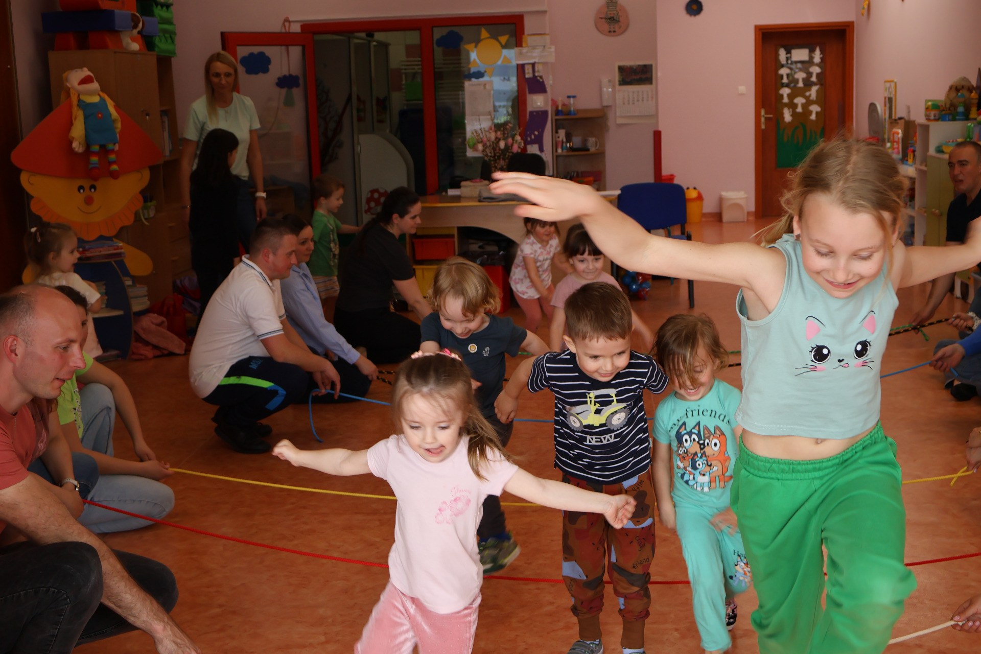 W czwartek 24.04.2025r., w grupie "Krasnali " odbyło się zajęcie otwarte z udziałem rodziców. Zajęcia otwarte stanowią wspaniałą okazję do integracji wszystkich rodziców dzieci z tej samej grupy przedszkolnej, a także wzmacniania więzi pomiędzy dzieckiem, a rodzicem. Dzieci od samego rana z wielką niecierpliwością oczekiwały wizyty bliskich. W czasie zajęć wspólnie z rodzicami/rodzeństwem uczestniczyły w różnego rodzaju zabawach ruchowych. Zabawy i radości było mnóstwo, a najszczęśliwsze tego dnia były dzieci, które mogły z rodzicami i innymi bliskimi przyjemnie spędzić czas w przedszkolu.