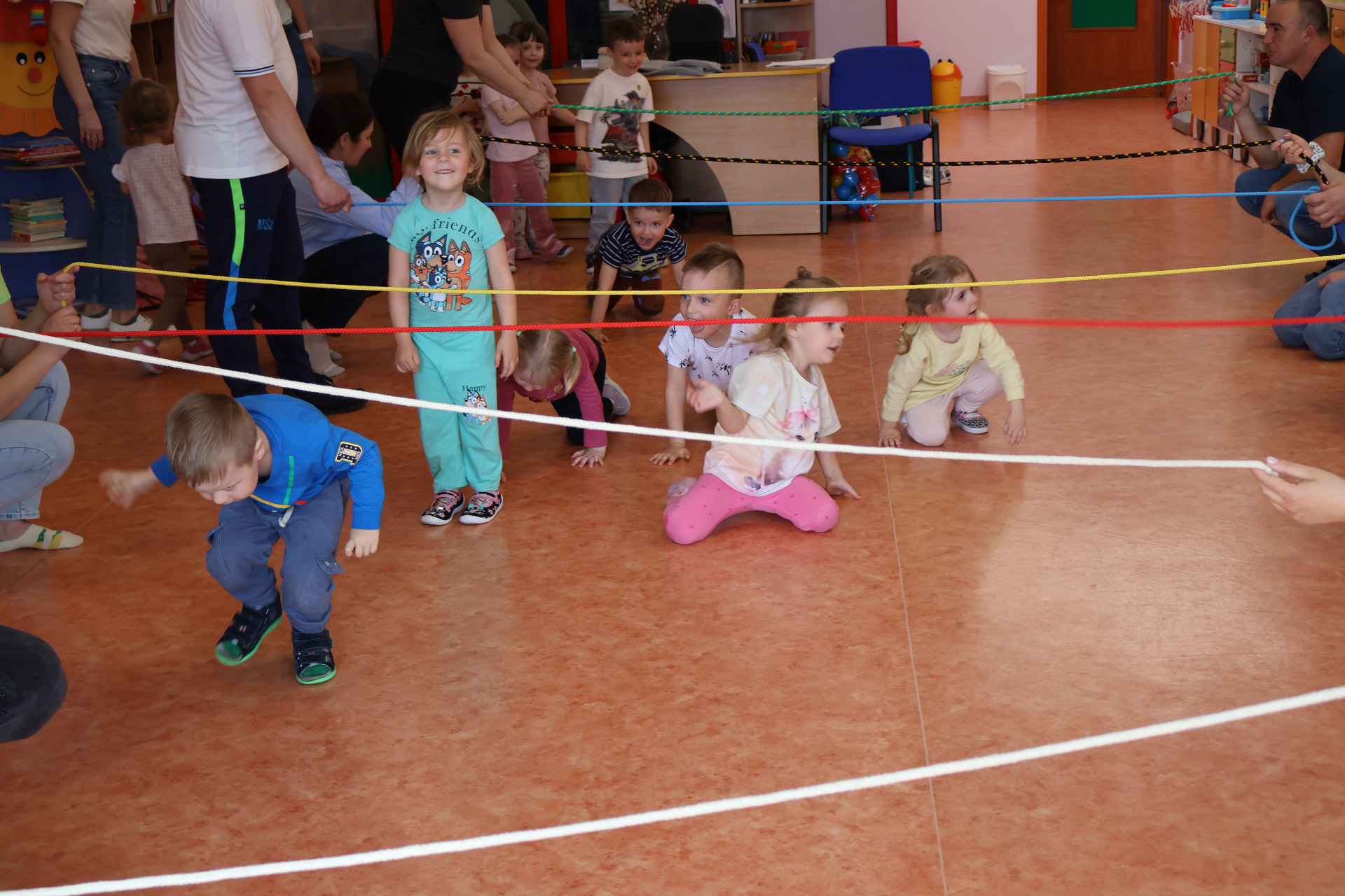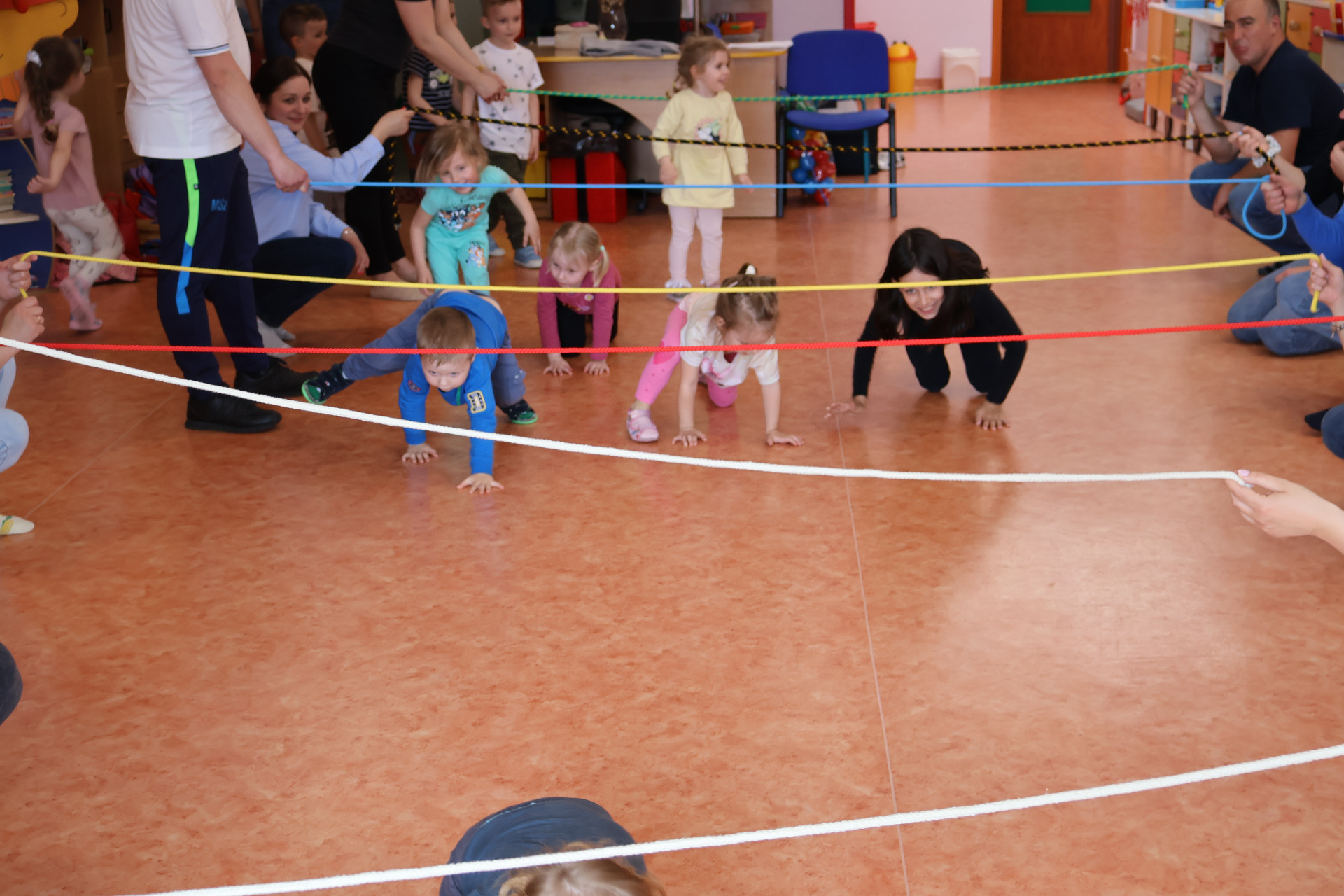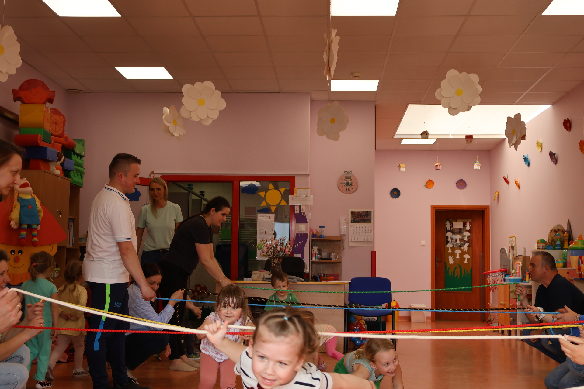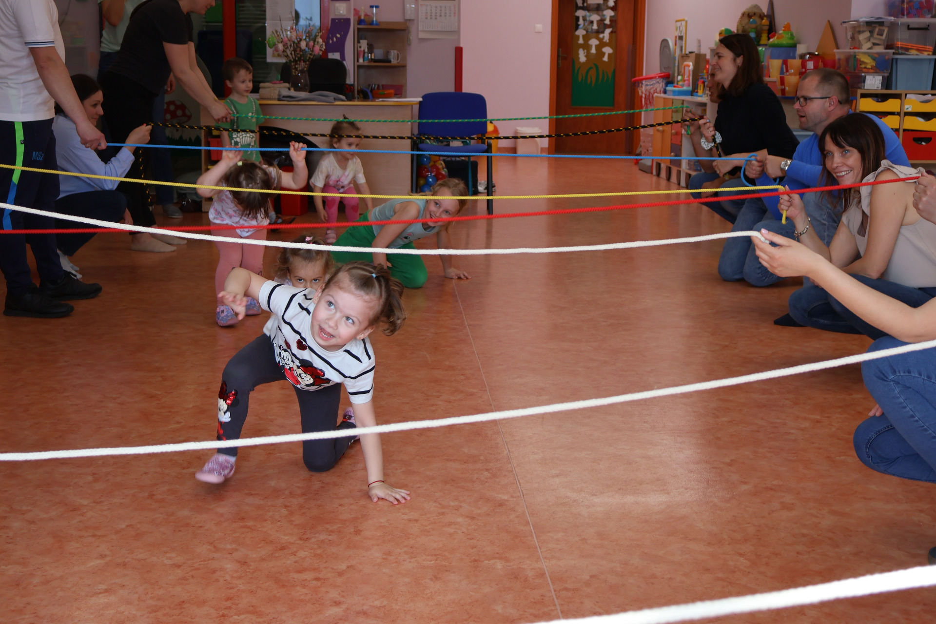 W czwartek 24.04.2025r., w grupie "Krasnali " odbyło się zajęcie otwarte z udziałem rodziców. Zajęcia otwarte stanowią wspaniałą okazję do integracji wszystkich rodziców dzieci z tej samej grupy przedszkolnej, a także wzmacniania więzi pomiędzy dzieckiem, a rodzicem. Dzieci od samego rana z wielką niecierpliwością oczekiwały wizyty bliskich. W czasie zajęć wspólnie z rodzicami/rodzeństwem uczestniczyły w różnego rodzaju zabawach ruchowych. Zabawy i radości było mnóstwo, a najszczęśliwsze tego dnia były dzieci, które mogły z rodzicami i innymi bliskimi przyjemnie spędzić czas w przedszkolu.