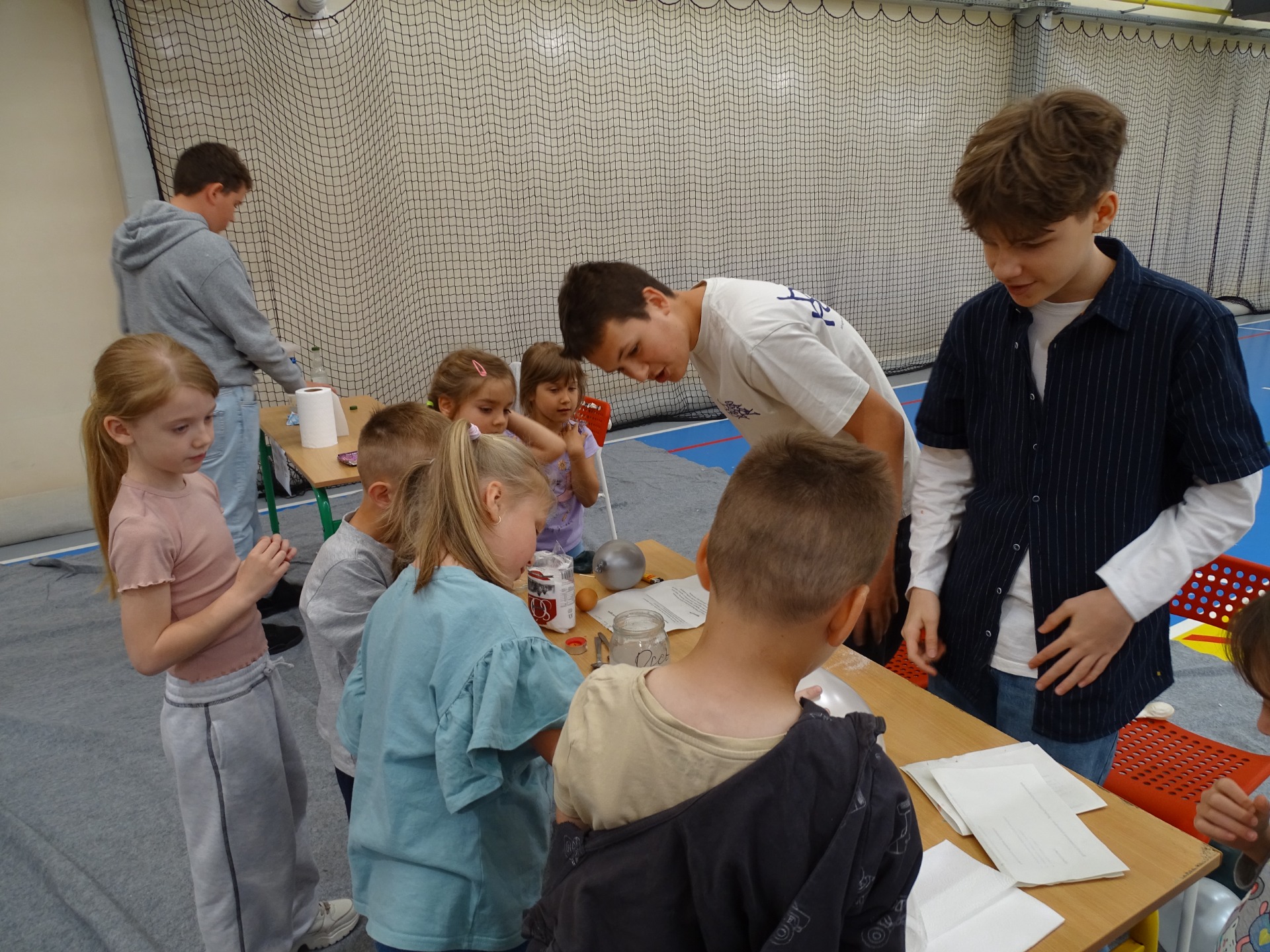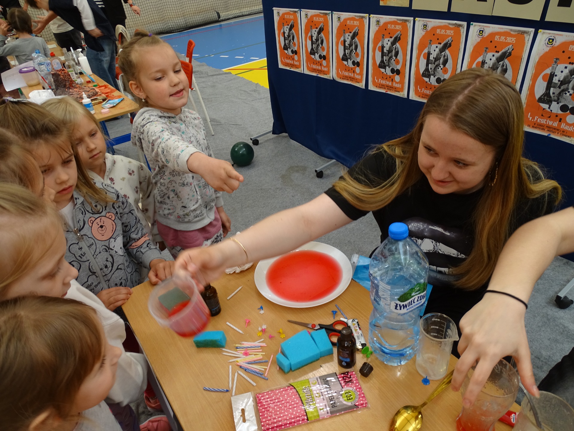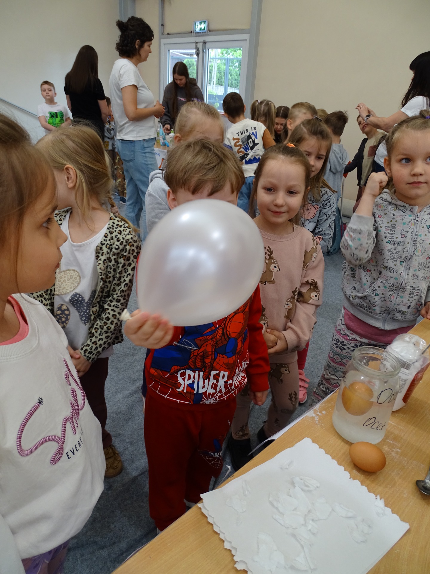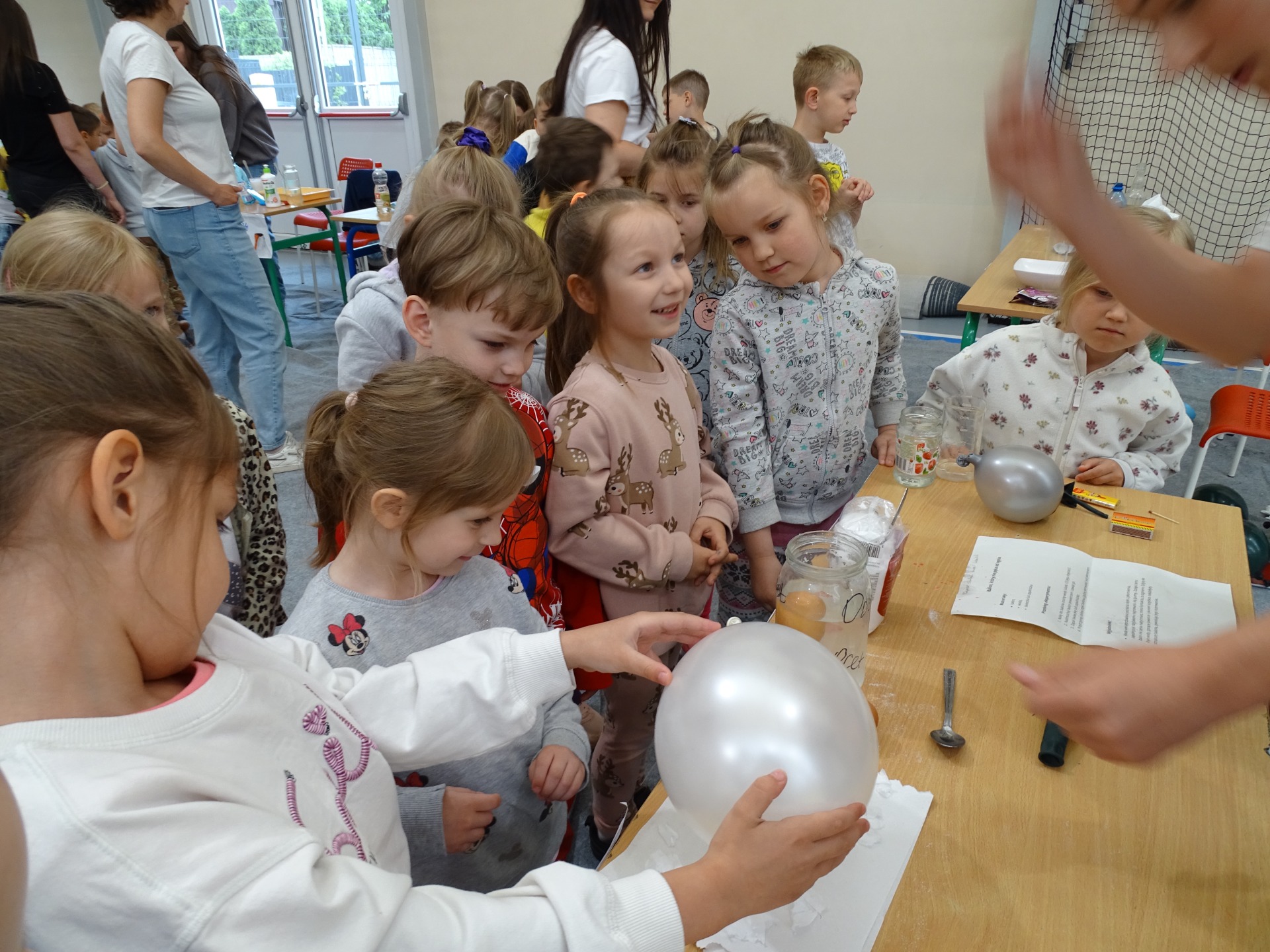 5 maja dzieci z grupy Podr贸偶nik贸w i Tropicieli wybrali si臋 na 4 edycj臋 FESTIWALU NAUKI 馃И, na zaproszenie p. Dyrektor i uczni贸w Szko艂y Podstawowej nr 1 im. W艂adys艂awa Jagie艂艂y w Strykowie. Dzieci mia艂y okazj臋 obejrze膰 r贸偶ne eksperymenty, jakie mo偶na wykona膰 przy u偶yciu prostych, dost臋pnych powszechnie sk艂adnik贸w. W艣r贸d eksperyment贸w by艂y m.in.: wulkaniczna lawa, ciecz nienewtonowska, lewituj膮ce jajko, skacz膮ce rodzynki, skacz膮ca kukurydza.