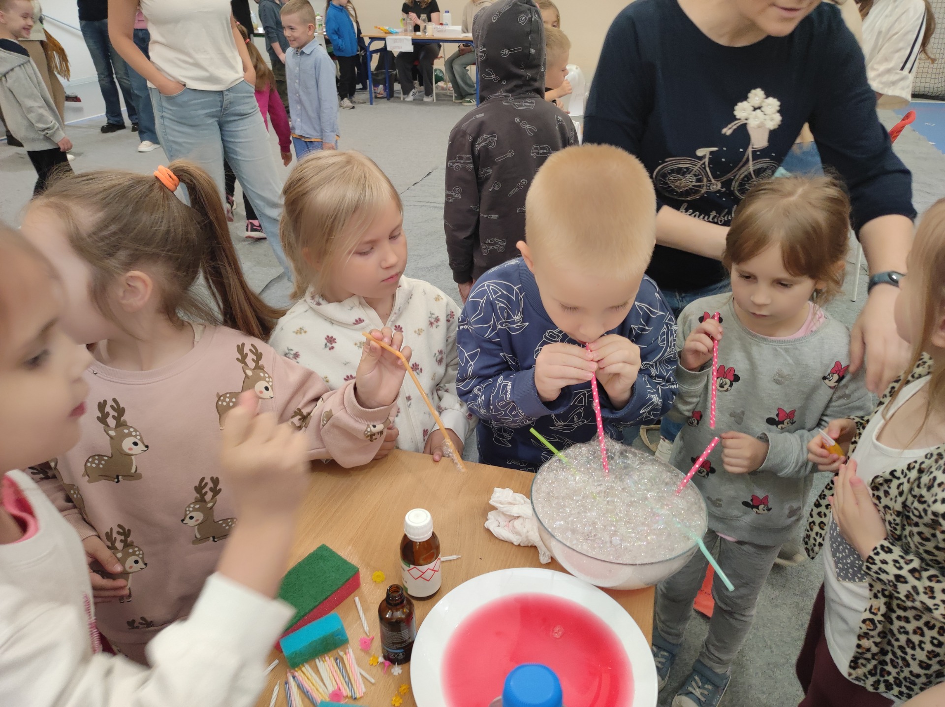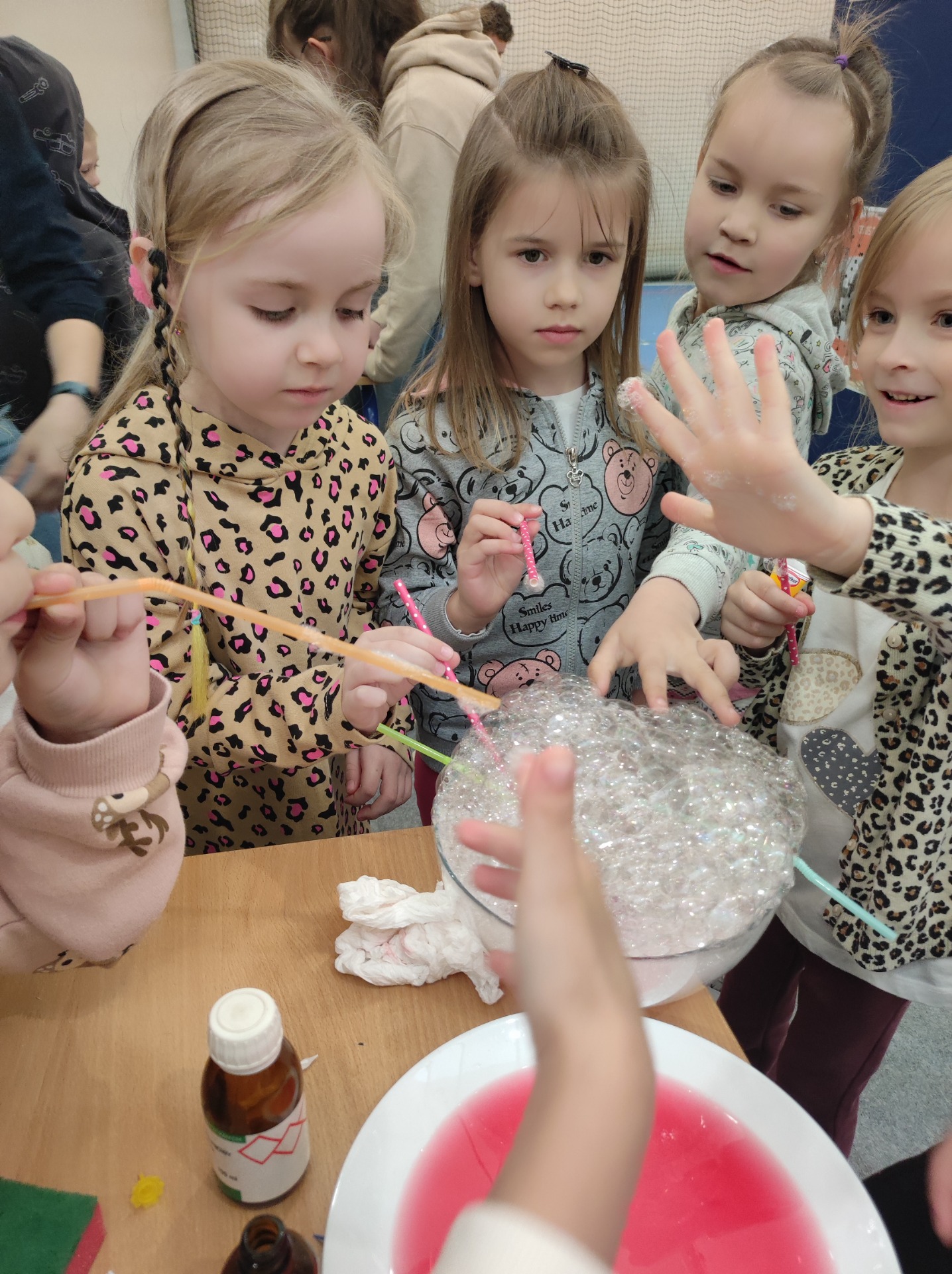 5 maja dzieci z grupy Podr贸偶nik贸w i Tropicieli wybrali si臋 na 4 edycj臋 FESTIWALU NAUKI 馃И, na zaproszenie p. Dyrektor i uczni贸w Szko艂y Podstawowej nr 1 im. W艂adys艂awa Jagie艂艂y w Strykowie. Dzieci mia艂y okazj臋 obejrze膰 r贸偶ne eksperymenty, jakie mo偶na wykona膰 przy u偶yciu prostych, dost臋pnych powszechnie sk艂adnik贸w. W艣r贸d eksperyment贸w by艂y m.in.: wulkaniczna lawa, ciecz nienewtonowska, lewituj膮ce jajko, skacz膮ce rodzynki, skacz膮ca kukurydza.