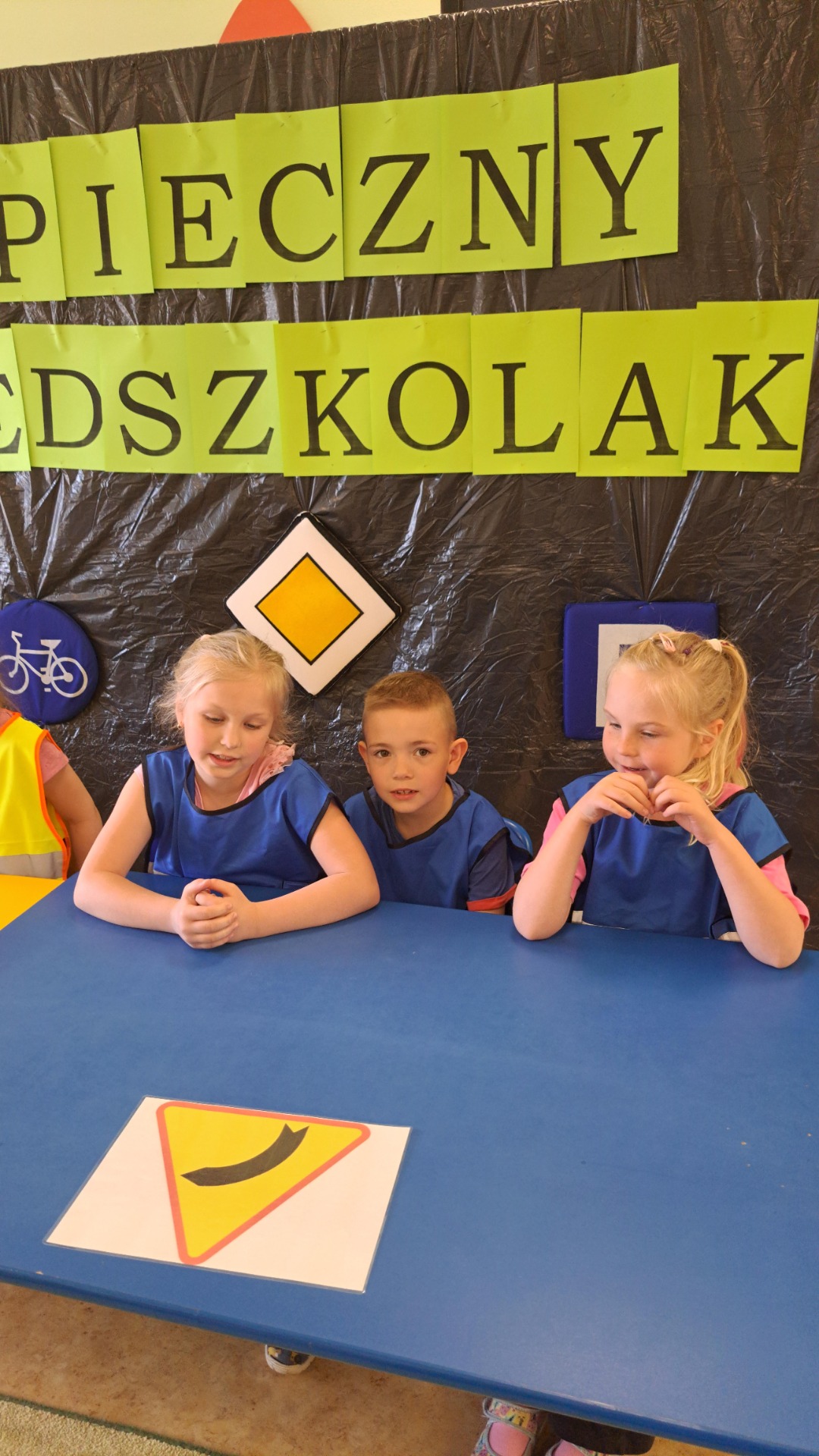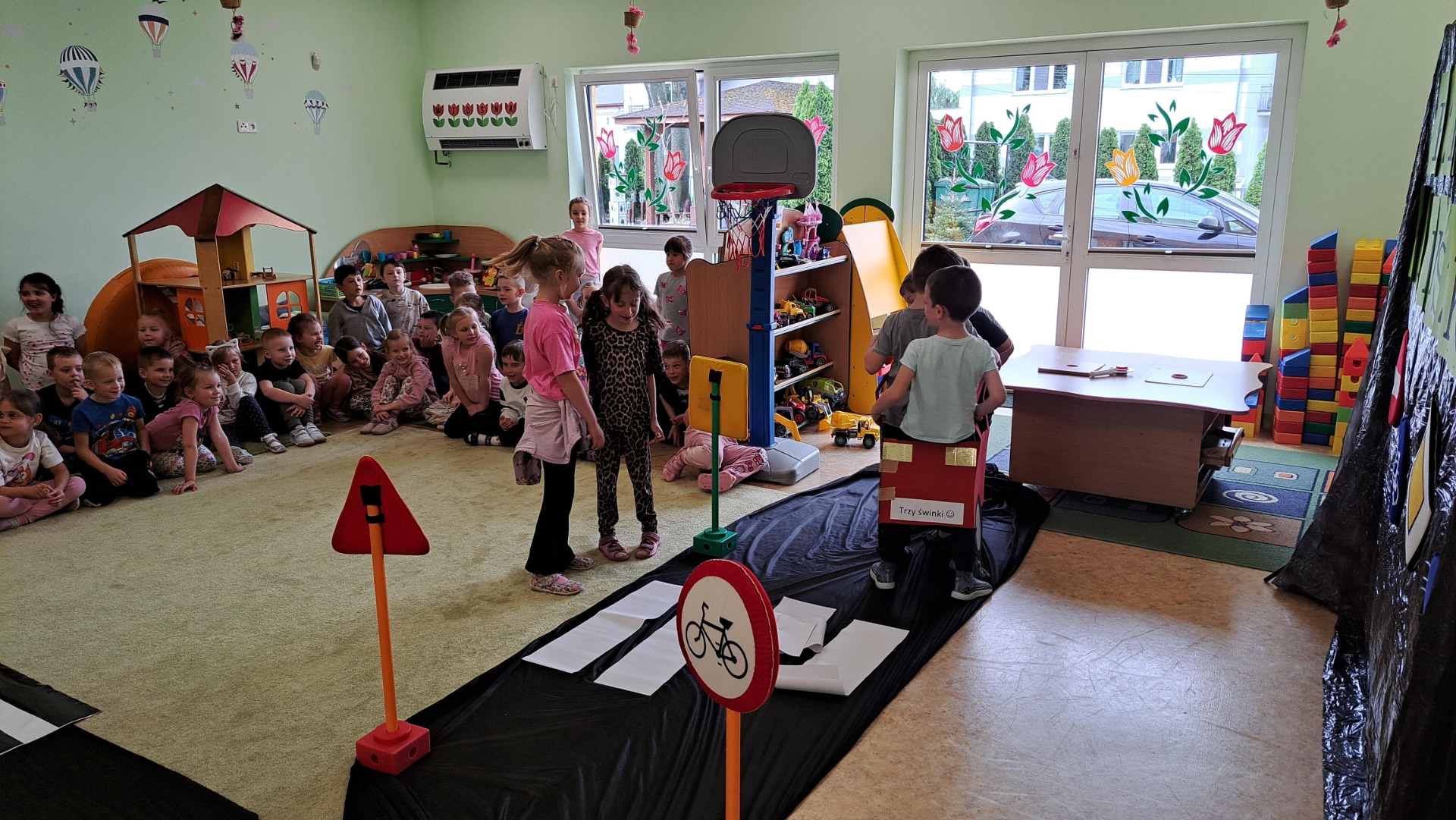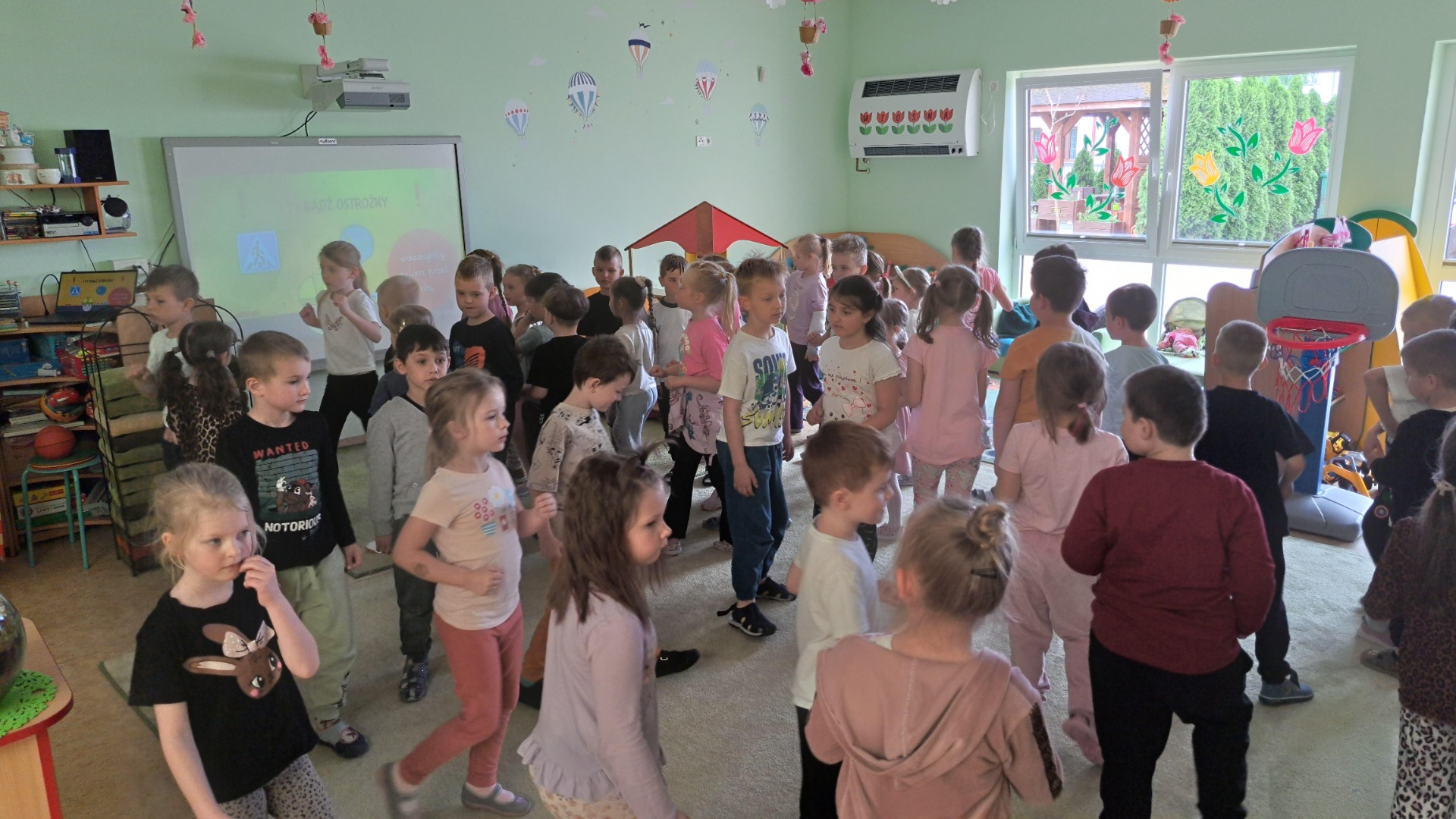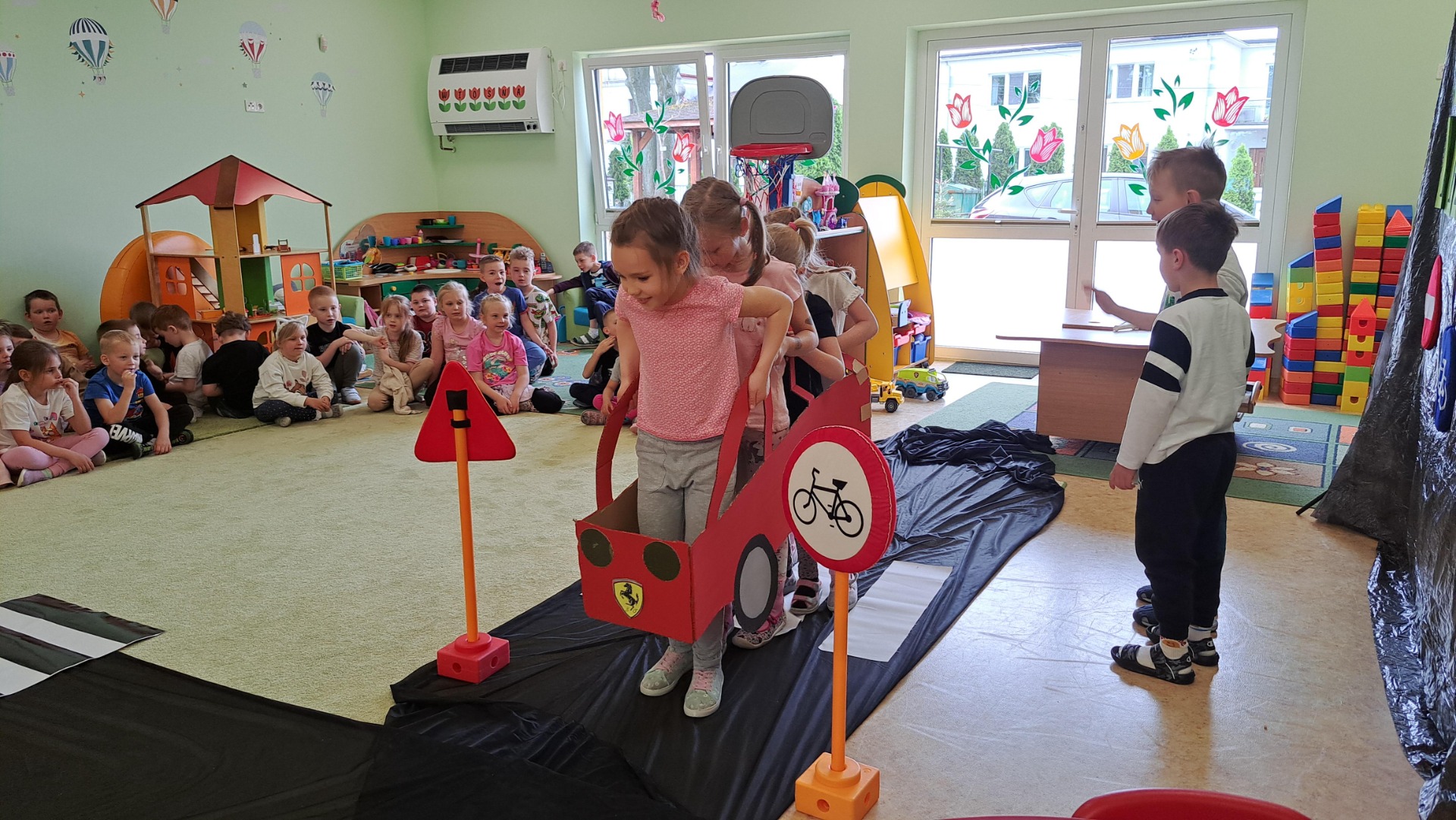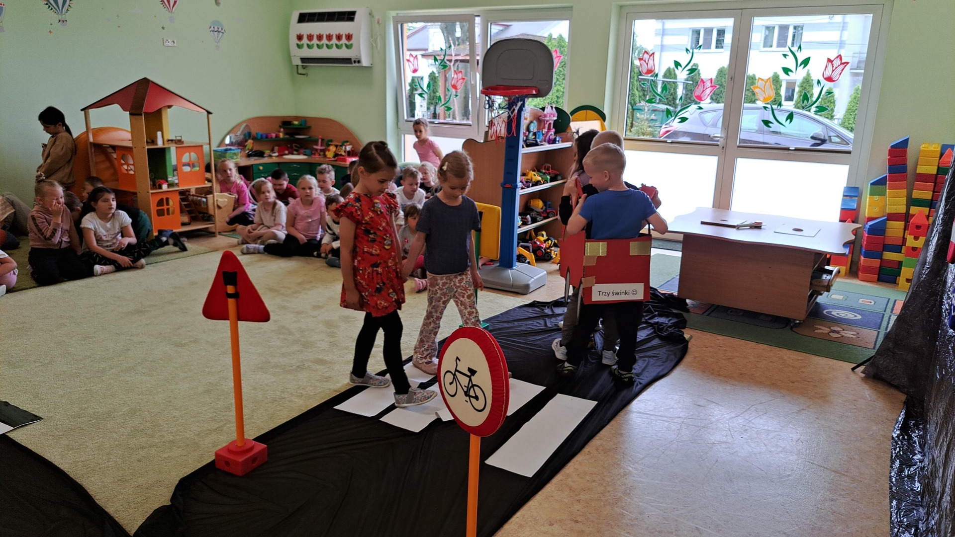 5 maja dwie starsze grupy przedszkolne zmierzyły się się w quizie wiedzy o bezpieczeństwie. Celem quizu było poznanie poziomu wiedzy przedszkolaków z zakresu bezpieczeństwa, utrwalenie prawidłowych i bezpiecznych zachowań w zabawie oraz zabawa z elementem rywalizacji. Dzieci zostały podzielone na 2 zespoły: niebieski i żółty. Zadania jakie miały dzieci do wykonania były zróżnicowane. Składały się na nie takie zabawy jak: rozwiązywanie zagadek, układanie puzzli, rozpoznawanie znaków, dopasowywanie właściwego numeru telefonu do pojazdu uprzywilejowanego, budowanie sygnalizatora świetlnego, ocenianie sytuacji poprzez wskazanie odpowiedniego numeru na lizaku, kompletowanie apteczki, reagowanie na sygnały wzrokowe (czerwone i zielone), poruszanie się po ulicy i pasach zgonie z zasadami. Obie drużyny wykazały się dużą wiedzą o zasadach ruchu drogowego i wyczerpująco odpowiadały na pytania. Gratulujemy wszystkim dzieciom tak bogatej wiedzy w tym temacie :).