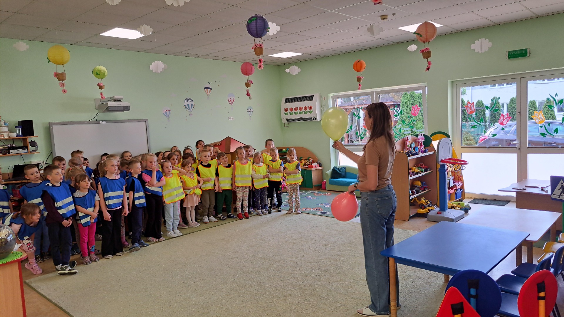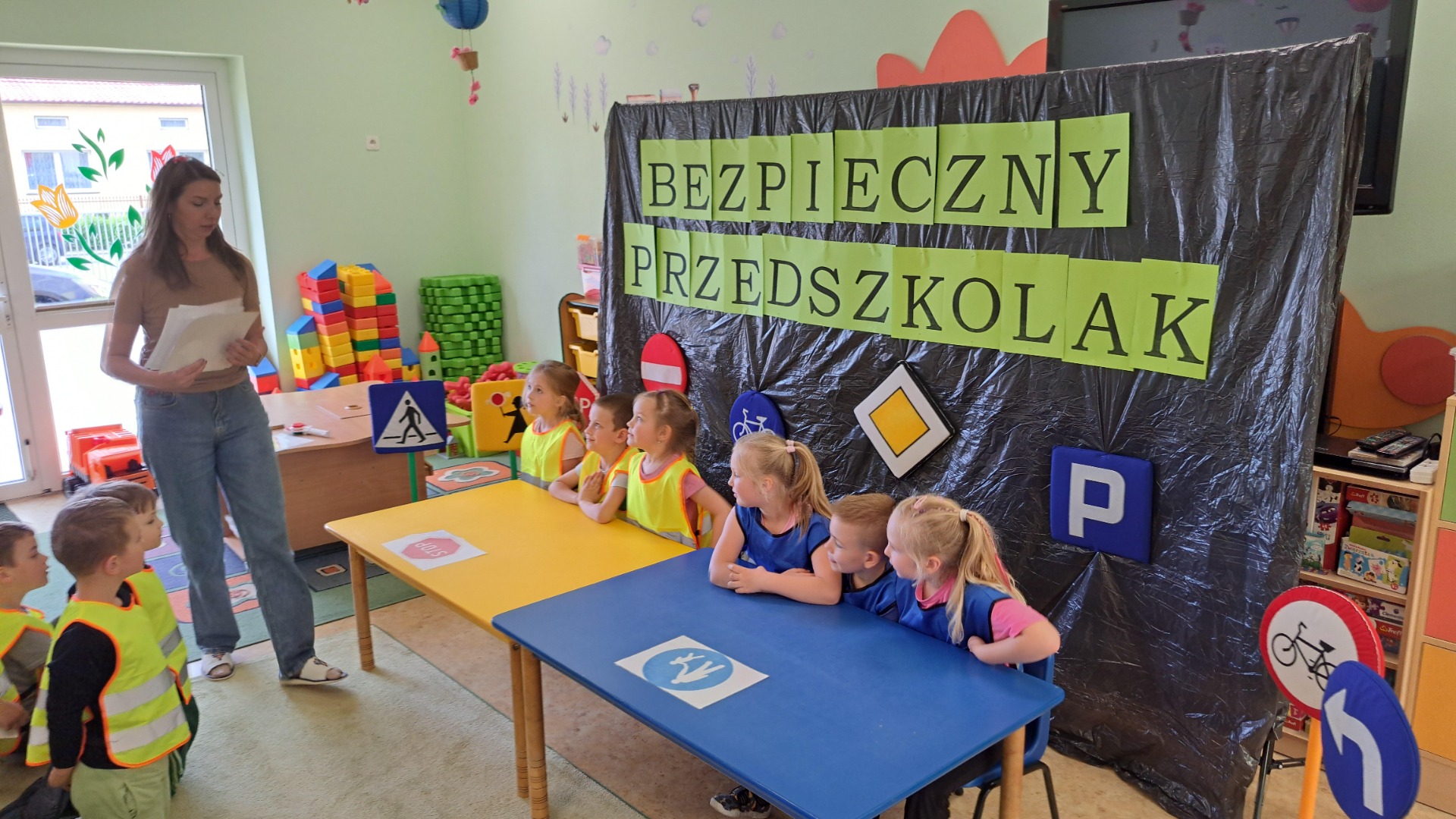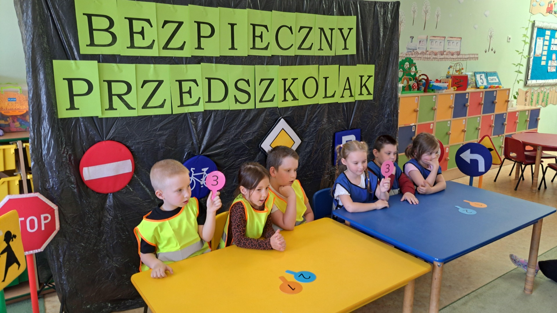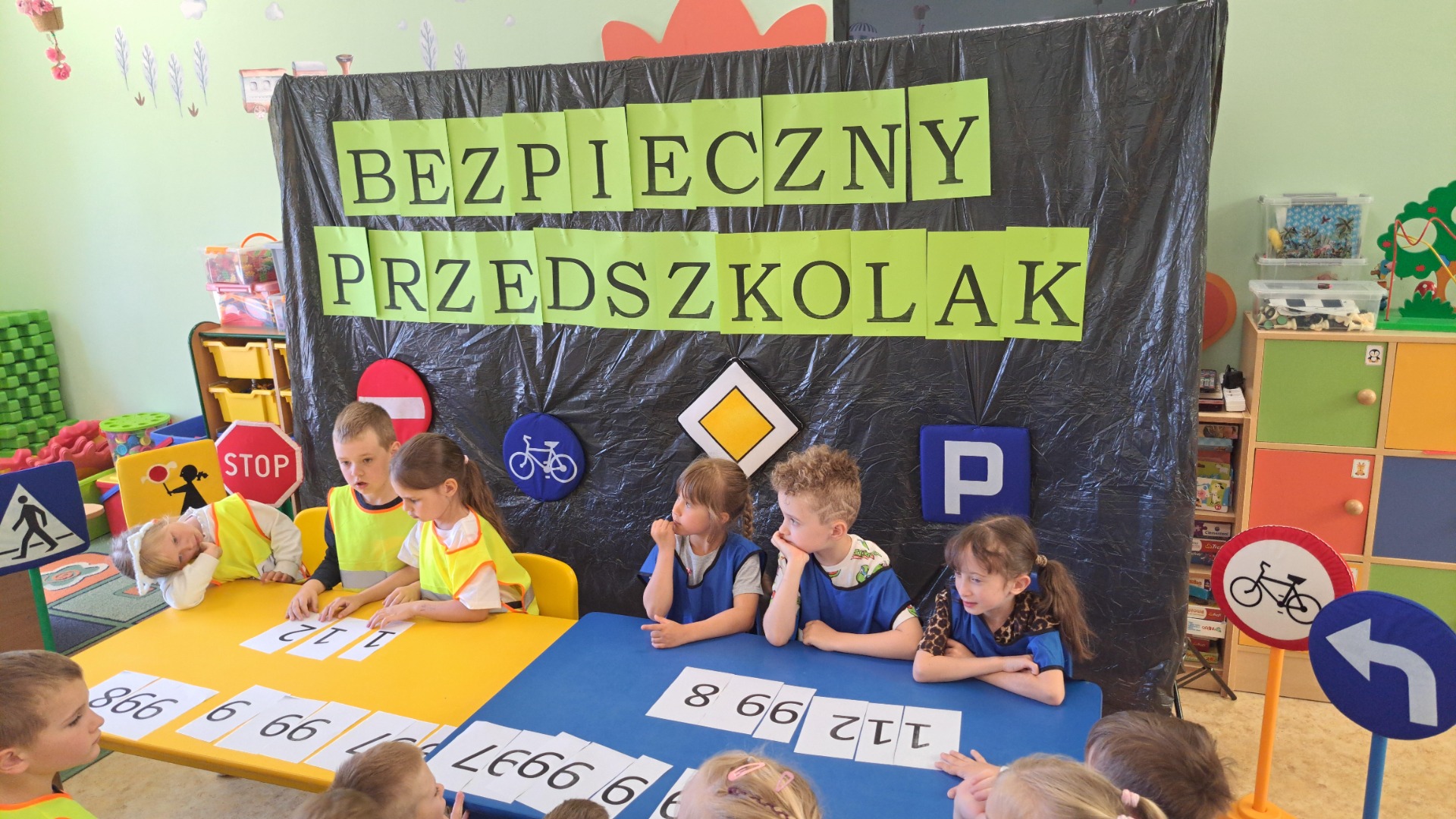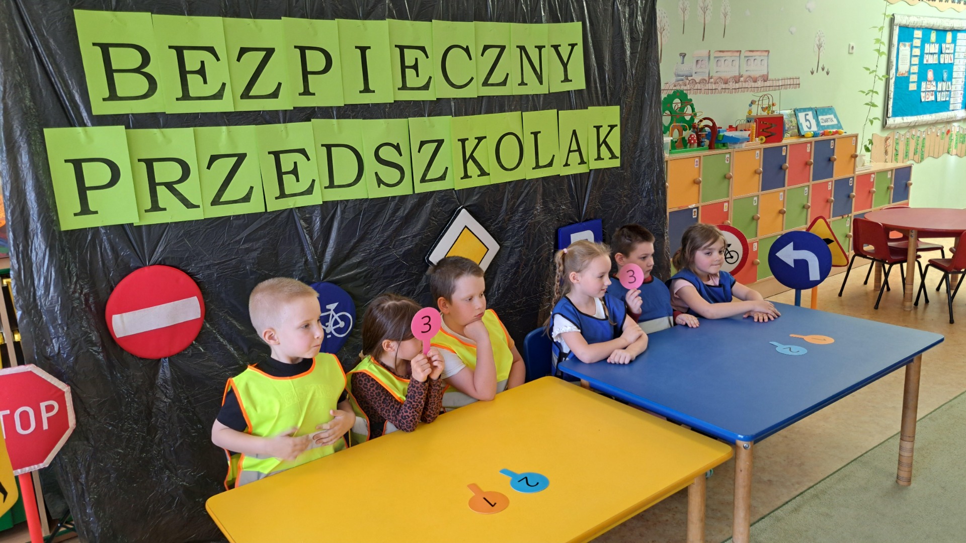 5 maja dwie starsze grupy przedszkolne zmierzyły się się w quizie wiedzy o bezpieczeństwie. Celem quizu było poznanie poziomu wiedzy przedszkolaków z zakresu bezpieczeństwa, utrwalenie prawidłowych i bezpiecznych zachowań w zabawie oraz zabawa z elementem rywalizacji. Dzieci zostały podzielone na 2 zespoły: niebieski i żółty. Zadania jakie miały dzieci do wykonania były zróżnicowane. Składały się na nie takie zabawy jak: rozwiązywanie zagadek, układanie puzzli, rozpoznawanie znaków, dopasowywanie właściwego numeru telefonu do pojazdu uprzywilejowanego, budowanie sygnalizatora świetlnego, ocenianie sytuacji poprzez wskazanie odpowiedniego numeru na lizaku, kompletowanie apteczki, reagowanie na sygnały wzrokowe (czerwone i zielone), poruszanie się po ulicy i pasach zgonie z zasadami.