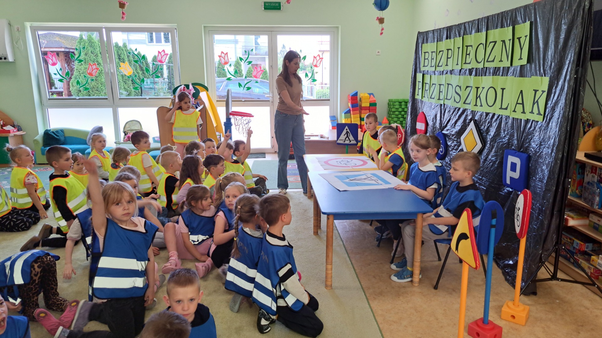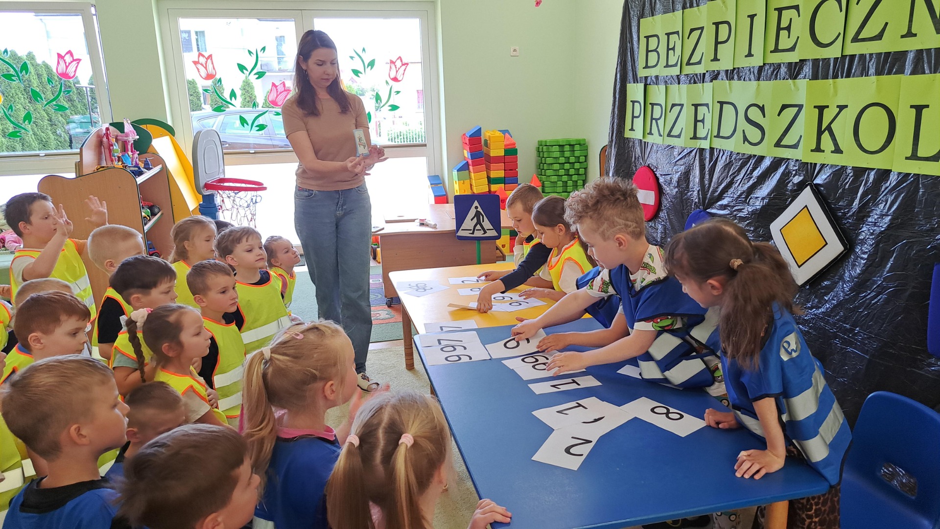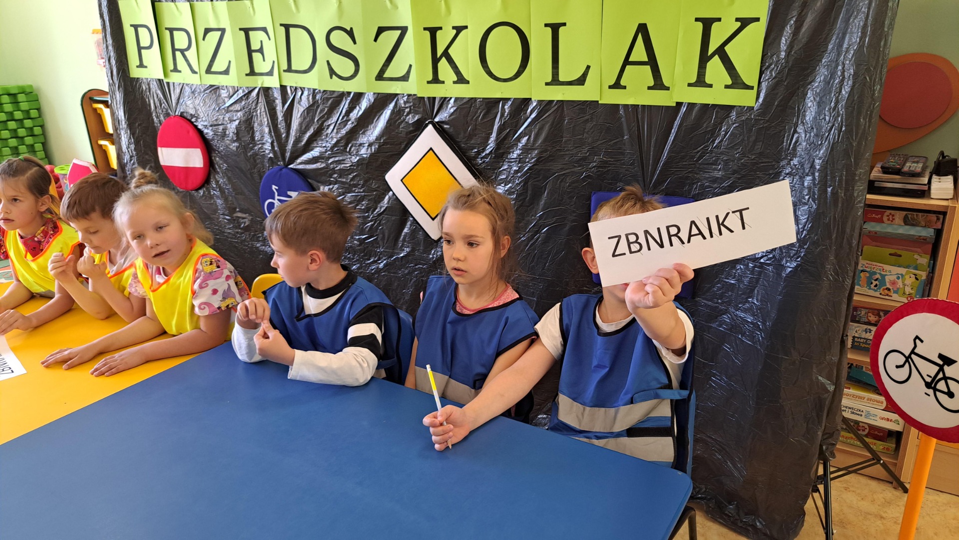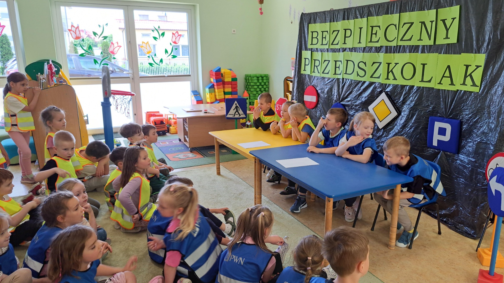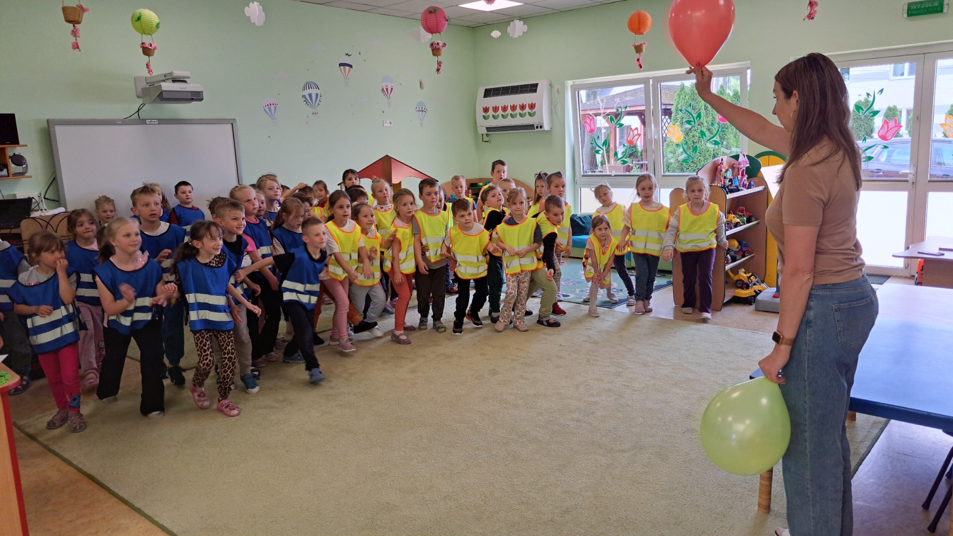 5 maja dwie starsze grupy przedszkolne zmierzyły się się w quizie wiedzy o bezpieczeństwie. Celem quizu było poznanie poziomu wiedzy przedszkolaków z zakresu bezpieczeństwa, utrwalenie prawidłowych i bezpiecznych zachowań w zabawie oraz zabawa z elementem rywalizacji. Dzieci zostały podzielone na 2 zespoły: niebieski i żółty. Zadania jakie miały dzieci do wykonania były zróżnicowane. Składały się na nie takie zabawy jak: rozwiązywanie zagadek, układanie puzzli, rozpoznawanie znaków, dopasowywanie właściwego numeru telefonu do pojazdu uprzywilejowanego, budowanie sygnalizatora świetlnego, ocenianie sytuacji poprzez wskazanie odpowiedniego numeru na lizaku, kompletowanie apteczki, reagowanie na sygnały wzrokowe (czerwone i zielone), poruszanie się po ulicy i pasach zgonie z zasadami.