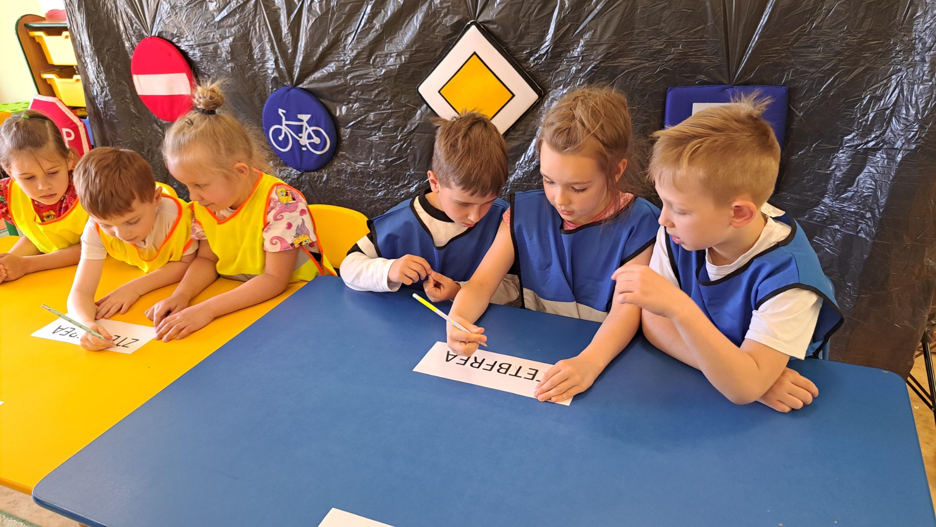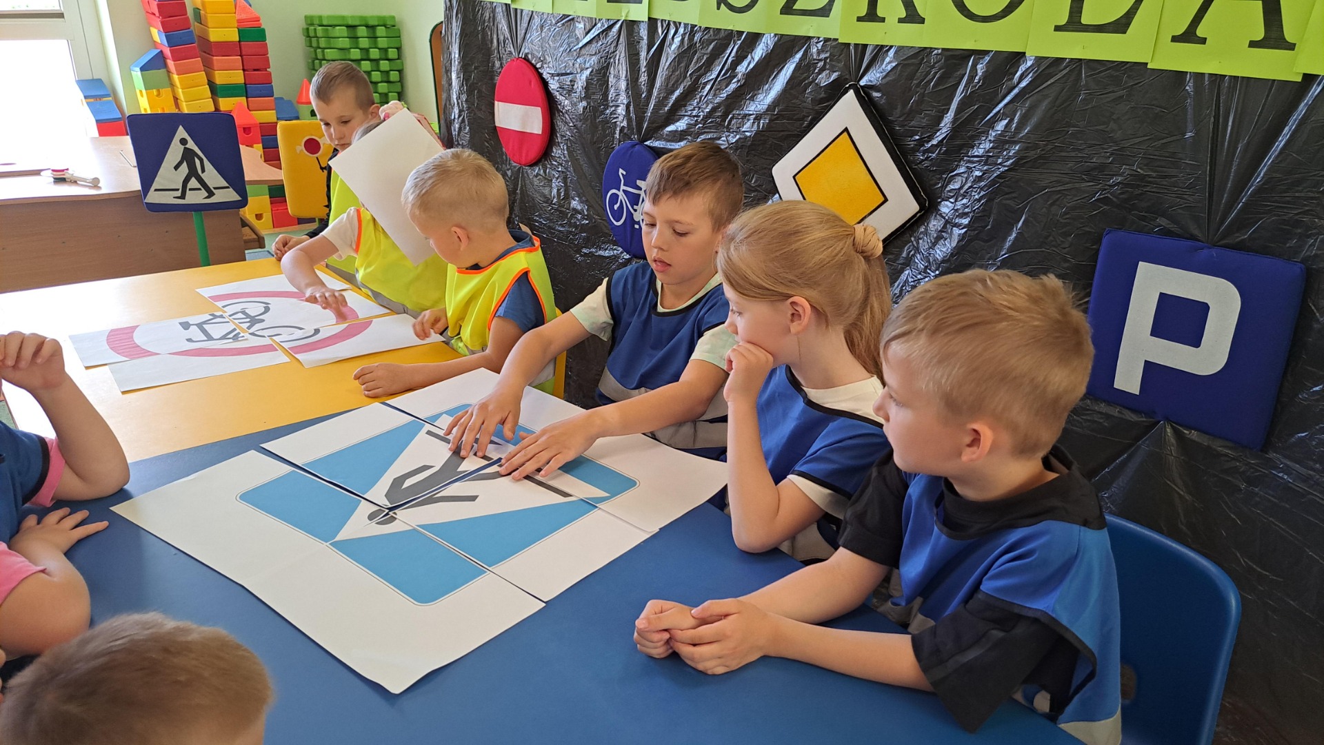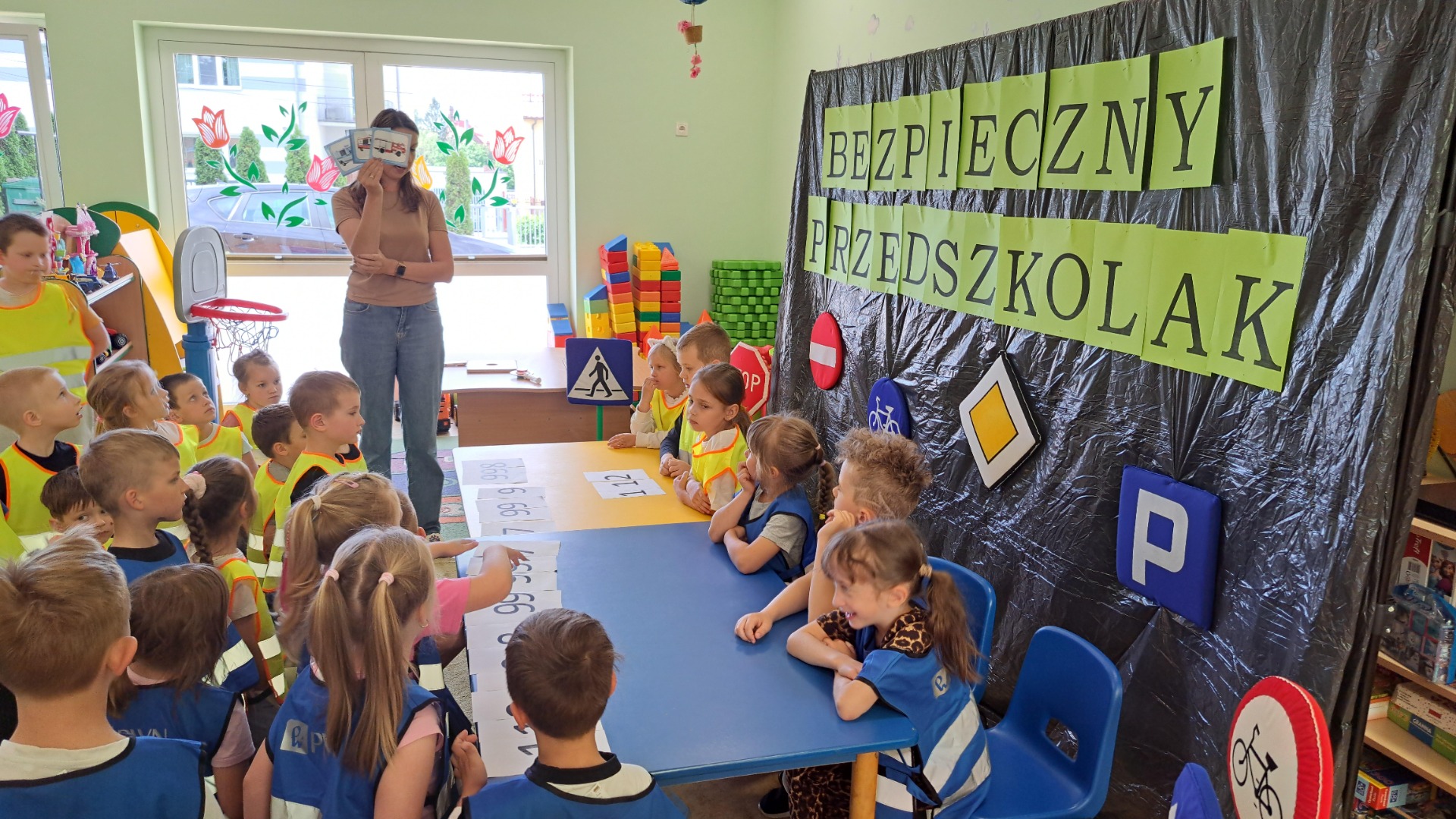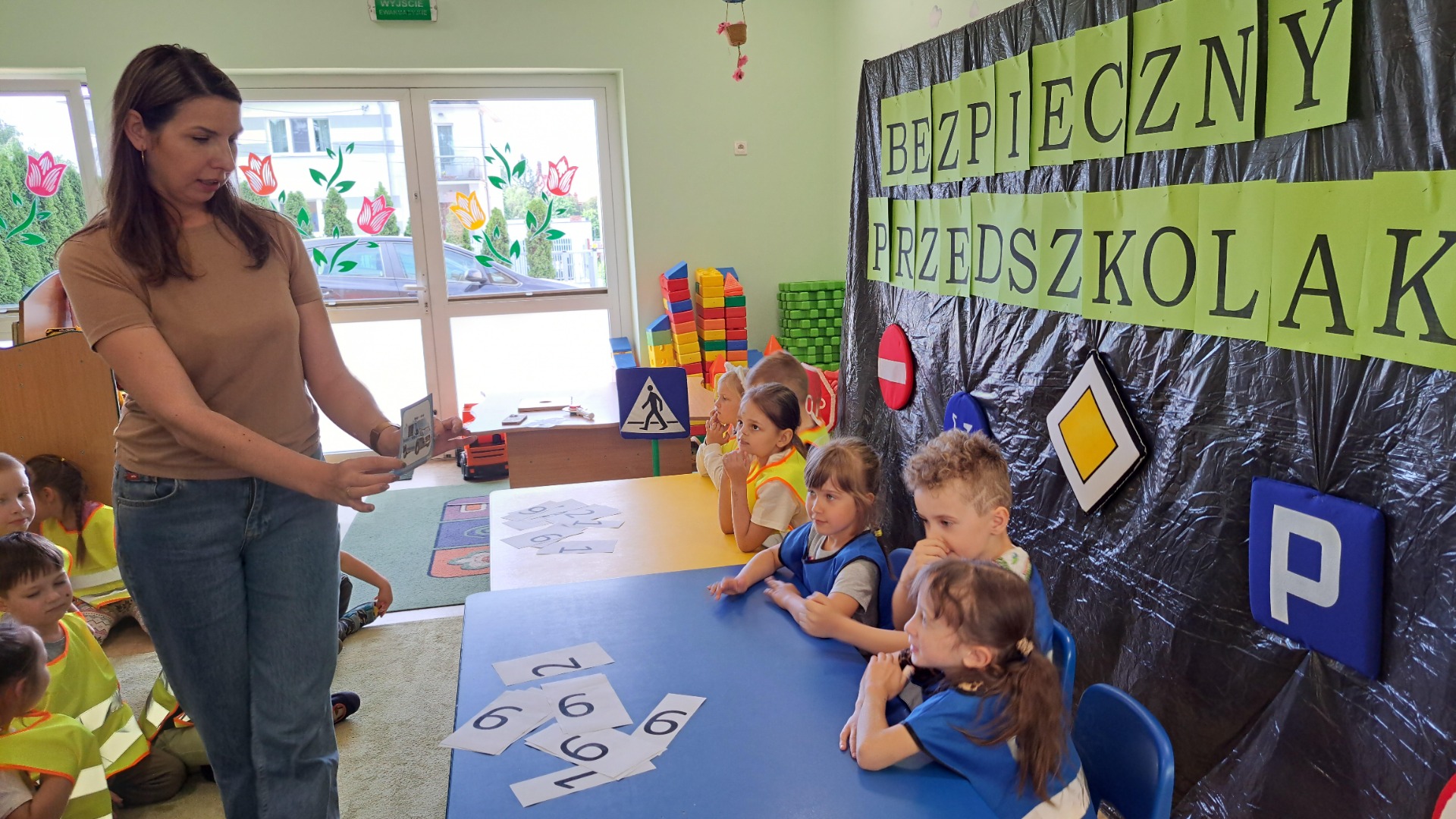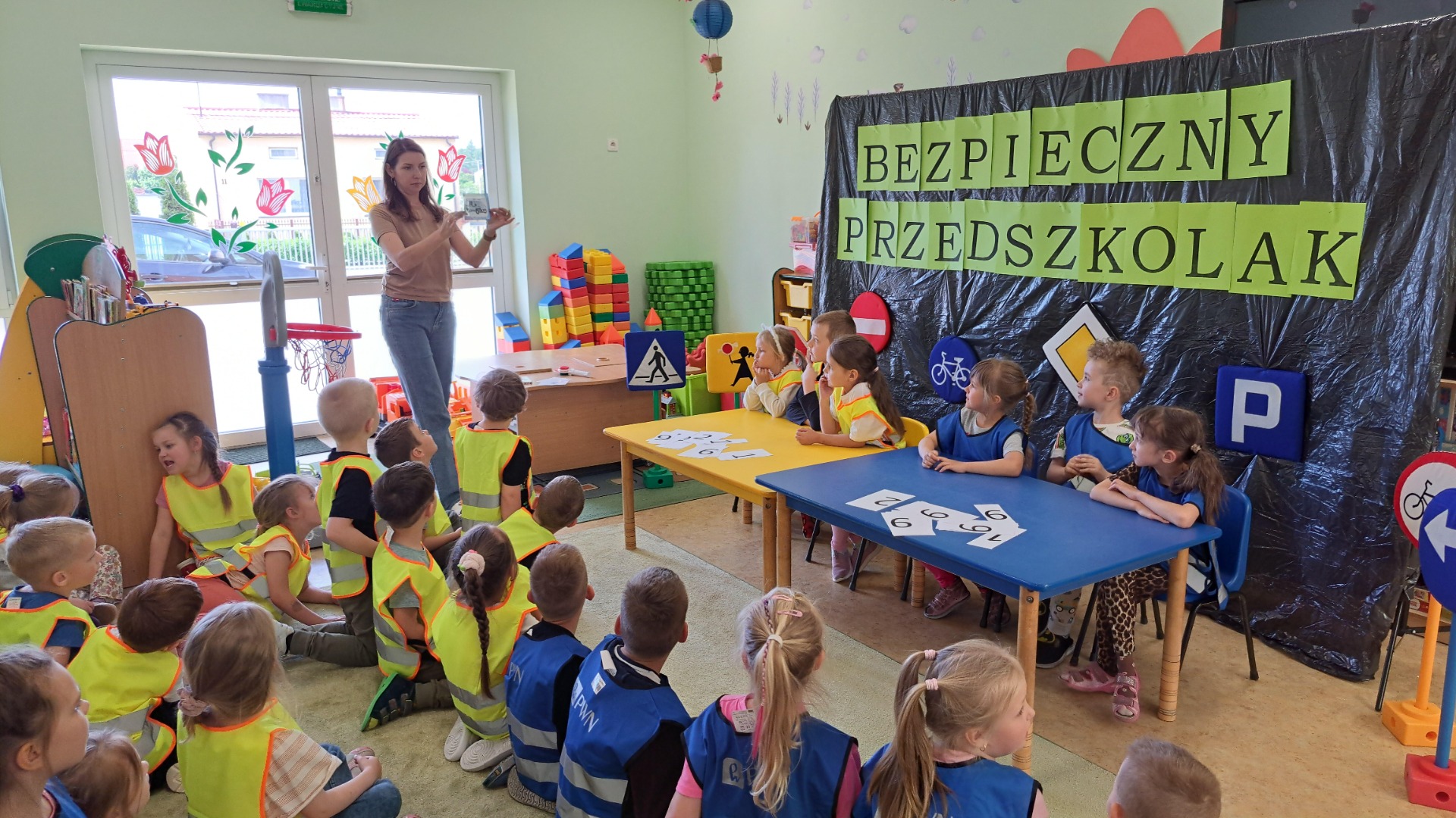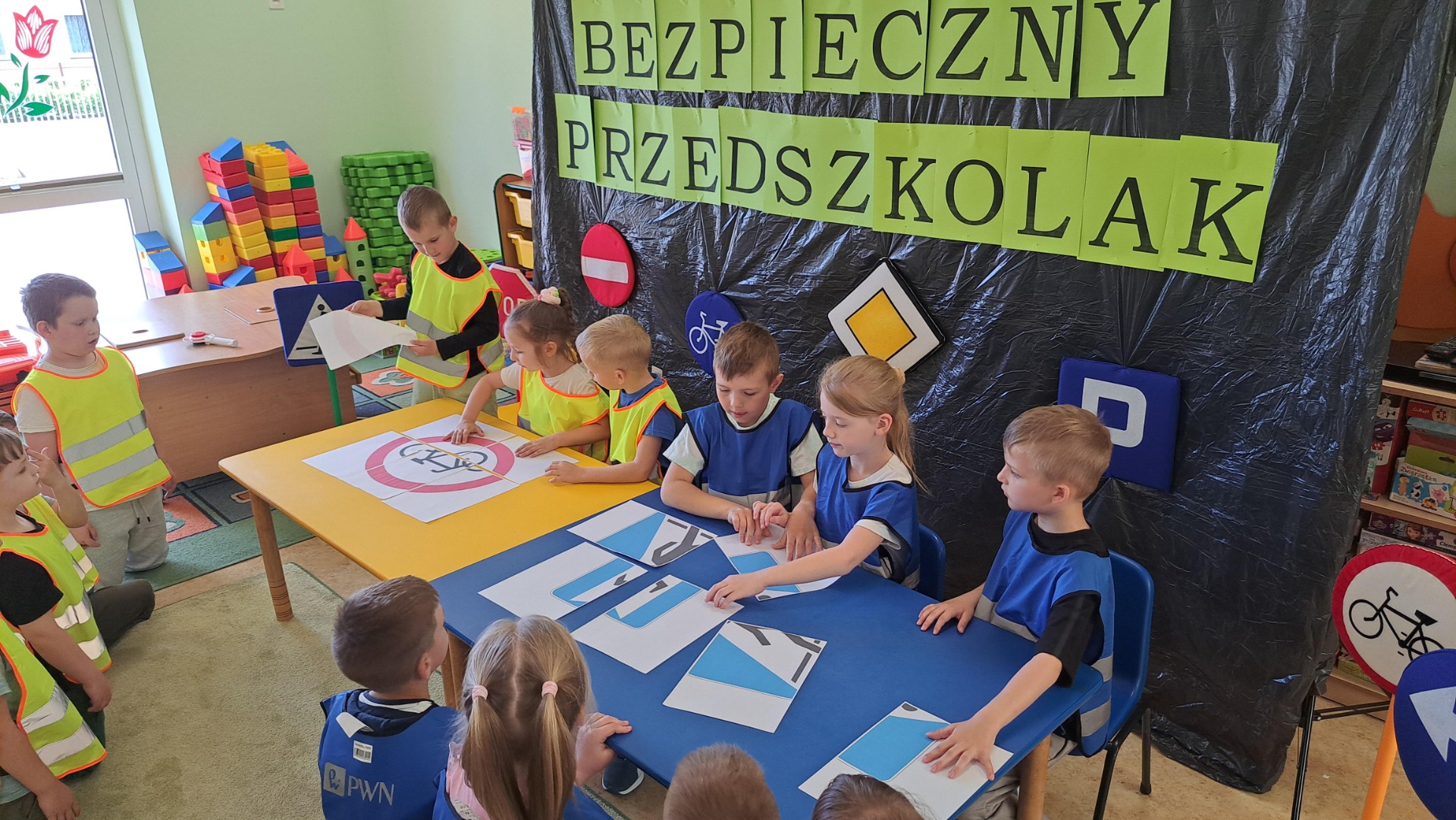 5 maja dwie starsze grupy przedszkolne zmierzyły się się w quizie wiedzy o bezpieczeństwie. Celem quizu było poznanie poziomu wiedzy przedszkolaków z zakresu bezpieczeństwa, utrwalenie prawidłowych i bezpiecznych zachowań w zabawie oraz zabawa z elementem rywalizacji. Dzieci zostały podzielone na 2 zespoły: niebieski i żółty. Zadania jakie miały dzieci do wykonania były zróżnicowane. Składały się na nie takie zabawy jak: rozwiązywanie zagadek, układanie puzzli, rozpoznawanie znaków, dopasowywanie właściwego numeru telefonu do pojazdu uprzywilejowanego, budowanie sygnalizatora świetlnego, ocenianie sytuacji poprzez wskazanie odpowiedniego numeru na lizaku, kompletowanie apteczki, reagowanie na sygnały wzrokowe (czerwone i zielone), poruszanie się po ulicy i pasach zgonie z zasadami.