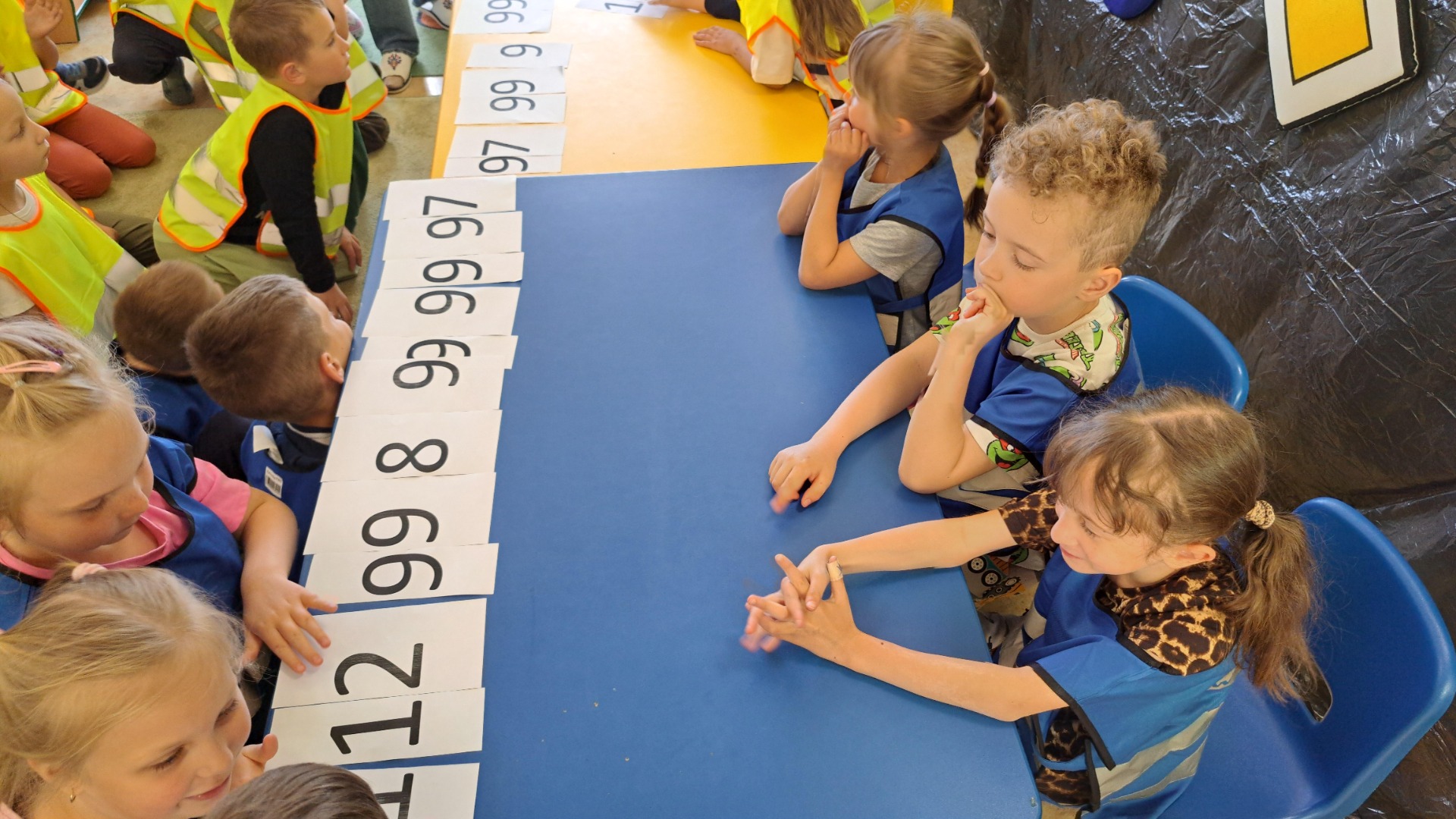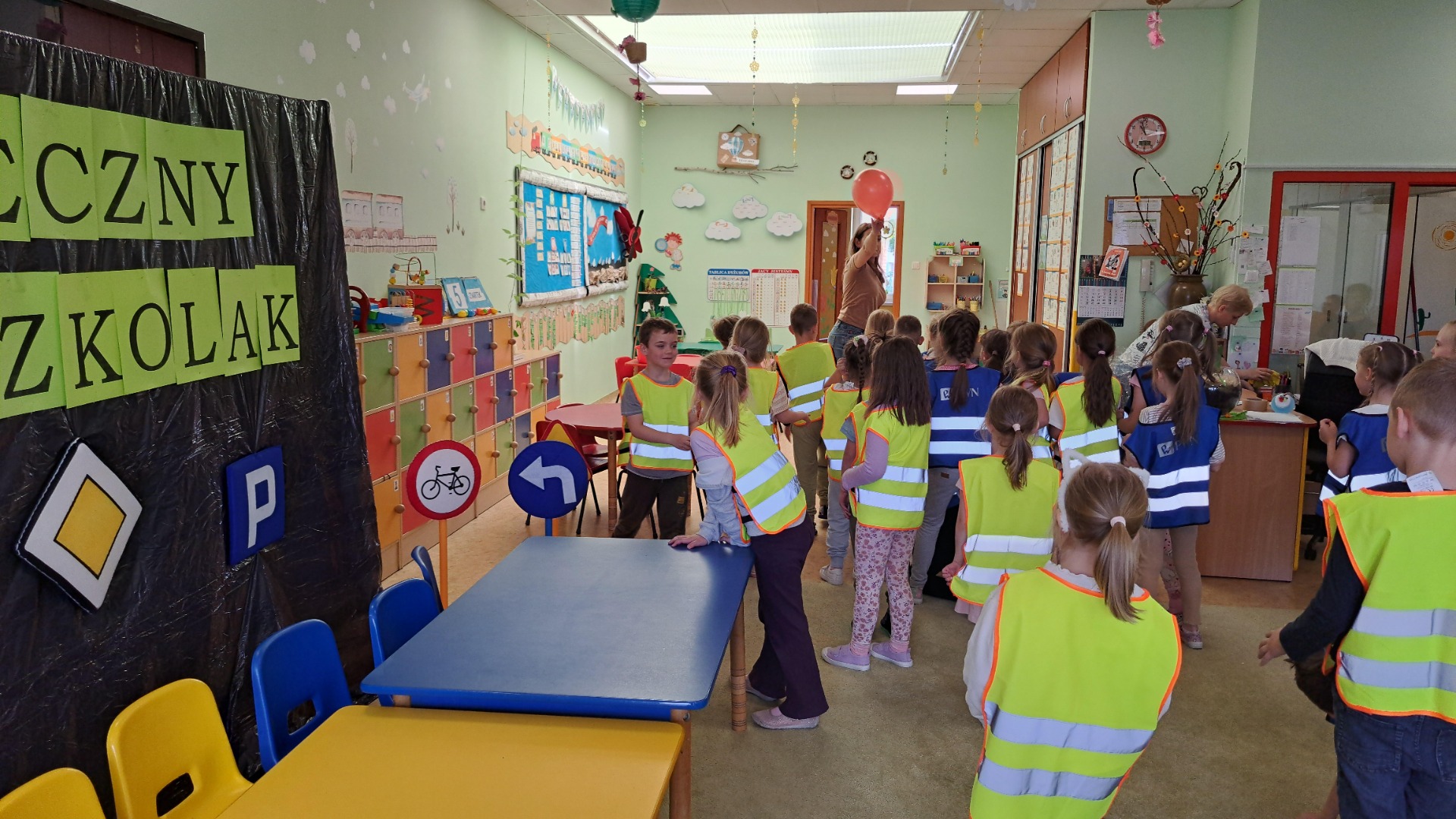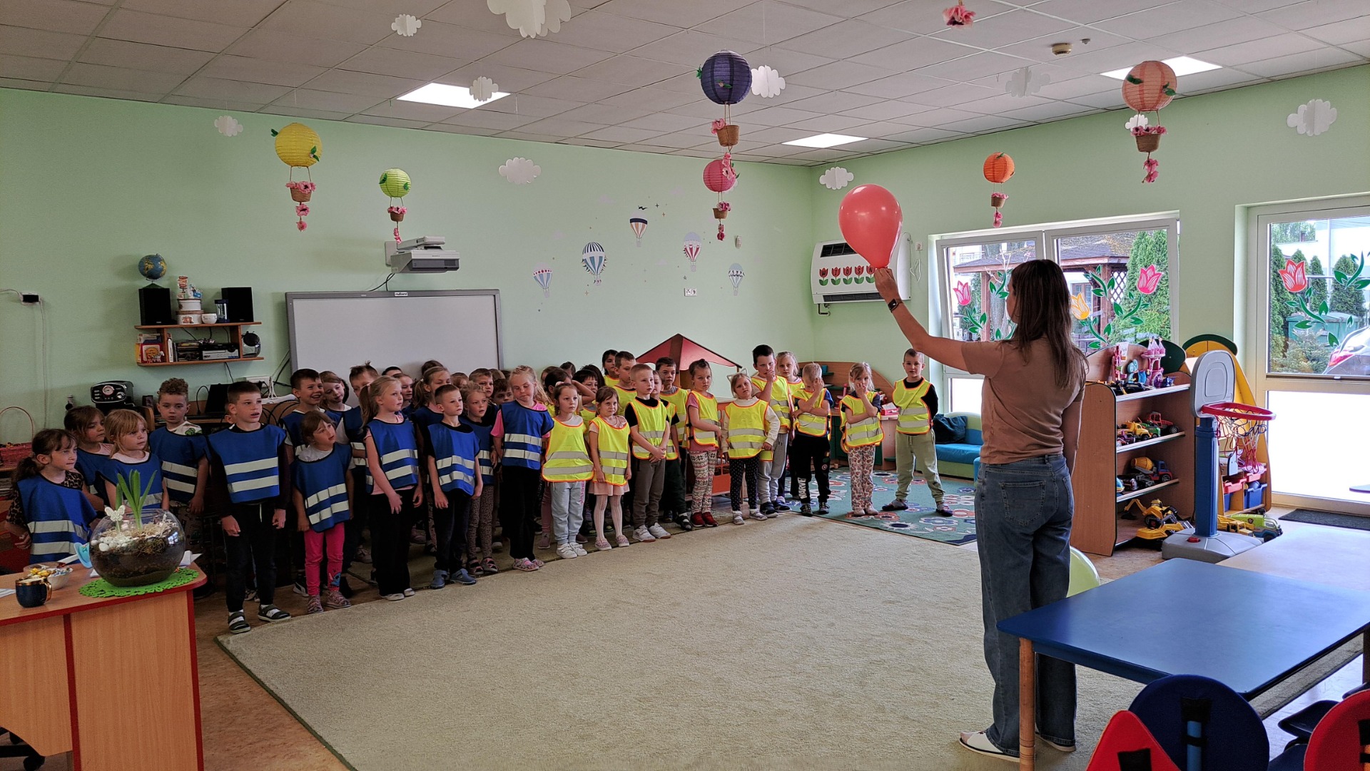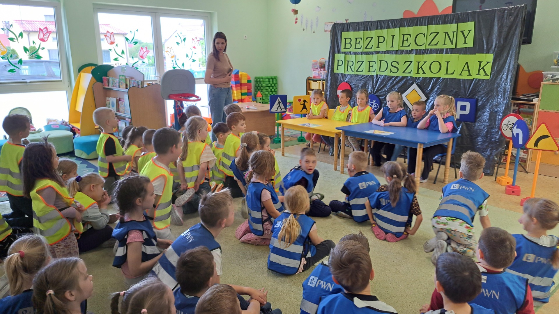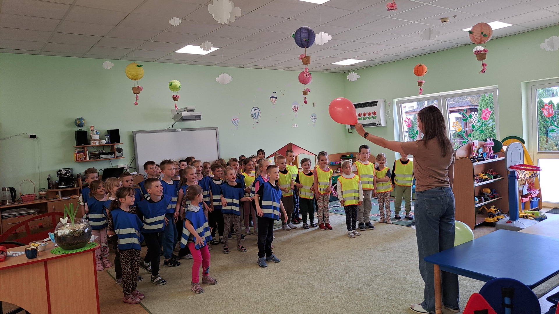 5 maja dwie starsze grupy przedszkolne zmierzyły się się w quizie wiedzy o bezpieczeństwie. Celem quizu było poznanie poziomu wiedzy przedszkolaków z zakresu bezpieczeństwa, utrwalenie prawidłowych i bezpiecznych zachowań w zabawie oraz zabawa z elementem rywalizacji. Dzieci zostały podzielone na 2 zespoły: niebieski i żółty. Zadania jakie miały dzieci do wykonania były zróżnicowane. Składały się na nie takie zabawy jak: rozwiązywanie zagadek, układanie puzzli, rozpoznawanie znaków, dopasowywanie właściwego numeru telefonu do pojazdu uprzywilejowanego, budowanie sygnalizatora świetlnego, ocenianie sytuacji poprzez wskazanie odpowiedniego numeru na lizaku, kompletowanie apteczki, reagowanie na sygnały wzrokowe (czerwone i zielone), poruszanie się po ulicy i pasach zgonie z zasadami.