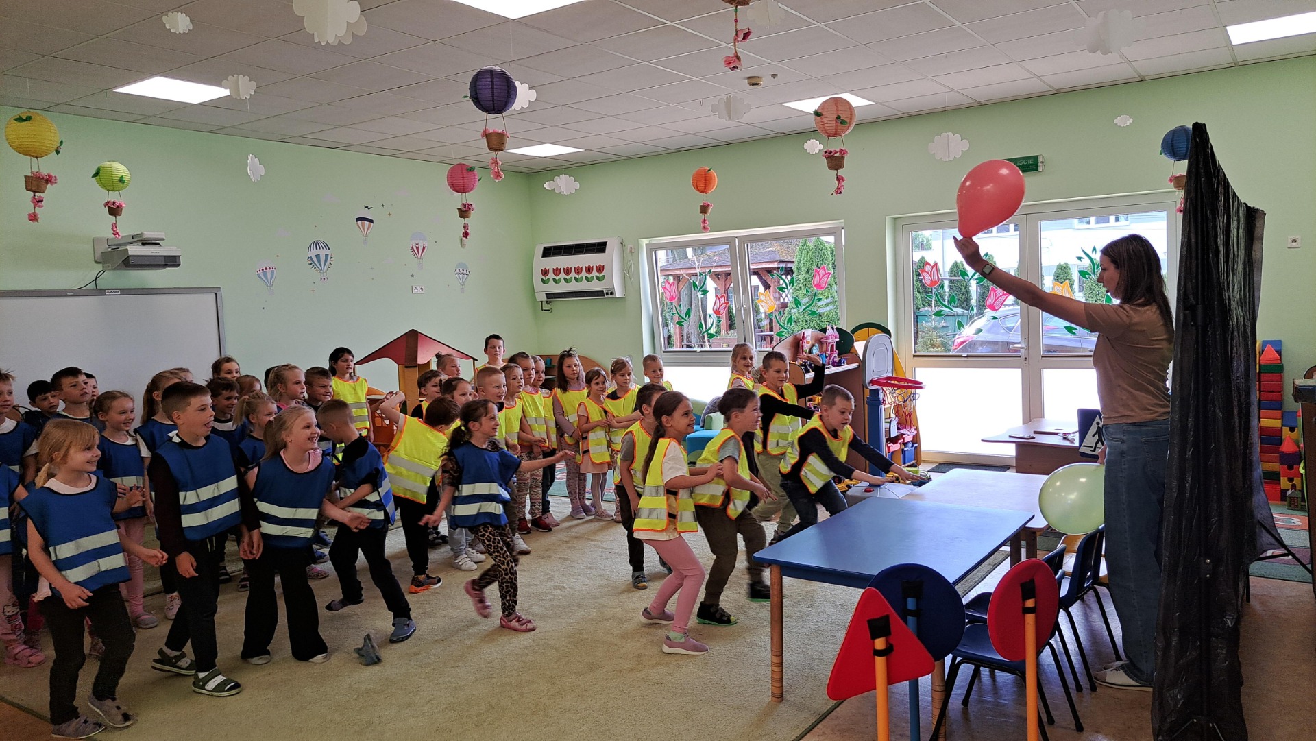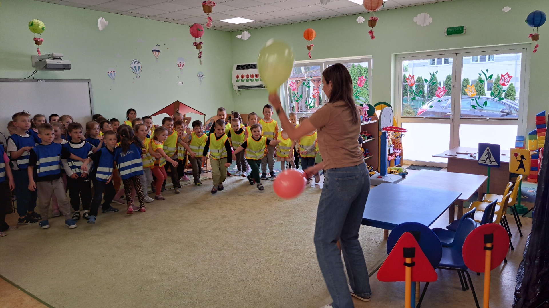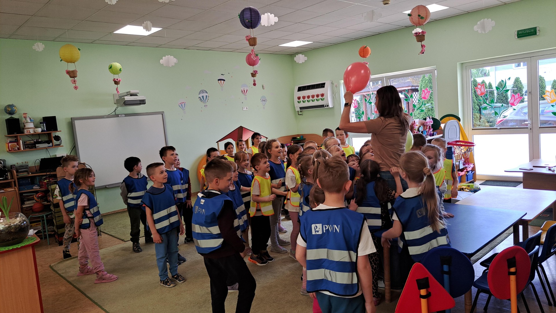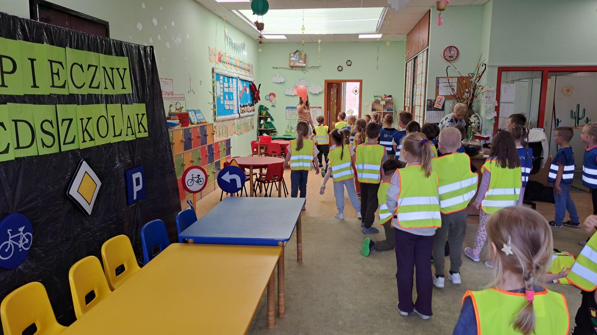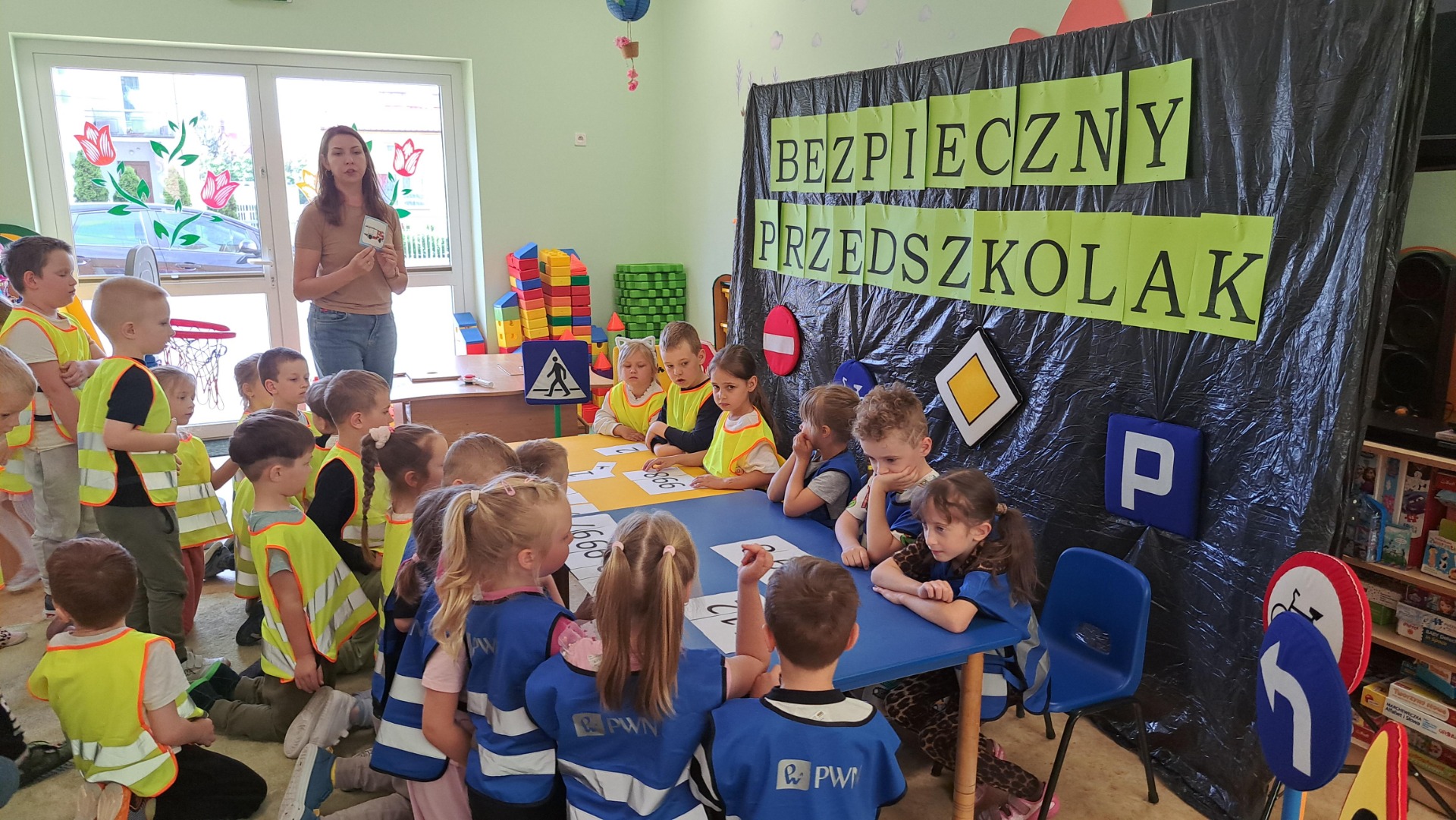 5 maja dwie starsze grupy przedszkolne zmierzyły się się w quizie wiedzy o bezpieczeństwie. Celem quizu było poznanie poziomu wiedzy przedszkolaków z zakresu bezpieczeństwa, utrwalenie prawidłowych i bezpiecznych zachowań w zabawie oraz zabawa z elementem rywalizacji. Dzieci zostały podzielone na 2 zespoły: niebieski i żółty. Zadania jakie miały dzieci do wykonania były zróżnicowane. Składały się na nie takie zabawy jak: rozwiązywanie zagadek, układanie puzzli, rozpoznawanie znaków, dopasowywanie właściwego numeru telefonu do pojazdu uprzywilejowanego, budowanie sygnalizatora świetlnego, ocenianie sytuacji poprzez wskazanie odpowiedniego numeru na lizaku, kompletowanie apteczki, reagowanie na sygnały wzrokowe (czerwone i zielone), poruszanie się po ulicy i pasach zgonie z zasadami.