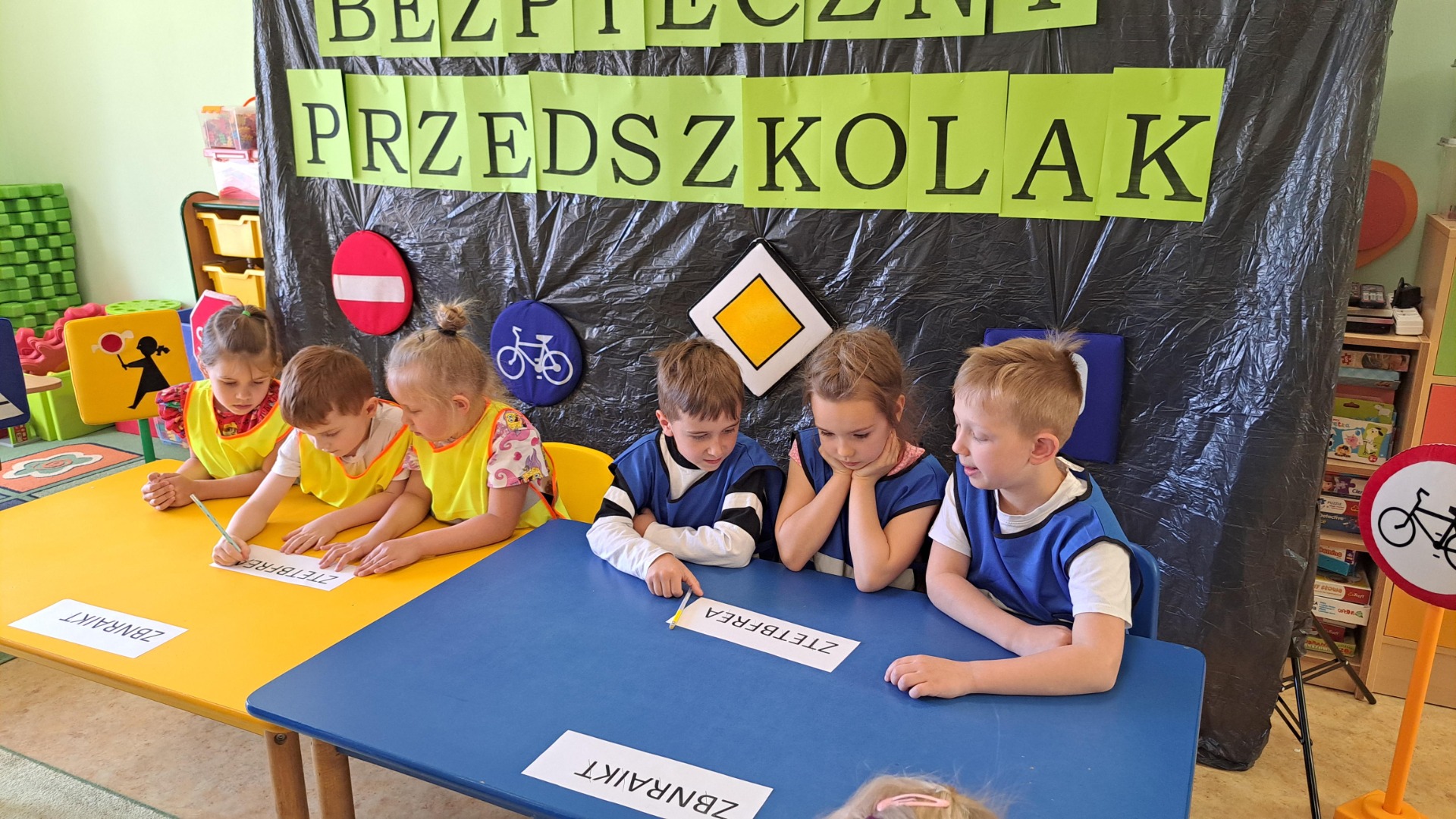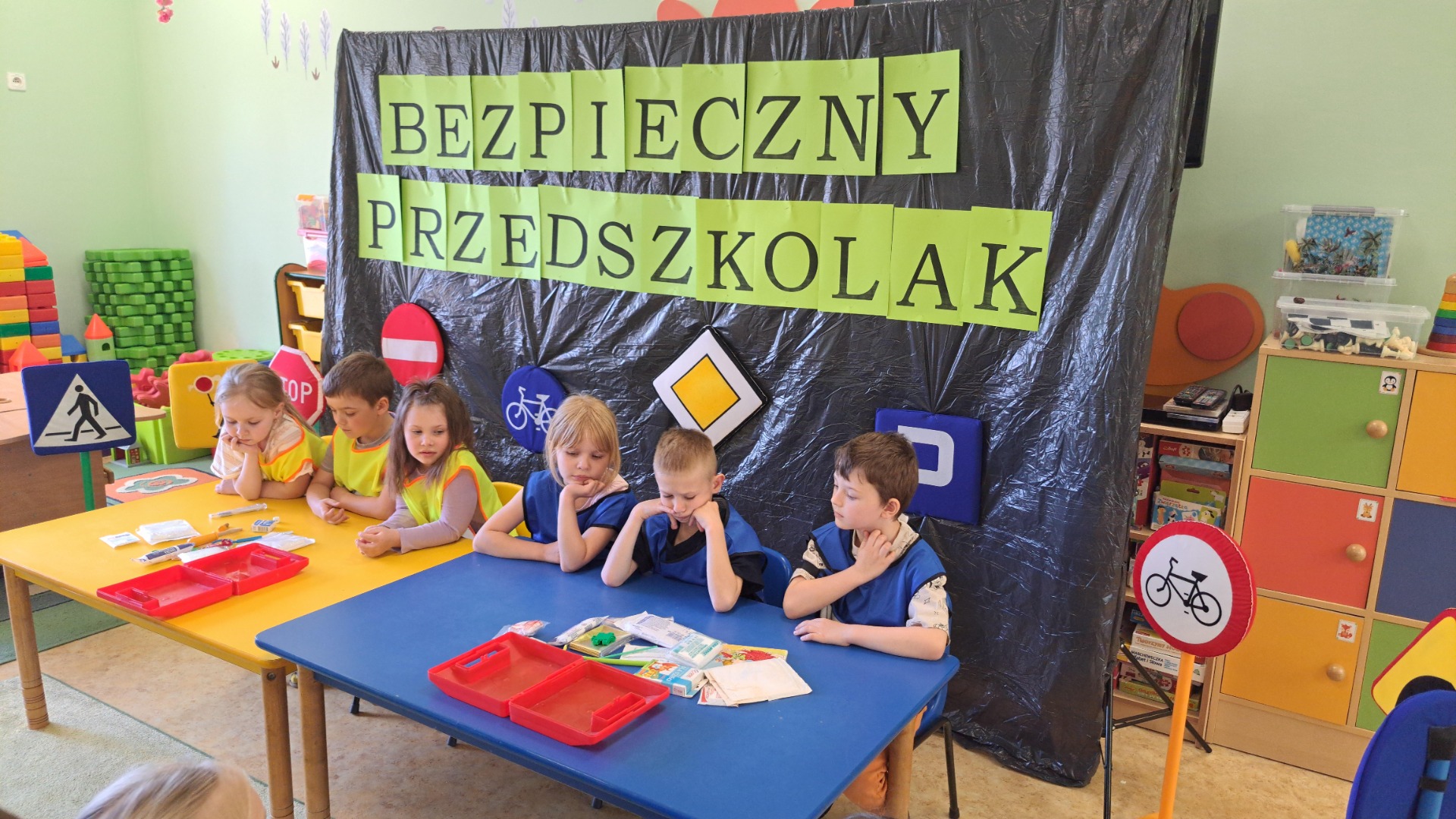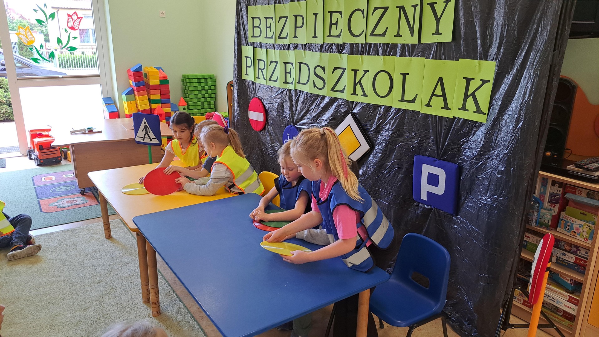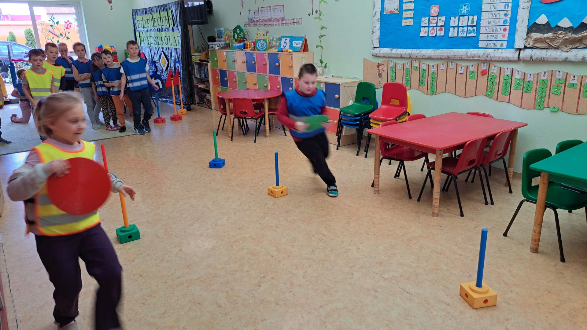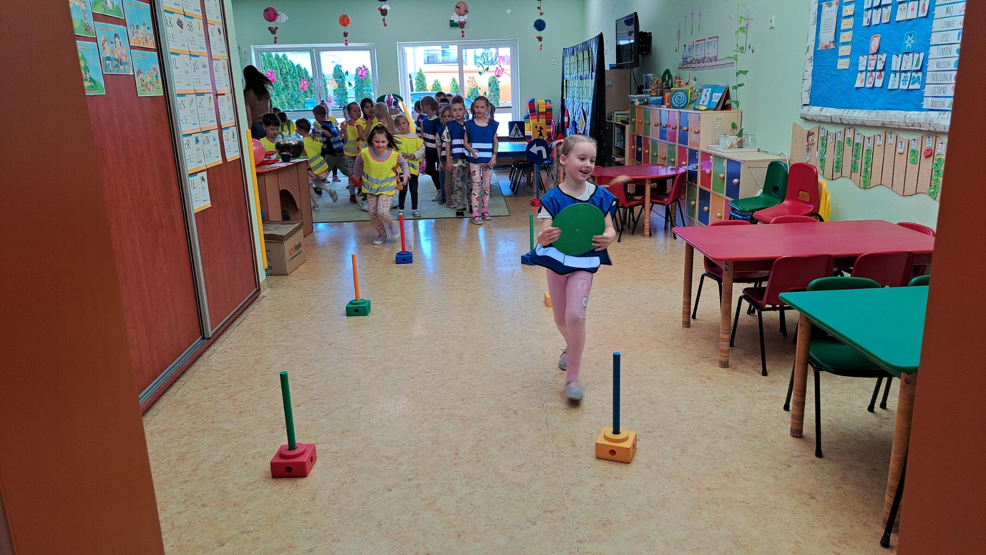 5 maja dwie starsze grupy przedszkolne zmierzyły się się w quizie wiedzy o bezpieczeństwie. Celem quizu było poznanie poziomu wiedzy przedszkolaków z zakresu bezpieczeństwa, utrwalenie prawidłowych i bezpiecznych zachowań w zabawie oraz zabawa z elementem rywalizacji. Dzieci zostały podzielone na 2 zespoły: niebieski i żółty. Zadania jakie miały dzieci do wykonania były zróżnicowane. Składały się na nie takie zabawy jak: rozwiązywanie zagadek, układanie puzzli, rozpoznawanie znaków, dopasowywanie właściwego numeru telefonu do pojazdu uprzywilejowanego, budowanie sygnalizatora świetlnego, ocenianie sytuacji poprzez wskazanie odpowiedniego numeru na lizaku, kompletowanie apteczki, reagowanie na sygnały wzrokowe (czerwone i zielone), poruszanie się po ulicy i pasach zgonie z zasadami. Obie drużyny wykazały się dużą wiedzą o zasadach ruchu drogowego i wyczerpująco odpowiadały na pytania. Gratulujemy wszystkim dzieciom tak bogatej wiedzy w tym temacie :).