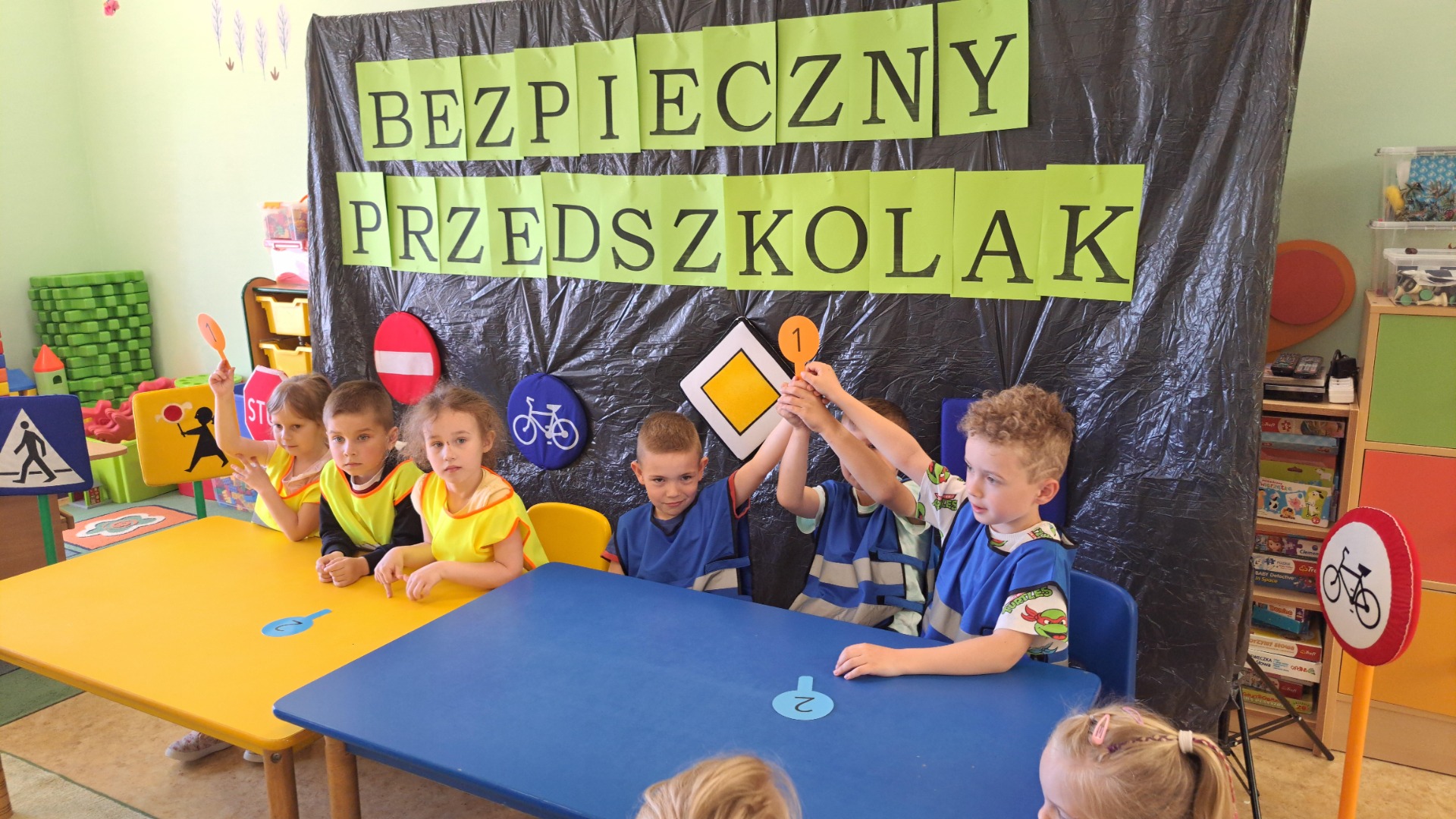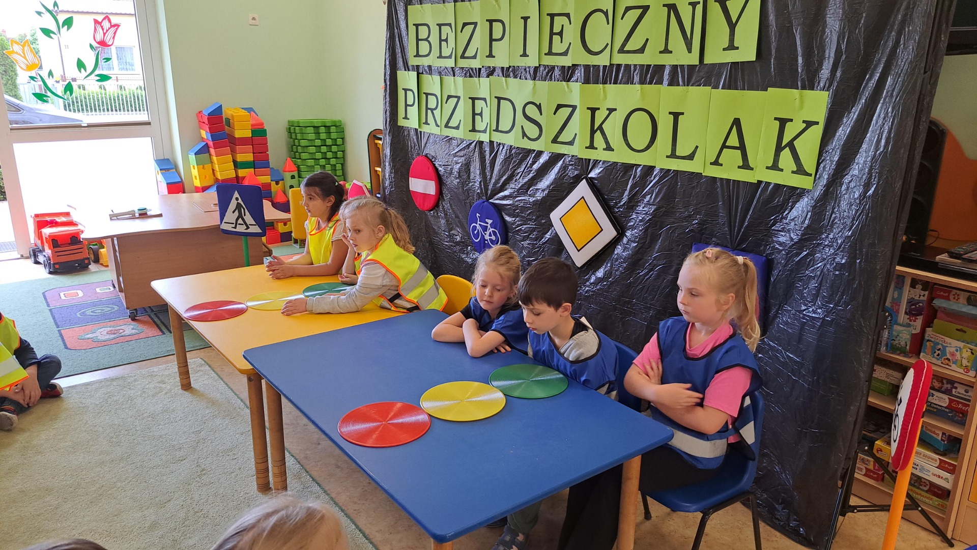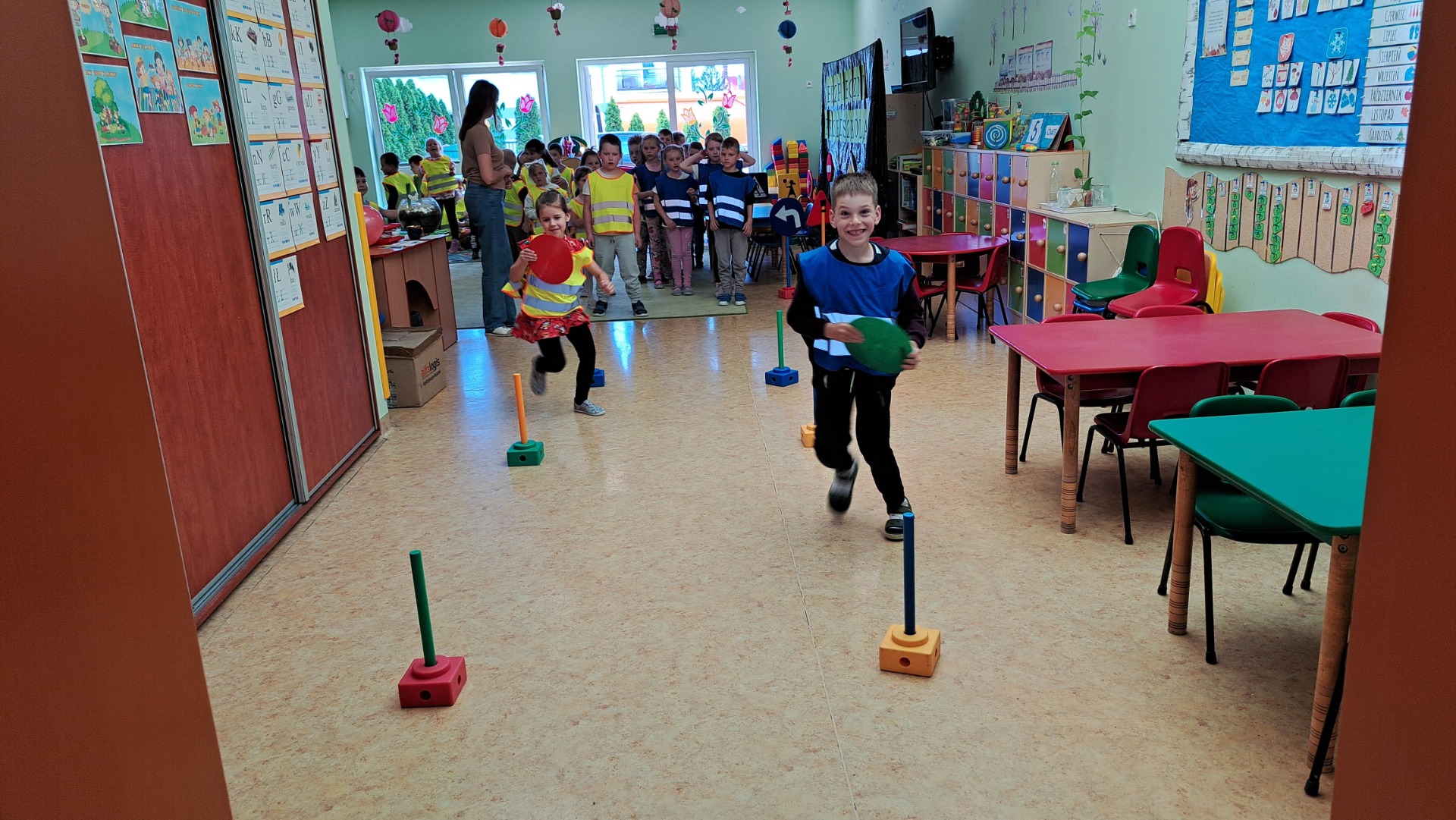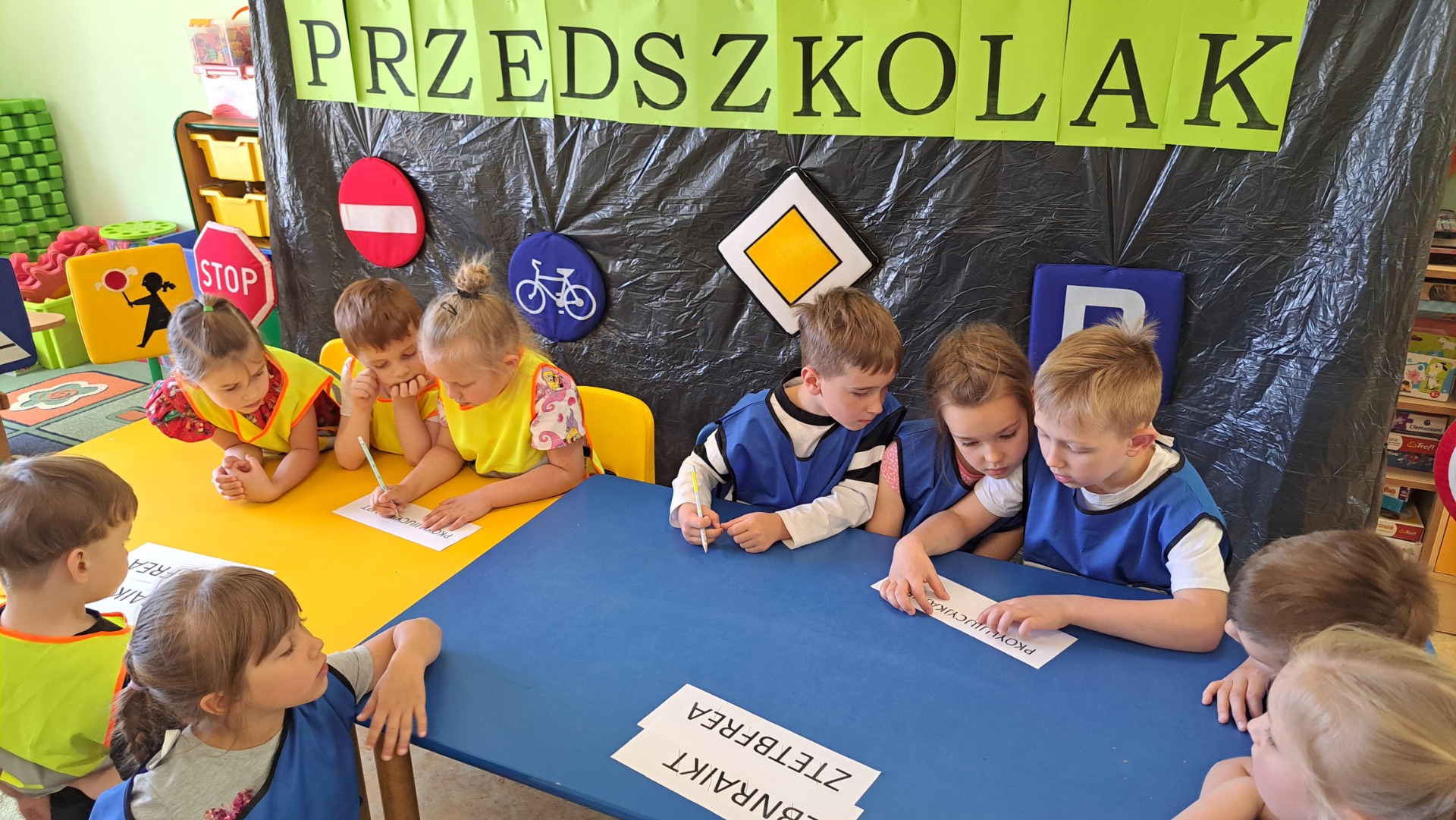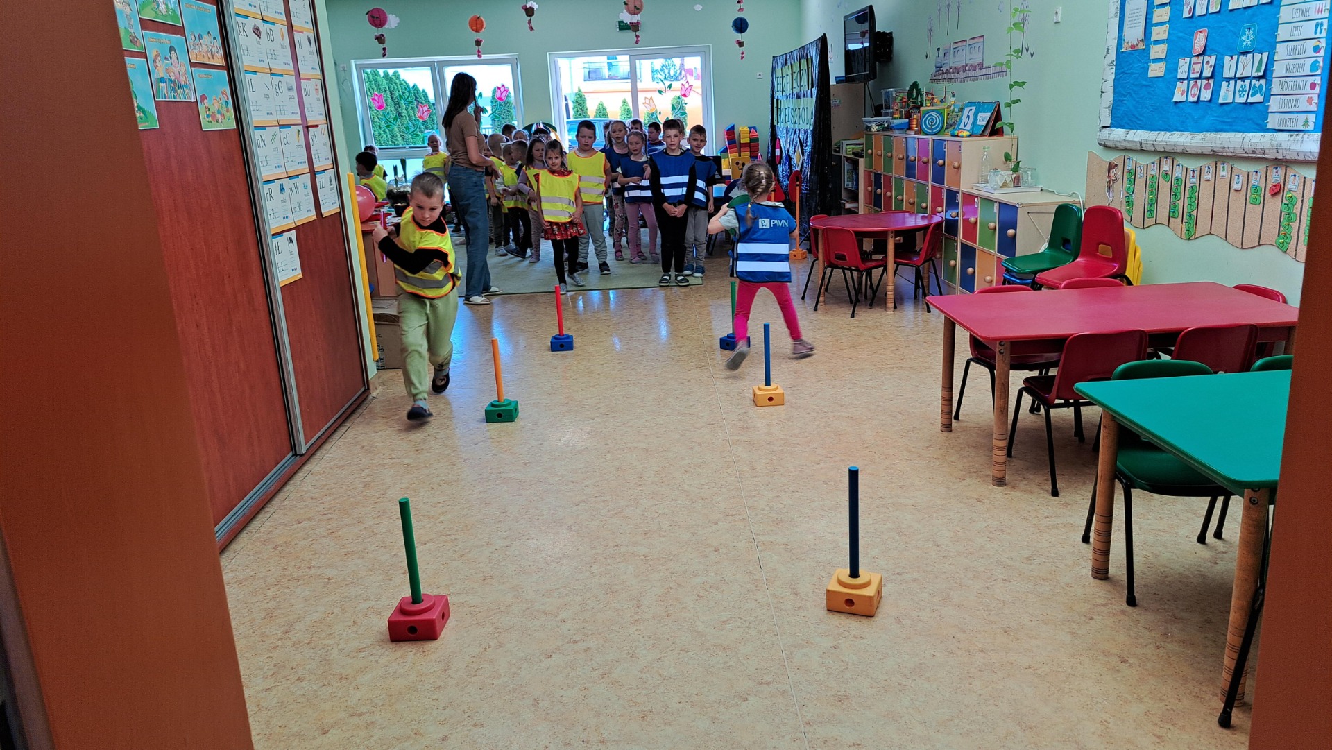 5 maja dwie starsze grupy przedszkolne zmierzyły się się w quizie wiedzy o bezpieczeństwie. Celem quizu było poznanie poziomu wiedzy przedszkolaków z zakresu bezpieczeństwa, utrwalenie prawidłowych i bezpiecznych zachowań w zabawie oraz zabawa z elementem rywalizacji. Dzieci zostały podzielone na 2 zespoły: niebieski i żółty. Zadania jakie miały dzieci do wykonania były zróżnicowane. Składały się na nie takie zabawy jak: rozwiązywanie zagadek, układanie puzzli, rozpoznawanie znaków, dopasowywanie właściwego numeru telefonu do pojazdu uprzywilejowanego, budowanie sygnalizatora świetlnego, ocenianie sytuacji poprzez wskazanie odpowiedniego numeru na lizaku, kompletowanie apteczki, reagowanie na sygnały wzrokowe (czerwone i zielone), poruszanie się po ulicy i pasach zgonie z zasadami. Obie drużyny wykazały się dużą wiedzą o zasadach ruchu drogowego i wyczerpująco odpowiadały na pytania. Gratulujemy wszystkim dzieciom tak bogatej wiedzy w tym temacie :).