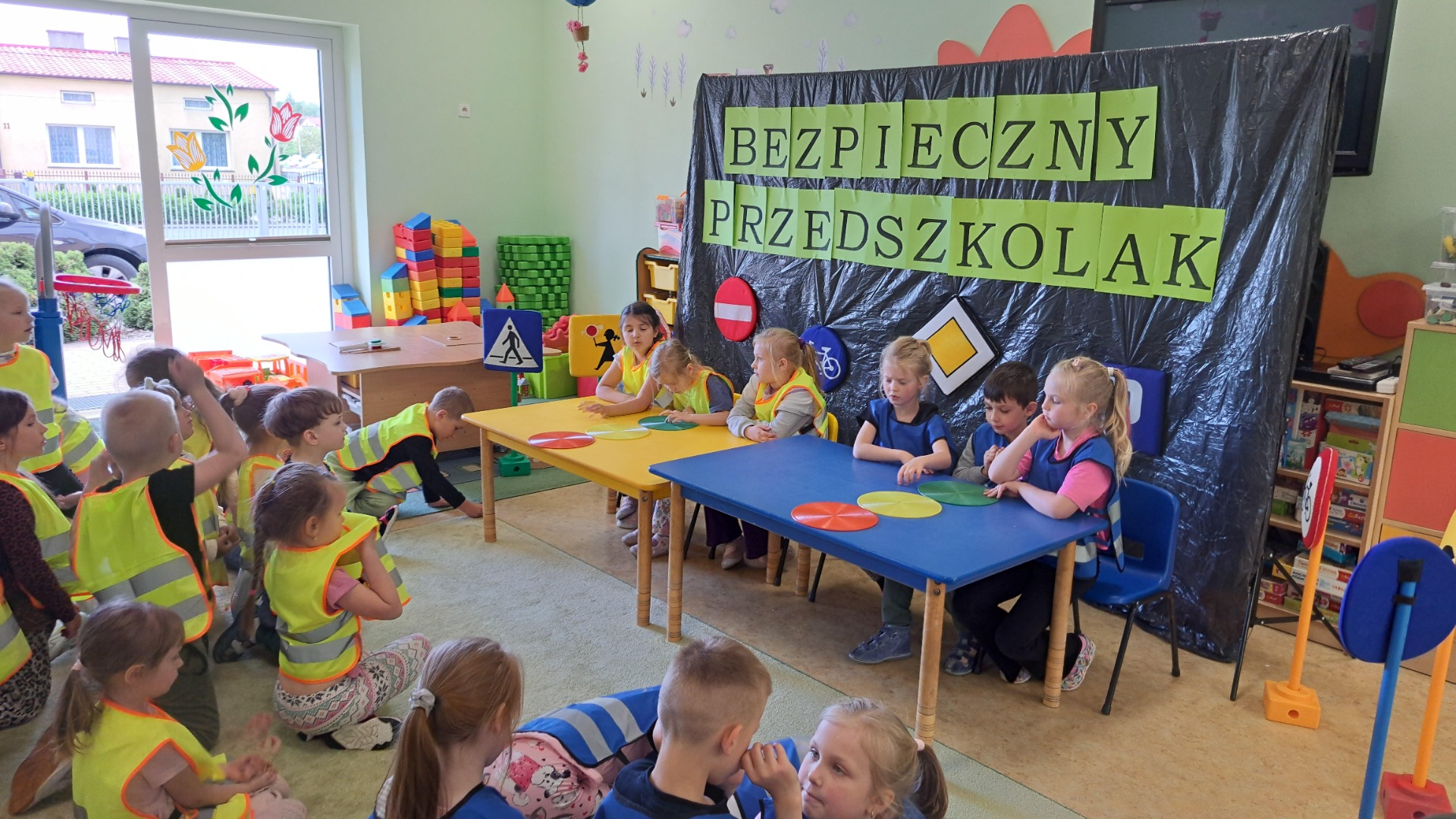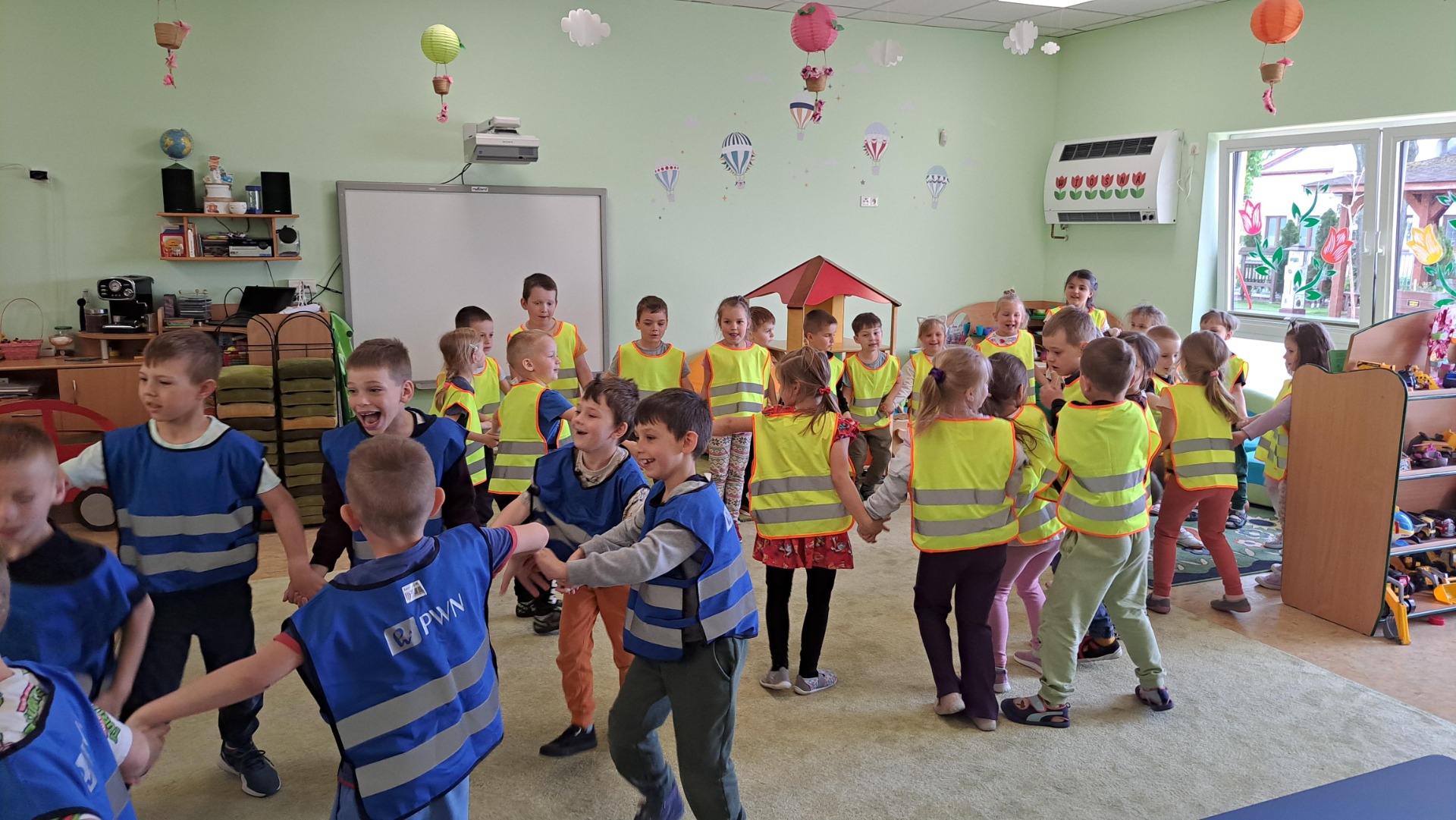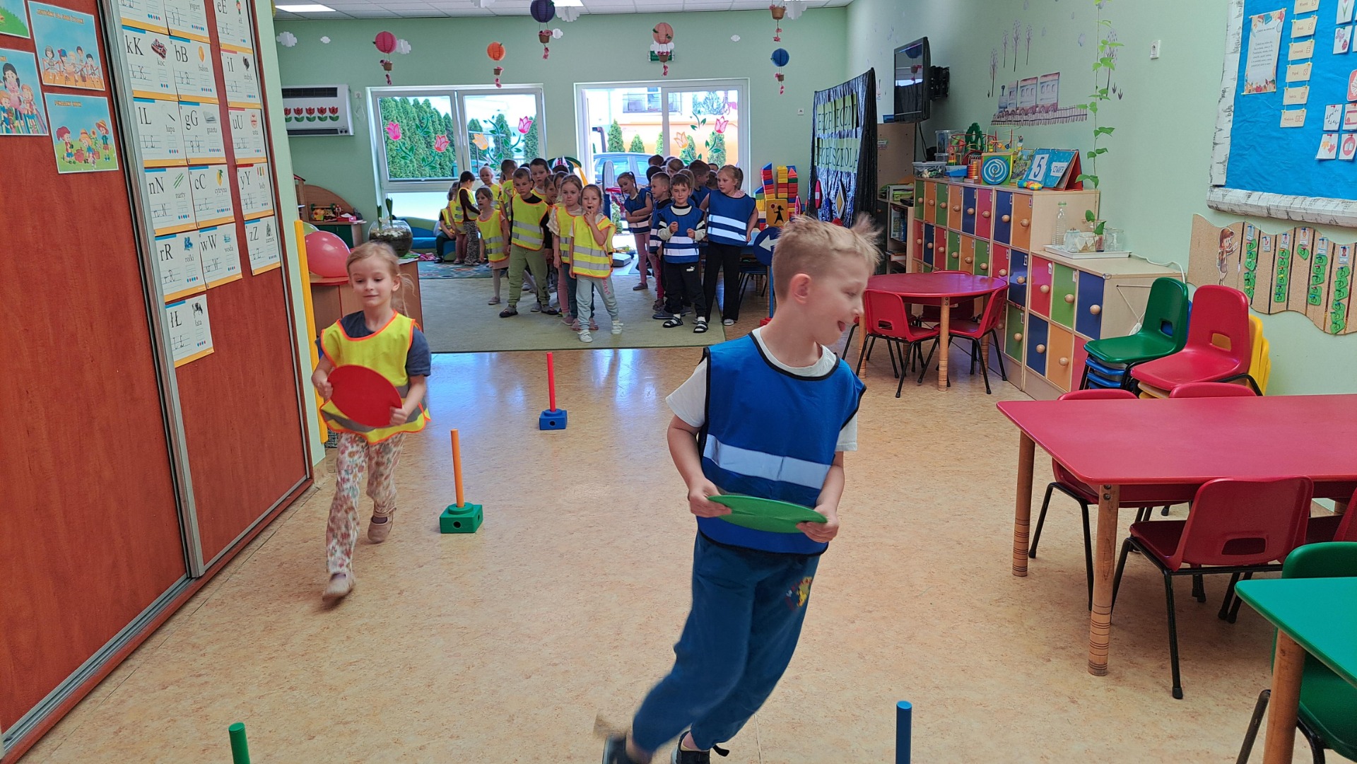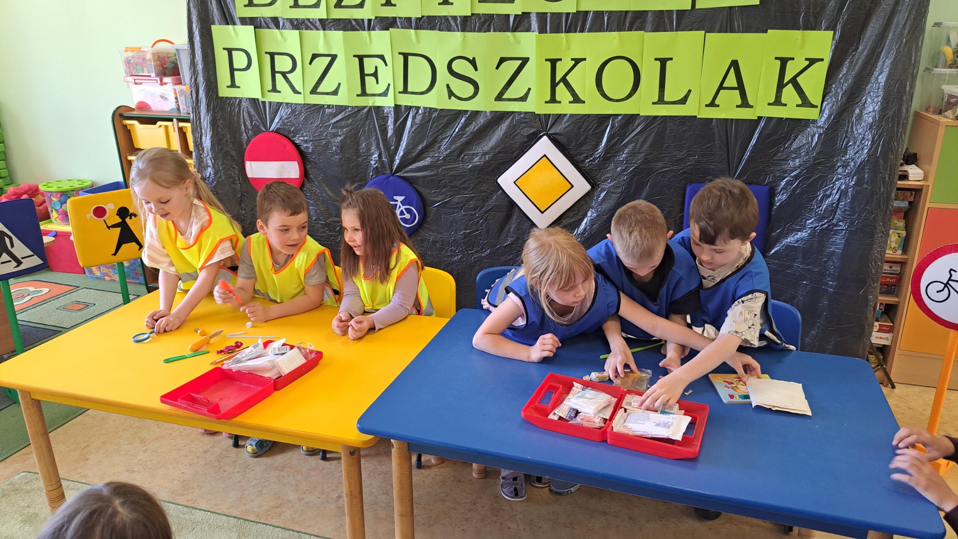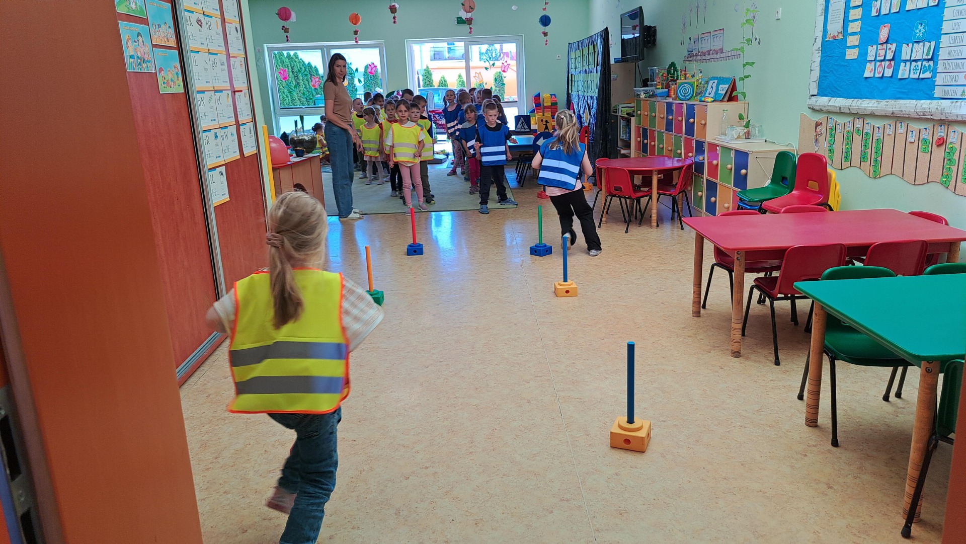 5 maja dwie starsze grupy przedszkolne zmierzyły się się w quizie wiedzy o bezpieczeństwie. Celem quizu było poznanie poziomu wiedzy przedszkolaków z zakresu bezpieczeństwa, utrwalenie prawidłowych i bezpiecznych zachowań w zabawie oraz zabawa z elementem rywalizacji. Dzieci zostały podzielone na 2 zespoły: niebieski i żółty. Zadania jakie miały dzieci do wykonania były zróżnicowane. Składały się na nie takie zabawy jak: rozwiązywanie zagadek, układanie puzzli, rozpoznawanie znaków, dopasowywanie właściwego numeru telefonu do pojazdu uprzywilejowanego, budowanie sygnalizatora świetlnego, ocenianie sytuacji poprzez wskazanie odpowiedniego numeru na lizaku, kompletowanie apteczki, reagowanie na sygnały wzrokowe (czerwone i zielone), poruszanie się po ulicy i pasach zgonie z zasadami. Obie drużyny wykazały się dużą wiedzą o zasadach ruchu drogowego i wyczerpująco odpowiadały na pytania. Gratulujemy wszystkim dzieciom tak bogatej wiedzy w tym temacie :).