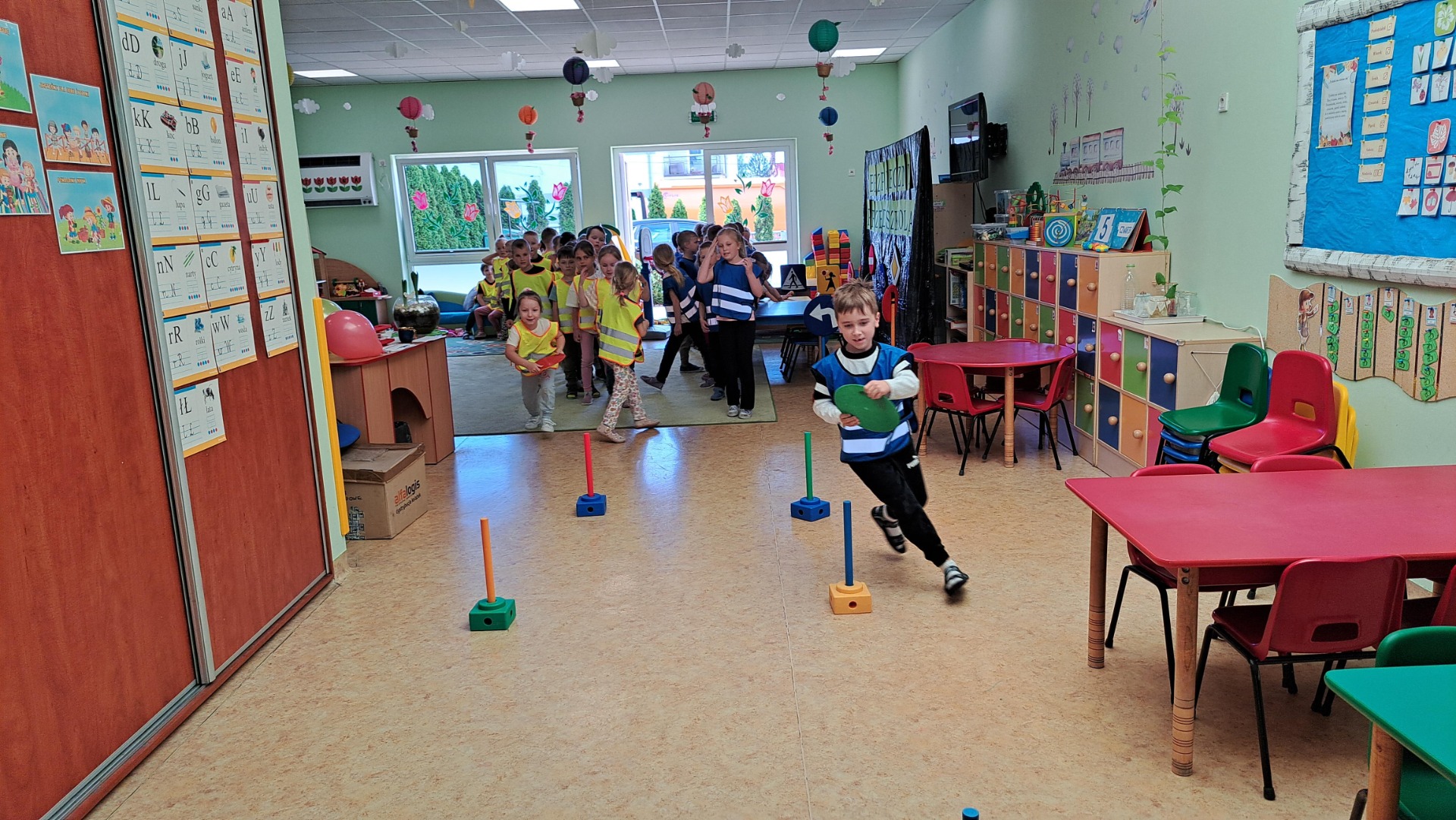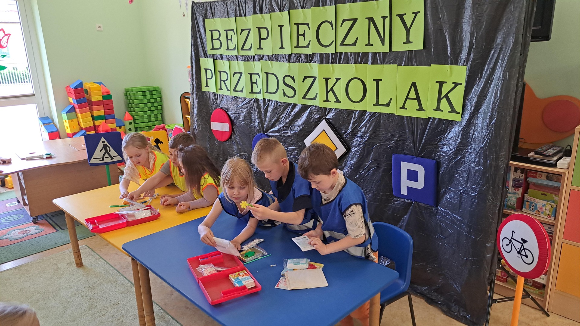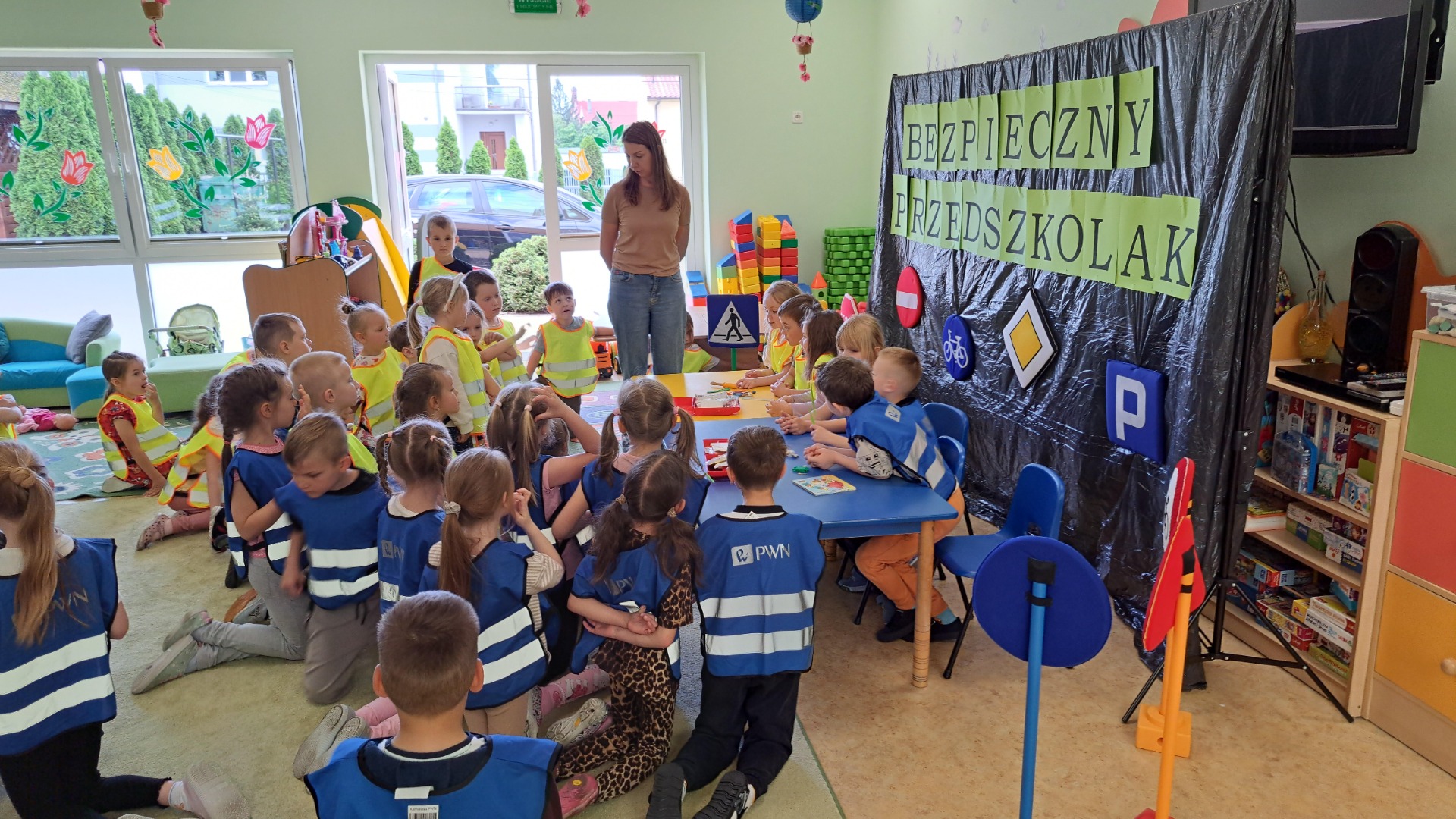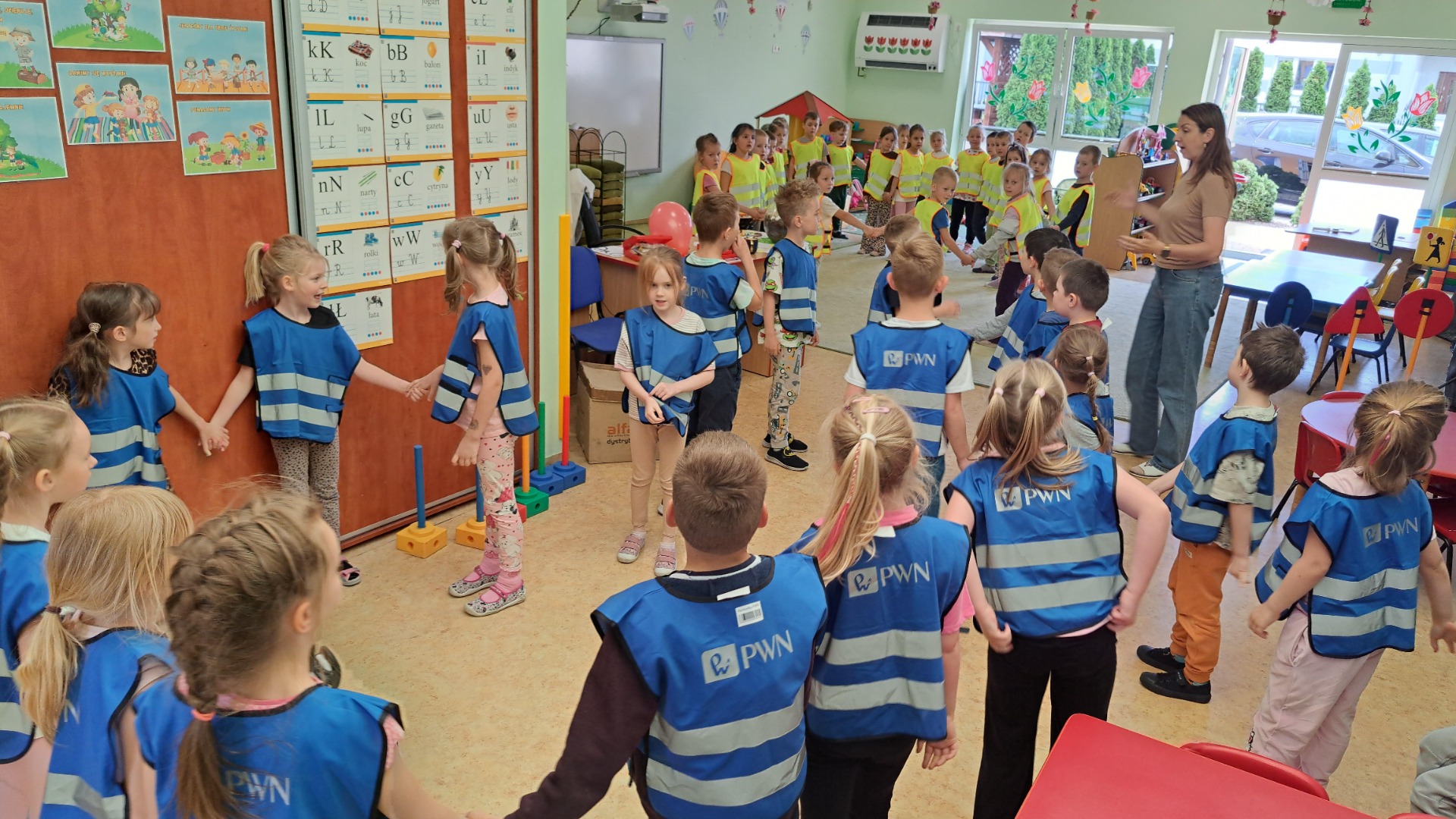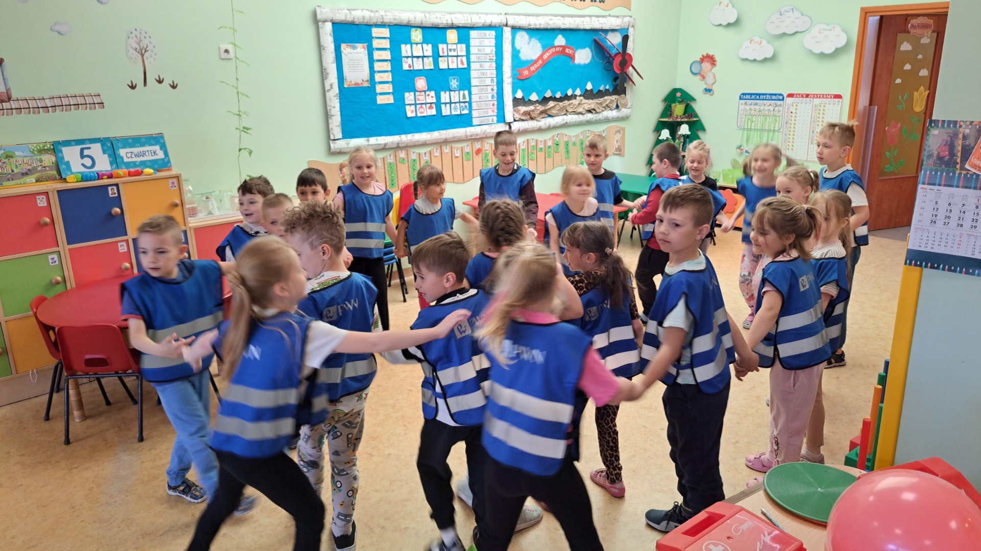 5 maja dwie starsze grupy przedszkolne zmierzyły się się w quizie wiedzy o bezpieczeństwie. Celem quizu było poznanie poziomu wiedzy przedszkolaków z zakresu bezpieczeństwa, utrwalenie prawidłowych i bezpiecznych zachowań w zabawie oraz zabawa z elementem rywalizacji. Dzieci zostały podzielone na 2 zespoły: niebieski i żółty. Zadania jakie miały dzieci do wykonania były zróżnicowane. Składały się na nie takie zabawy jak: rozwiązywanie zagadek, układanie puzzli, rozpoznawanie znaków, dopasowywanie właściwego numeru telefonu do pojazdu uprzywilejowanego, budowanie sygnalizatora świetlnego, ocenianie sytuacji poprzez wskazanie odpowiedniego numeru na lizaku, kompletowanie apteczki, reagowanie na sygnały wzrokowe (czerwone i zielone), poruszanie się po ulicy i pasach zgonie z zasadami. Obie drużyny wykazały się dużą wiedzą o zasadach ruchu drogowego i wyczerpująco odpowiadały na pytania. Gratulujemy wszystkim dzieciom tak bogatej wiedzy w tym temacie :).