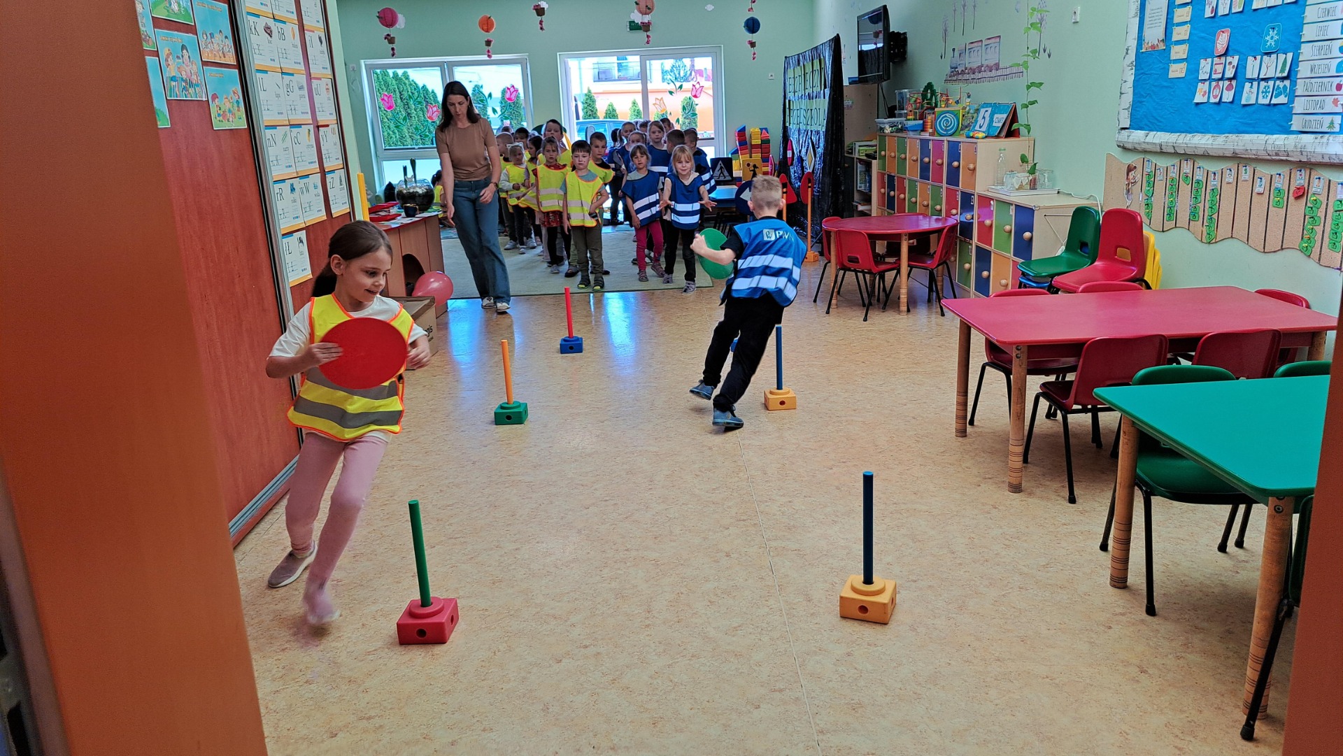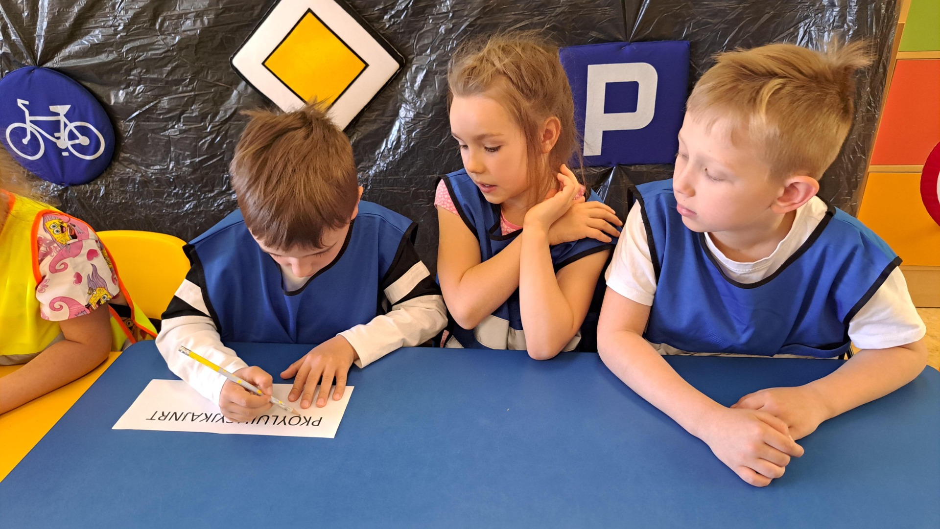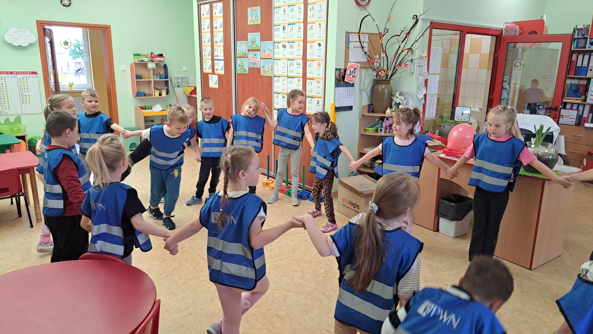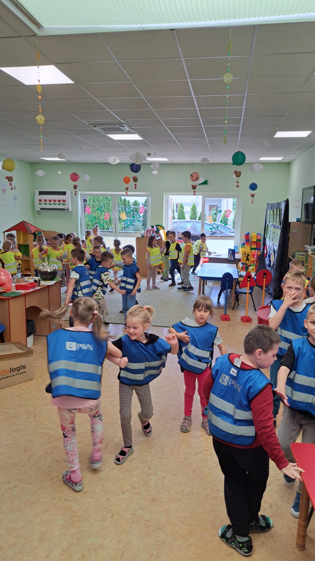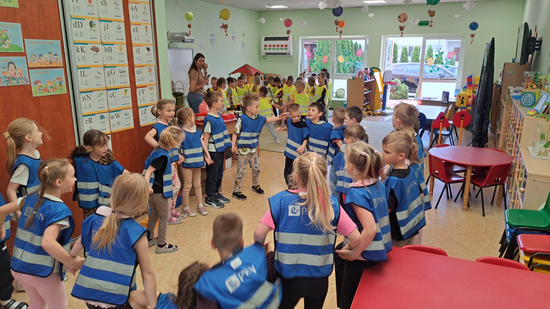 5 maja dwie starsze grupy przedszkolne zmierzyły się się w quizie wiedzy o bezpieczeństwie. Celem quizu było poznanie poziomu wiedzy przedszkolaków z zakresu bezpieczeństwa, utrwalenie prawidłowych i bezpiecznych zachowań w zabawie oraz zabawa z elementem rywalizacji. Dzieci zostały podzielone na 2 zespoły: niebieski i żółty. Zadania jakie miały dzieci do wykonania były zróżnicowane. Składały się na nie takie zabawy jak: rozwiązywanie zagadek, układanie puzzli, rozpoznawanie znaków, dopasowywanie właściwego numeru telefonu do pojazdu uprzywilejowanego, budowanie sygnalizatora świetlnego, ocenianie sytuacji poprzez wskazanie odpowiedniego numeru na lizaku, kompletowanie apteczki, reagowanie na sygnały wzrokowe (czerwone i zielone), poruszanie się po ulicy i pasach zgonie z zasadami. Obie drużyny wykazały się dużą wiedzą o zasadach ruchu drogowego i wyczerpująco odpowiadały na pytania. Gratulujemy wszystkim dzieciom tak bogatej wiedzy w tym temacie :).