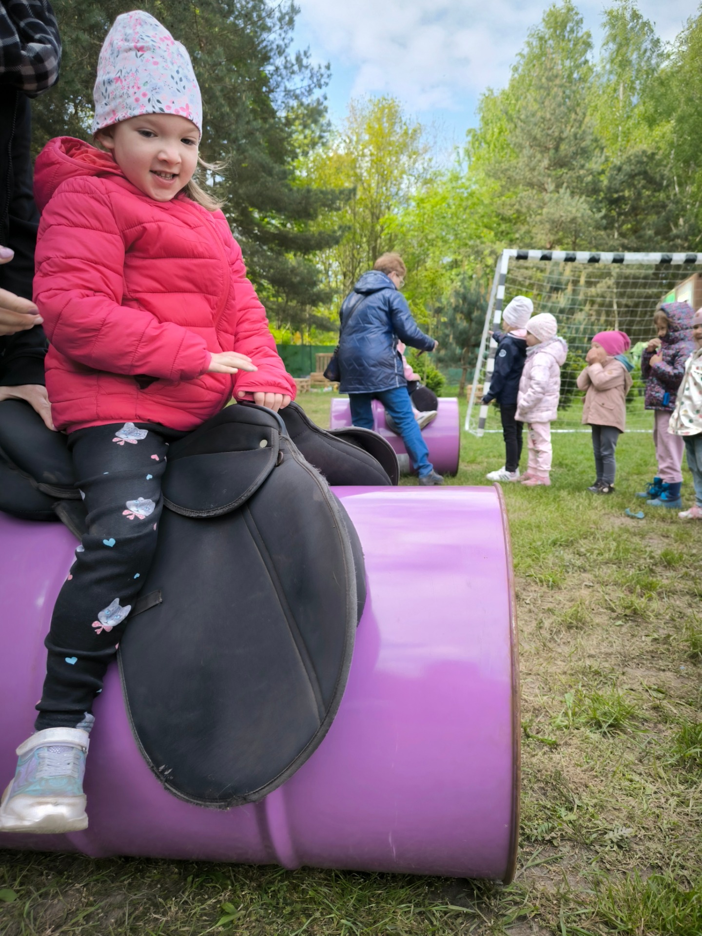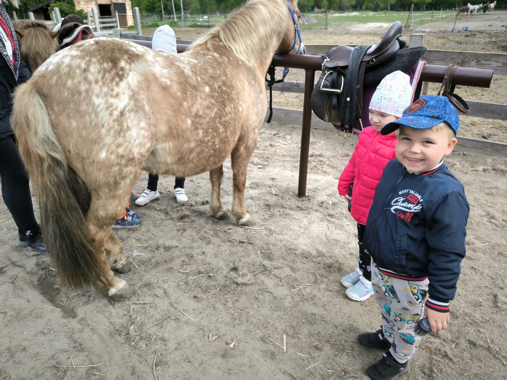 W dniu 09.05.2025 Piraci odwiedzili konie, kuce oraz inne zwierzęta gospodarskie w urokliwej stajni Freedom. Dzieci mogły pomóc w opiece nad kucami, zapoznały się z zasadami bezpieczeństwa podczas pielęgnacji tych zwierząt. Panie prowadzące zapoznały dzieci z tym, co lubią jeść konie. Piraci pomogli narwać świeżej trawy dla mieszkańców stajni. Najbardziej emocjonującą atrakcją była przejażdżka na kucach. Dzieci spisały się wspaniale. Świetnie współpracowały z instruktorami. Przejażdżka dała dzieciom bardzo dużo radości.