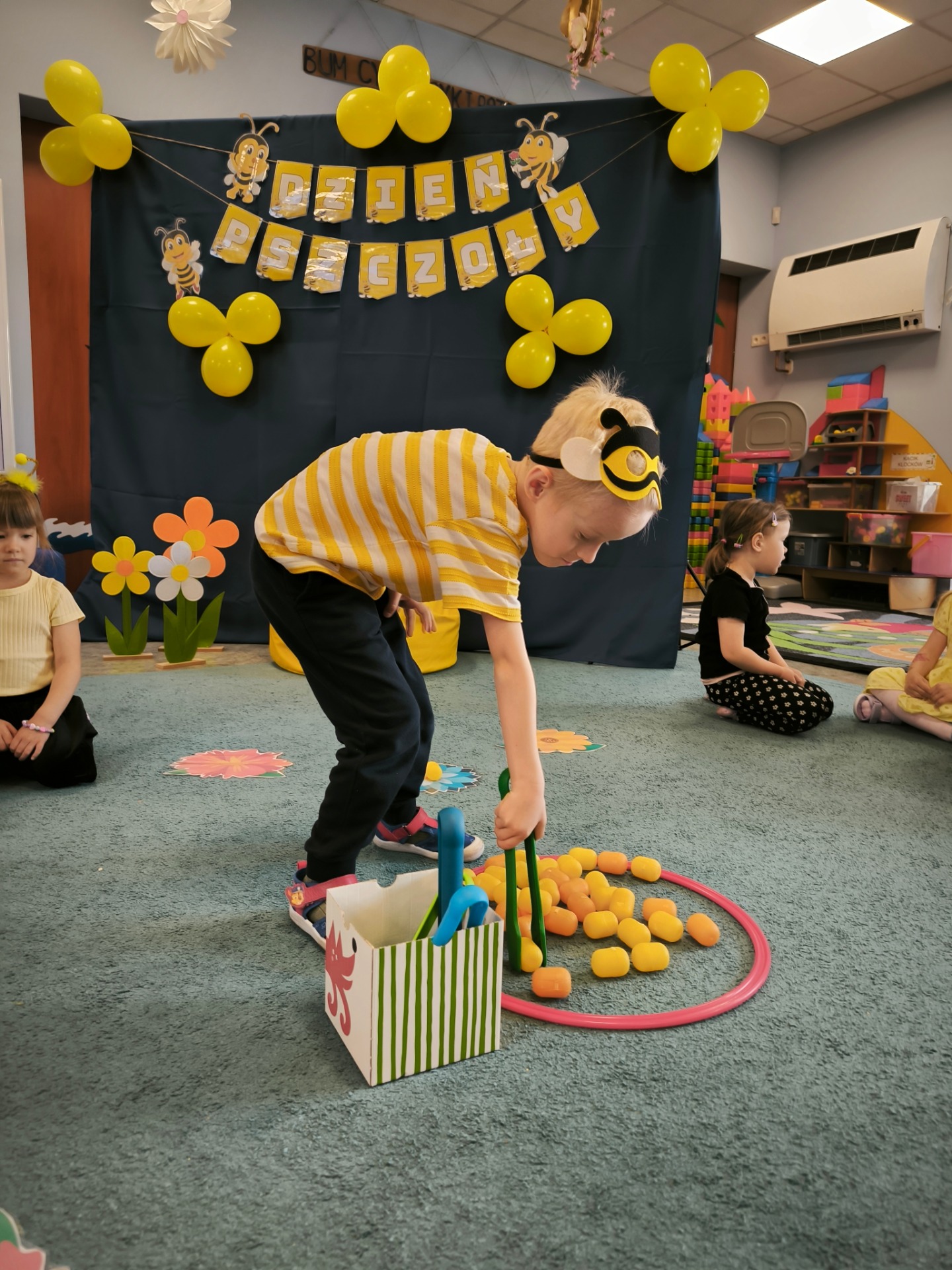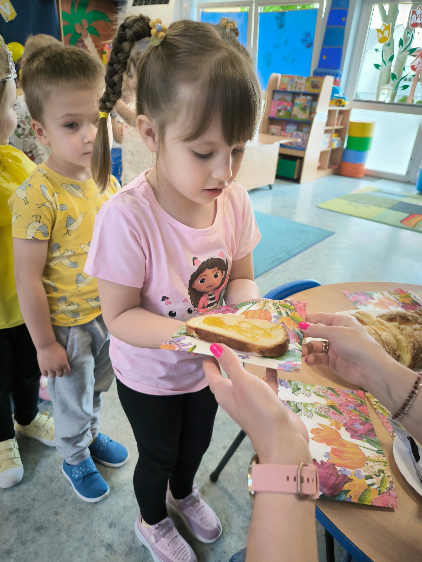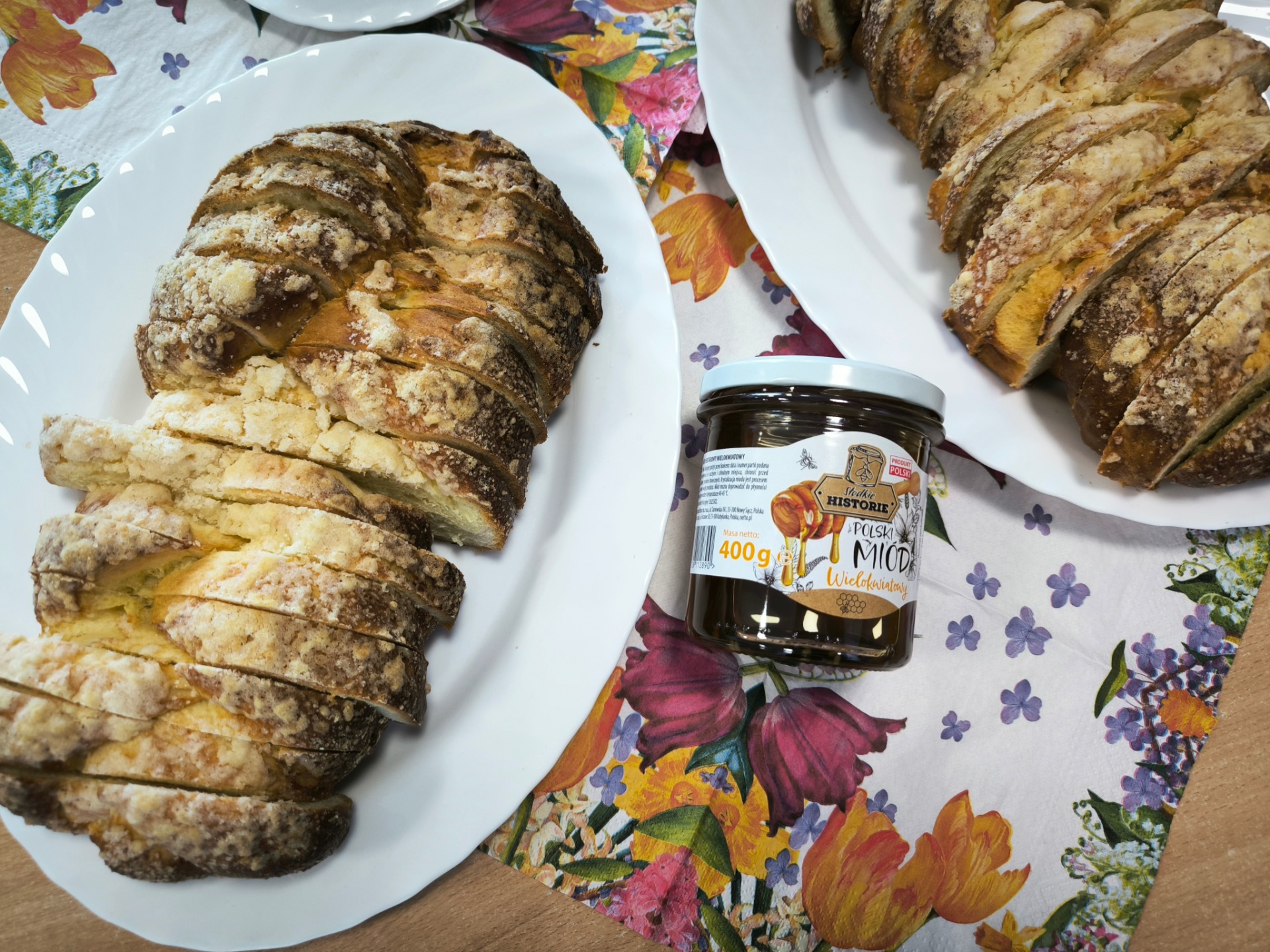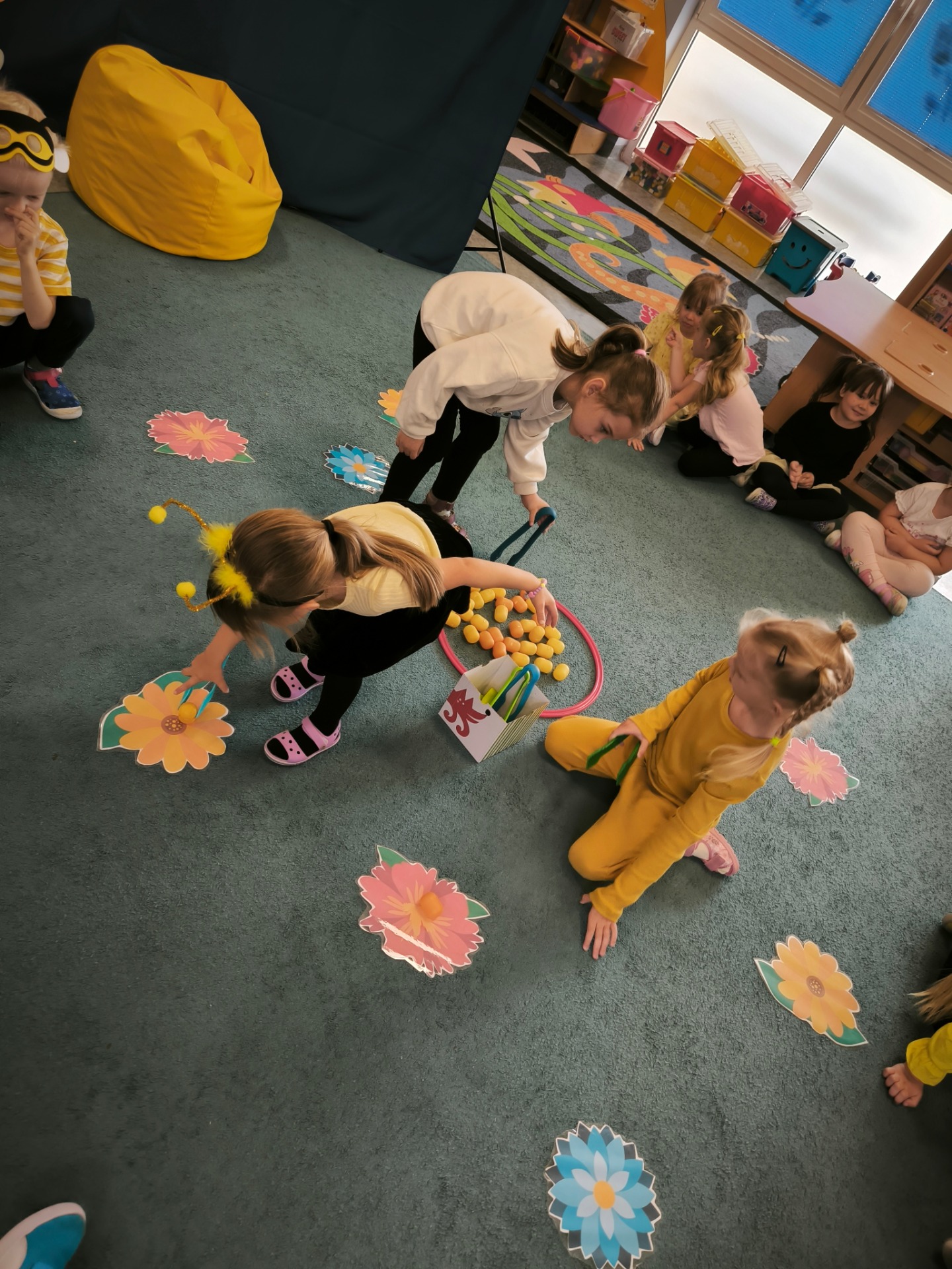 Piraci poznali niektóre tajemnice z życia pszczół, poprzez zabawę rozwijali swoją wiedzę przyrodniczą oraz dużą i małą motorykę. Ciocia Ewelina upiekła domową chałkę, którą dzieci zjadły z pysznym miodem.