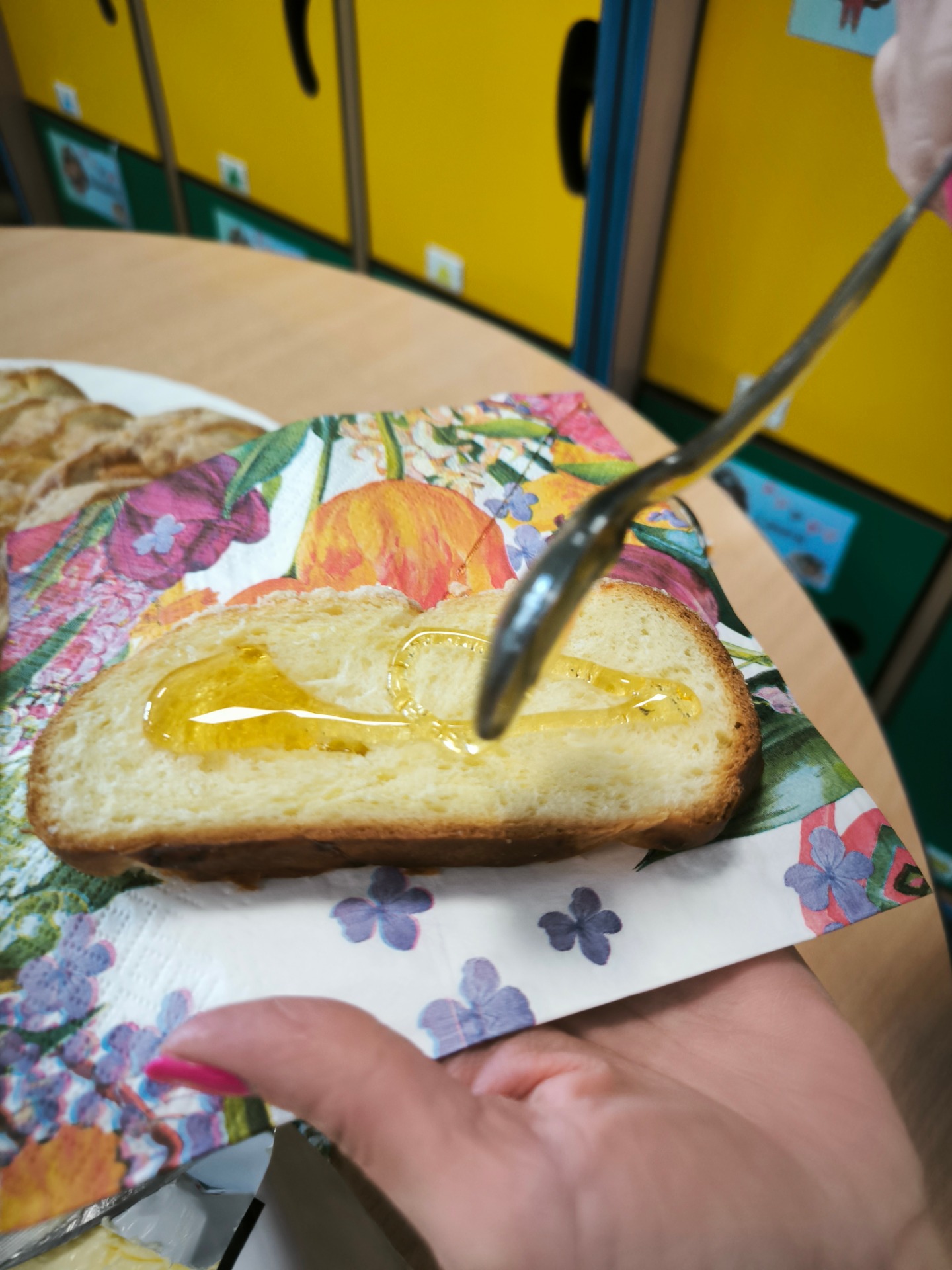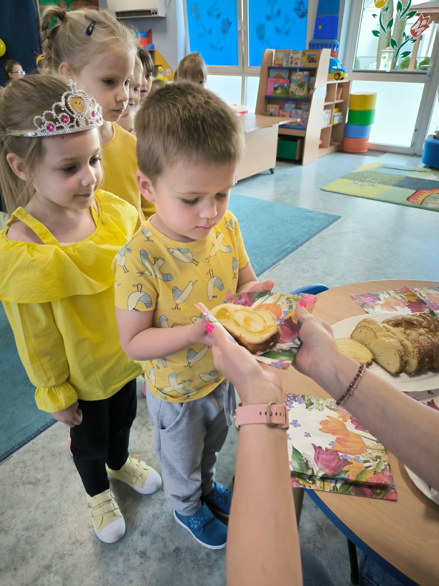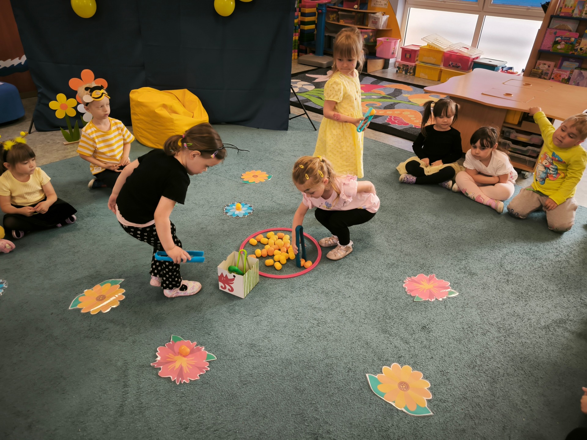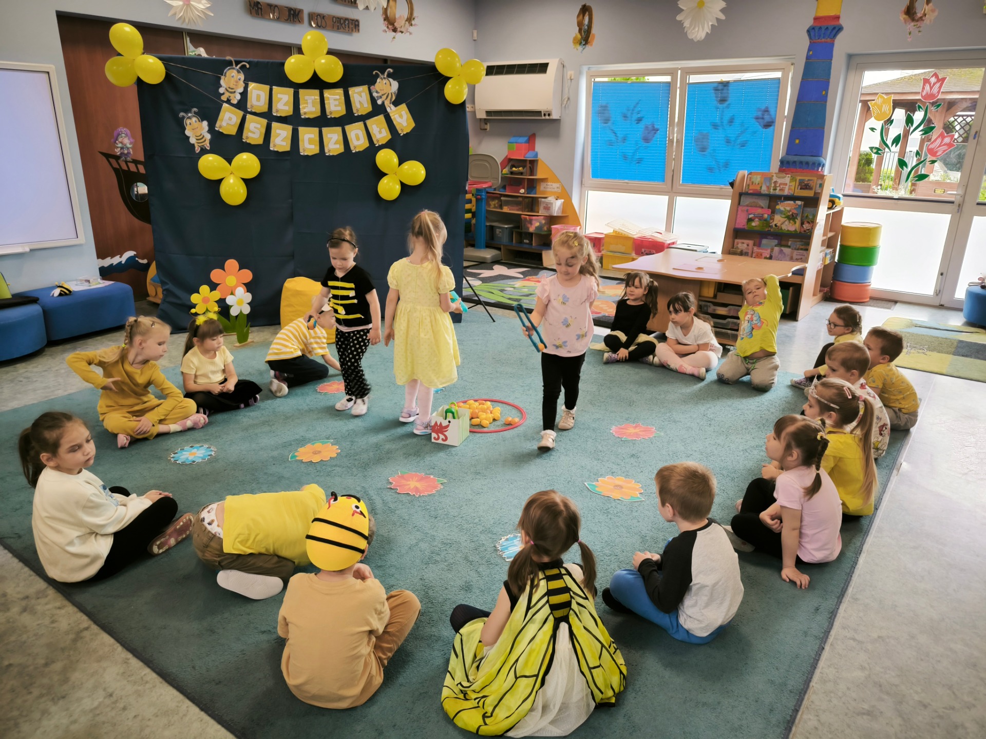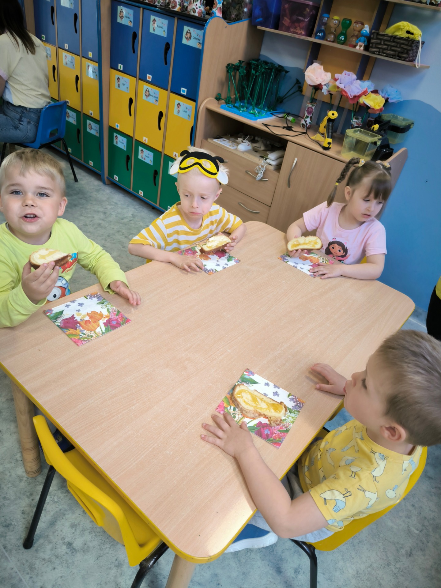 Piraci poznali niektóre tajemnice z życia pszczół, poprzez zabawę rozwijali swoją wiedzę przyrodniczą oraz dużą i małą motorykę. Ciocia Ewelina upiekła domową chałkę, którą dzieci zjadły z pysznym miodem.