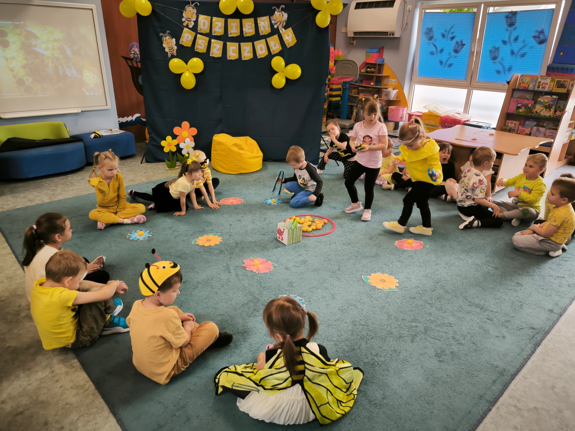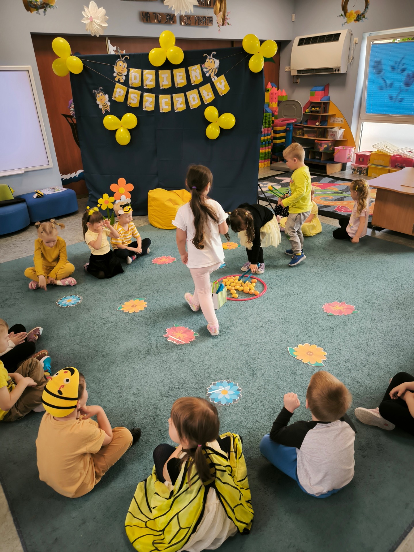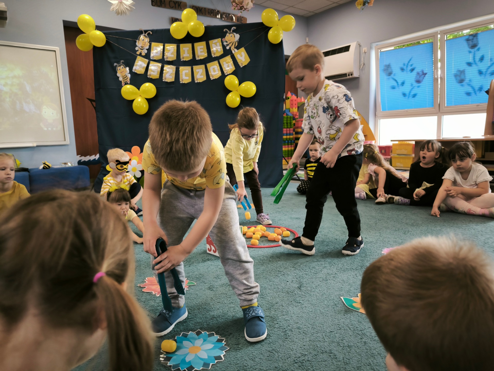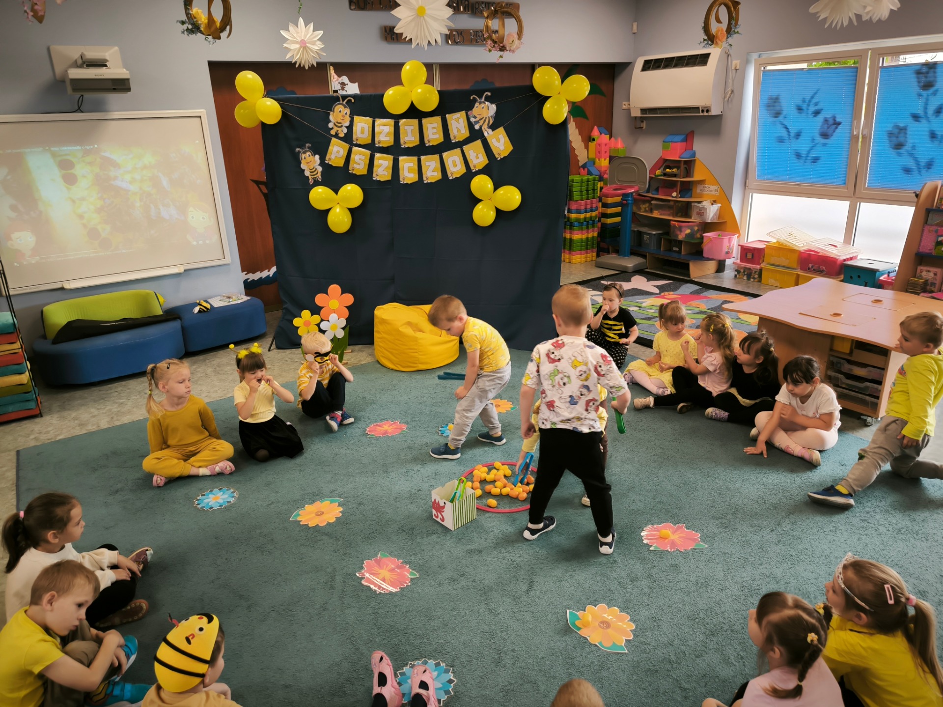 Piraci poznali niektóre tajemnice z życia pszczół, poprzez zabawę rozwijali swoją wiedzę przyrodniczą oraz dużą i małą motorykę. Ciocia Ewelina upiekła domową chałkę, którą dzieci zjadły z pysznym miodem.