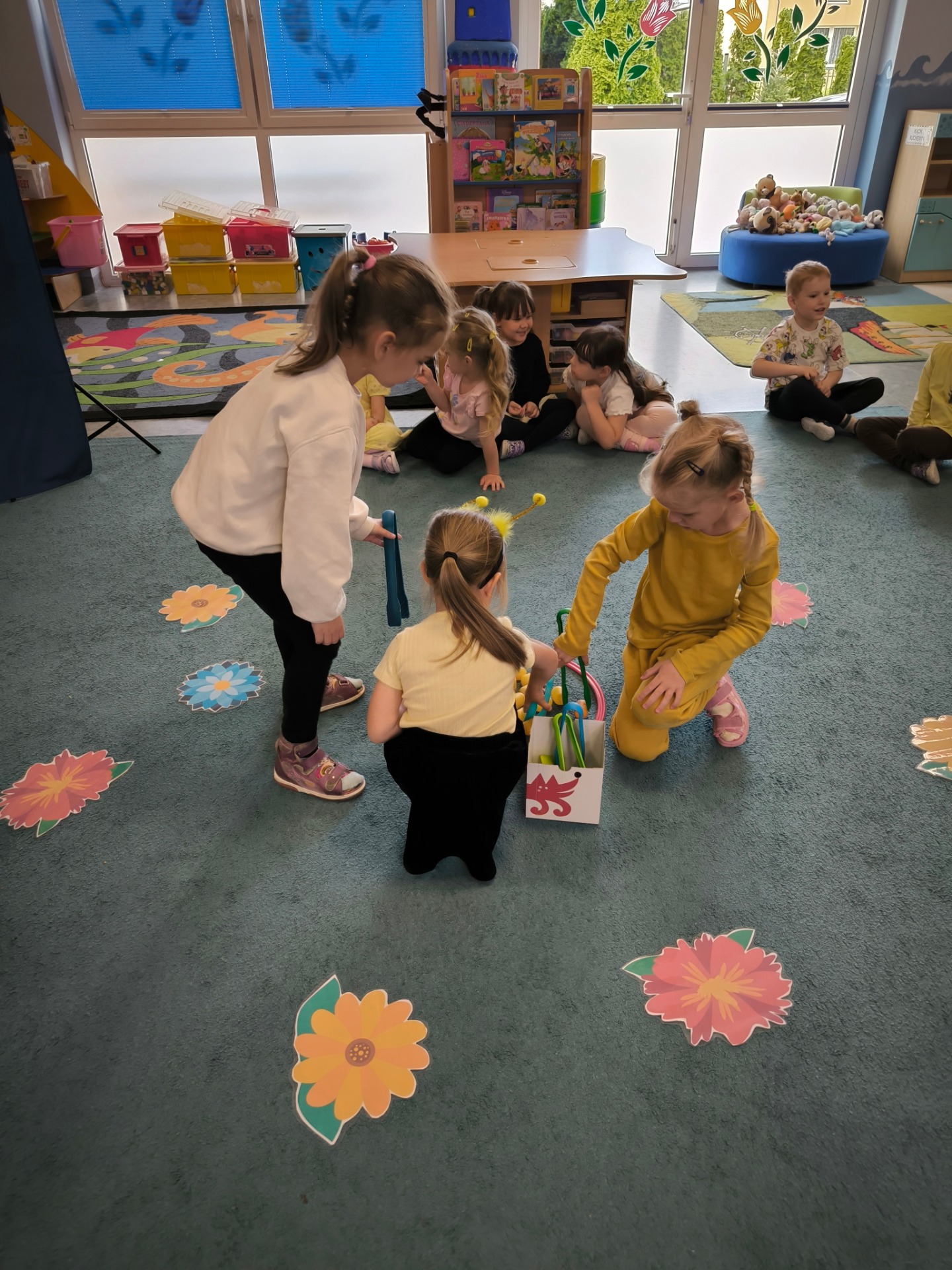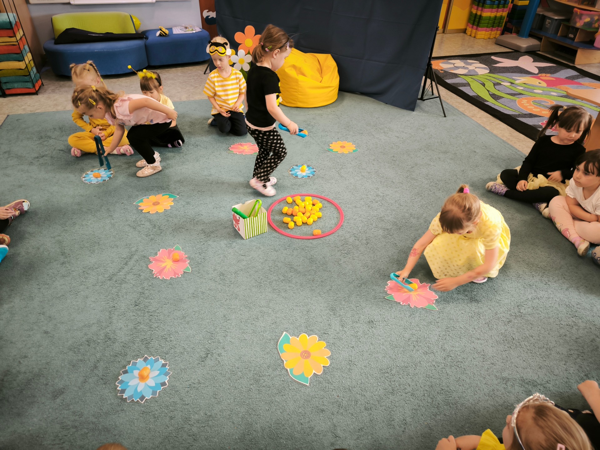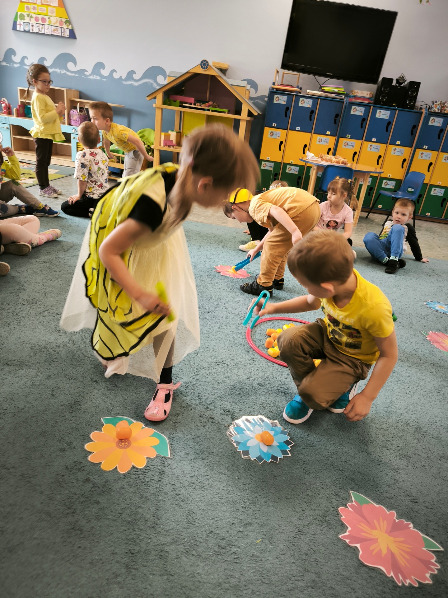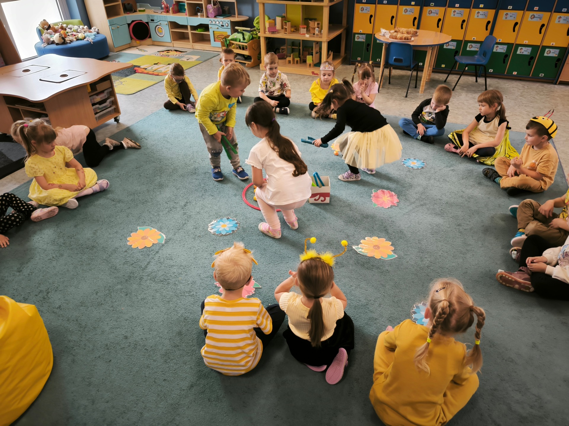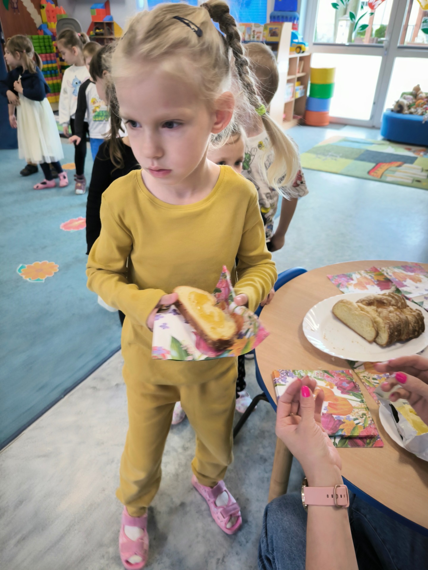 Piraci poznali niektóre tajemnice z życia pszczół, poprzez zabawę rozwijali swoją wiedzę przyrodniczą oraz dużą i małą motorykę. Ciocia Ewelina upiekła domową chałkę, którą dzieci zjadły z pysznym miodem.