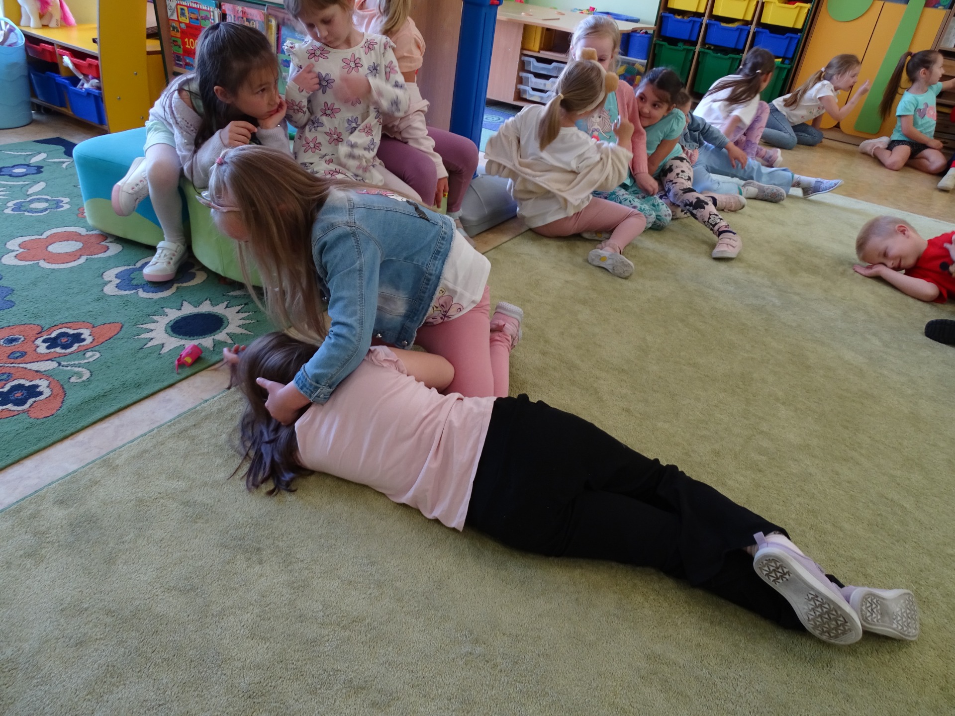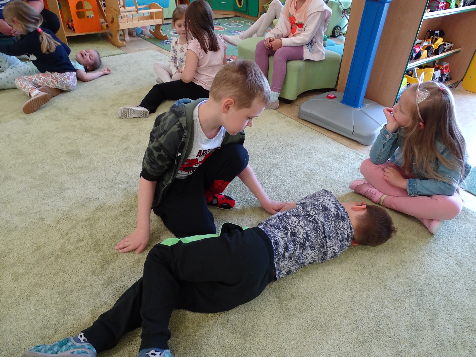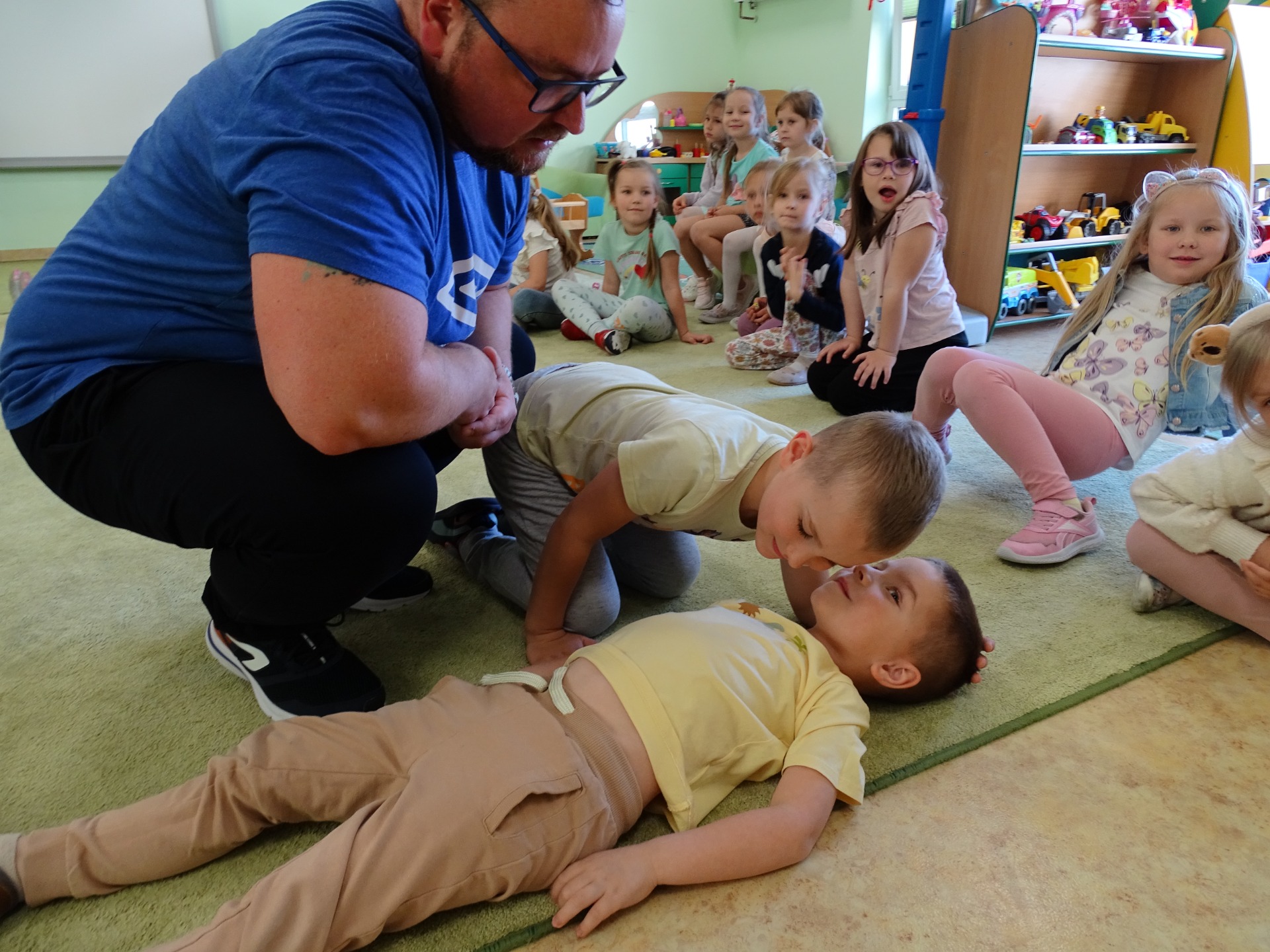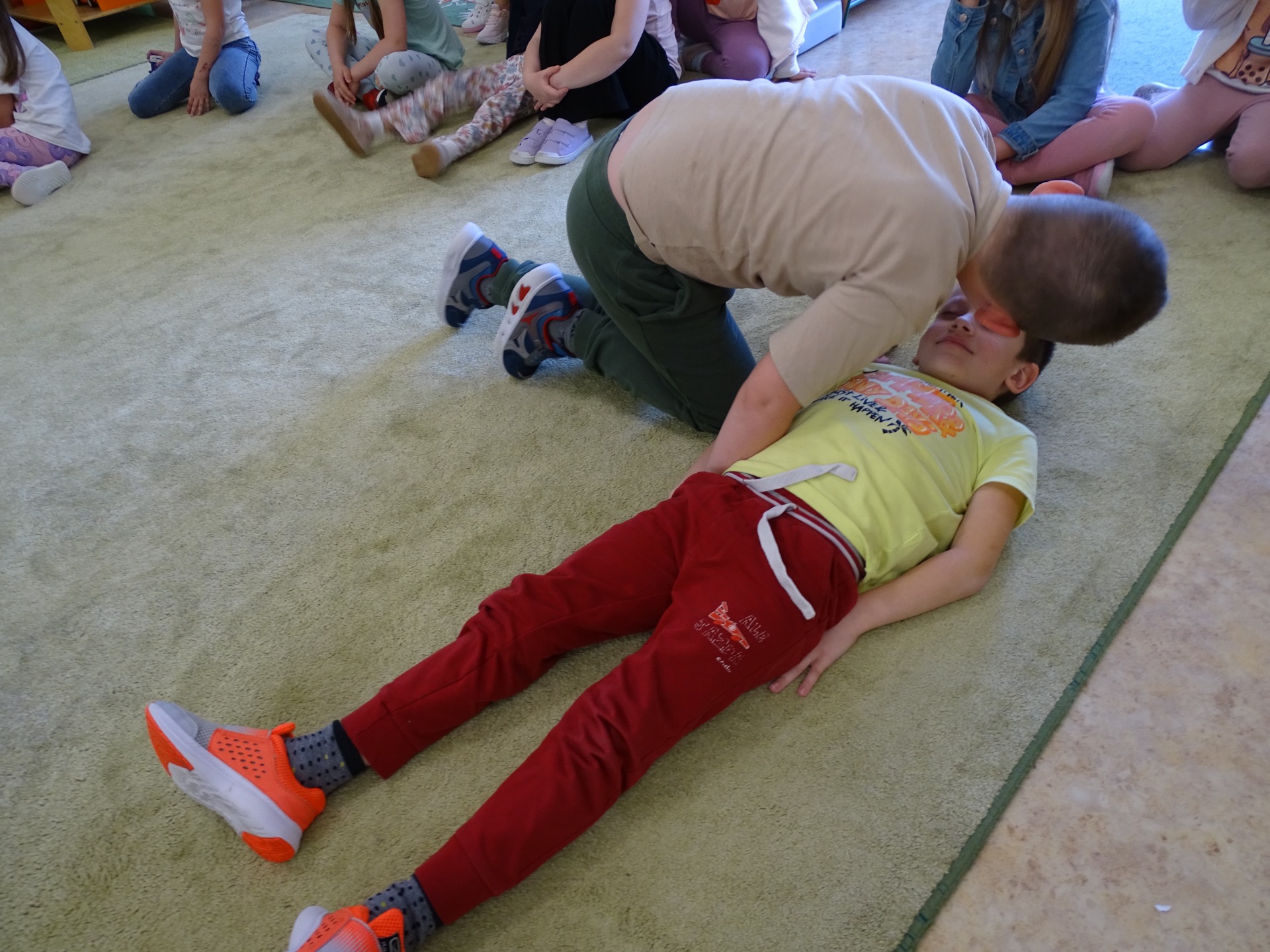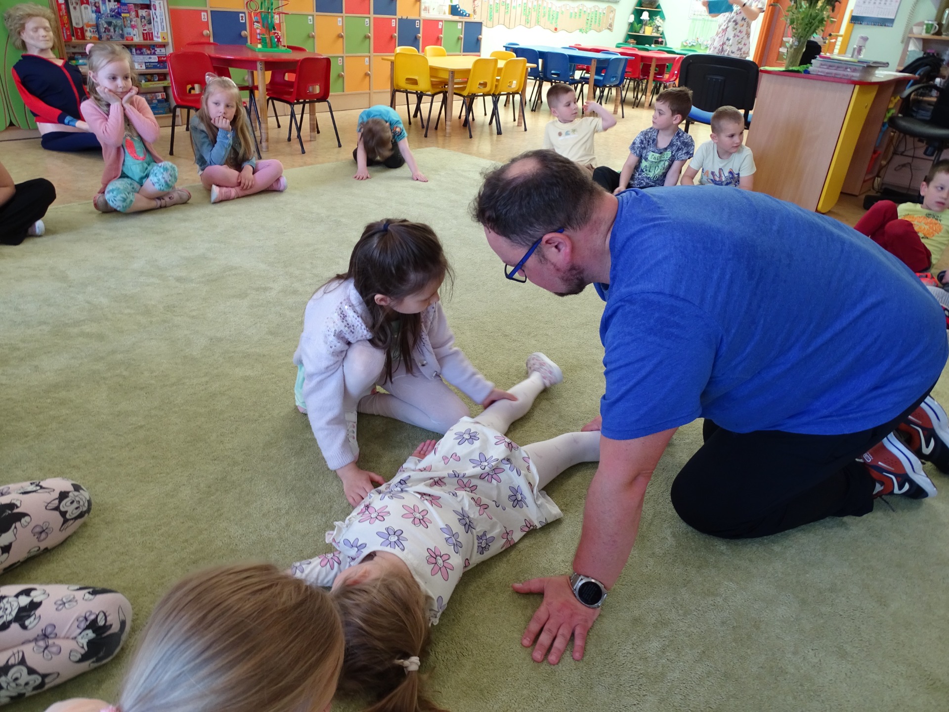 Z tego powodu należy już od najmłodszych lat instruować je, jak trzeba zachować się w sytuacji, gdy ktoś potrzebuje naszej pomocy. Podczas zajęć dzieci mogły poczuć się jak mali ratownicy. Była to doskonała lekcja – połączenie zabawy z przekazywaniem jakże istotnej wiedzy, która może przynieść nieoceniony efekt – ratowanie życia. Po tej lekcji dzieci już wiedzą, na czym polega ich rola w sytuacji, kiedy trzeba komuś pomóc.