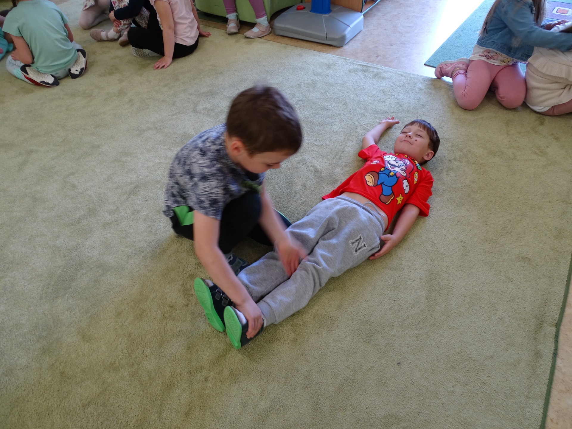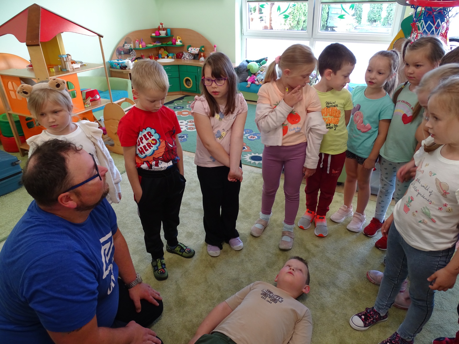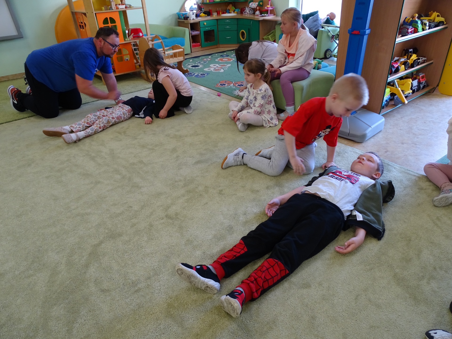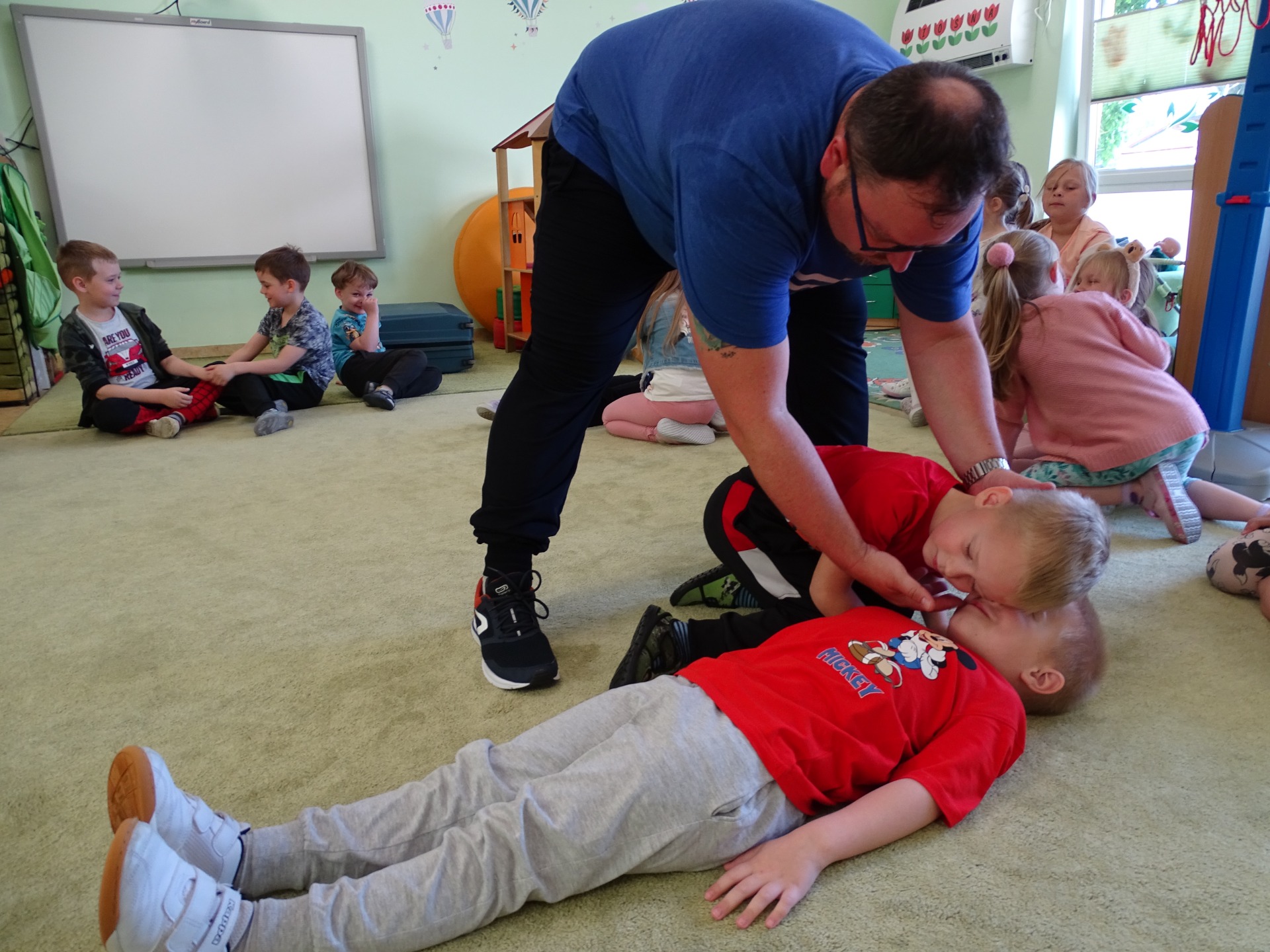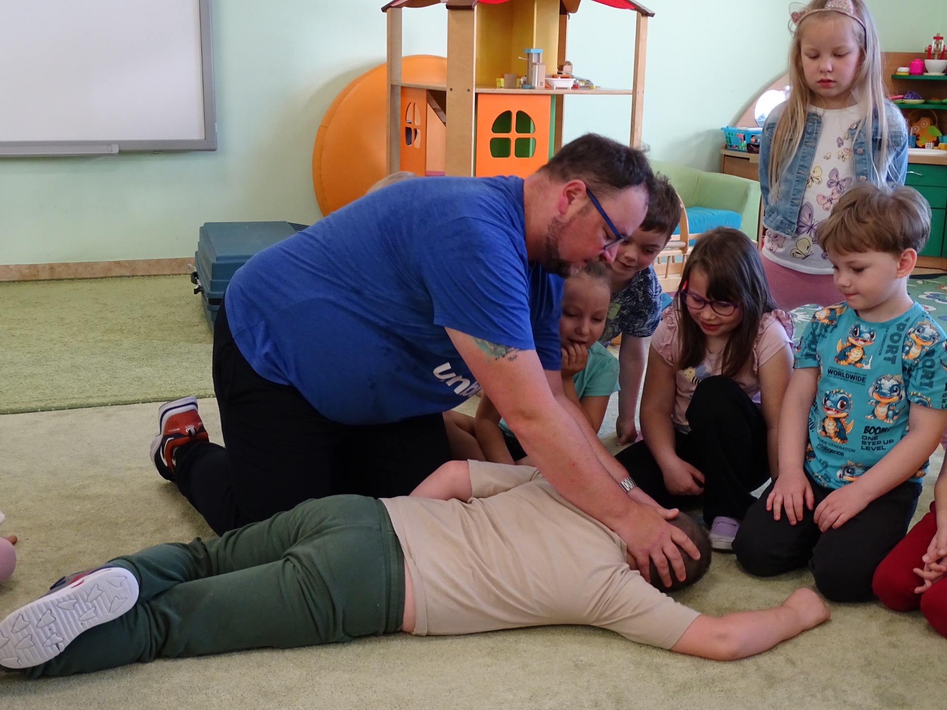 Z tego powodu należy już od najmłodszych lat instruować je, jak trzeba zachować się w sytuacji, gdy ktoś potrzebuje naszej pomocy. Podczas zajęć dzieci mogły poczuć się jak mali ratownicy. Była to doskonała lekcja – połączenie zabawy z przekazywaniem jakże istotnej wiedzy, która może przynieść nieoceniony efekt – ratowanie życia. Po tej lekcji dzieci już wiedzą, na czym polega ich rola w sytuacji, kiedy trzeba komuś pomóc.