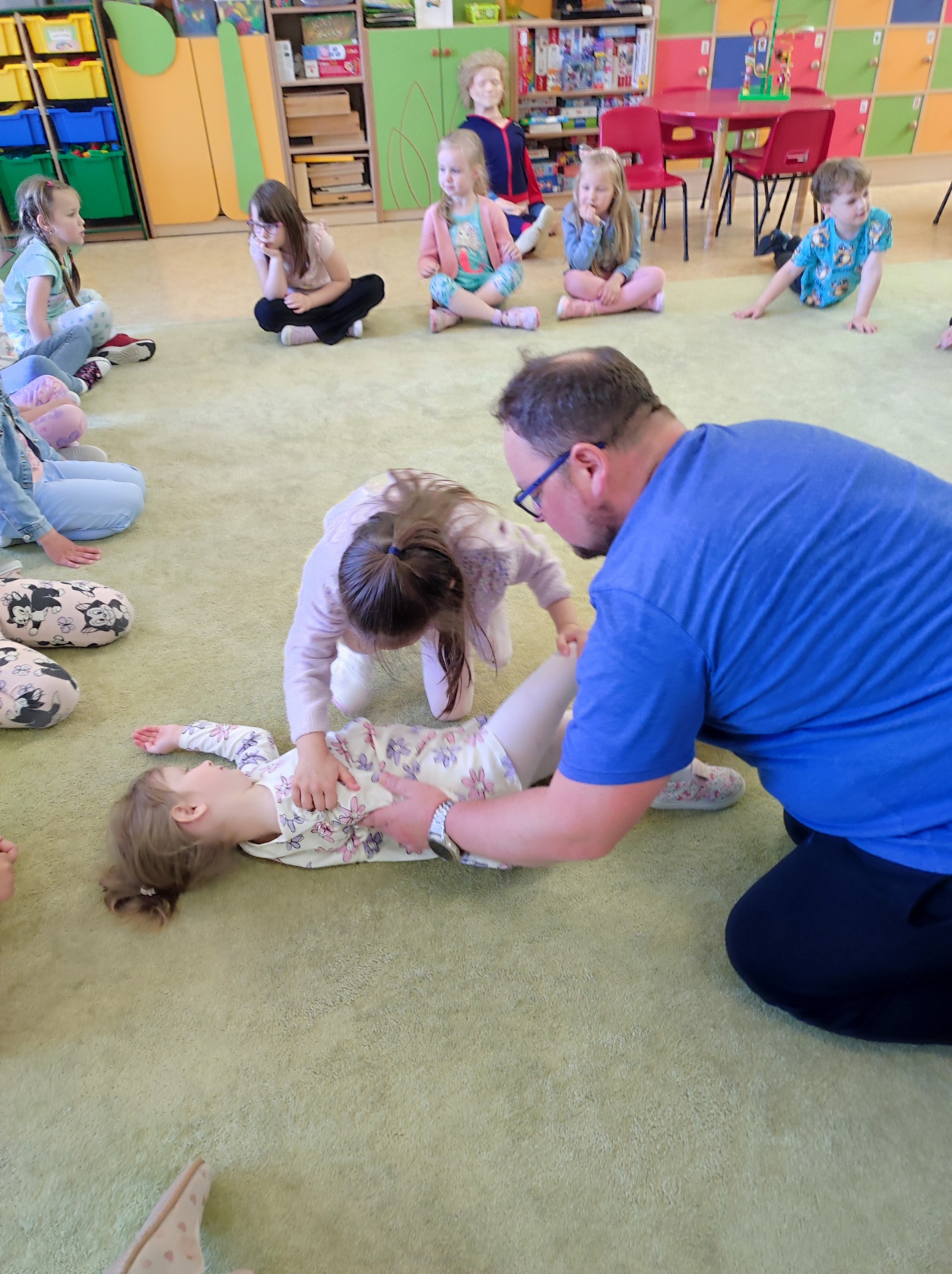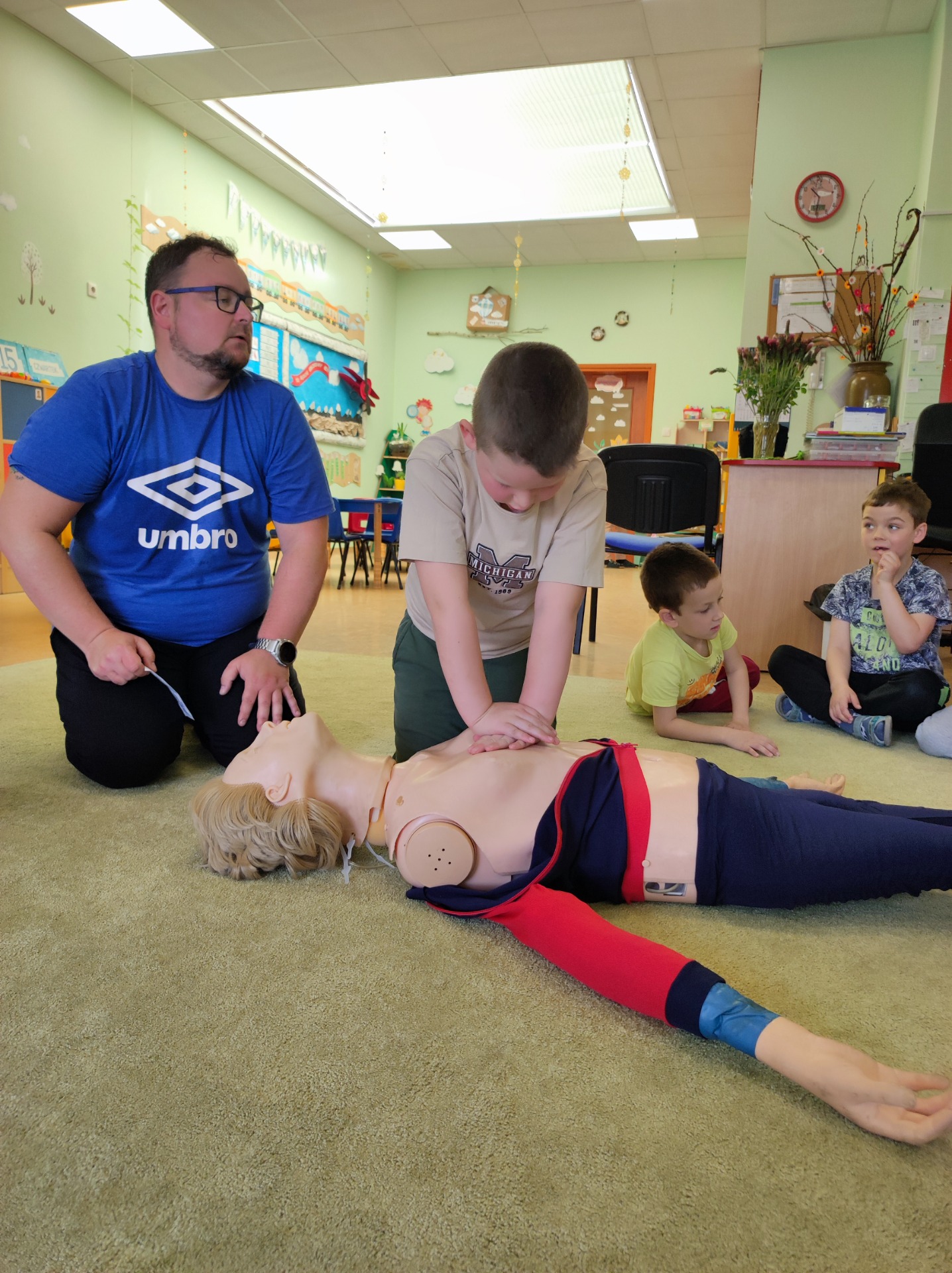 21 maja Podróżnicy wzięli udział w zajęciach z udzielania pierwszej pomocy przedmedycznej, które poprowadził p. Przemysław Pałyga. Udzielanie pierwszej pomocy jest naszym obowiązkiem. Jednak bardzo często w sytuacjach zagrożenia nie wiemy jak się zachować i jak pomóc osobie, która potrzebuje tej pomocy. Boimy się lub nie posiadamy wystarczającej wiedzy i umiejętności. Z tego powodu należy już od najmłodszych lat instruować je, jak trzeba zachować się w sytuacji, gdy ktoś potrzebuje naszej pomocy. Podczas zajęć dzieci mogły poczuć się jak mali ratownicy. Była to doskonała lekcja – połączenie zabawy z przekazywaniem jakże istotnej wiedzy, która może przynieść nieoceniony efekt – ratowanie życia. Po tej lekcji dzieci już wiedzą, na czym polega ich rola w sytuacji, kiedy trzeba komuś pomóc.