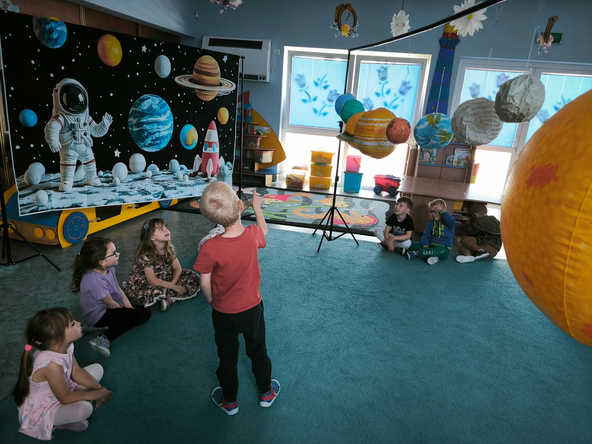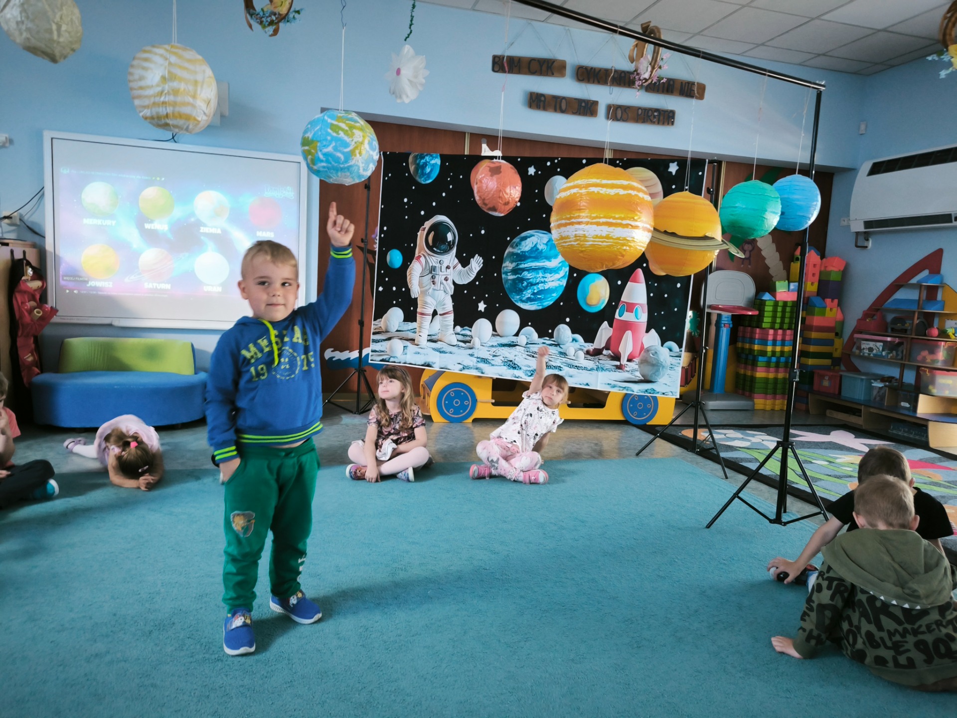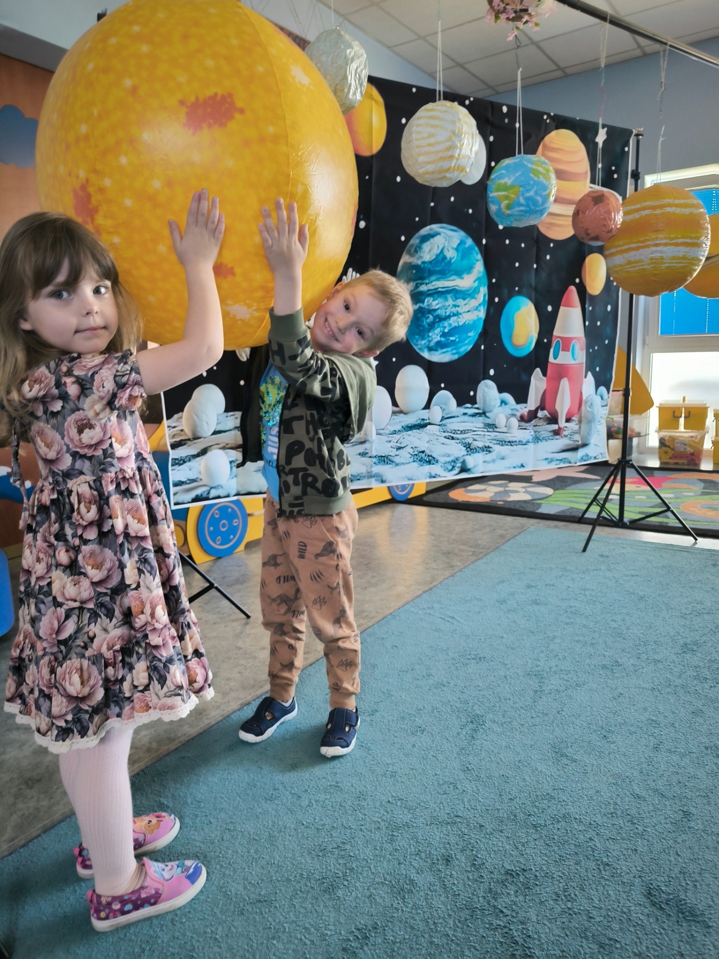 Dzień Kosmosu przyniósł Piratom wiele radości. Dzieci poznały budowę Układu Słonecznego. Bawiły się w start rakiety kosmicznej i zrobiły galaktykę w słoiku, która ozdabia nasz kącik przyrodniczy. W naszej sali pojawiły się dmuchane modele planet, które zrobiły na Piratach największe wrażenie. Klub Małego Przyrodnika poszerzył swoją wiedzę o kolejne, ciekawe pojęcia.