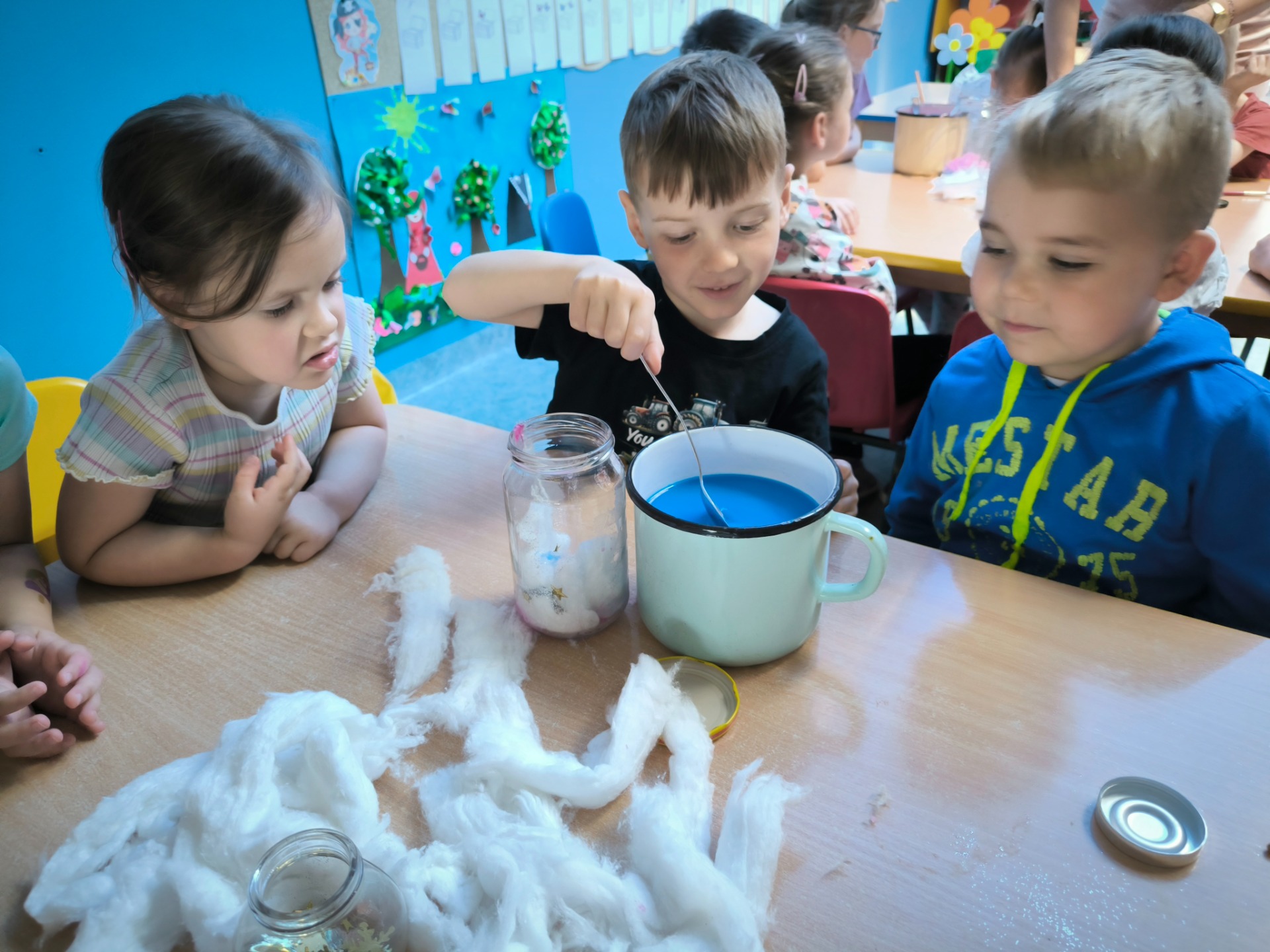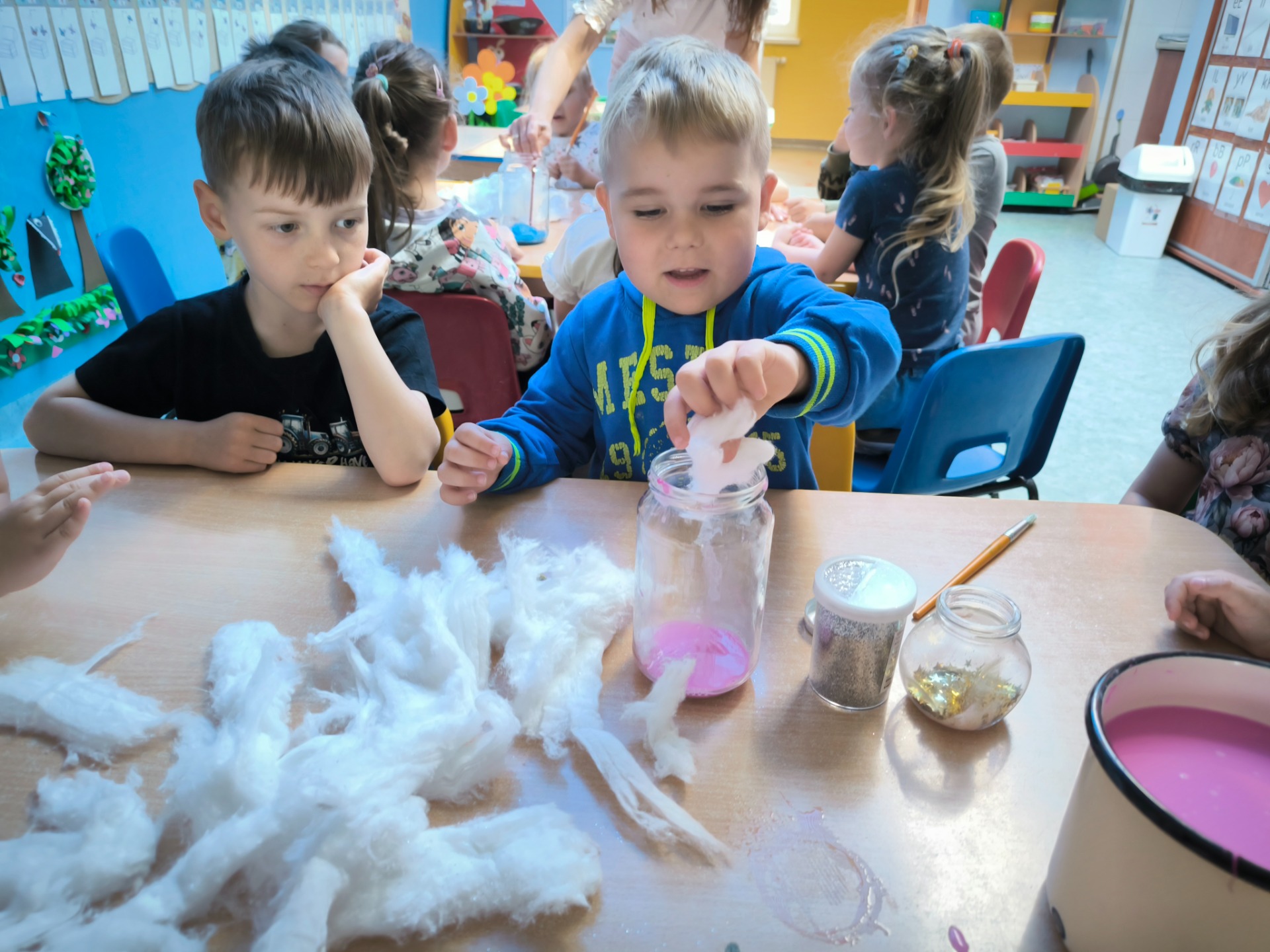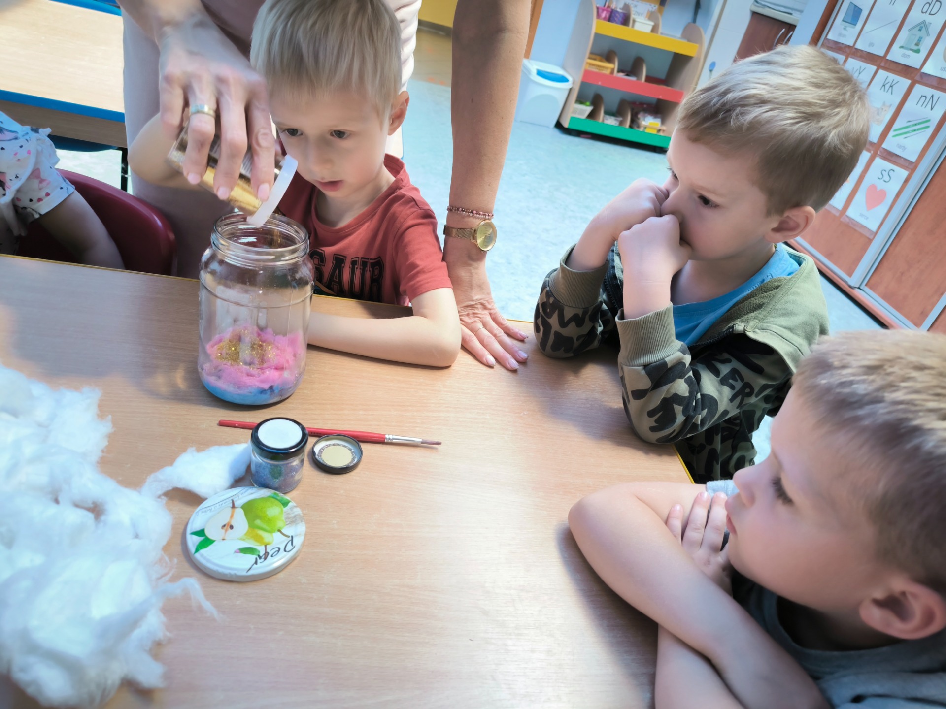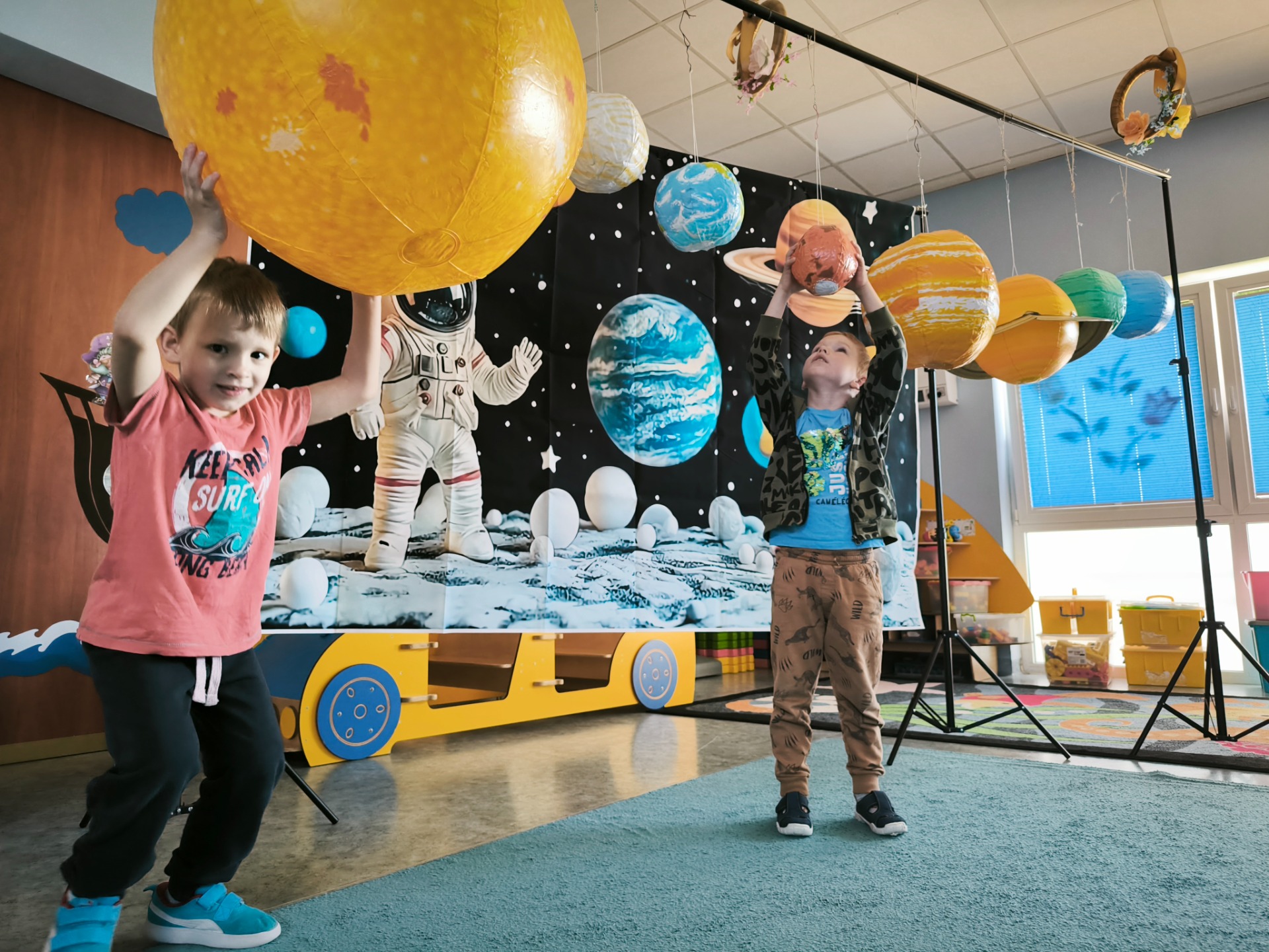 Dzień Kosmosu przyniósł Piratom wiele radości. Dzieci poznały budowę Układu Słonecznego. Bawiły się w start rakiety kosmicznej i zrobiły galaktykę w słoiku, która ozdabia nasz kącik przyrodniczy. W naszej sali pojawiły się dmuchane modele planet, które zrobiły na Piratach największe wrażenie. Klub Małego Przyrodnika poszerzył swoją wiedzę o kolejne, ciekawe pojęcia.