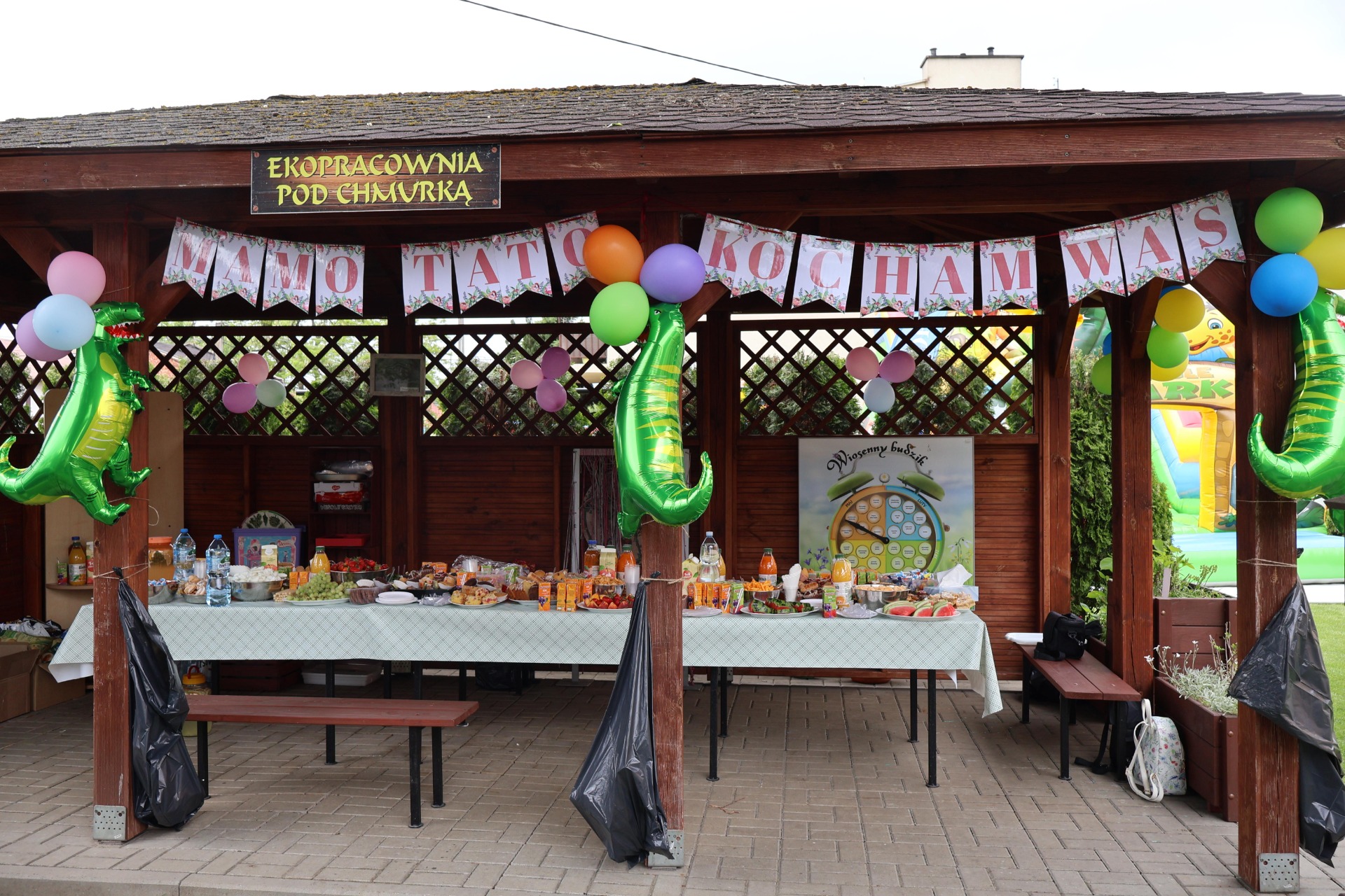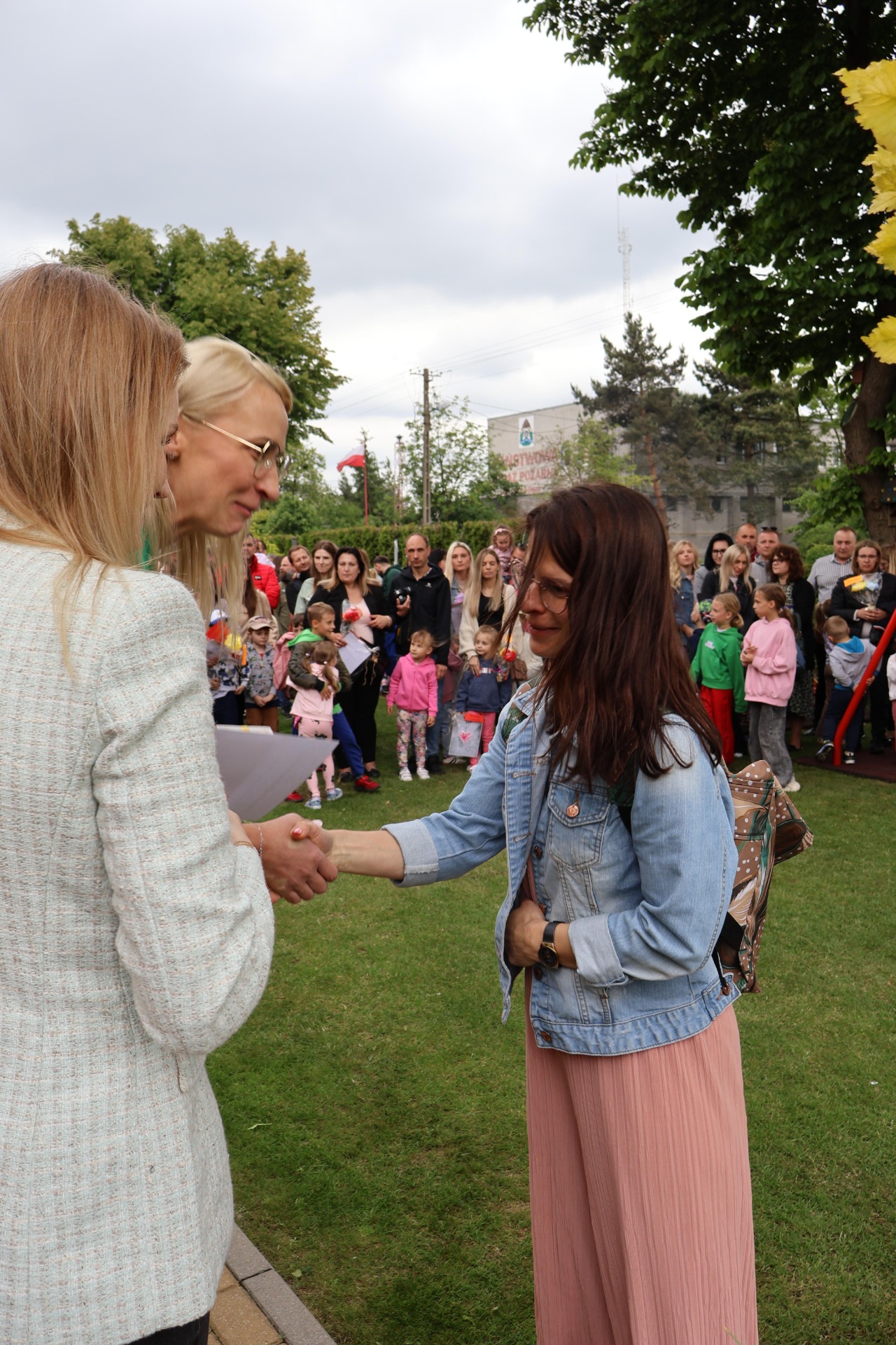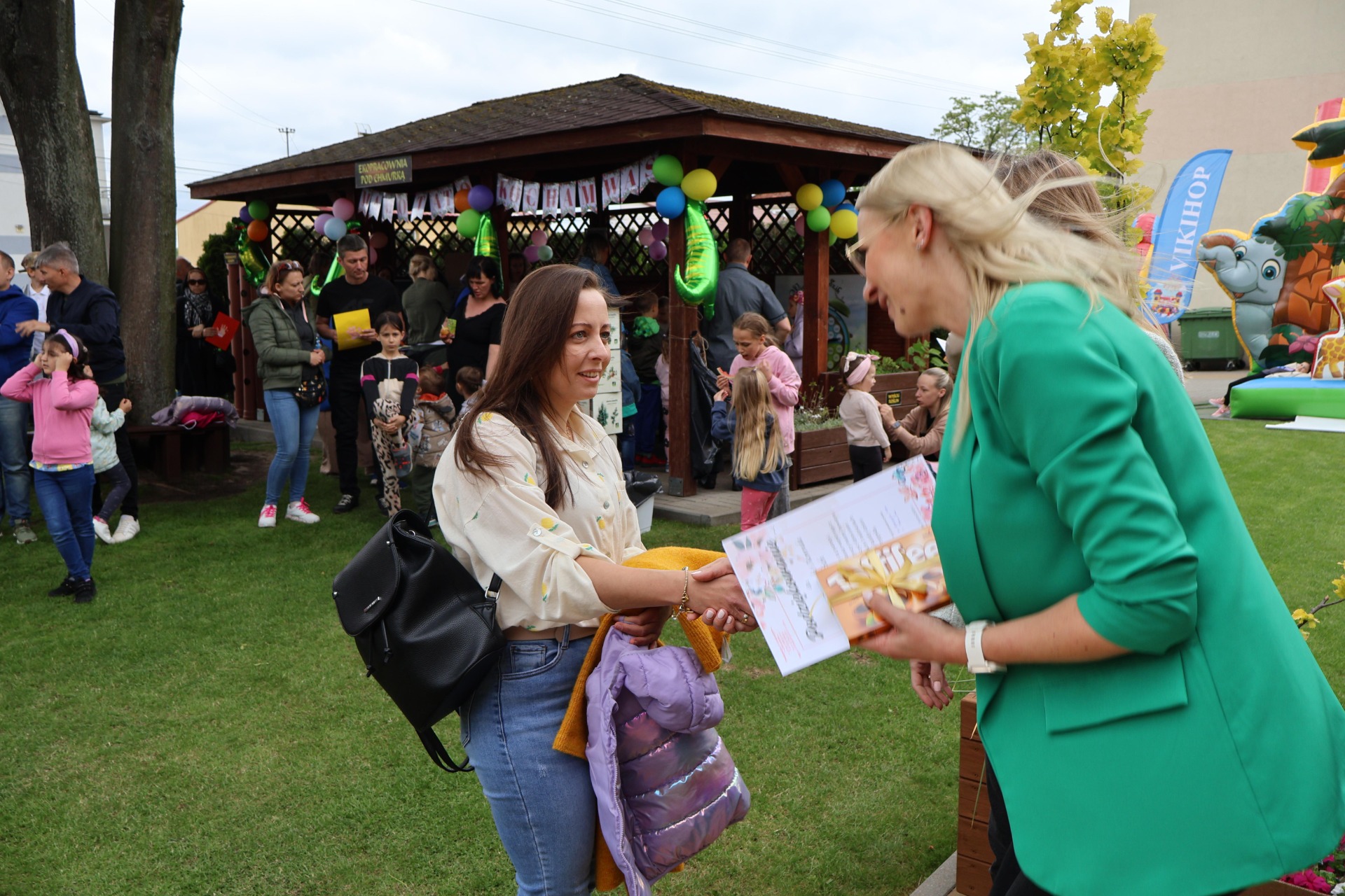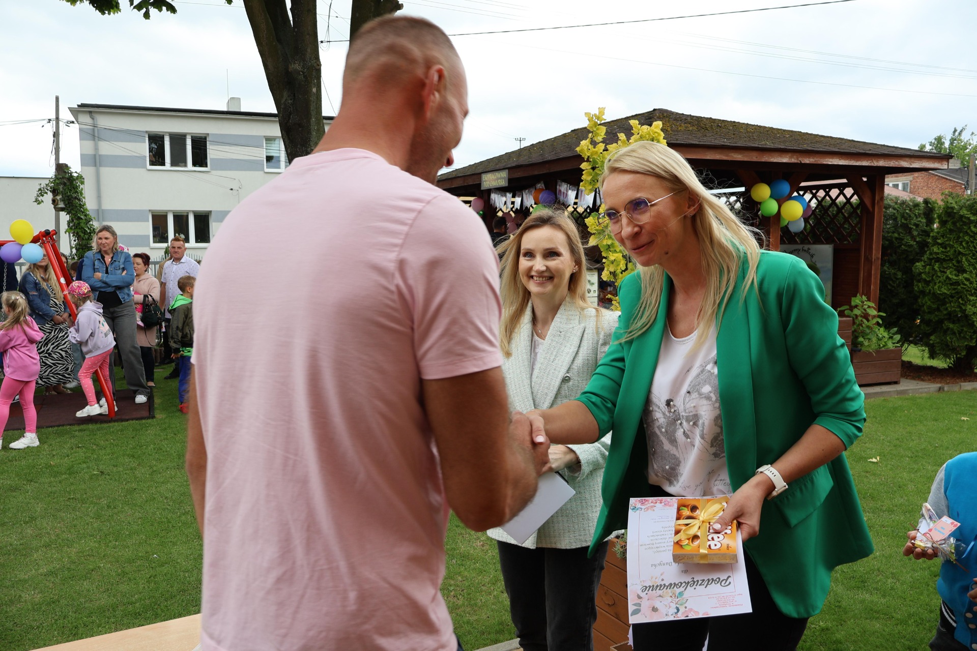 30 maja w ogrodzie przedszkolnym odbył się piknik z okazji Dnia Mamy, Dnia Dziecka i nadchodzącego Dnia Taty. Impreza rozpoczęła się o godzinie 14.00. Piknik otworzyła p. Dyrektor, która powitała przybyłych gości. Następnie dzieci zaprezentowały krótką akademię przygotowaną na tę okoliczność, a nauczycielki wręczyły podziękowania rodzicom zaangażowanym w sposób szczególny w życie grup. Przedszkolaki wręczyły także rodzicom przygotowane własnoręcznie prezenty, a potem nadszedł czas na rodzinną zabawę i szaleństwo. A atrakcji nie brakowało... :) W specjalnie przygotowanych miejscach można było m.in malować farbami na folii strecz, zrobić sobie tatuaż, pobawić się z animatorką, czy też poszaleć na dmuchanej zjeżdżalni. Wszyscy mogli swobodnie korzystać z placu zabaw, a także skosztować słodkiego poczęstunku. Rodzinny nastrój oraz przyjemna atmosfera, sprawiły radość zarówno dzieciom, ich rodzinom, a także wszystkim pracownikom Przedszkola. Wszystkim osobom, które przyczyniły się do organizacji pikniku serdecznie dziękujemy :).